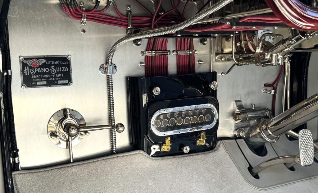 The 1923 Hispano-Suiza H6B Cabriolet, chassis number 10734, is a concours-winning example of one of Europes most technically advanced and aesthetically elegant automobiles of the interwar years. Winner of First in Class at the 2024 Pebble Beach Concours dElegance, this Hispano-Suiza combines Fernandez et Darrins sleek cabriolet coachwork with the marques aircraft-derived engineering to create a motorcar of exceptional presence. Finished in black over light gray leather with nickel-plated trim, the H6B represents a world-class candidate for the most exclusive concours events worldwide. Chassis 10734 was purchased new in June 1923 by Albert Venot. While the original body is not recorded, factory documentation suggests that the Hispano-Suiza was returned in 1929 for rebuilding, with Fernandez et Darrin completing the present Cabriolet bodywork in 1932. In the 1950s, the Hispano-Suiza was discovered in a French salvage yard, with the chassis and engine numbers verified against the original Venot car. The H6B was later acquired by collector Mr. Bitel and then passed to Dutch enthusiasts Jan Bruijn and J.A. Palman in the late 1980s. After a period of incomplete restoration, the Hispano-Suiza was sold to Otis Chandler in 2002 and entered the care of Stu Laidlaw in California. Following Chandlers passing, George Fernandez of Spain assumed ownership before being acquired by collector Sam Mann in 2015, who completed the restoration. Today, the Hispano-Suiza is offered in fully restored, concours-winning condition with a fascinating and well-documented history. The exterior coachwork by Fernandez et Darrin is finished in a sleek black with nickel-plated hardware throughout, in overall excellent condition. The Hispano-Suiza features a folding black soft top, dual coach doors with nickel handles, Marchal headlights, sweeping fenders with art deco accent lamps, and the marques signature Flying Stork mascots at both the radiator and rear deck. Dual windshields, including a cleverly concealed screen for rumble seat passengers, provide elegance and functionality. Full cloth side mount wheel covers, and a prominent grille complete the striking, period-correct presentation. The interior is upholstered in light gray leather with black piping, complemented by matching grey carpets and floor mats which are all in excellent condition. Mahogany wood trim adorns the doors and dashboard, while the etched nickel-plated instrument panel features Jaeger gauges labeled in French, including a 130 km/h speedometer and matching auxiliary instruments. The right-hand drive configuration, complete with steering wheel throttle controls and a floor-mounted shifter, reflects the cars original sporting character. A Cognac Brown convertible headliner and nickel-plated hardware complete the thoughtful, authentic finish. Every element of the Hispano-Suizas interior reinforces the quality and craftsmanship expected of one of Europes premier luxury marques. The Hispano-Suiza H6B was engineered by Swiss designer Marc Birkigt and became legendary for its technical sophistication. Powered by a 6.6-liter inline six-cylinder derived from aviation practice, the H6B employed steel cylinder liners in an aluminum block, overhead camshaft valve actuation, and a pressure-lubricated crankshaft with seven main bearings. Servo-assisted four-wheel brakes, patented by the marque, gave the Hispano-Suiza stopping power unmatched by contemporaries. Chassis 10734 retains its early-style rear axle assembly and crankcase, with evidence of an updated block dating from the 1929 rebuilding, while original components including the carburetor, distributor caps, and valve covers remain present. The Hispano-Suiza runs very well, reflecting both the brilliance of its engineering and the care invested in its recent restoration. For more information and details, please call or text Harry Clark at 1.602.245.7200 or email us at sales@classicpromenade.com. This Hispano-Suiza is available for inspection at our showroom in Phoenix. We are pleased to offer FaceTime or WhatsApp live video inspections, and we help coordinate shipping worldwide. We also have financing partners if you are interested in financing.