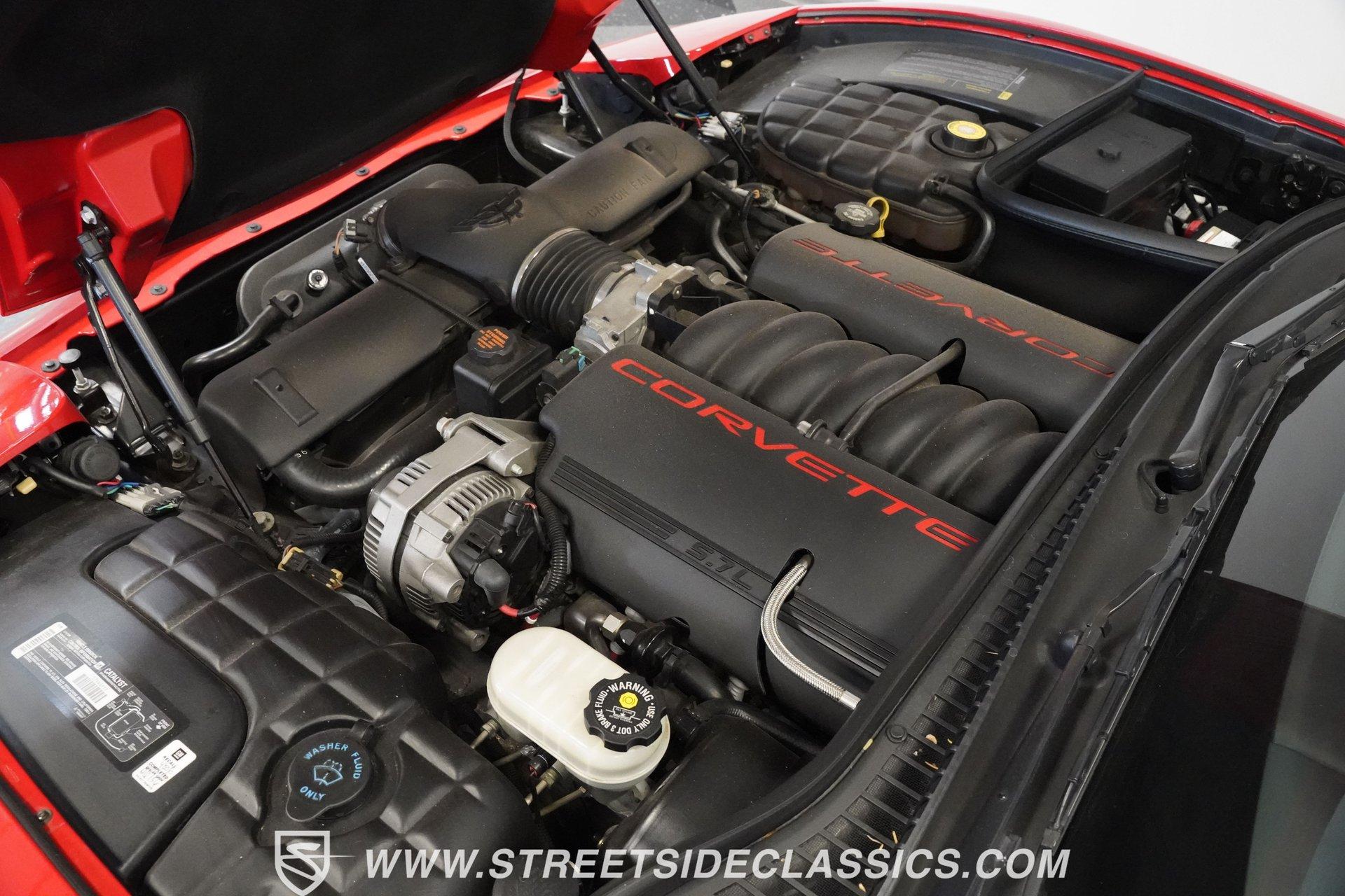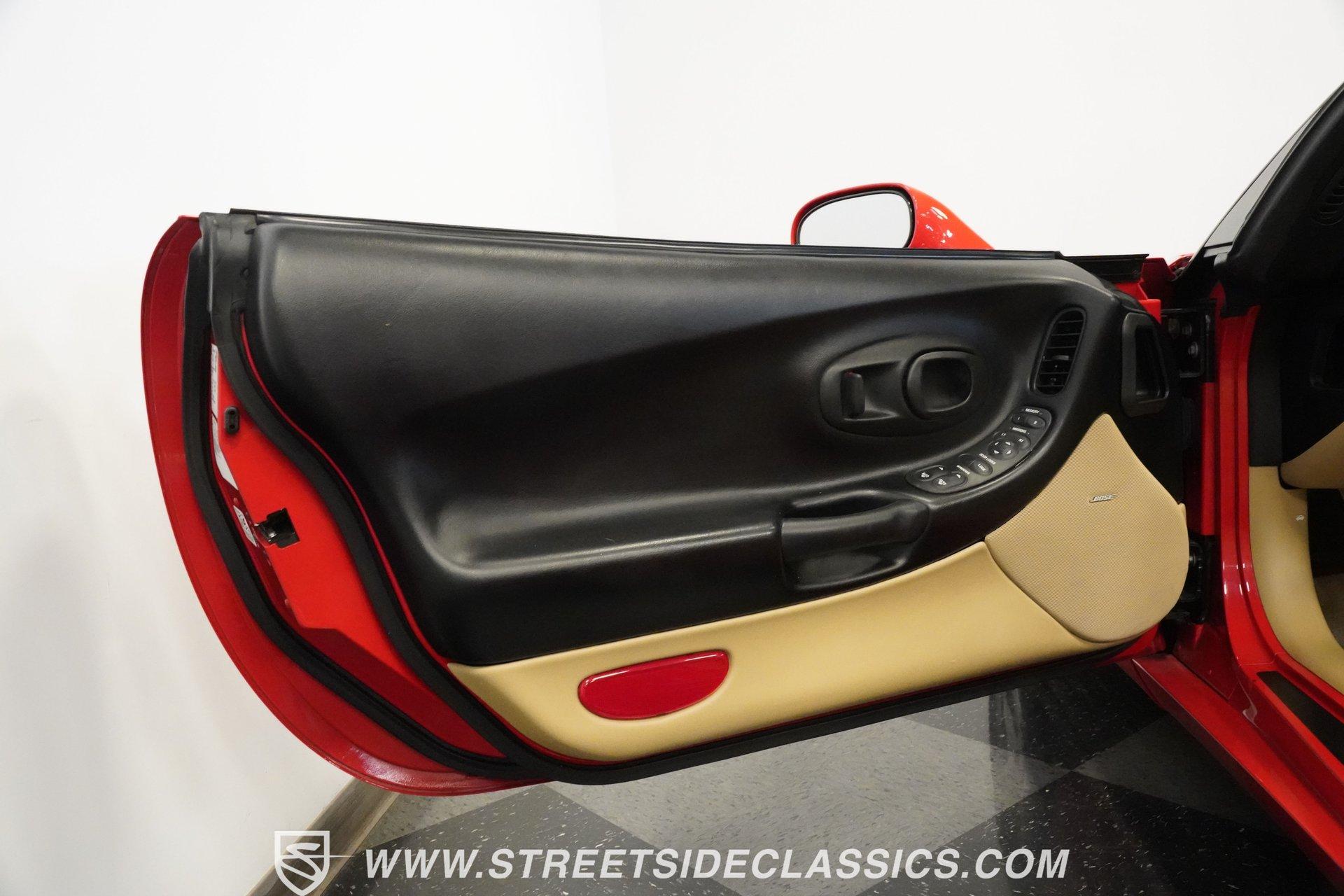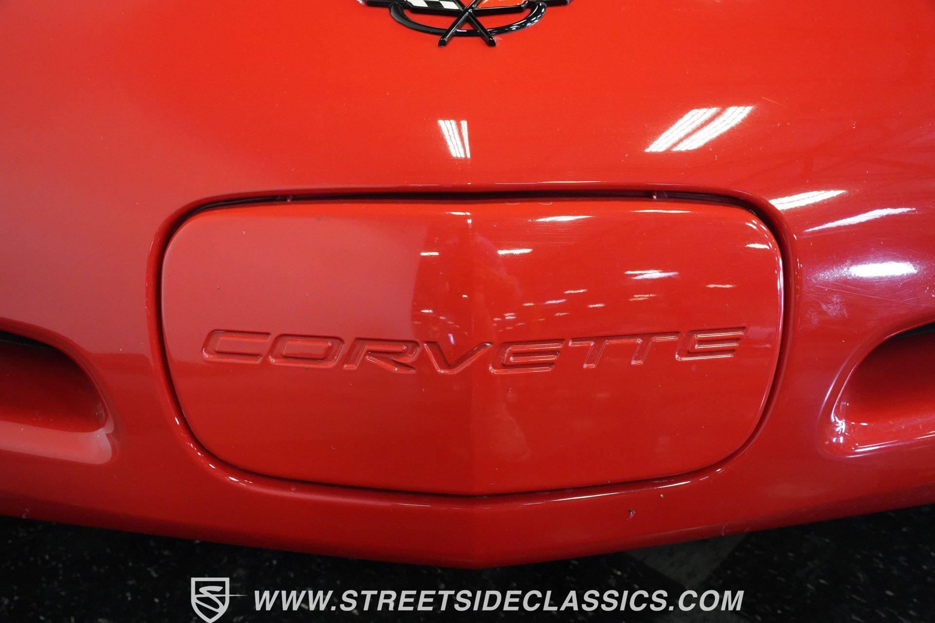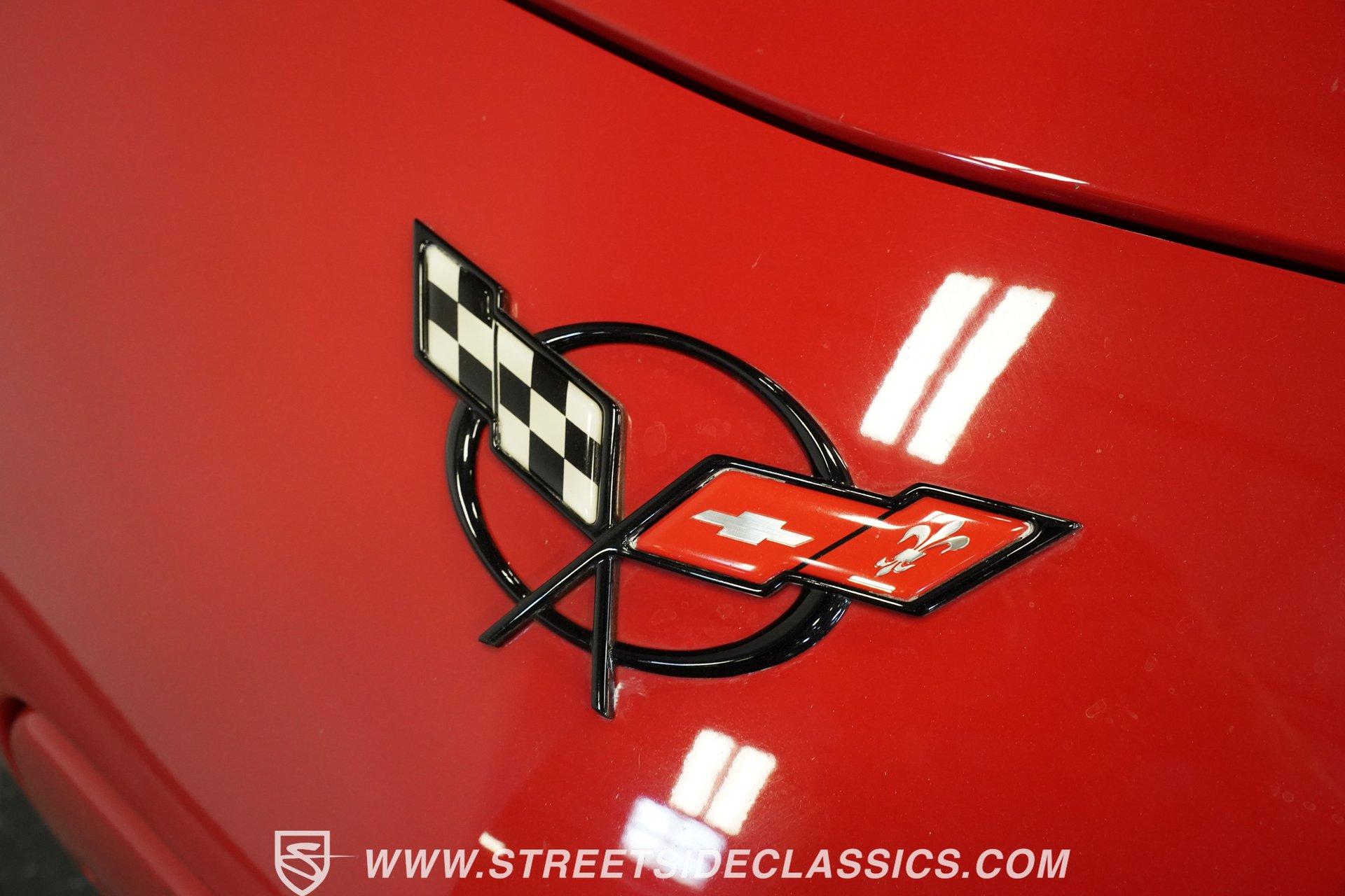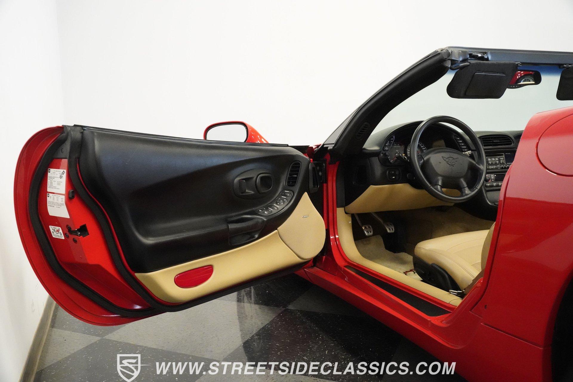 When it debuted in 1997, the C5 had the distinction of being the first Corvette designed as a convertible first, and then as a coupe. That design decision made the fifth-generation 'Vette the most structurally sound drop-top in Corvette history to date, making it feel safe and secure with or without a roof. With just 28,845 actual miles on its odometer, this 2001 Chevrolet Corvette Convertible, decked out in its original Torch Red paint, looks and feels almost new. Inside, we find a plush, two-tone Shale leather interior contrasted by sleek black trim features dual power bucket seats complete with lumbar support, separated by a beautiful center body color teardrop that displays the iconic Crossed Flags emblem. A four-spoke padded steering wheel sits in front of a six-pod analog gauge cluster, featuring a large 7,000 rpm tachometer and a matching 200 mph speedometer, each flanked by a pair of auxiliary gauges on either side. The convertible top was made for manual operation to keep weight down, but the locks, windows, and mirrors are all power-assisted. Another C5 introduced feature is the trick Heads-Up Display, allowing the driver to keep an eye on both speed and the road at the same time. The original AC Delco AM/FM/CD player is situated above the push-button dual-zone HVAC controls, allowing both the driver and passenger to easily customize the soundtrack and temperature. Underneath that signature front-hinged fiberglass hood, we find a 5.7-liter LS1 V-8 engine. One of the most advanced overhead valve engines to date, the LS1 made use of a lightweight aluminum block and heads setup, a 10.1:1 compression ratio, and a composite intake manifold to crank out an advertised 350 horsepower and 375 pound-feet of torque when equipped with a manual transmission. That transmission is a rear-mounted Tremec T56 six-speed manual transaxle that transfers power to the pavement via a limited-slip differential. A staggered set of wheels and tires measuring 17-inch polished five-spoke wheels shod in new 245/45ZR-17 Michelin Pilot Sport rubber, while a larger set of 18-inch wheels wrapped in wider 285/40ZR-18 Michelins out back to give this sports car an aggressive stance and look from any angle. HIGHLIGHTS: 28,845 Actual Miles Original Torch Red Paint Believed Original LS1 V8 Believed Original Tremec T56 Manual Top Power Windows Power Locks Power Mirrors Power Seats AC Cruise ABS Four Wheel Discs 2025 Michelin Pilot Sport Tires This 2001 Chevrolet Corvette Convertible rides on a fully independent suspension, with a set of four-wheel power disc brakes ready to scrub off speed at a moment's notice. If you missed your chance the first time around, this extremely low-mileage C5's fun factor is still a ten, thanks to its drop-top setup and tried-and-true manual transmission. The C5 was a revolutionary design that remains impressive all these years later. But don't wait because this one won't be around here long. Call today!