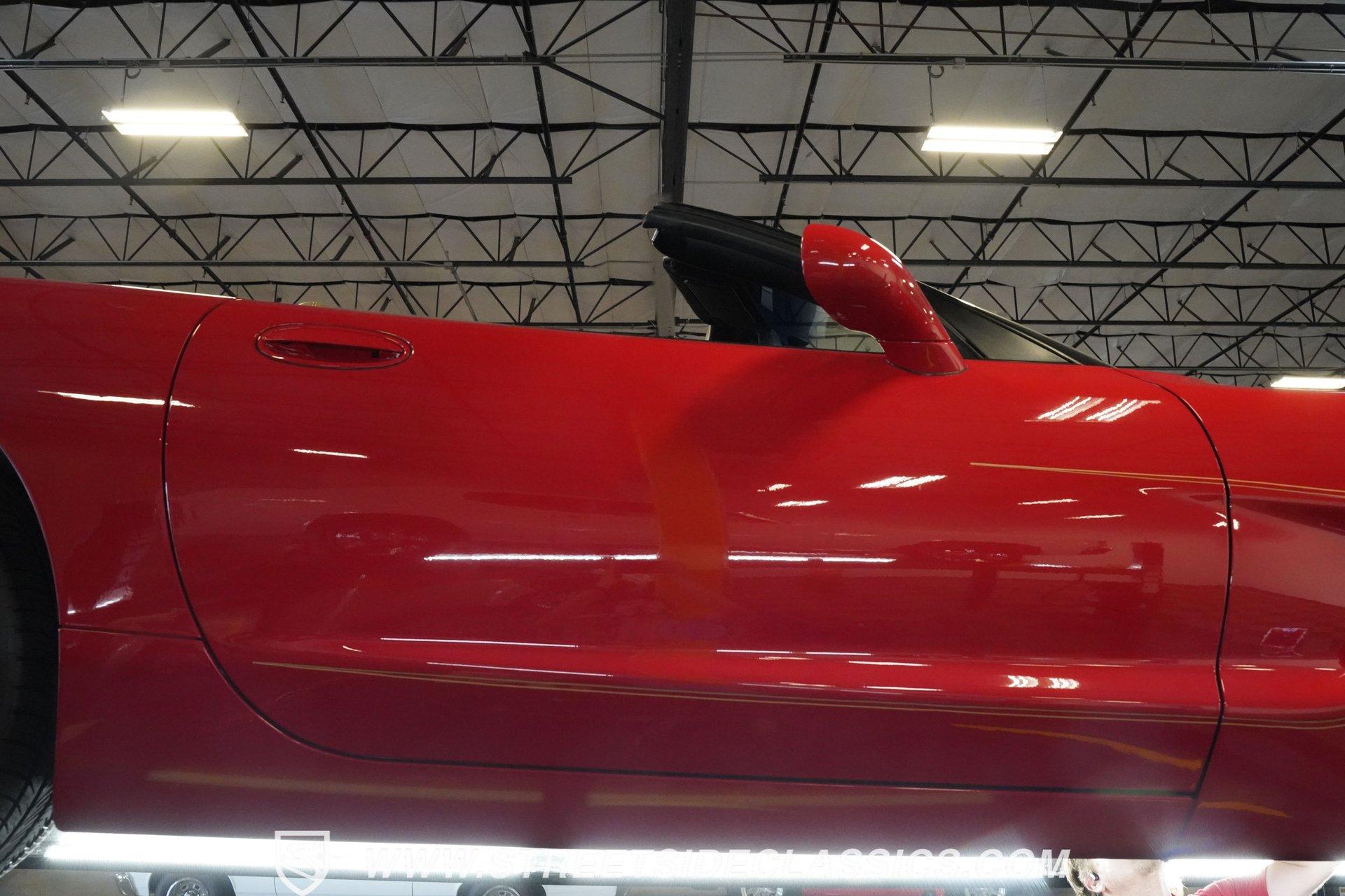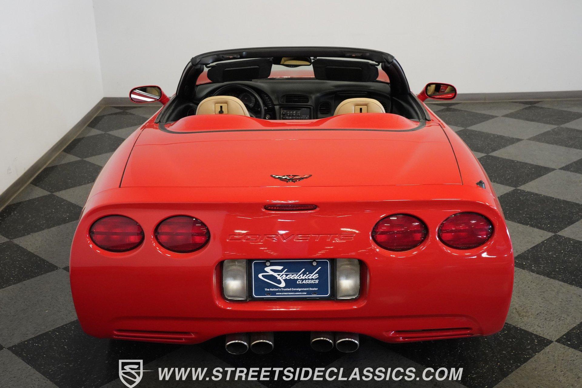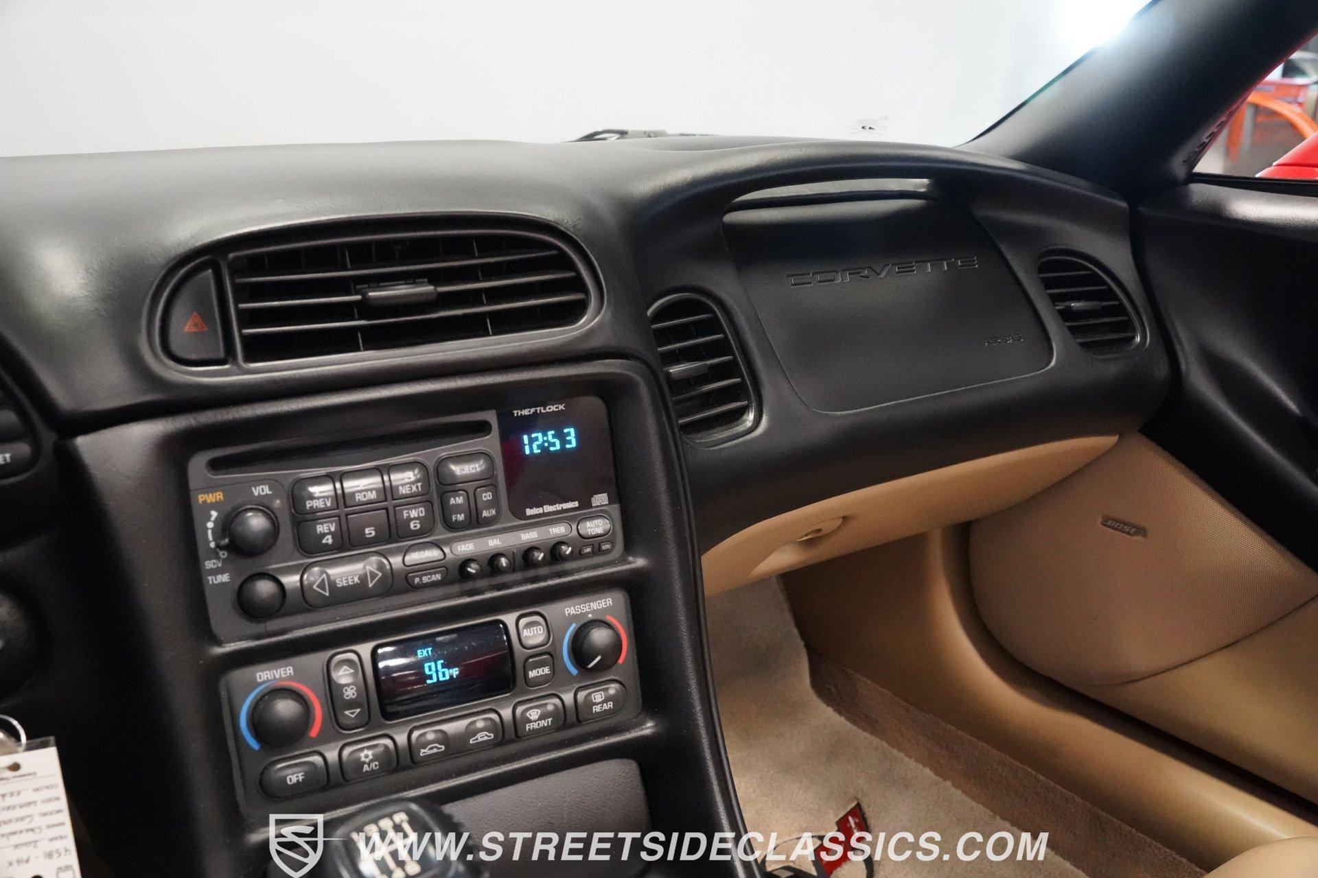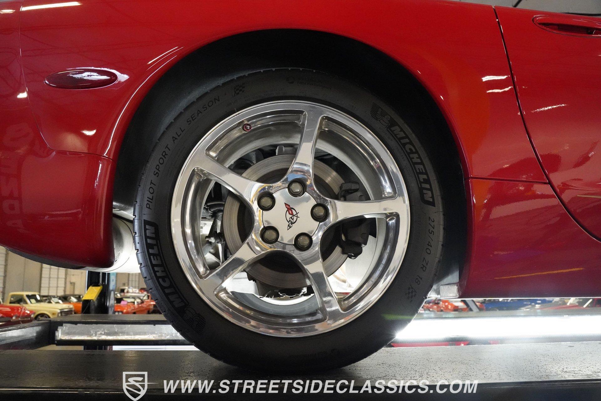 When it debuted in 1997, the C5 had the distinction of being the first Corvette designed as a convertible first, and then as a coupe. That design decision made the fifth-generation 'Vette the most structurally sound drop-top in Corvette history to date, making it feel safe and secure with or without a roof. With just 28,845 actual miles on its odometer, this 2001 Chevrolet Corvette Convertible, decked out in its original Torch Red paint, looks and feels almost new. Inside, we find a plush, two-tone Shale leather interior contrasted by sleek black trim features dual power bucket seats complete with lumbar support, separated by a beautiful center body color teardrop that displays the iconic Crossed Flags emblem. A four-spoke padded steering wheel sits in front of a six-pod analog gauge cluster, featuring a large 7,000 rpm tachometer and a matching 200 mph speedometer, each flanked by a pair of auxiliary gauges on either side. The convertible top was made for manual operation to keep weight down, but the locks, windows, and mirrors are all power-assisted. Another C5 introduced feature is the trick Heads-Up Display, allowing the driver to keep an eye on both speed and the road at the same time. The original AC Delco AM/FM/CD player is situated above the push-button dual-zone HVAC controls, allowing both the driver and passenger to easily customize the soundtrack and temperature. Underneath that signature front-hinged fiberglass hood, we find a 5.7-liter LS1 V-8 engine. One of the most advanced overhead valve engines to date, the LS1 made use of a lightweight aluminum block and heads setup, a 10.1:1 compression ratio, and a composite intake manifold to crank out an advertised 350 horsepower and 375 pound-feet of torque when equipped with a manual transmission. That transmission is a rear-mounted Tremec T56 six-speed manual transaxle that transfers power to the pavement via a limited-slip differential. A staggered set of wheels and tires measuring 17-inch polished five-spoke wheels shod in new 245/45ZR-17 Michelin Pilot Sport rubber, while a larger set of 18-inch wheels wrapped in wider 285/40ZR-18 Michelins out back to give this sports car an aggressive stance and look from any angle. HIGHLIGHTS: 28,845 Actual Miles Original Torch Red Paint Believed Original LS1 V8 Believed Original Tremec T56 Manual Top Power Windows Power Locks Power Mirrors Power Seats AC Cruise ABS Four Wheel Discs 2025 Michelin Pilot Sport Tires This 2001 Chevrolet Corvette Convertible rides on a fully independent suspension, with a set of four-wheel power disc brakes ready to scrub off speed at a moment's notice. If you missed your chance the first time around, this extremely low-mileage C5's fun factor is still a ten, thanks to its drop-top setup and tried-and-true manual transmission. The C5 was a revolutionary design that remains impressive all these years later. But don't wait because this one won't be around here long. Call today!