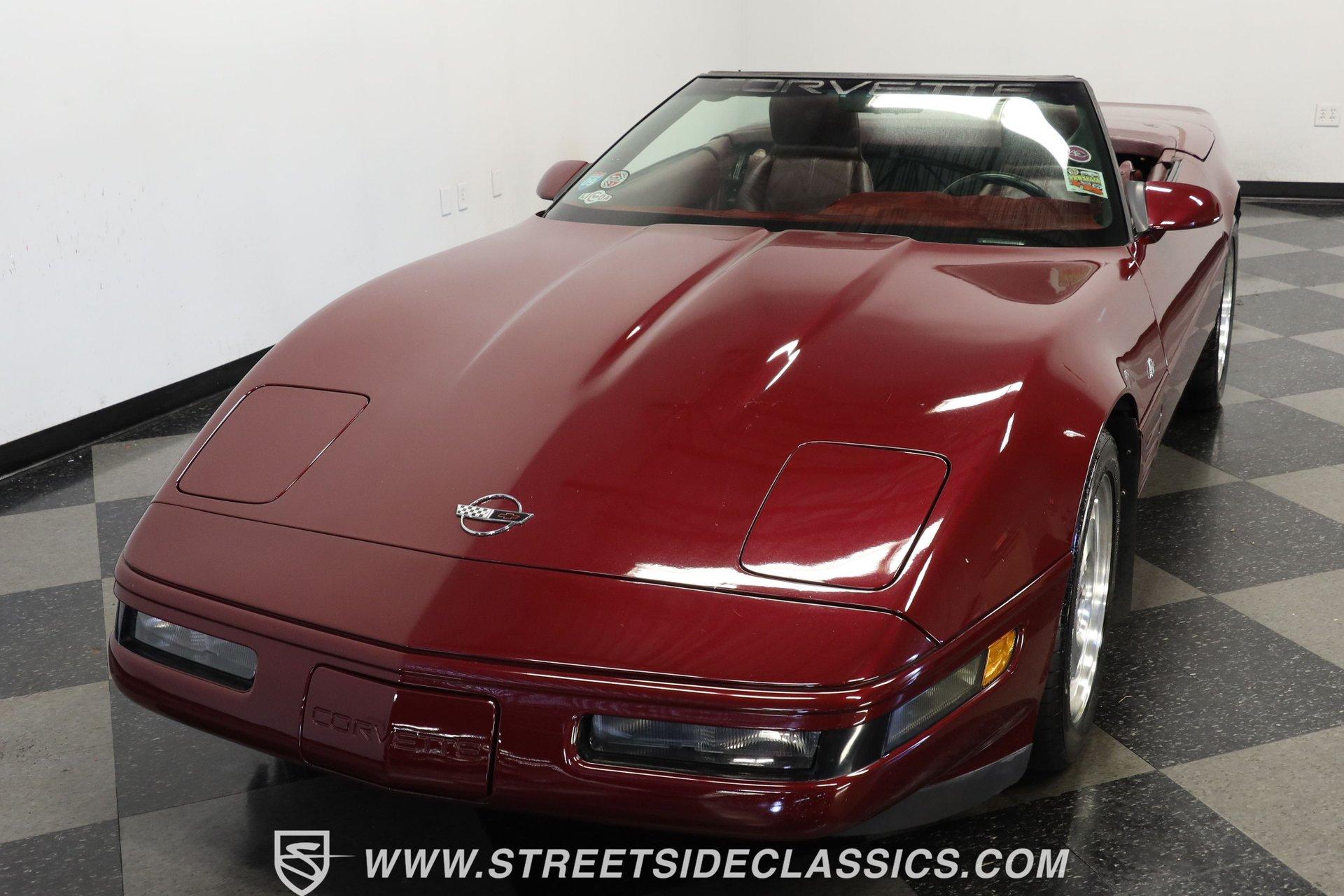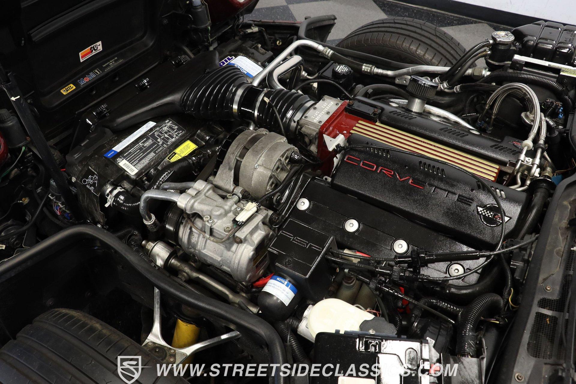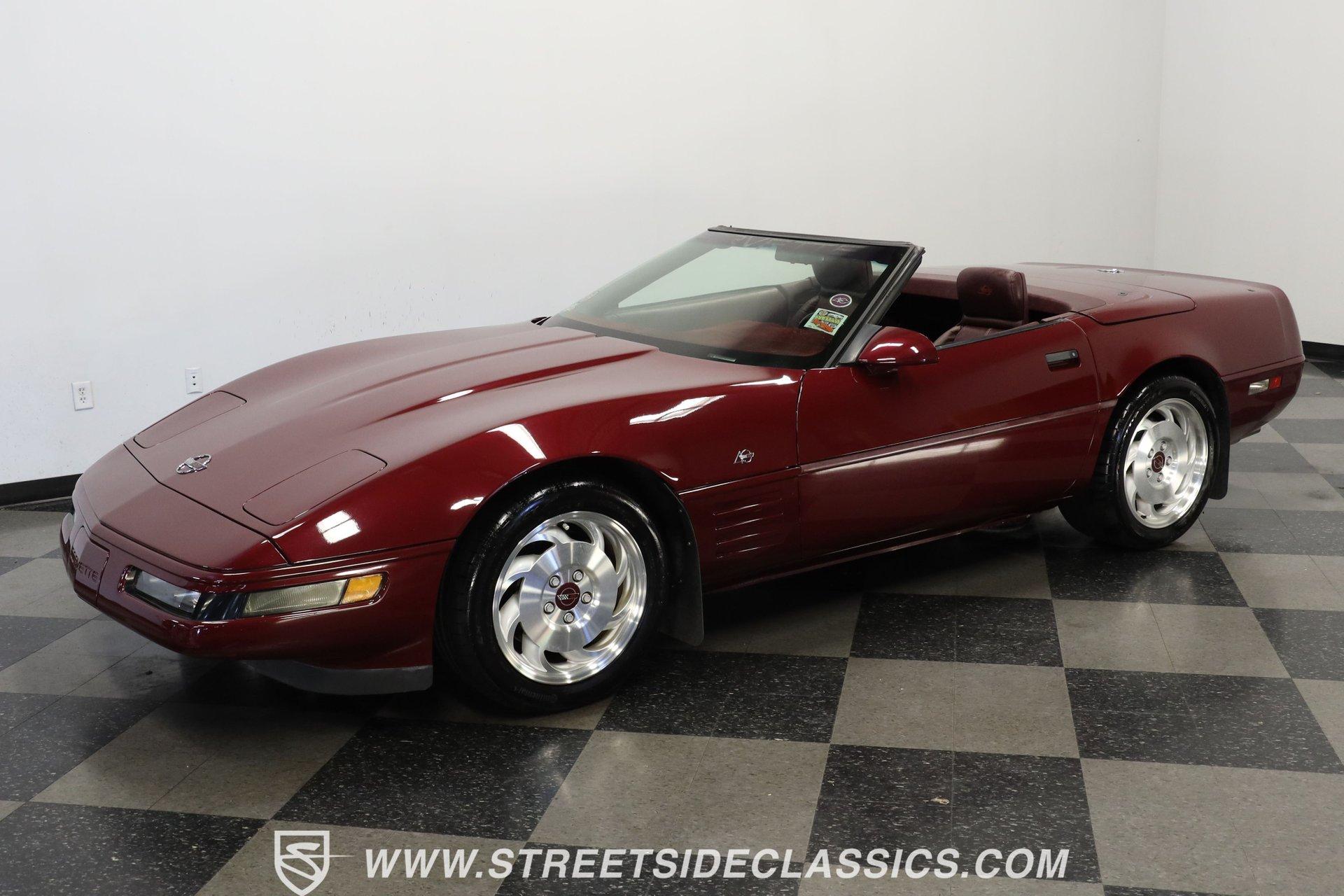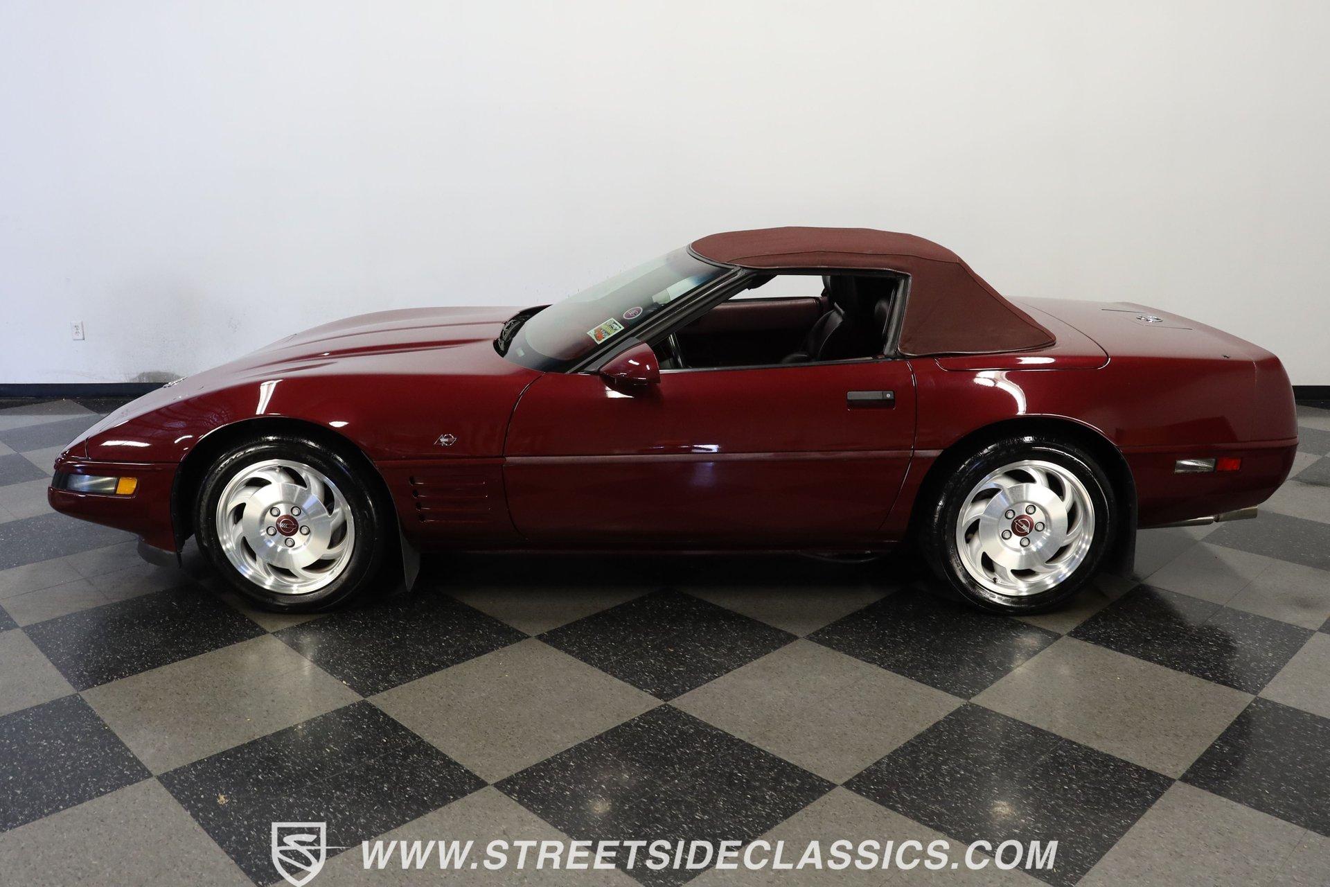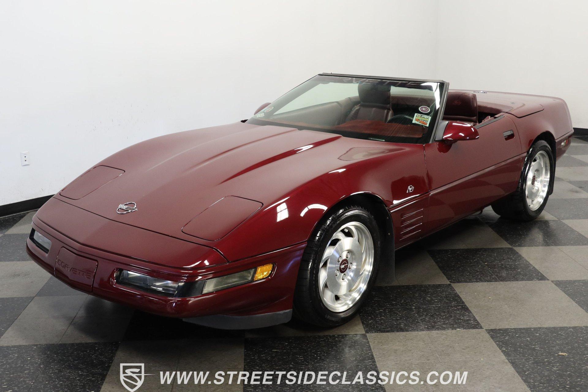 The C4 represented a paradigm shift in the world of the Crossed Flags. Spanning from 1984 to 1996, finding a well-kept example like this 1993 Chevrolet Corvette 40th Anniversary Convertible is something many of us have been searching for. With a mere 21,597 actual miles on its odometer, this Brilliant Red Metallic drop-top is one of only 2,171 Anniversary convertibles ever made to celebrate the Corvette's triumphant 40 years. Whether with its bodycolor hardtop in place or its convertible top up or down, this Corvette demands attention everywhere it goes. Hop inside and you'll be treated to a beautiful Ruby Red leather interior highlighted by a set of well-bolstered, supportive power bucket seats separated by a large and lockable center console. The four-spoke padded steering wheel sits in front of the C4's signature analog/digital dashboard. The easy-to-use HVAC control buttons remain as they were originally installed, as does the Delco Bose AM/FM/Cassette stereo system. Choose your soundtrack, while the power locks, windows, mirrors, air conditioning, and cruise control allow for all the luxury that a late-model sports car offers. Pop the signature front-hinged hood, and we find the 350 cubic-inch LT1 V-8, which, when new, pumped out a sizable 300 horsepower and 340 pound-feet of torque. However, this car has been upgraded with a set of SLP Jet Hot-coated shorty headers and a Borla cat-back exhaust, which undoubtedly increases that already substantial power peak. That modern muscle is funneled through a 700R4 four-speed automatic transmission before heading out to the rear, which the current owner tells us now houses a Dana 44 that features a set of 3.42 gears. This modification makes the car get up and go much quicker than it did with its original, taller 2.59 gear set. From there, those ponies are off to a set of 17-inch wheels shod in big 285/40ZR-17 Continental tires, while a narrower set of 255/45ZR-17s handles steering duties up front. HIGHLIGHTS: 1 of 2171 Ever Made 21,597 Actual Miles Brilliant Red Metallic Manual Soft Top Bodycolor Hardtop 5.7 Liter LT1 V8 SLP Shorty Headers Borla Cat Back 700R4 Four Speed Auto Claimed Dana 44 Rear Claimed 3.42 Gears Independent Suspension Power Brakes Four Wheel Power Discs Cross Drilled and Slotted Rotors Power Steering Power Windows Power Mirrors Power Locks Ruby Red Leather AC Cruise Owner's Manual Riding on a fully independent suspension, this 1993 Chevrolet Corvette 40th Anniversary Convertible also features four-wheel power disc brakes that have been upgraded with cross-drilled and slotted rotors, which help this 'Vette perform even more admirably when the road starts to twist and turn. If you've been looking for a rare droptop C4 in excellent condition, your search is over. Don't wait, call today! We can assist you with getting an Extended Vehicle Service Plan from Freedom Warranty, which provides comprehensive coverage that can save thousands of dollars on unexpected repairs. Inquire for more details and pricing!
