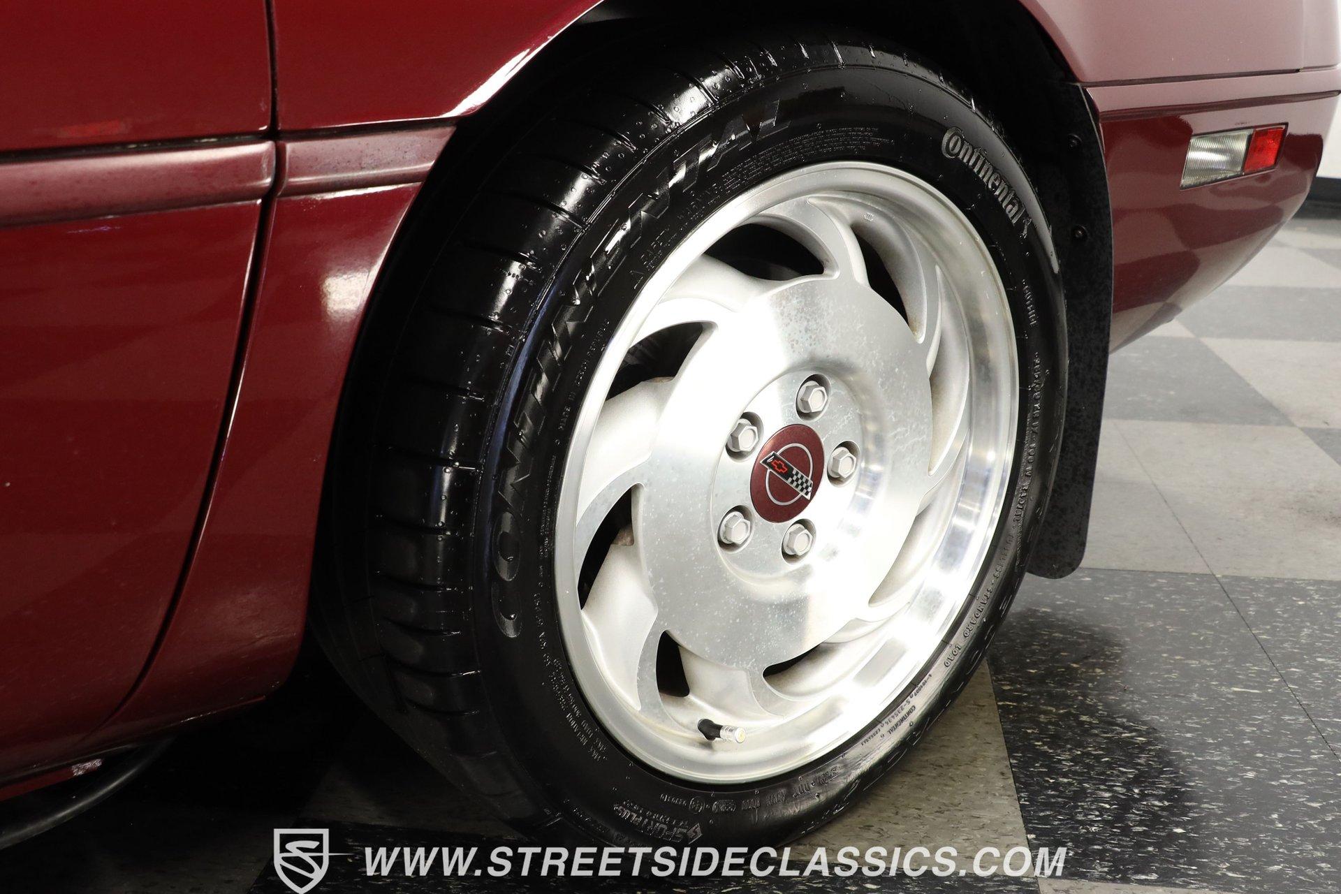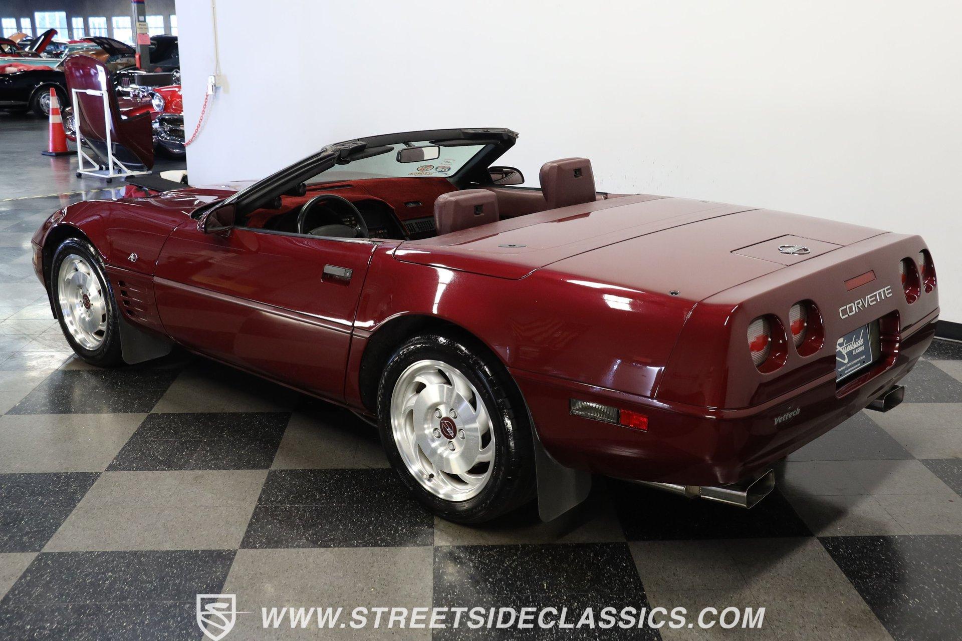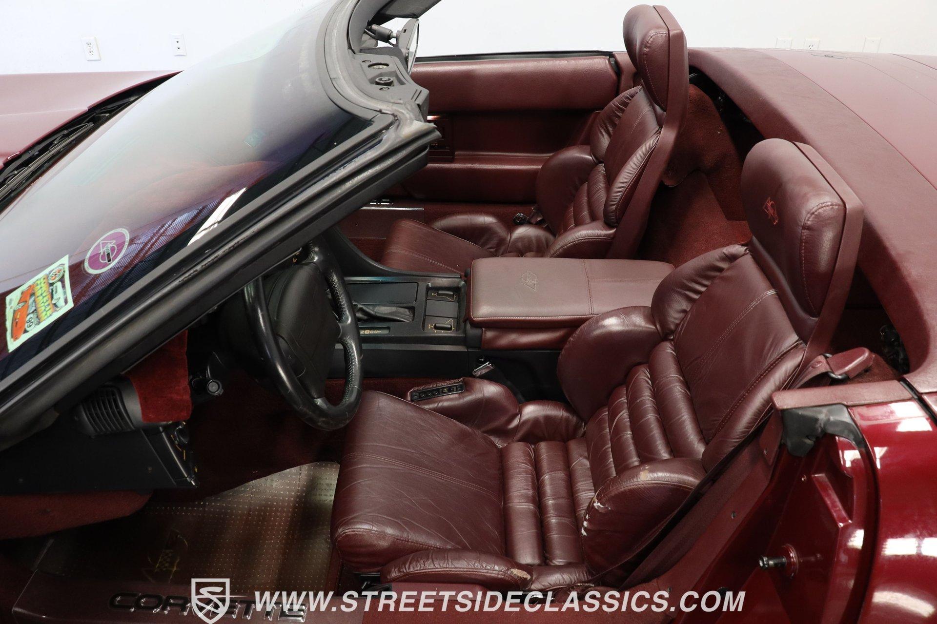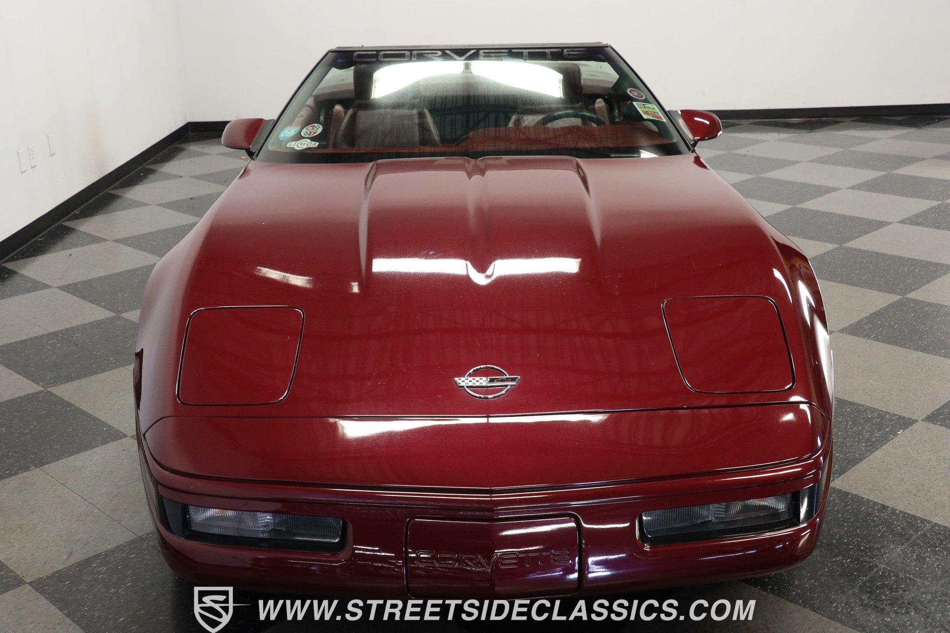 The C4 represented a paradigm shift in the world of the Crossed Flags. Spanning from 1984 to 1996, finding a well-kept example like this 1993 Chevrolet Corvette 40th Anniversary Convertible is something many of us have been searching for. With a mere 21,597 actual miles on its odometer, this Brilliant Red Metallic drop-top is one of only 2,171 Anniversary convertibles ever made to celebrate the Corvette's triumphant 40 years. Whether with its bodycolor hardtop in place or its convertible top up or down, this Corvette demands attention everywhere it goes. Hop inside and you'll be treated to a beautiful Ruby Red leather interior highlighted by a set of well-bolstered, supportive power bucket seats separated by a large and lockable center console. The four-spoke padded steering wheel sits in front of the C4's signature analog/digital dashboard. The easy-to-use HVAC control buttons remain as they were originally installed, as does the Delco Bose AM/FM/Cassette stereo system. Choose your soundtrack, while the power locks, windows, mirrors, air conditioning, and cruise control allow for all the luxury that a late-model sports car offers. Pop the signature front-hinged hood, and we find the 350 cubic-inch LT1 V-8, which, when new, pumped out a sizable 300 horsepower and 340 pound-feet of torque. However, this car has been upgraded with a set of SLP Jet Hot-coated shorty headers and a Borla cat-back exhaust, which undoubtedly increases that already substantial power peak. That modern muscle is funneled through a 700R4 four-speed automatic transmission before heading out to the rear, which the current owner tells us now houses a Dana 44 that features a set of 3.42 gears. This modification makes the car get up and go much quicker than it did with its original, taller 2.59 gear set. From there, those ponies are off to a set of 17-inch wheels shod in big 285/40ZR-17 Continental tires, while a narrower set of 255/45ZR-17s handles steering duties up front. HIGHLIGHTS: 1 of 2171 Ever Made 21,597 Actual Miles Brilliant Red Metallic Manual Soft Top Bodycolor Hardtop 5.7 Liter LT1 V8 SLP Shorty Headers Borla Cat Back 700R4 Four Speed Auto Claimed Dana 44 Rear Claimed 3.42 Gears Independent Suspension Power Brakes Four Wheel Power Discs Cross Drilled and Slotted Rotors Power Steering Power Windows Power Mirrors Power Locks Ruby Red Leather AC Cruise Owner's Manual Riding on a fully independent suspension, this 1993 Chevrolet Corvette 40th Anniversary Convertible also features four-wheel power disc brakes that have been upgraded with cross-drilled and slotted rotors, which help this 'Vette perform even more admirably when the road starts to twist and turn. If you've been looking for a rare droptop C4 in excellent condition, your search is over. Don't wait, call today! We can assist you with getting an Extended Vehicle Service Plan from Freedom Warranty, which provides comprehensive coverage that can save thousands of dollars on unexpected repairs. Inquire for more details and pricing!