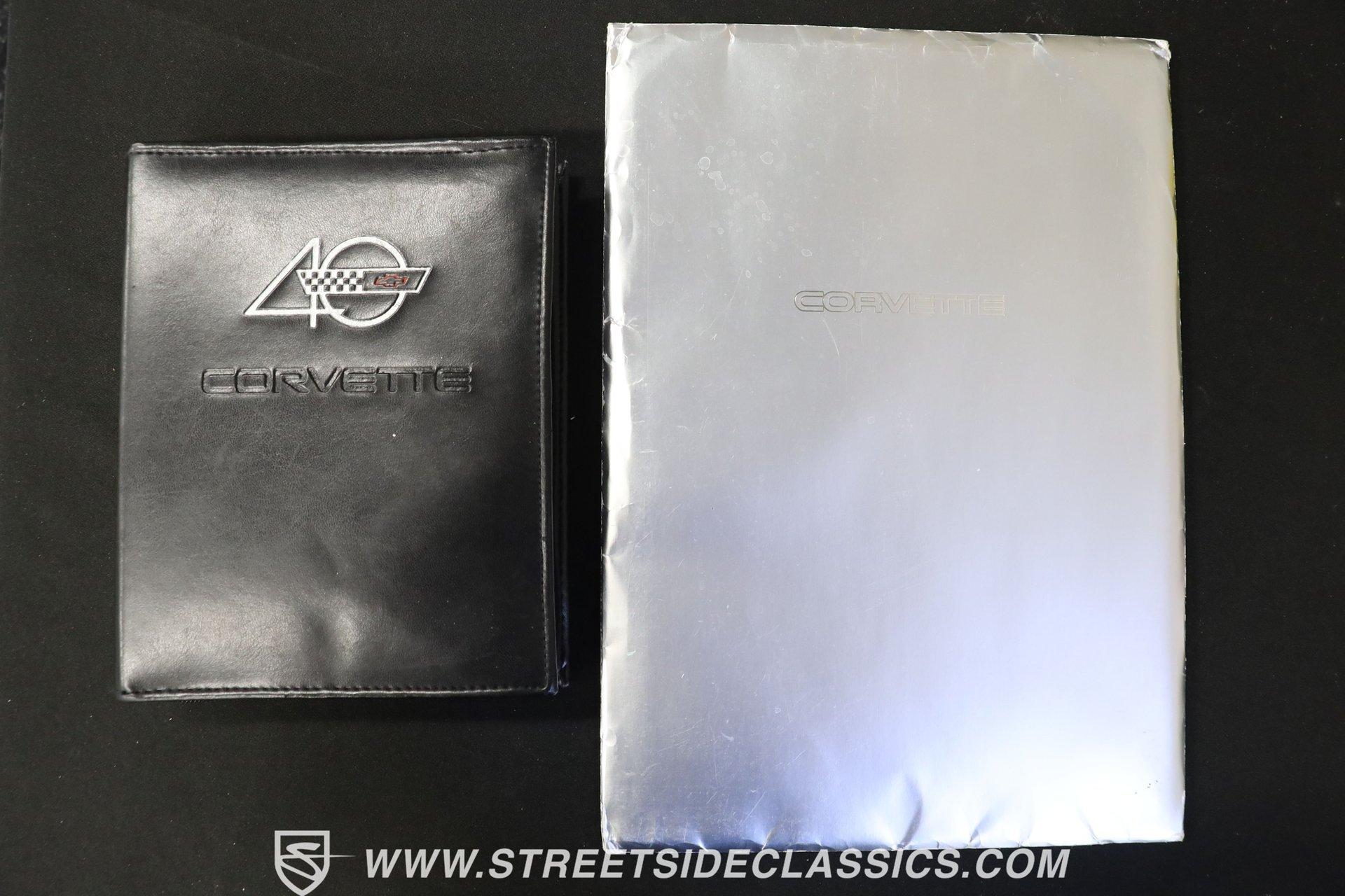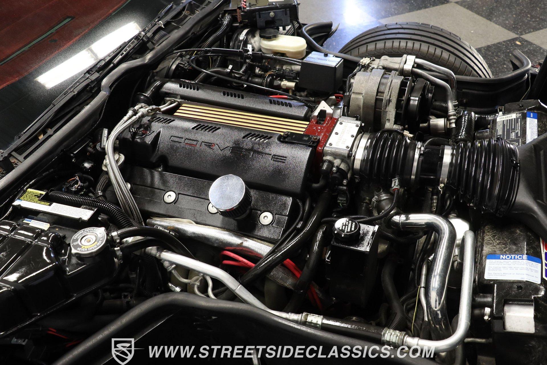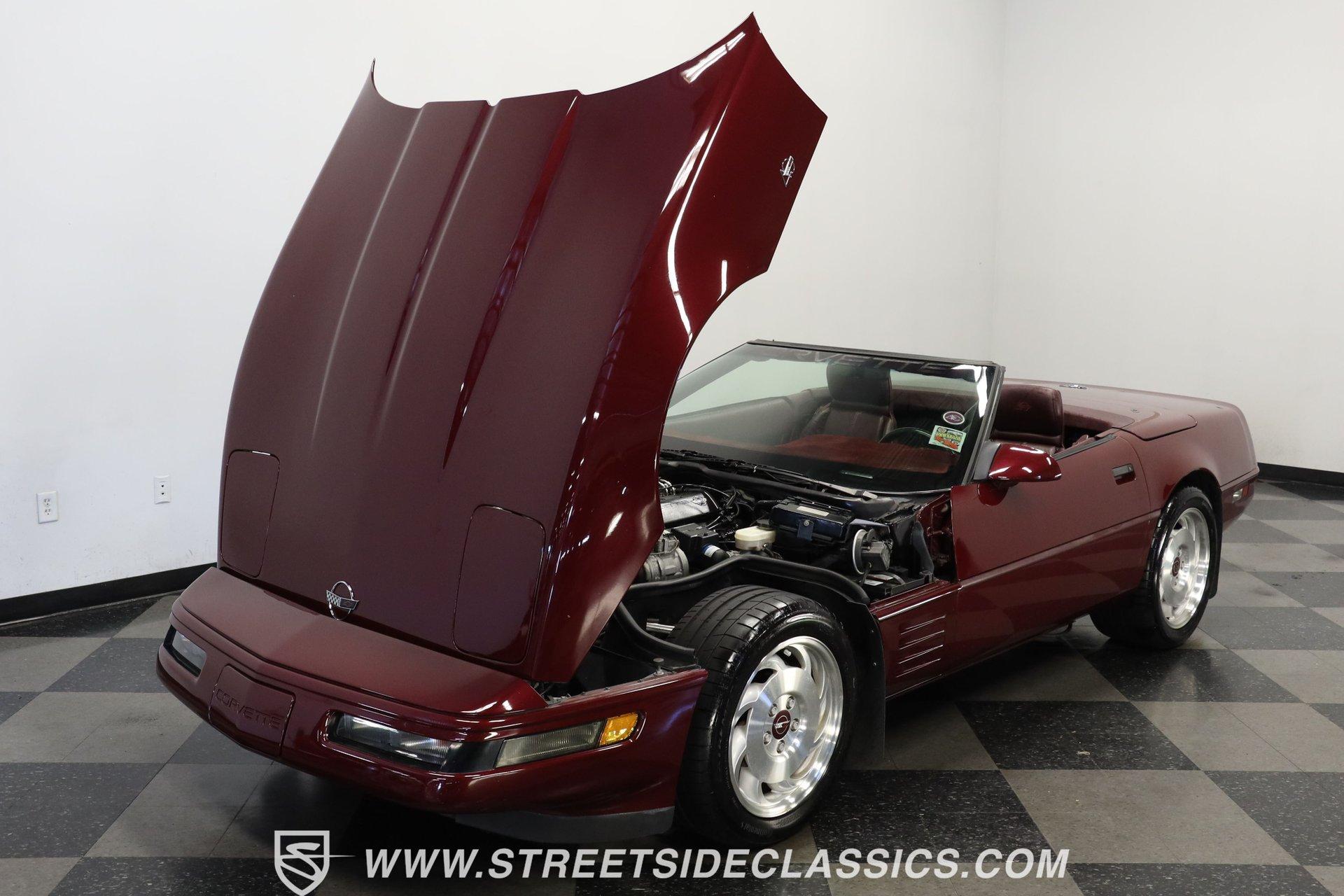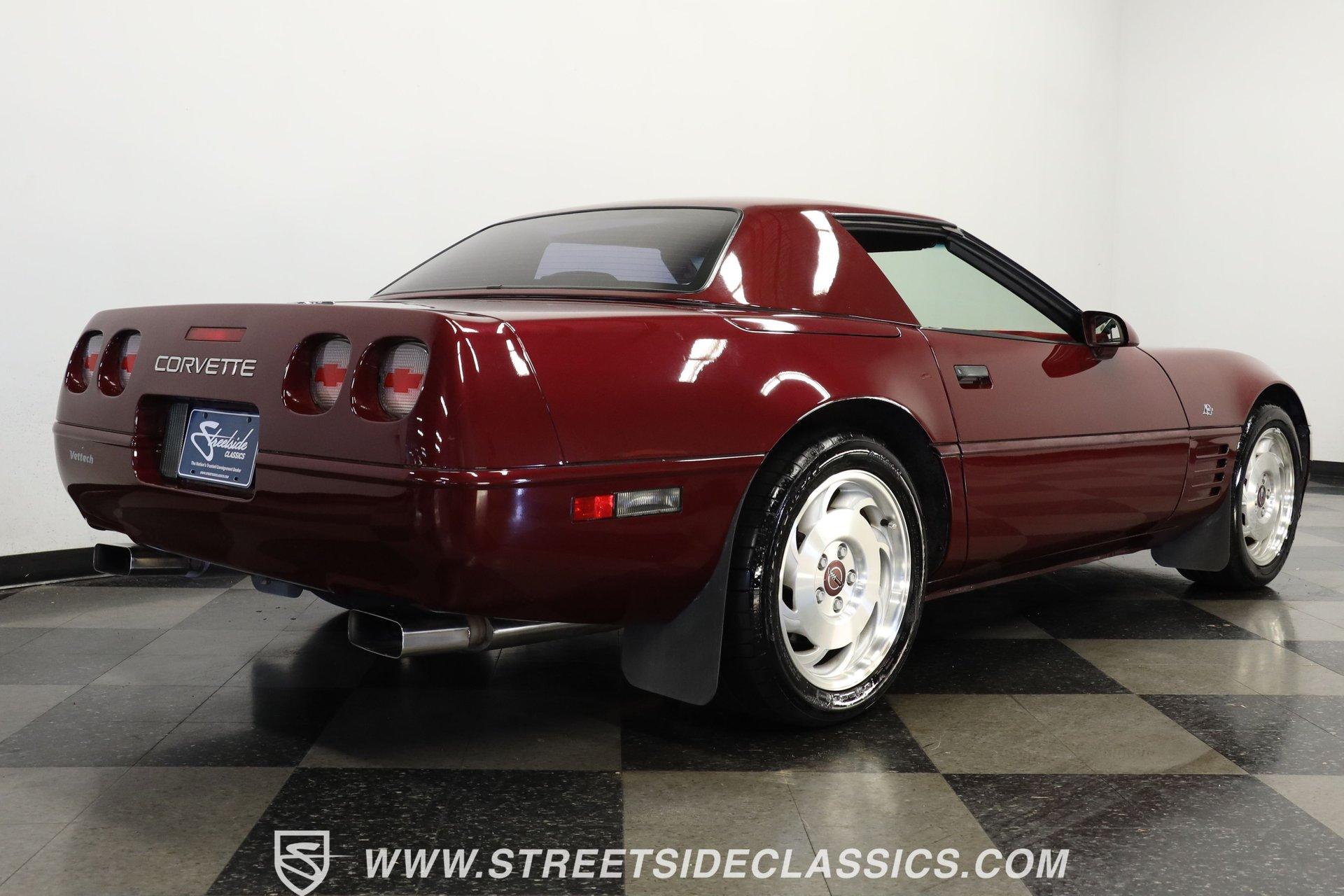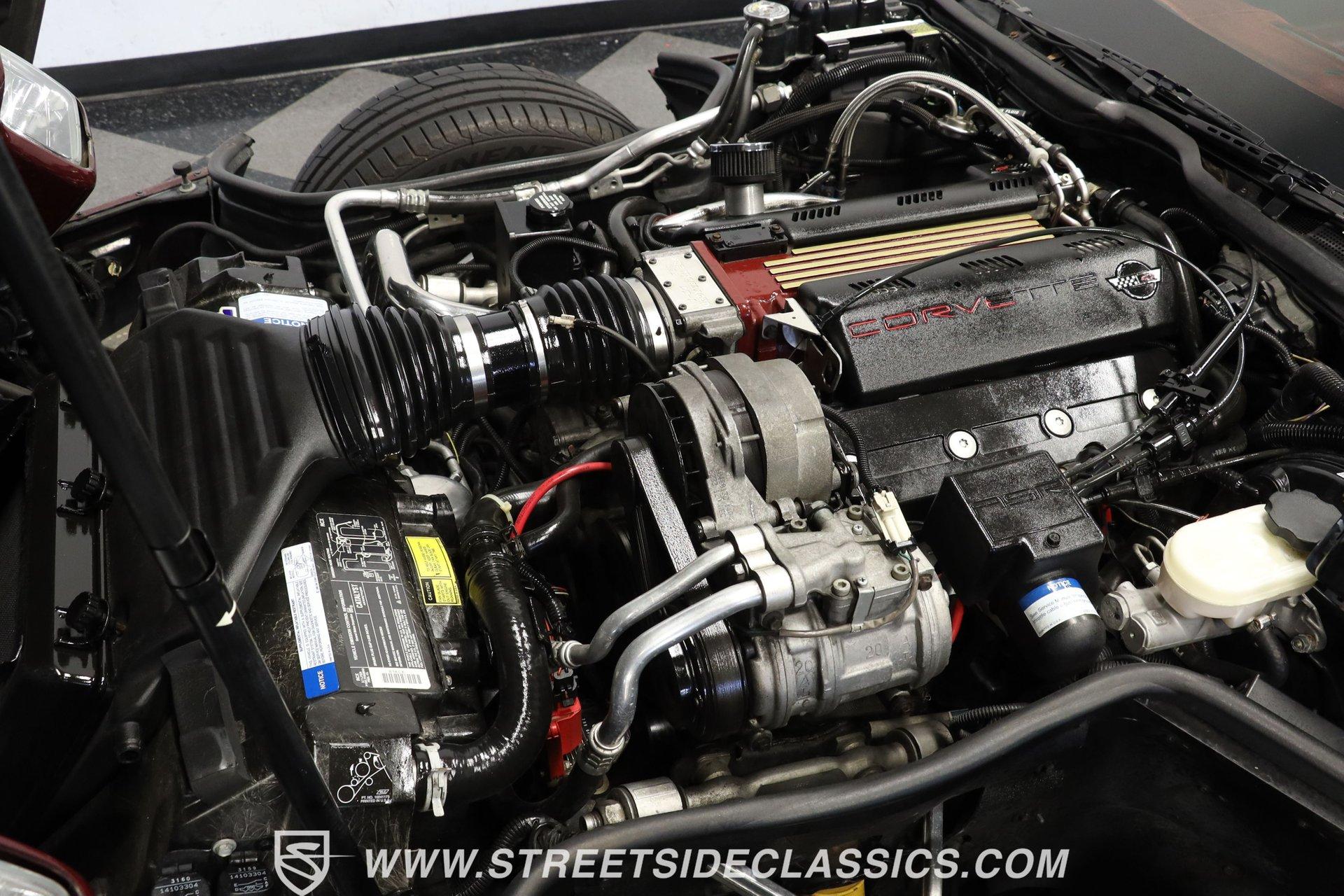 The C4 represented a paradigm shift in the world of the Crossed Flags. Spanning from 1984 to 1996, finding a well-kept example like this 1993 Chevrolet Corvette 40th Anniversary Convertible is something many of us have been searching for. With a mere 21,597 actual miles on its odometer, this Brilliant Red Metallic drop-top is one of only 2,171 Anniversary convertibles ever made to celebrate the Corvette's triumphant 40 years. Whether with its bodycolor hardtop in place or its convertible top up or down, this Corvette demands attention everywhere it goes. Hop inside and you'll be treated to a beautiful Ruby Red leather interior highlighted by a set of well-bolstered, supportive power bucket seats separated by a large and lockable center console. The four-spoke padded steering wheel sits in front of the C4's signature analog/digital dashboard. The easy-to-use HVAC control buttons remain as they were originally installed, as does the Delco Bose AM/FM/Cassette stereo system. Choose your soundtrack, while the power locks, windows, mirrors, air conditioning, and cruise control allow for all the luxury that a late-model sports car offers. Pop the signature front-hinged hood, and we find the 350 cubic-inch LT1 V-8, which, when new, pumped out a sizable 300 horsepower and 340 pound-feet of torque. However, this car has been upgraded with a set of SLP Jet Hot-coated shorty headers and a Borla cat-back exhaust, which undoubtedly increases that already substantial power peak. That modern muscle is funneled through a 700R4 four-speed automatic transmission before heading out to the rear, which the current owner tells us now houses a Dana 44 that features a set of 3.42 gears. This modification makes the car get up and go much quicker than it did with its original, taller 2.59 gear set. From there, those ponies are off to a set of 17-inch wheels shod in big 285/40ZR-17 Continental tires, while a narrower set of 255/45ZR-17s handles steering duties up front. HIGHLIGHTS: 1 of 2171 Ever Made 21,597 Actual Miles Brilliant Red Metallic Manual Soft Top Bodycolor Hardtop 5.7 Liter LT1 V8 SLP Shorty Headers Borla Cat Back 700R4 Four Speed Auto Claimed Dana 44 Rear Claimed 3.42 Gears Independent Suspension Power Brakes Four Wheel Power Discs Cross Drilled and Slotted Rotors Power Steering Power Windows Power Mirrors Power Locks Ruby Red Leather AC Cruise Owner's Manual Riding on a fully independent suspension, this 1993 Chevrolet Corvette 40th Anniversary Convertible also features four-wheel power disc brakes that have been upgraded with cross-drilled and slotted rotors, which help this 'Vette perform even more admirably when the road starts to twist and turn. If you've been looking for a rare droptop C4 in excellent condition, your search is over. Don't wait, call today! We can assist you with getting an Extended Vehicle Service Plan from Freedom Warranty, which provides comprehensive coverage that can save thousands of dollars on unexpected repairs. Inquire for more details and pricing!