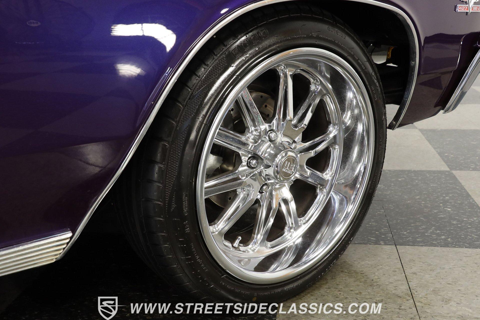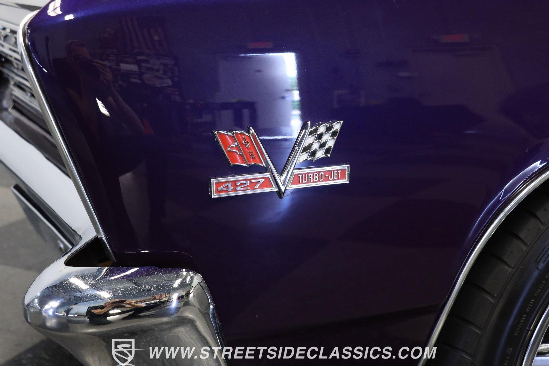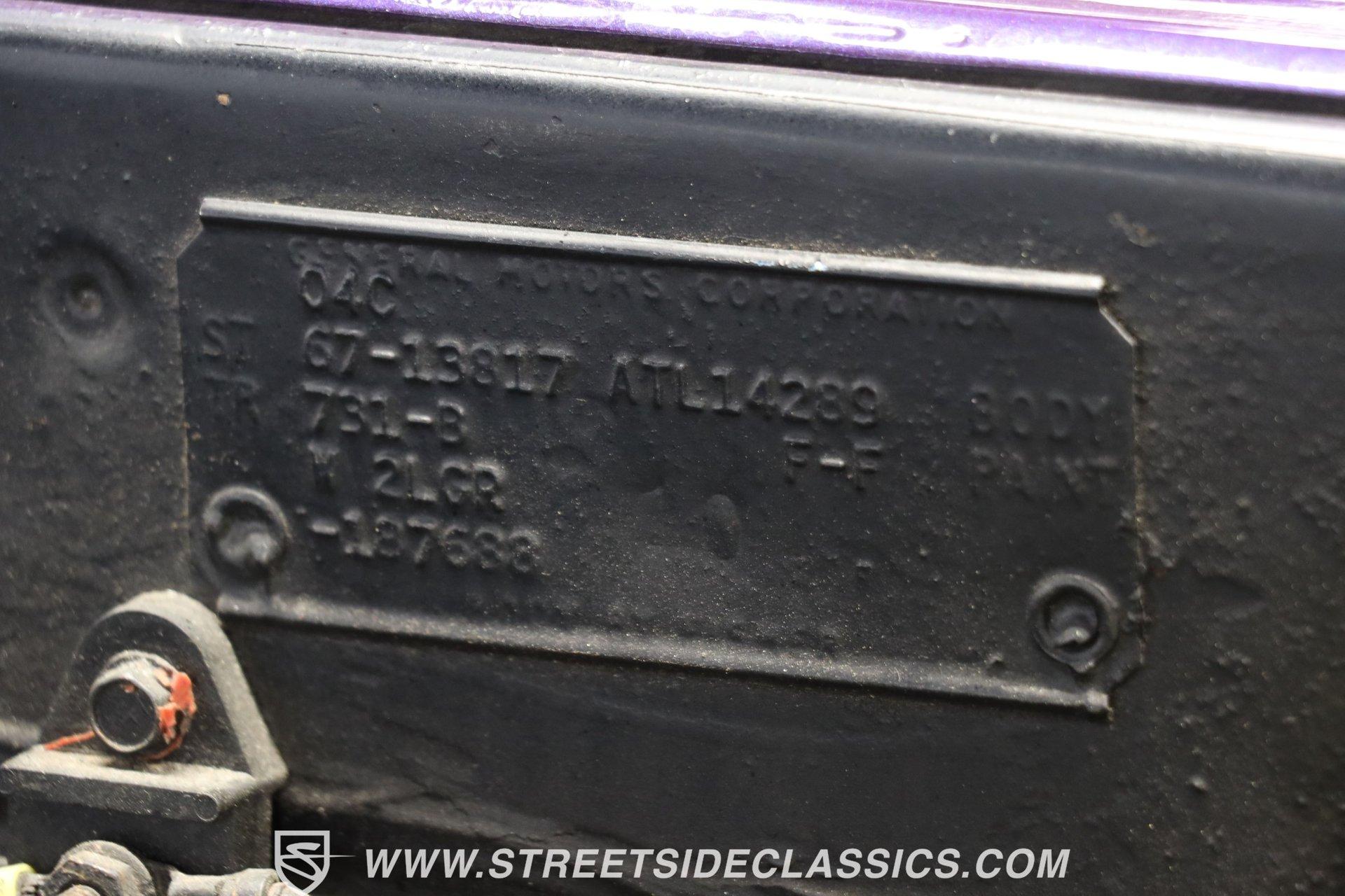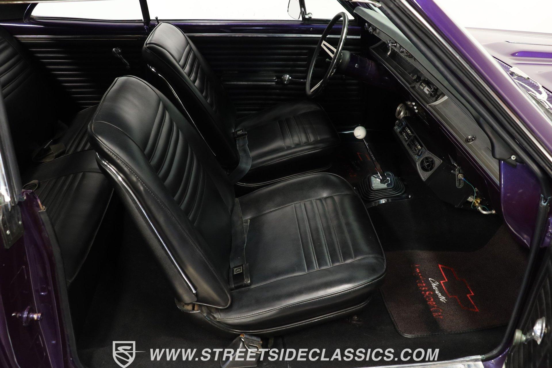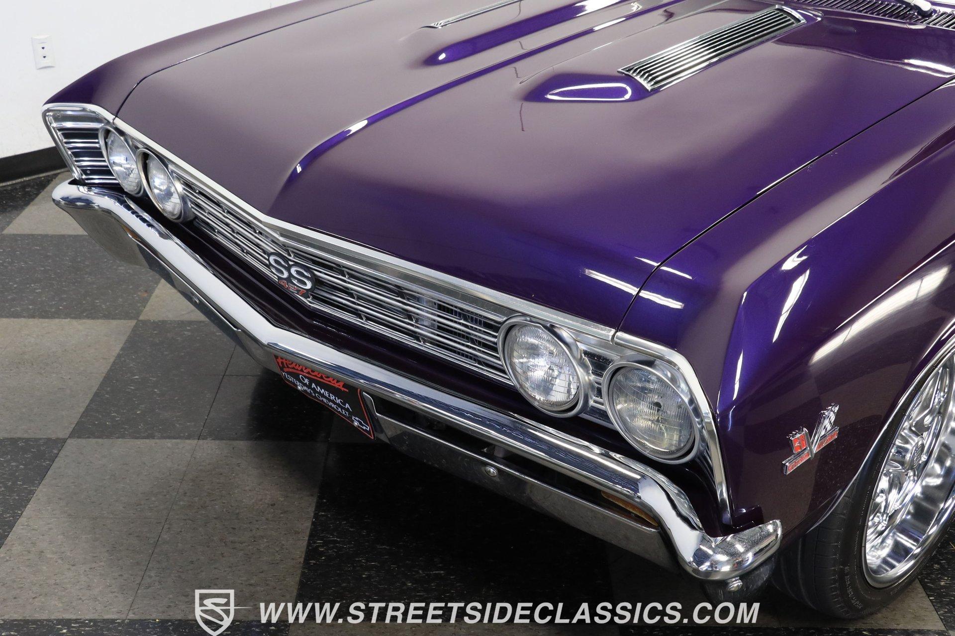 Of all the cars Chevrolet has resurrected over the years, unfortunately, the iconic Chevelle has yet to be one of them. But, on the bright side, that refusal does make cars like this 1967 Chevrolet Chevelle SS 396 even more valuable in the hearts of true enthusiasts. Fully repainted in a unique and eye-catching Purple Metallic, this SS looks subtly aggressive from any angle. Inside, a sea of black invites drivers and passengers aboard. Dual bucket seats offer a great view through the expansive windshield. Just beyond the three-spoke power-assisted steering wheel sits a horizontal 120 mph speedometer, flanked by a fuel gauge and an analog clock on either side. A pair of auxiliary gauges is mounted just below the dashboard. An AM/FM/Cassette player head unit offers more soundtrack options than the original unit it replaces, while air conditioning keeps everyone cool even on the longest of road trips. Under the hood, we find a 396 cubic-inch overhead valve V-8 engine. Equipped with an Edelbrock single 4-barrel carb and intake, long tube headers, and a FlowMaster dual exhaust, this big block routes power through a Muncie M20 four-speed manual transmission on its way to a 12-bolt rear. A set of 18-inch U.S. Mags wheels sits at all four corners, shod in modern 275/40ZR-18 rubber out back, while a narrower set of 235/45ZR-18 up front handles steering duties. HIGHLIGHTS: Real Super Sport (138 in the vin) Purple Metallic Repaint 396 CID V8 Edelbrock Four Barrel Longs Tubes FlowMasters Muncie M20 Four Speed 12 Bolt Rear US Mags Wheels Power Brakes Front Disc Brakes Power Steering Black Vinyl AC AM/FM/Cassette Seatbelts This 1967 Chevrolet Chevelle SS 396 is equipped with a solid axle suspension. Power brakes, which include a pair of front discs, are ready to scrub off speed whenever needed. So, while we will continue to lobby GM to bring back a modern-day Chevelle until they decide to come to reason, we will have to make do with incredible cars like this 1967 Chevrolet Chevelle SS 396 ... and maybe that's not so bad after all. Call today! We can assist you with getting an Extended Vehicle Service Plan from Freedom Warranty, which provides comprehensive coverage that can save thousands of dollars on unexpected repairs. Inquire for more details and pricing!
