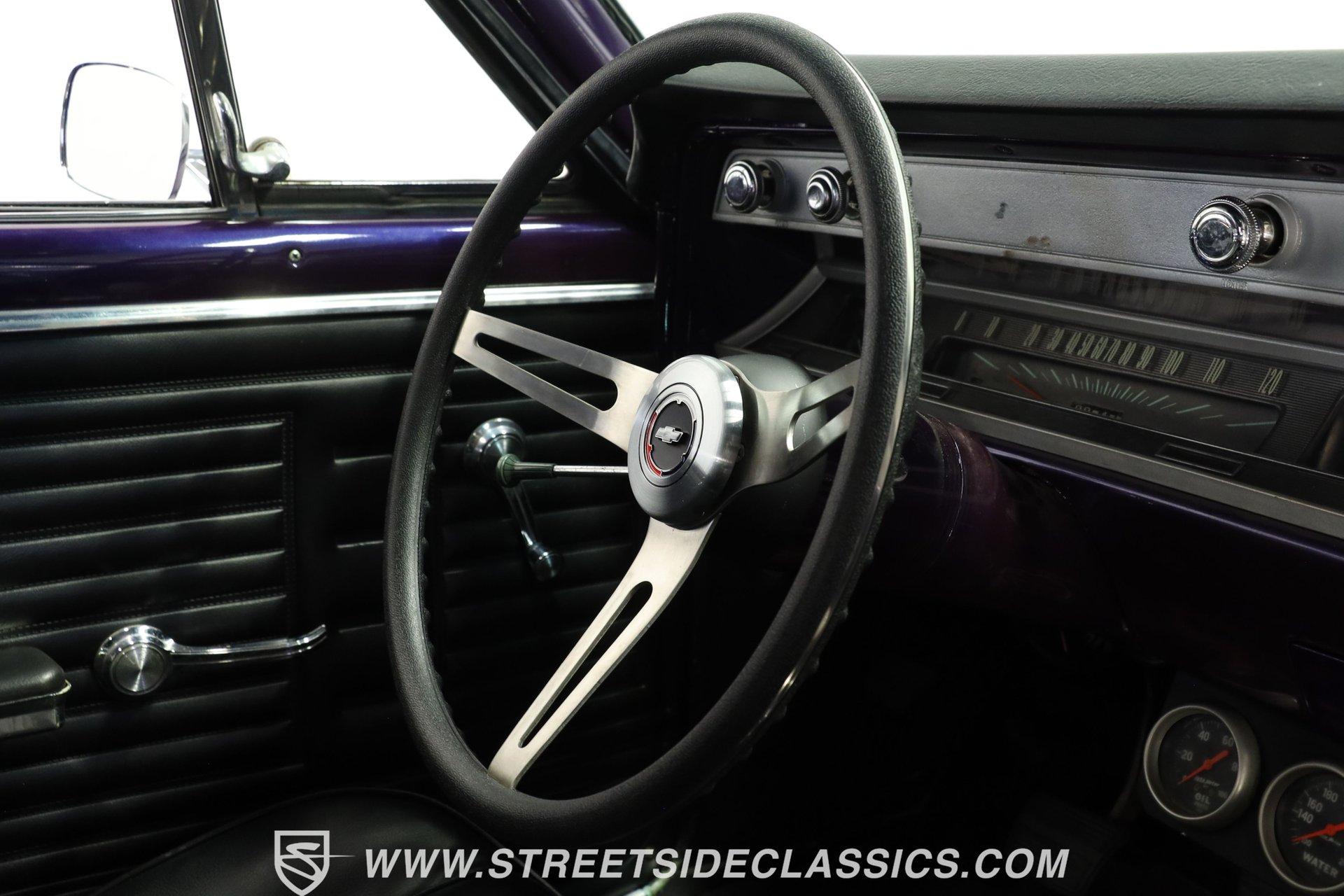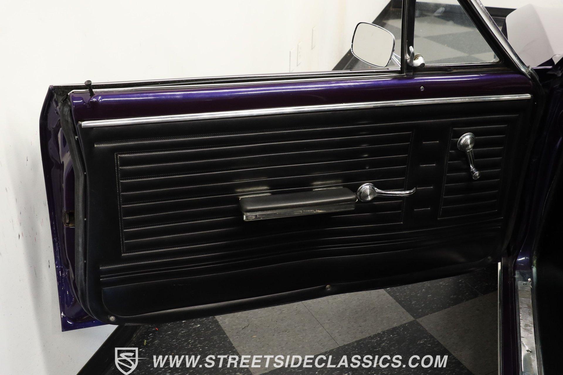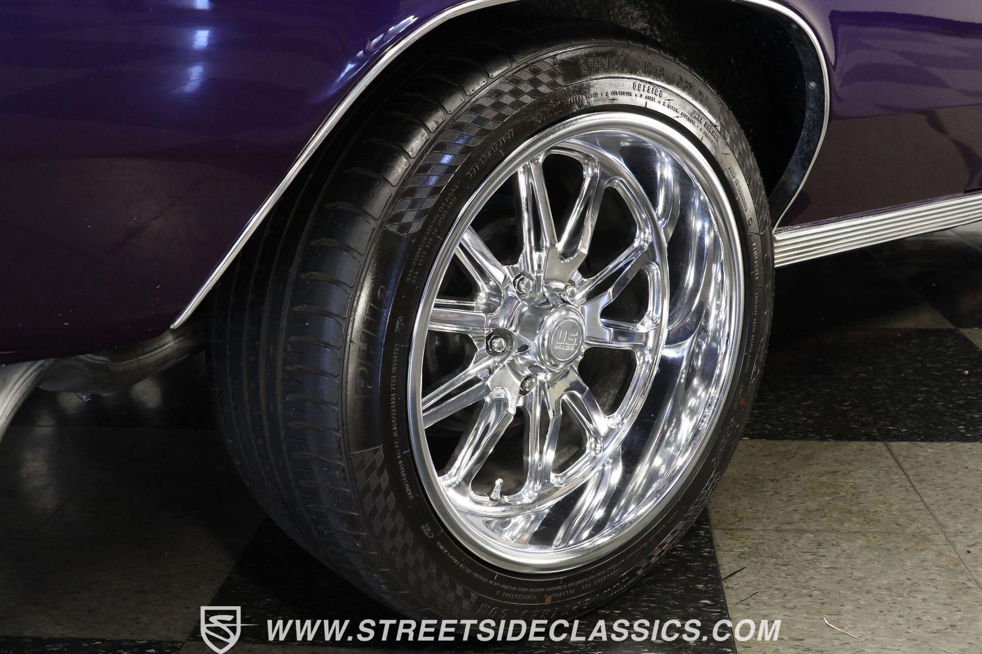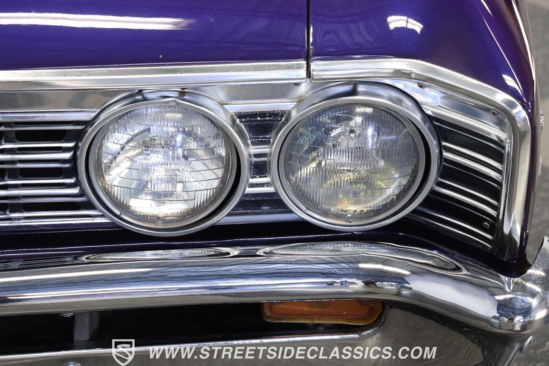Of all the cars Chevrolet has resurrected over the years, unfortunately, the iconic Chevelle has yet to be one of them. But, on the bright side, that refusal does make cars like this 1967 Chevrolet Chevelle SS 396 even more valuable in the hearts of true enthusiasts. Fully repainted in a unique and eye-catching Purple Metallic, this SS looks subtly aggressive from any angle. Inside, a sea of black invites drivers and passengers aboard. Dual bucket seats offer a great view through the expansive windshield. Just beyond the three-spoke power-assisted steering wheel sits a horizontal 120 mph speedometer, flanked by a fuel gauge and an analog clock on either side. A pair of auxiliary gauges is mounted just below the dashboard. An AM/FM/Cassette player head unit offers more soundtrack options than the original unit it replaces, while air conditioning keeps everyone cool even on the longest of road trips. Under the hood, we find a 396 cubic-inch overhead valve V-8 engine. Equipped with an Edelbrock single 4-barrel carb and intake, long tube headers, and a FlowMaster dual exhaust, this big block routes power through a Muncie M20 four-speed manual transmission on its way to a 12-bolt rear. A set of 18-inch U.S. Mags wheels sits at all four corners, shod in modern 275/40ZR-18 rubber out back, while a narrower set of 235/45ZR-18 up front handles steering duties. HIGHLIGHTS: Real Super Sport (138 in the vin) Purple Metallic Repaint 396 CID V8 Edelbrock Four Barrel Longs Tubes FlowMasters Muncie M20 Four Speed 12 Bolt Rear US Mags Wheels Power Brakes Front Disc Brakes Power Steering Black Vinyl AC AM/FM/Cassette Seatbelts This 1967 Chevrolet Chevelle SS 396 is equipped with a solid axle suspension. Power brakes, which include a pair of front discs, are ready to scrub off speed whenever needed. So, while we will continue to lobby GM to bring back a modern-day Chevelle until they decide to come to reason, we will have to make do with incredible cars like this 1967 Chevrolet Chevelle SS 396 ... and maybe that's not so bad after all. Call today! We can assist you with getting an Extended Vehicle Service Plan from Freedom Warranty, which provides comprehensive coverage that can save thousands of dollars on unexpected repairs. Inquire for more details and pricing!