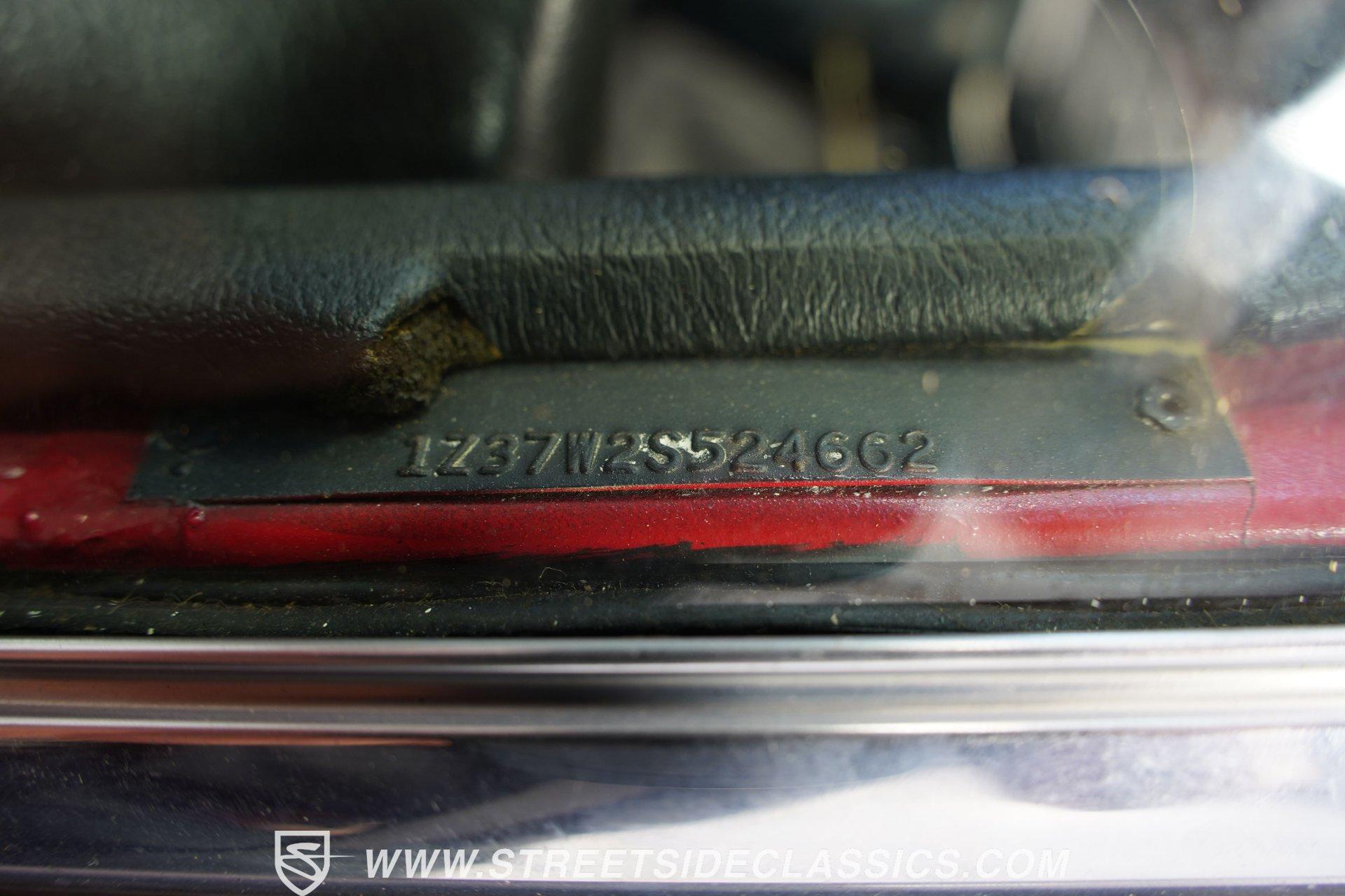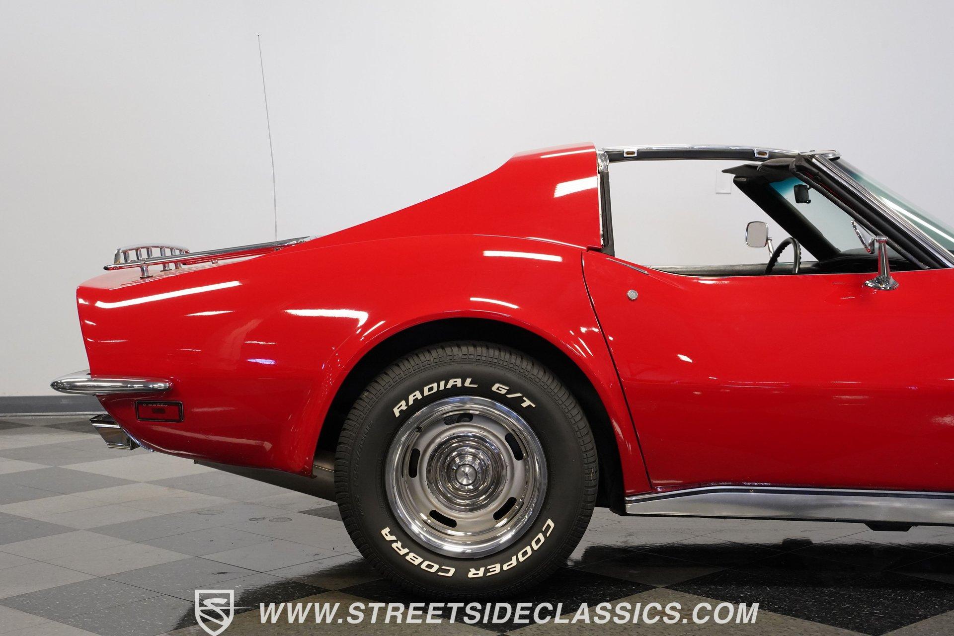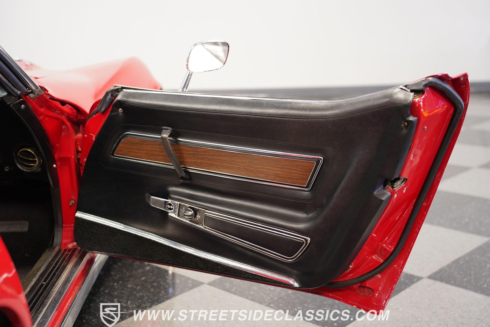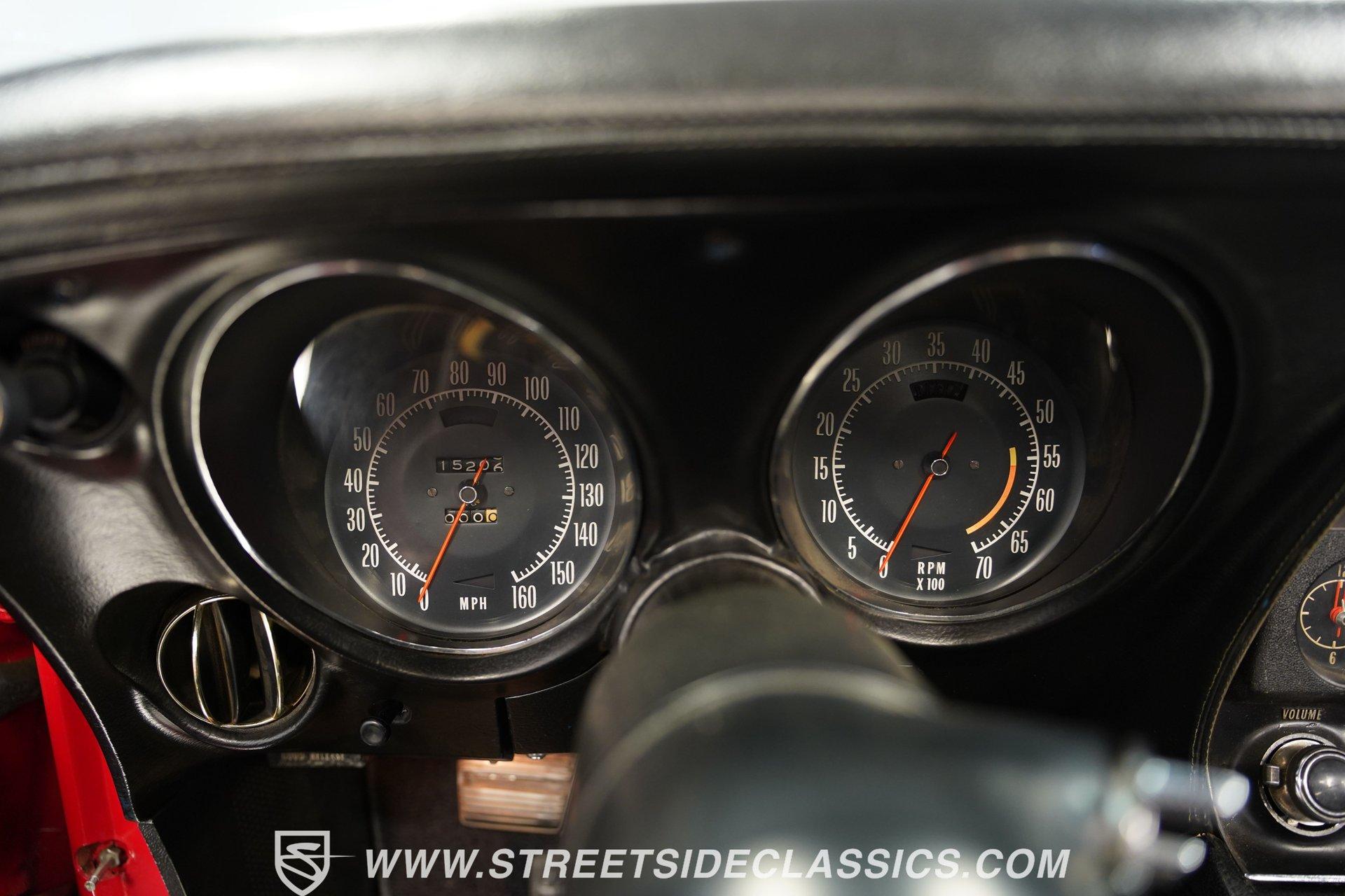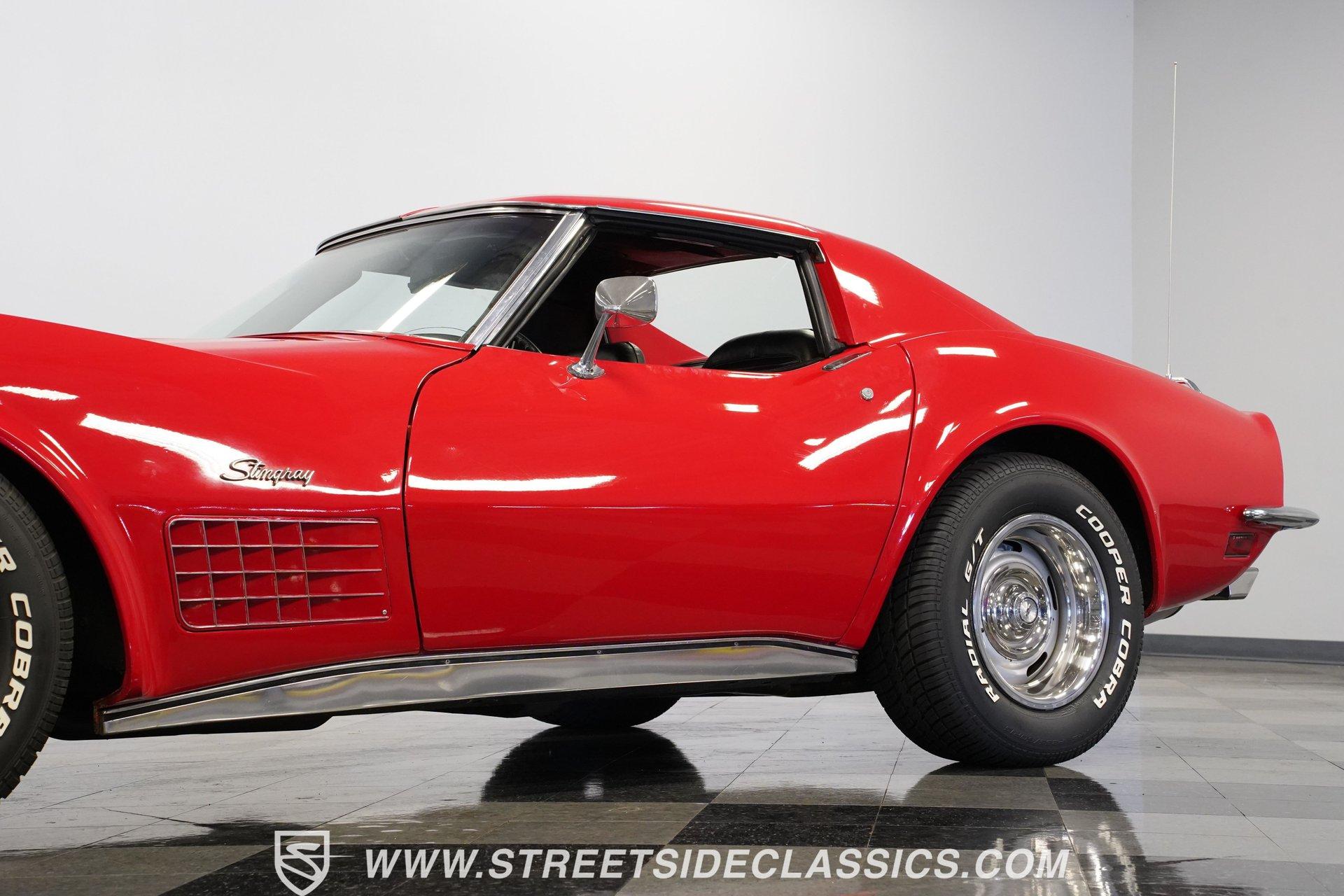 Owning a Corvette is like being part of no other vehicle lineage in the world. America's longest-running model, Chevy's halo car is now in its eighth generation, and with each passing year, more of its previous seven iterations become more collectible. The C3, exemplified by this 1972 Chevrolet Corvette LS5 454 Stingray we have for you, has been slowly gaining popularity in the hearts and minds of collectors and enthusiasts over the last several years. Fully repainted in this impossible-to-miss Mille Miglia-inspired red, this numbers-matching big block is one of just 3,913 made for the final year of the iconic LS5 V-8. Inside and beneath those versatile T-Tops, a black vinyl interior envelops you in a cockpit of gauges. The speedometer and tachometer sit front and center, while atop the center stack, we find fuel, water temperature, oil pressure, battery charge, and even an analog clock display all the pertinent information you might need or want. An original-looking AM/FM stereo handles soundtrack duties. However, you'd be hard-pressed to try and drown out the sound of that massive numbers-matching 454 cubic-inch V-8 sitting under this 'Vette's signature front-hinged hood. Rebuilt and upgraded with a single four-barrel Holley carburetor. From the factory, the stock LS5 was the biggest block made with hydraulic lifters, and even with emissions regulations beginning to take hold, this V-8 still managed to produce an advertised and impressive SAE net (versus the 1971 gross) 270 horsepower and 390 pound-feet of torque. That power is then funneled through a numbers-matching four-speed manual transmission before being sent out to its standard-issue Posi rear end. HIGHLIGHTS: Numbers Matching LS5 454 V8 Numbers Matching Four Speed Manual One of 3,913 LS5's Produced T-Tops Dual Exhaust Independent Suspension Power Four Wheel Power Discs Air Conditioning Power Steering This 1972 Chevrolet Corvette LS5 454 Stingray features a four-wheel independent suspension. Fifteen-inch Rallye wheels are shod in P255/60R-15 Cooper Cobra Radial G/T tires, while four-wheel power disc brakes wait to scrub off speed whenever called upon. If you've never owned a 'Vette before, this numbers-matching LS5 big block will make for an excellent introduction to America's longest-running car club. Call today!