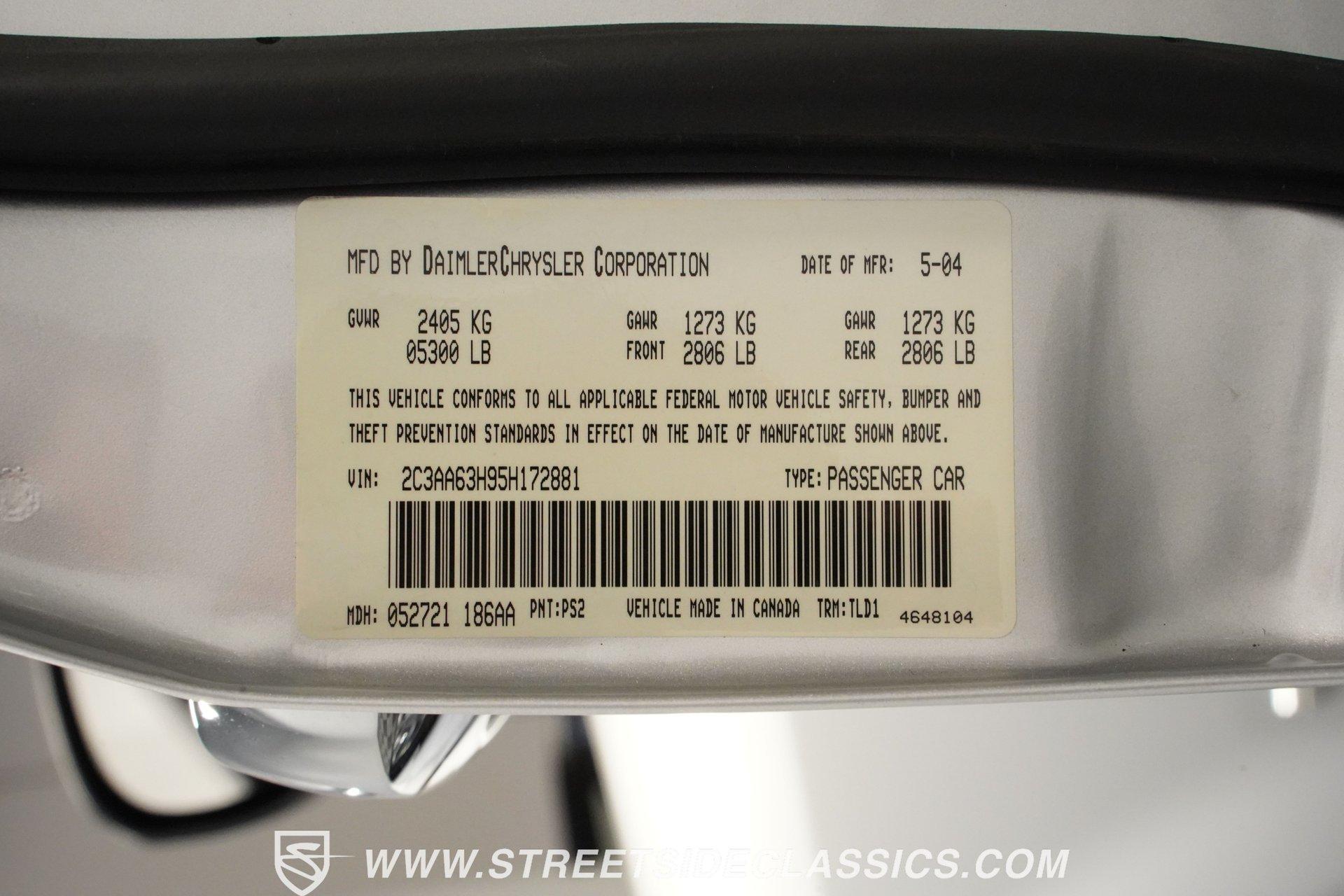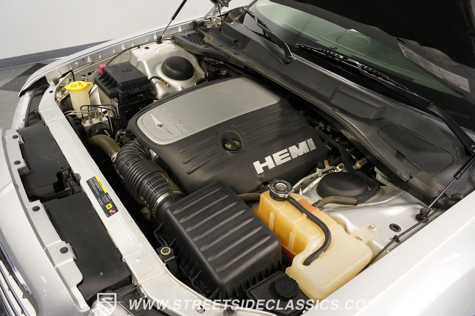There is something quietly bold about a great sedan that combines presence with purpose. Owning this car is about the statement it makes at stoplights and the confidence it offers on long highway runs. It invites weekend drives, evening arrivals, and memories made behind a commanding wheel. If you have been looking for a well maintained example that represents the beginning of the 300C era, this 2005 Chrysler 300C with a 5.7L HEMI and 56,722 miles deserves a closer look. Step inside and you will find an inviting cabin that balances comfort and technology. The factory leather seating and power adjustments provide a comfortable driving position, while the factory touchscreen with navigation and Bluetooth connectivity brings modern convenience. The dash retains its original appearance and controls are thoughtfully arranged, making daily driving and longer trips an easy, composed experience. Under the hood sits the 5.7 liter HEMI V8 paired with a 5 speed automatic transmission, offering confident acceleration and highway cruising. Electronic fuel injection and a dual exhaust contribute to the engine's strong character and sound. Braking and steering systems preserve the factory feel, and the suspension delivers a smooth, composed ride through city streets and on open roads. The engine bay presents clean and well cared for, matching the car's ready to drive nature. Highlights Mileage: 56,722 miles First model year Chrysler 300C Engine: 5.7L HEMI V8 5-speed automatic Dual exhaust 18 inch wheels Tires: P225/60R18 Four wheel power disc brakes Independent multi-link rear suspension Factory touchscreen with navigation Bluetooth connectivity Power steering and brakes Maintenance records included This 300C blends modern V8 performance with classic American sedan presence, making it a versatile and appealing choice. If you want to experience its confident ride and HEMI power in person, call today!