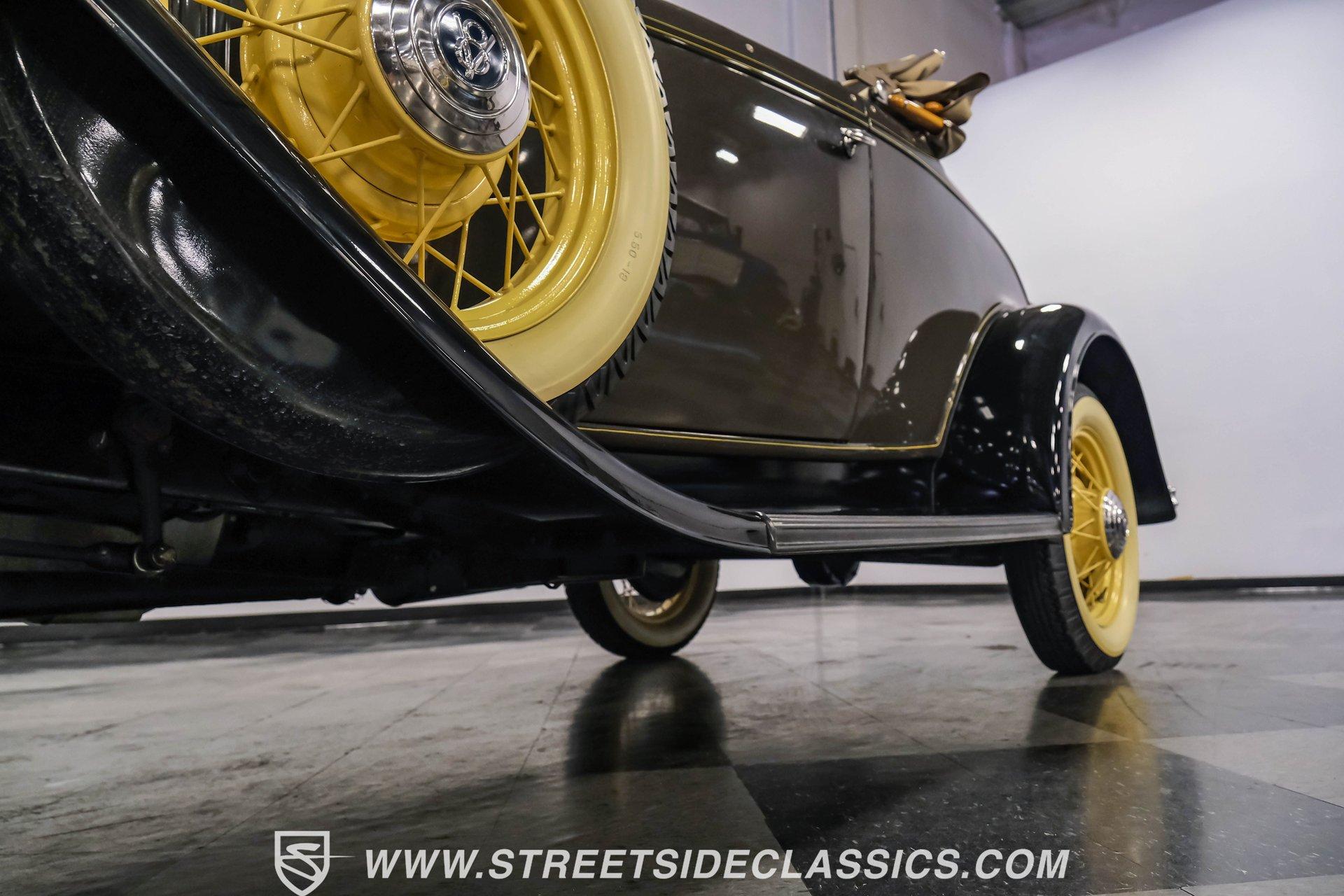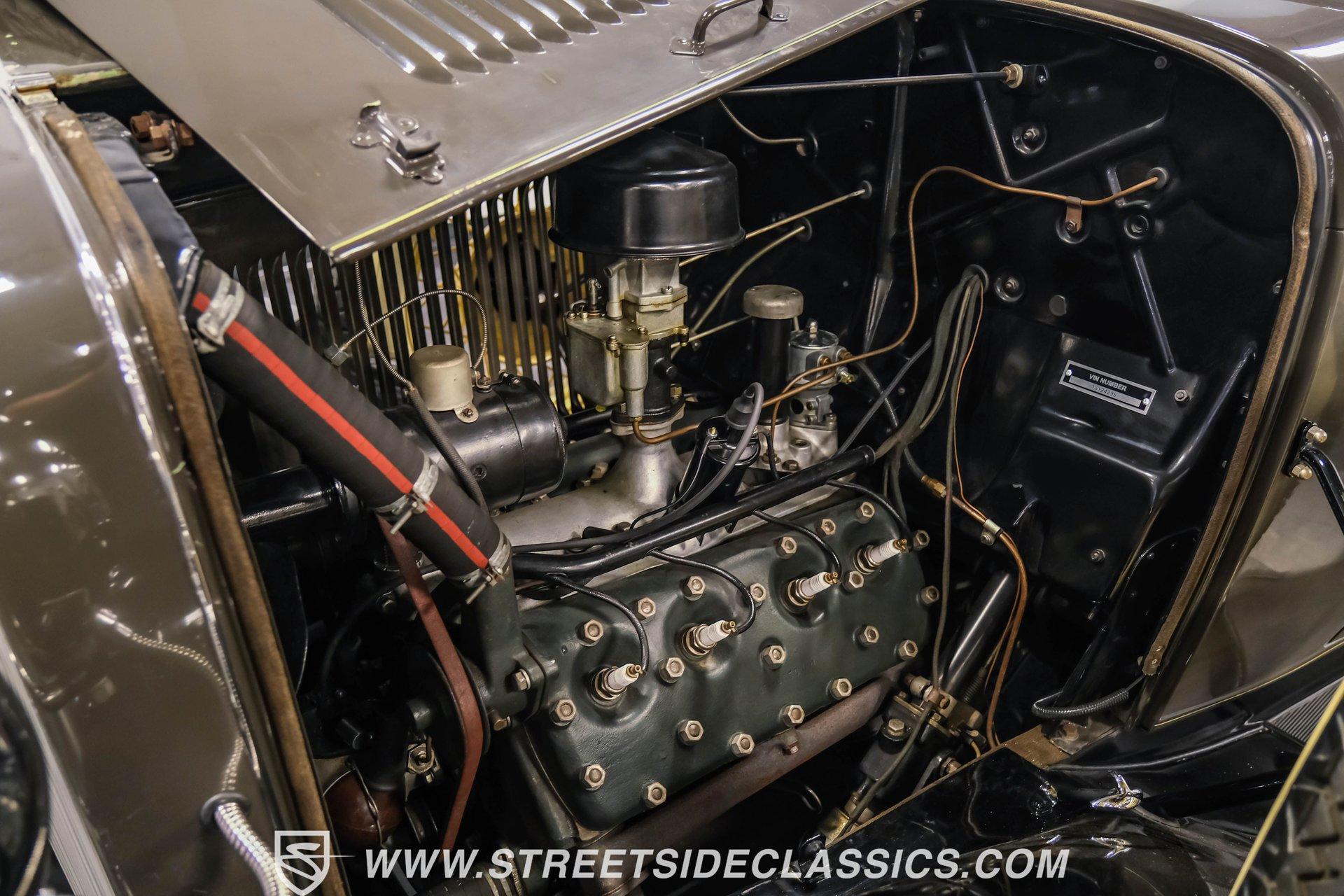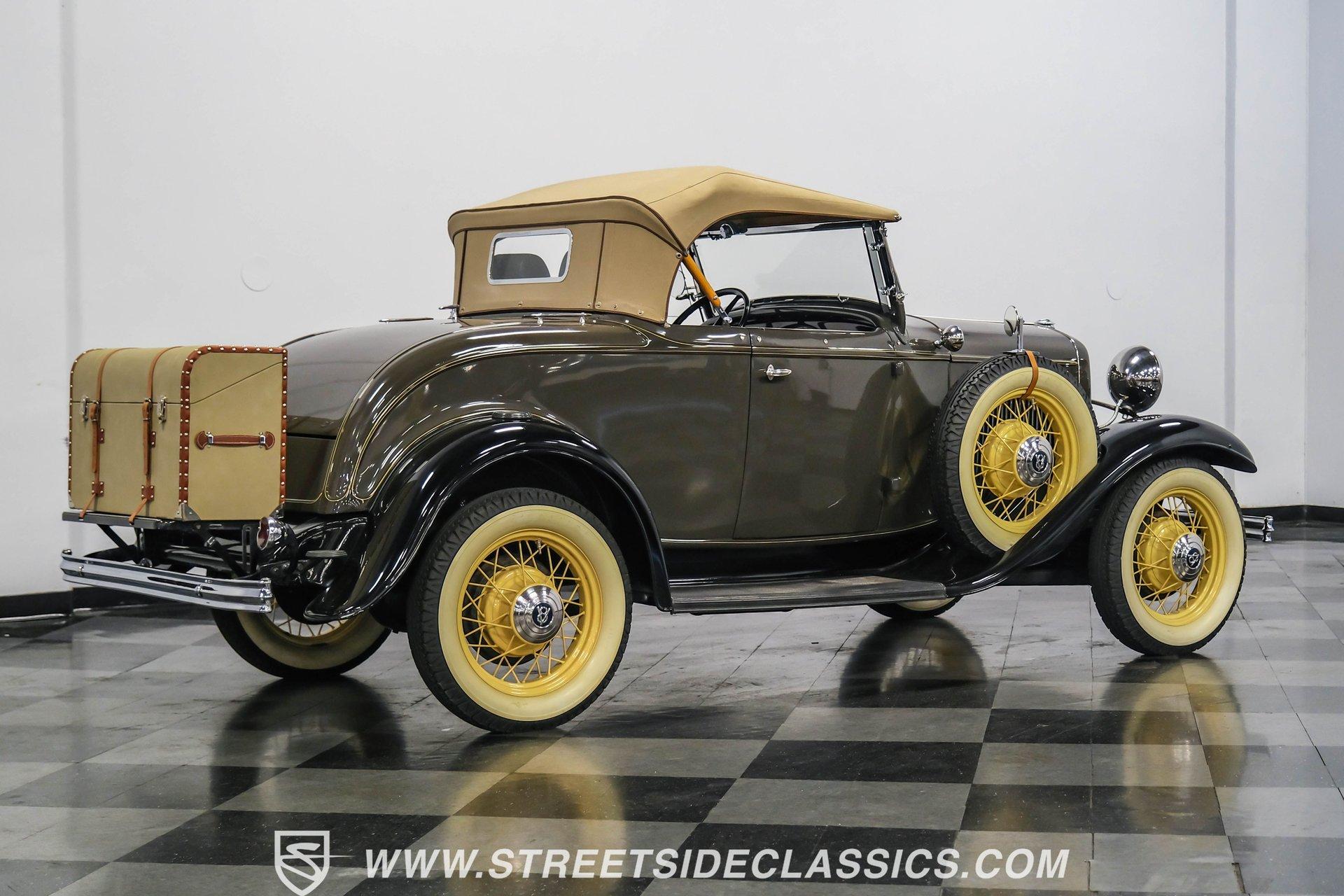 There is something undeniably magnetic about an automobile that helped change the course of motoring history. This 1932 Ford Model 18 roadster with rumble seat and celebrated 221 Flathead V8 captures that moment with period attitude and usable charm, inviting both weekend cruise nights and quiet, proud showings. From its tidy canvas top to the era-correct dual spare wheels tucked in the fenders and a fold-up luggage rack with attached trunk, this roadster evokes the romance of open motoring. If you have been looking for a 1932 car that combines authentic detail with easy drivability, this is certainly worthy of consideration. The interior is welcoming and well sorted for a driver-friendly experience. The consignor fitted Procar bucket seats up front for added comfort; the original bench seat is included with the car. The rumble seat shows little use and presents nicely. Glass and trim are in good order and the cabin has a tasteful period feel with minimal imperfections, making it comfortable for touring or display. Under the hood sits the landmark 221 Flathead V8 that defined the 1932 Model 18 era. The engine starts right up, idles smoothly and the three-speed manual gearbox shifts predictably, making this roadster straightforward to drive on modern roads. The suspension uses factory-style mono leaf springs front and rear and the car rides on 18-inch wire wheels wrapped in 5.50-18 Firestone wide whitewalls. Braking is via drum brakes and the underside presents as restored to factory standards, all contributing to a confident, vintage driving experience. Highlights: 1932 Ford Model 18 roadster with rumble seat and fold-up luggage rack with attached trunk Approximately 365 miles since the build Notable first-year Ford 221 Flathead V8 powerplant Three-speed manual transmission Full repaint performed at time of restoration Wire 18-inch wheels with 5.50-18 Firestone wide whitewall tires Factory-style mono leaf spring suspension front and rear Drum brakes front and rear Procar bucket seats; original bench seat included Rumble seat Extras: car cover, extra brake shoes, fuel pump kit, fan belt, coil, water pump, 6V charger, tool kit, engine start crank handle, air pump, jack and tools This 1932 Model 18 is a rare and enjoyable slice of automotive history that is ready to be driven and admired. It balances authentic detail with practical usability, and the included extras add value and convenience. Call today to arrange a closer look or a test drive and see why this Ford is such an appealing classic.