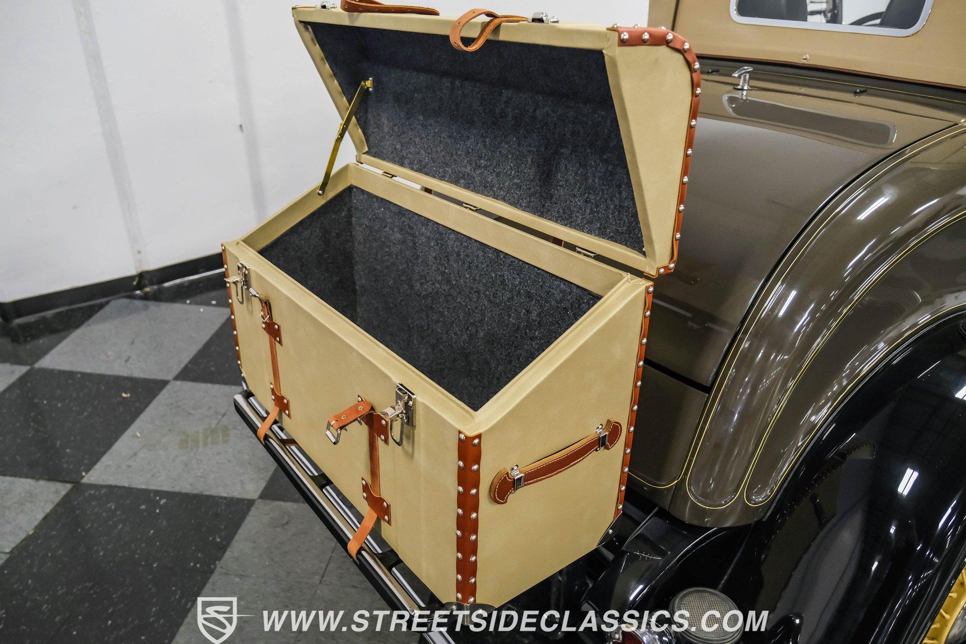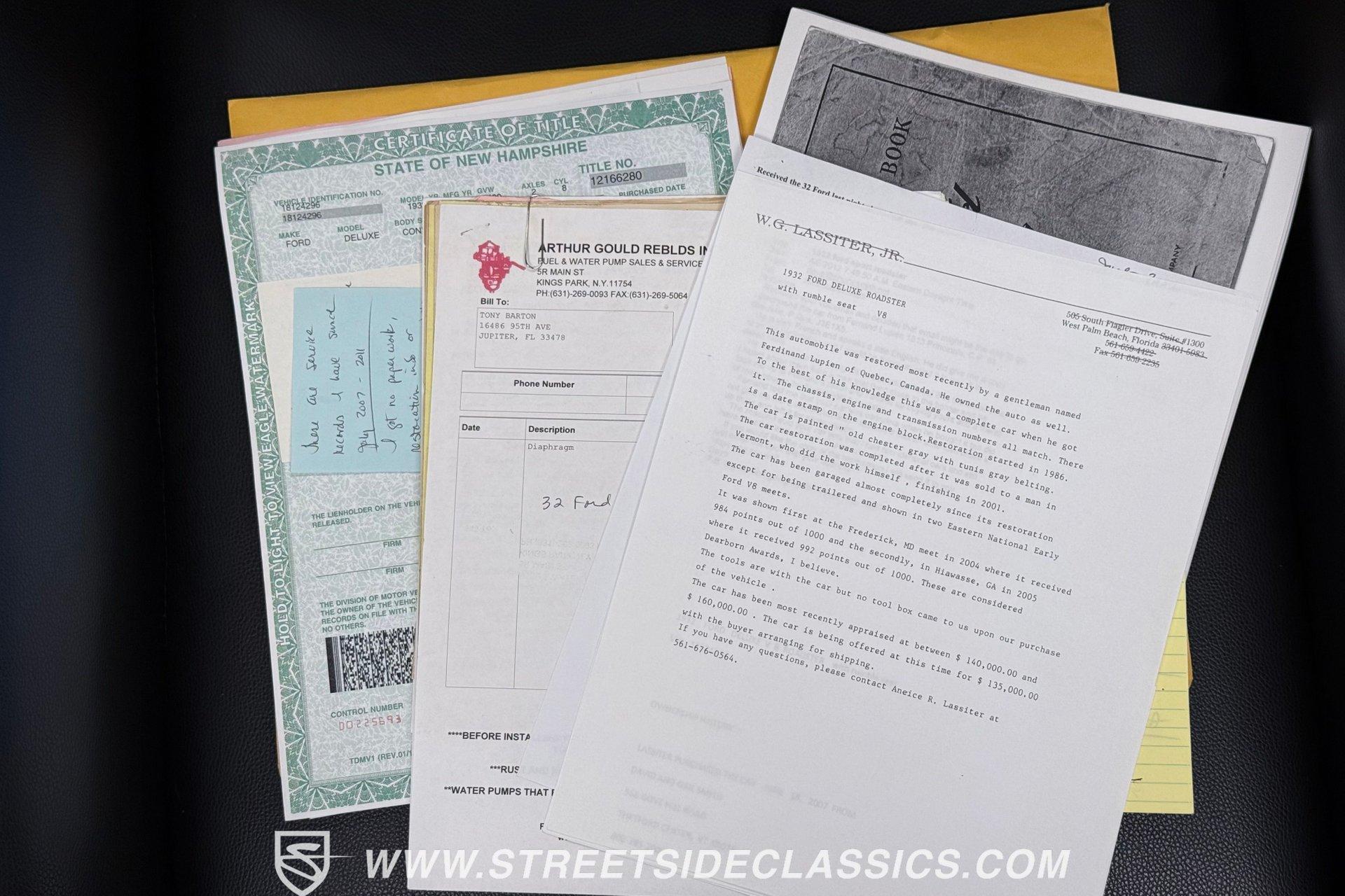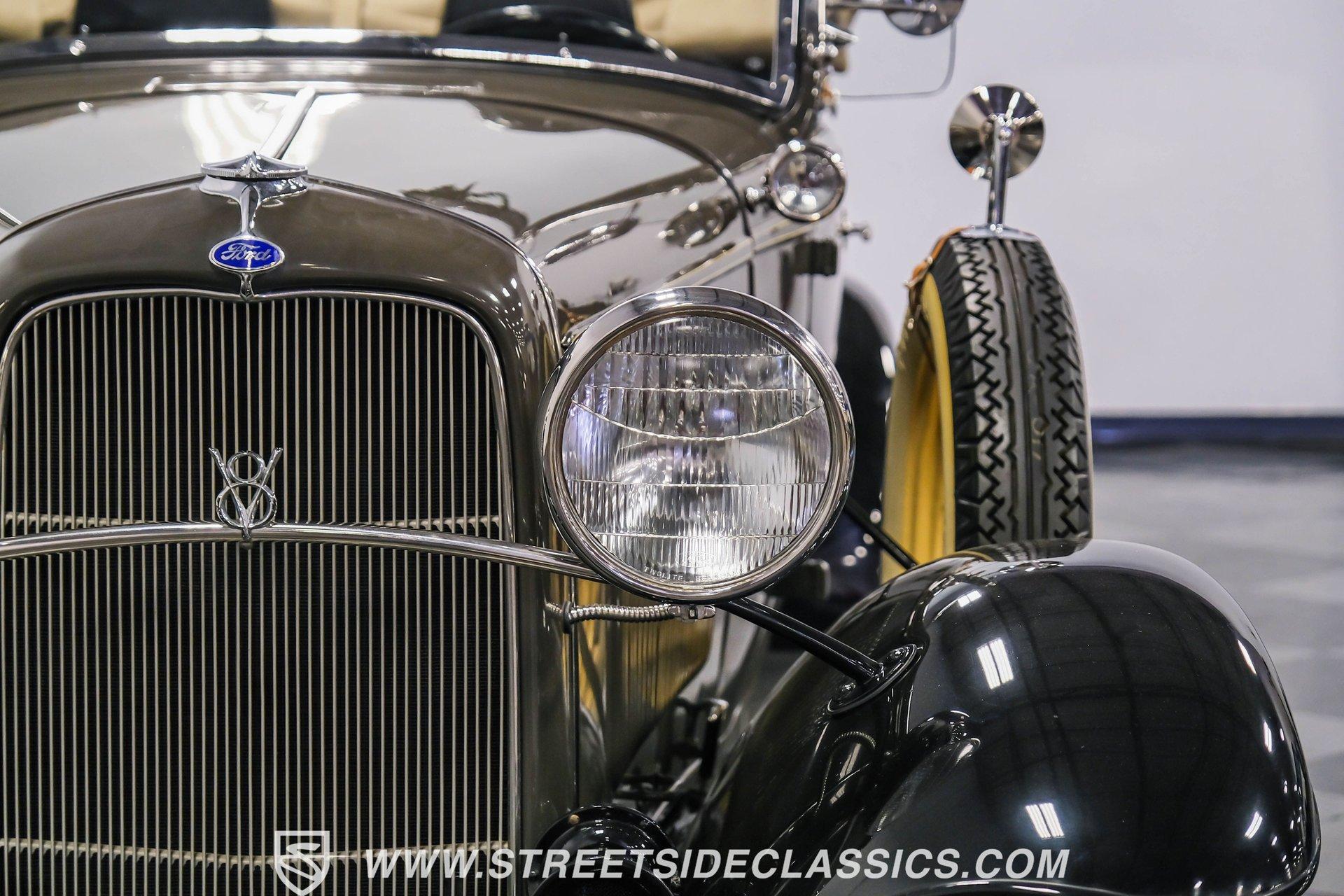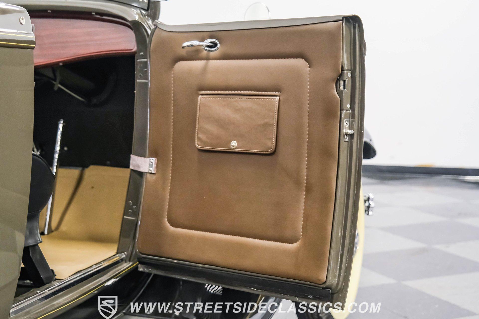 There is something undeniably magnetic about an automobile that helped change the course of motoring history. This 1932 Ford Model 18 roadster with rumble seat and celebrated 221 Flathead V8 captures that moment with period attitude and usable charm, inviting both weekend cruise nights and quiet, proud showings. From its tidy canvas top to the era-correct dual spare wheels tucked in the fenders and a fold-up luggage rack with attached trunk, this roadster evokes the romance of open motoring. If you have been looking for a 1932 car that combines authentic detail with easy drivability, this is certainly worthy of consideration. The interior is welcoming and well sorted for a driver-friendly experience. The consignor fitted Procar bucket seats up front for added comfort; the original bench seat is included with the car. The rumble seat shows little use and presents nicely. Glass and trim are in good order and the cabin has a tasteful period feel with minimal imperfections, making it comfortable for touring or display. Under the hood sits the landmark 221 Flathead V8 that defined the 1932 Model 18 era. The engine starts right up, idles smoothly and the three-speed manual gearbox shifts predictably, making this roadster straightforward to drive on modern roads. The suspension uses factory-style mono leaf springs front and rear and the car rides on 18-inch wire wheels wrapped in 5.50-18 Firestone wide whitewalls. Braking is via drum brakes and the underside presents as restored to factory standards, all contributing to a confident, vintage driving experience. Highlights: 1932 Ford Model 18 roadster with rumble seat and fold-up luggage rack with attached trunk Approximately 365 miles since the build Notable first-year Ford 221 Flathead V8 powerplant Three-speed manual transmission Full repaint performed at time of restoration Wire 18-inch wheels with 5.50-18 Firestone wide whitewall tires Factory-style mono leaf spring suspension front and rear Drum brakes front and rear Procar bucket seats; original bench seat included Rumble seat Extras: car cover, extra brake shoes, fuel pump kit, fan belt, coil, water pump, 6V charger, tool kit, engine start crank handle, air pump, jack and tools This 1932 Model 18 is a rare and enjoyable slice of automotive history that is ready to be driven and admired. It balances authentic detail with practical usability, and the included extras add value and convenience. Call today to arrange a closer look or a test drive and see why this Ford is such an appealing classic.
