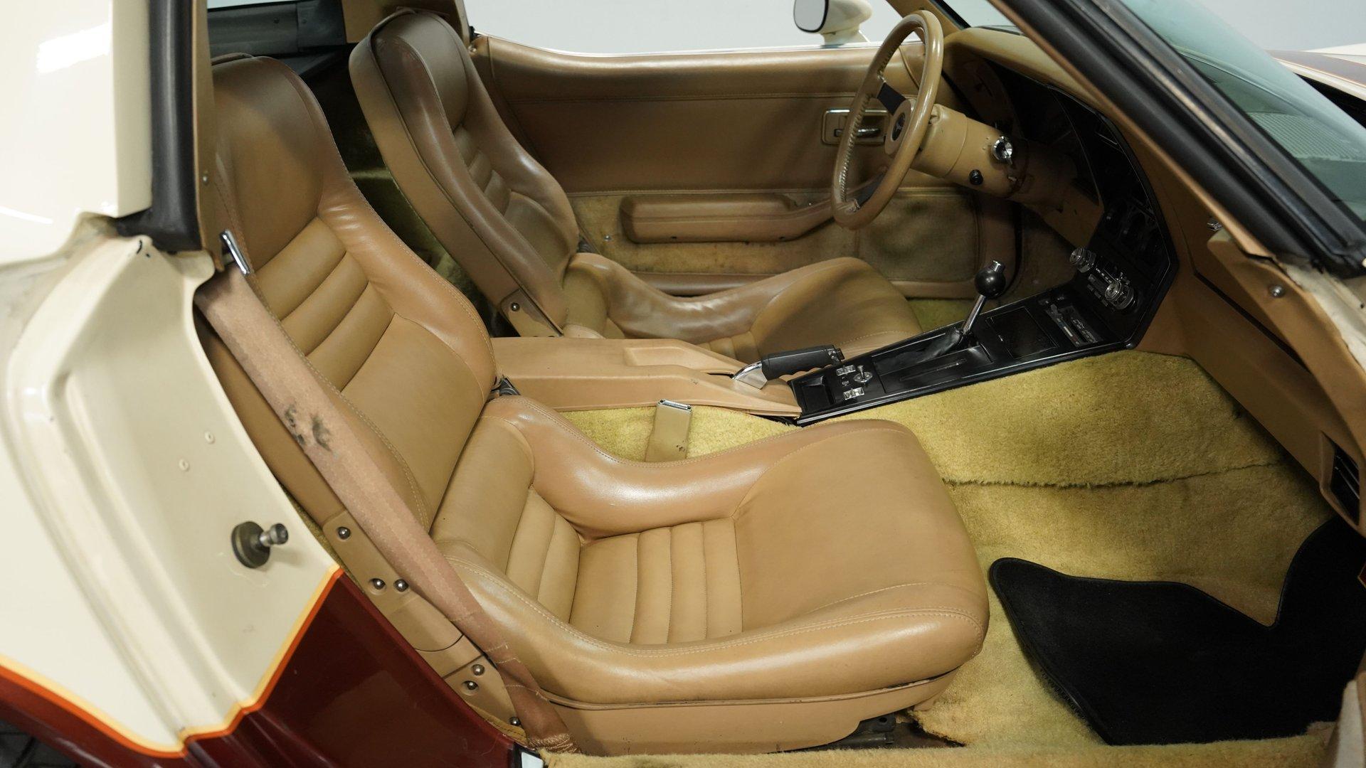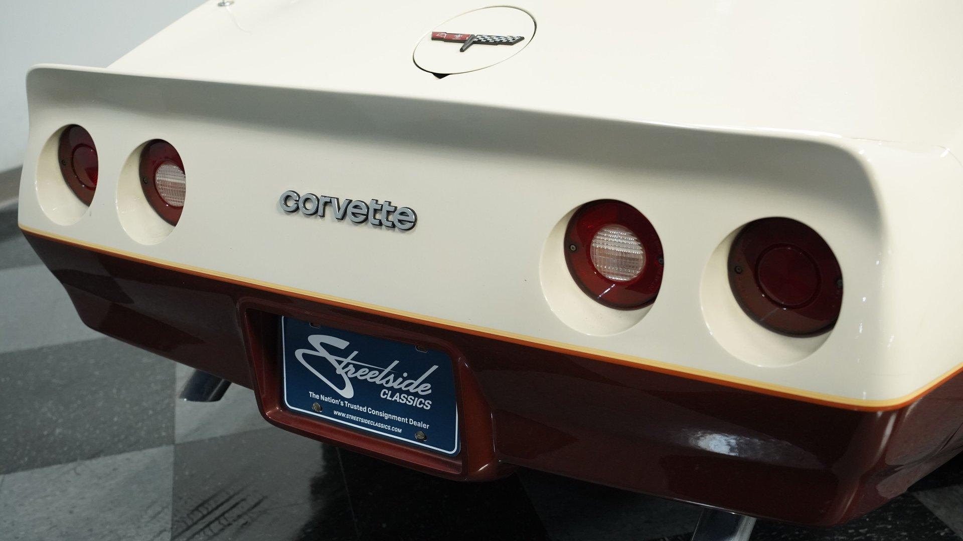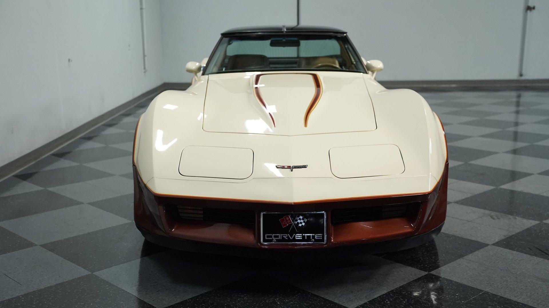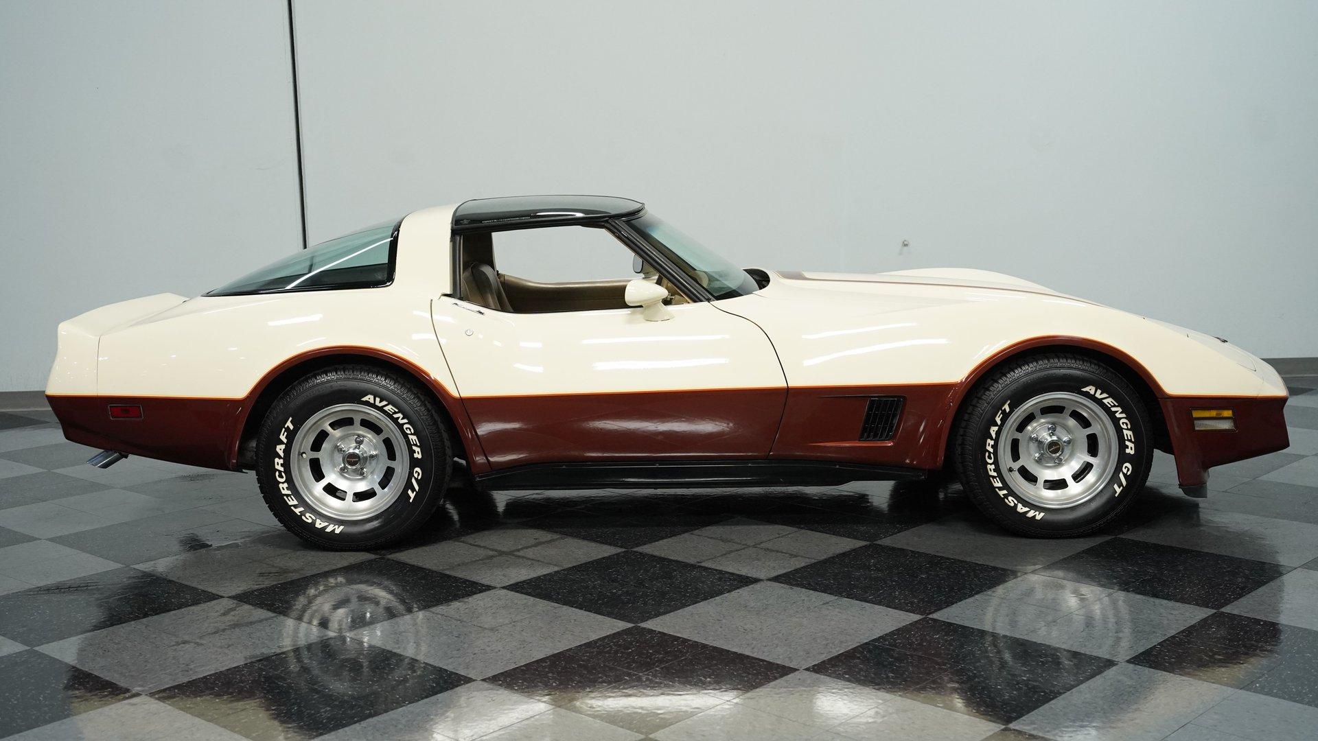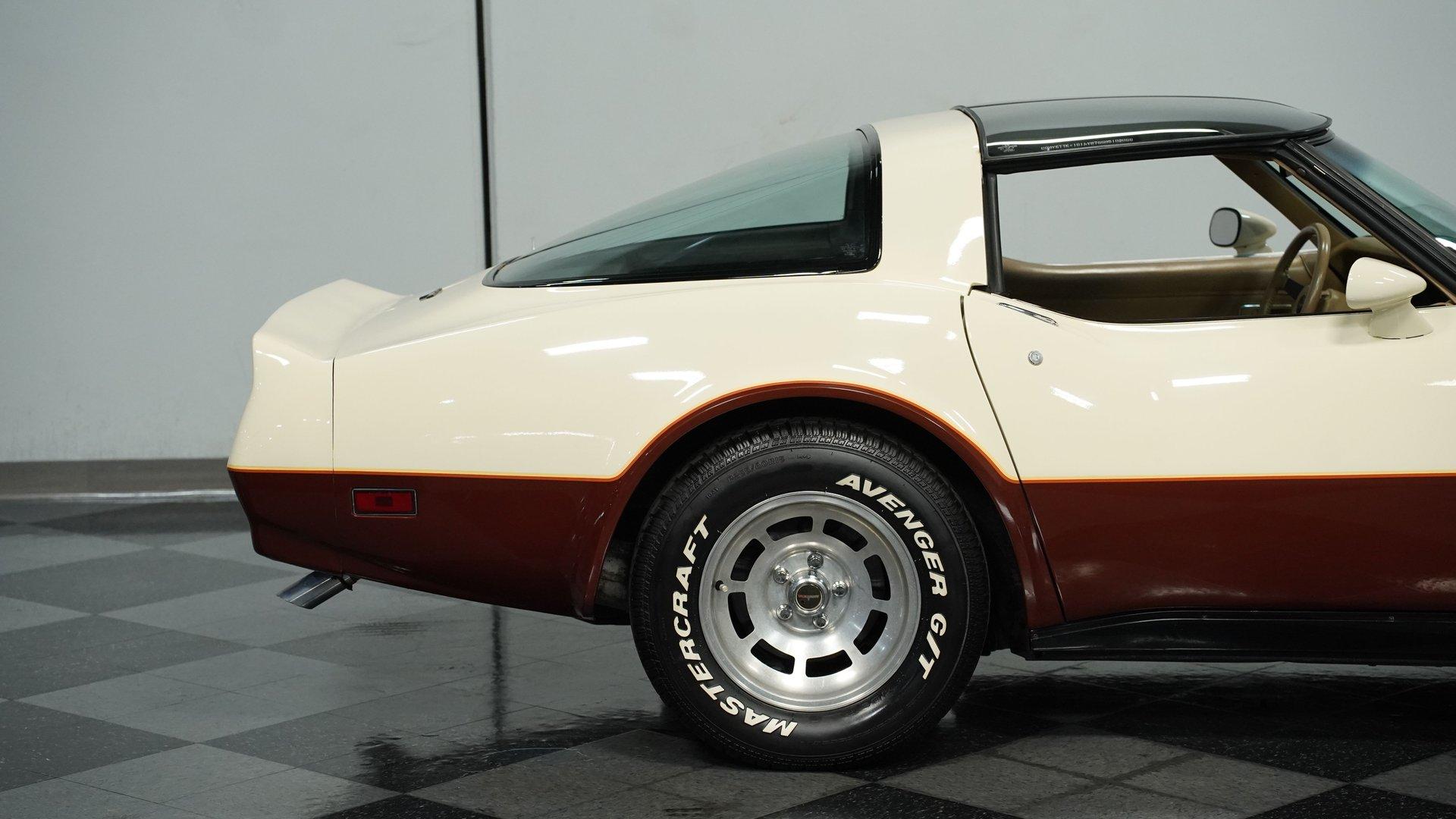This highly original 1981 Chevrolet Corvette boasts a rare two-tone Cream Beige and Dark Bronze paint scheme that gleams in the sunlight, a testament to decades of meticulous care. The C3's iconic silhouette remains as striking today as it was in '81, with Transparent T-tops ready for open-air adventures. Rolling on factory 15-inch wheels wrapped in beefy 255/60R15 rubber, this Corvette combines classic style with road-gripping performance. Dark Bronze accents complement the sleek bodywork, creating a quintessential American sports car aesthetic. Doe Skin Tan upholstery adorns the interior, creating a driver-focused environment built for serious motoring. Supportive bucket seats keep you planted during spirited driving, while the center console houses the shifter for the 3-speed automatic transmission. A factory Delco AM/FM/cassette radio stands ready to provide the soundtrack for your journey. Power windows, locks, and steering offer effortless control. The driver-oriented dash puts all gauges and controls within easy reach, reinforcing the Corvette's performance-first philosophy. The original, numbers-matching 350 cubic inch V8 engine sits proudly in the engine bay. This 190-horsepower power-plant, fed by a single 4-barrel carburetor top with a factory dual-snorkel air cleaner, delivers ample thrust for both cruising and more aggressive driving. The automatic transmission shifts with precision, allowing you to focus on the road ahead. Four-wheel disc brakes provide confident stopping power, while the legendary Corvette suspension - featuring coil springs up front and a transverse leaf spring in the rear - delivers the handling prowess this sports car is known for. A dual exhaust system provides a fitting auditory complement to the V8's performance. HIGHLIGHTS: Numbers-Matching 350 V8 Engine 3-Speed Automatic Transmission Single 4-Barrel Carburetor Power Steering Four-Wheel Disc Brakes Dual Exhaust System Coil Spring Front Suspension Transverse Leaf Spring Rear Suspension Rare Cream Beige/Dark Bronze Paint Scheme Transparent T-Top Roof 15-Inch wheels in 255/60R15 Tires Well-Preserved, Highly Original Car Doe Skin Tan upholstery Bucket Seats Center Console Power Windows and Locks Factory AM/FM Radio with Cassette Player This un-modified, highly-original, 1981 Chevrolet Corvette, with its numbers-matching V8, eye-catching Cream Beige/Dark Bronze exterior, and luxurious Doe Skin Tan interior, represents a genuine piece of American sports car engineering. Cherished by and well cared for since it left the showroom floor, this C3 Corvette awaits its next passionate owner. Call today!