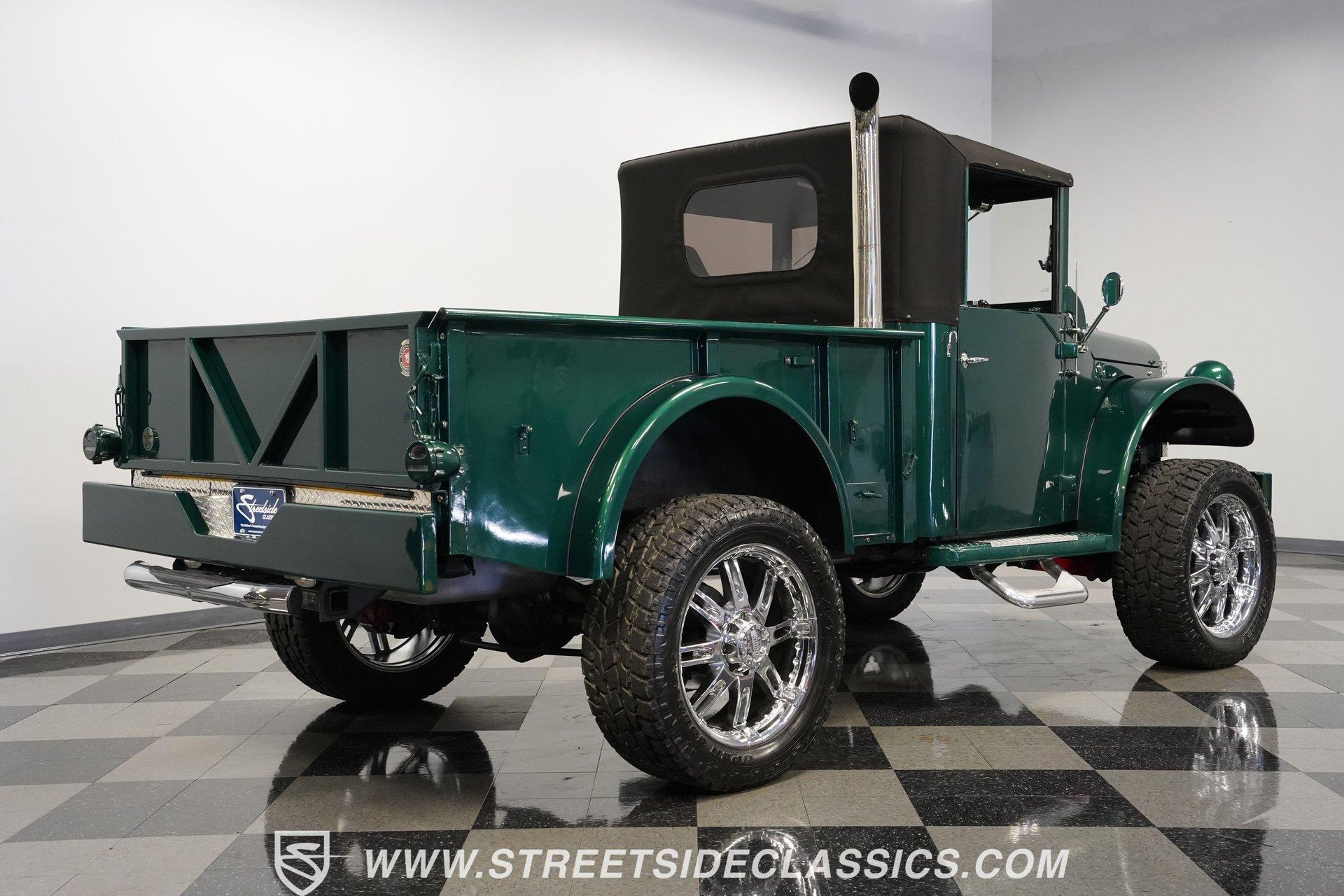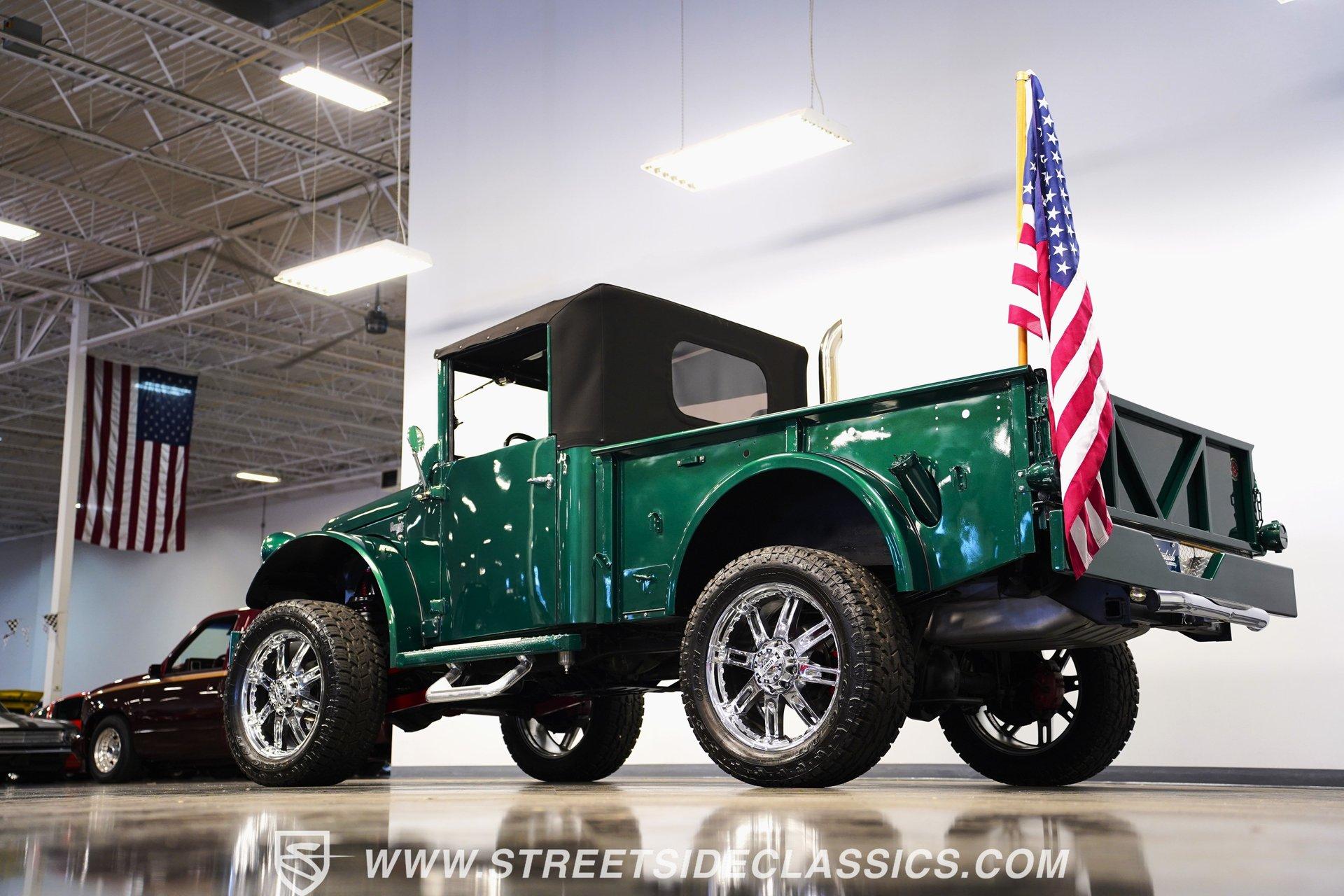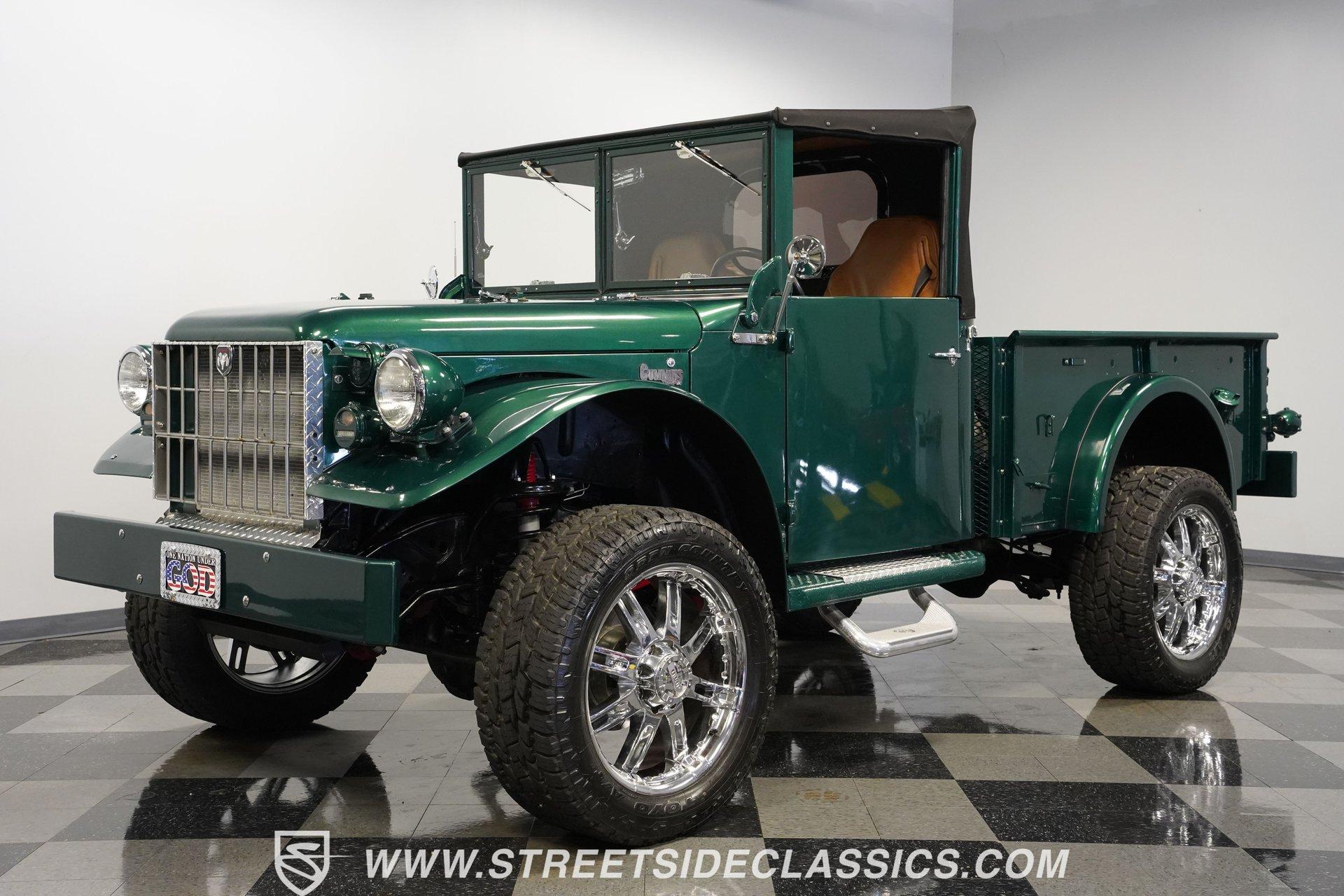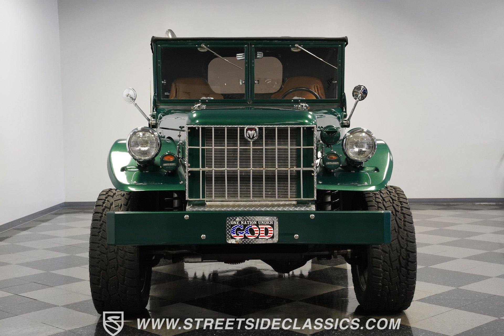 There is something irresistible about a truck that wears history and purpose with equal pride. This is the kind of vehicle that makes a statement at a drive-in, on a trail, or parked in front of your favorite weekend spot. It blends utilitarian roots with thoughtful custom touches so you can feel a connection every time you turn the key. Whether you picture weekend adventures or a standout showpiece that still works hard, this is a Power Wagon that invites you to get behind the wheel and go. Meet the 1954 Dodge M37 Power Wagon, ready for new miles and new stories. Slide inside and you are met with a rugged yet refined cabin. Leather seats offer comfort and support, while the dash and center console feature custom diamond plate accents that tie into the exterior theme. A removable wooden center console hides the battery beneath and houses a Fusion stereo head unit with integrated speakers and AC controls. The soft top interior is clean and the layout feels purposeful and comfortable for longer drives. Under the hood sits a 5.9L inline six turbo diesel paired to a 4-speed automatic transmission, a combination known for low-end torque and long-haul temperament. This truck starts easily, idles smoothly, and delivers a noticeable turbo boost when you ask for acceleration. The intercooler is mounted in the bed with dual electric fans and a grated airflow setup for efficient cooling. Braking is handled with power discs front and rear and drilled and slotted rotors up front. A lifted stance, solid-axle front and leaf-sprung rear with Rancho front shocks give a confident ride, and the driveline tracks straight even with large off-road tires. Highlights Engine 5.9L inline-6 turbo diesel Induction intercooler mounted in bed Transmission 4-speed automatic Rear axle 22 inch gear housings Brakes power disc with drilled fronts Steering power steering Suspension solid axle front, leaf rear, Rancho shocks Wheels and tires 22 inch wheels, 35X12.50R22LT Toyo Interior leather seats and diamond plate console Documentation restoration photos and service records available This Power Wagon blends classic character with practical upgrades and enjoyable driving manners, making it a compelling choice for enthusiasts who want a usable classic. Reach out to schedule a viewing or a test drive. Call today!