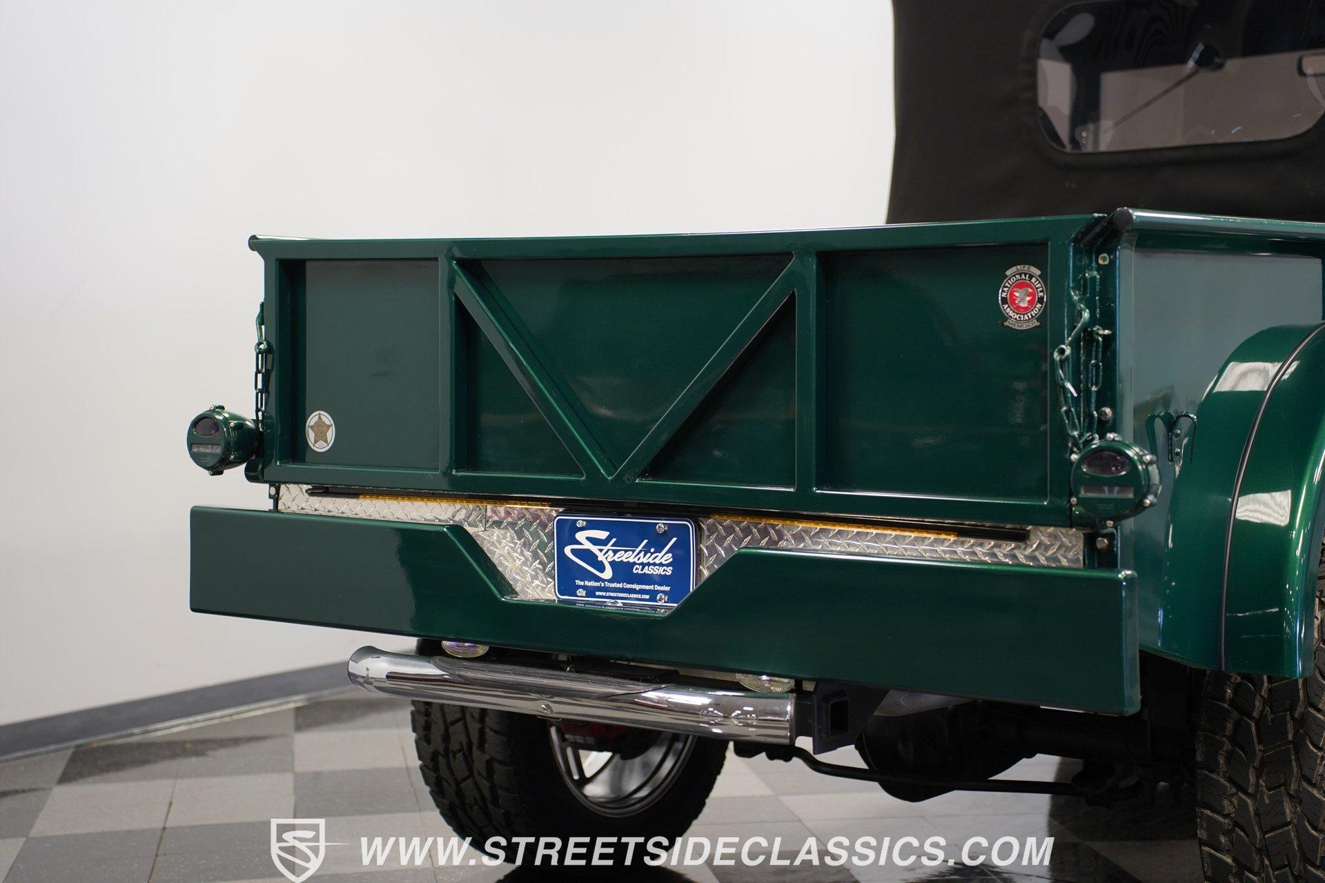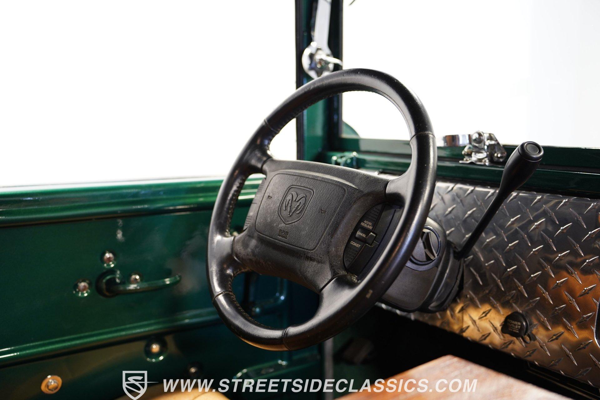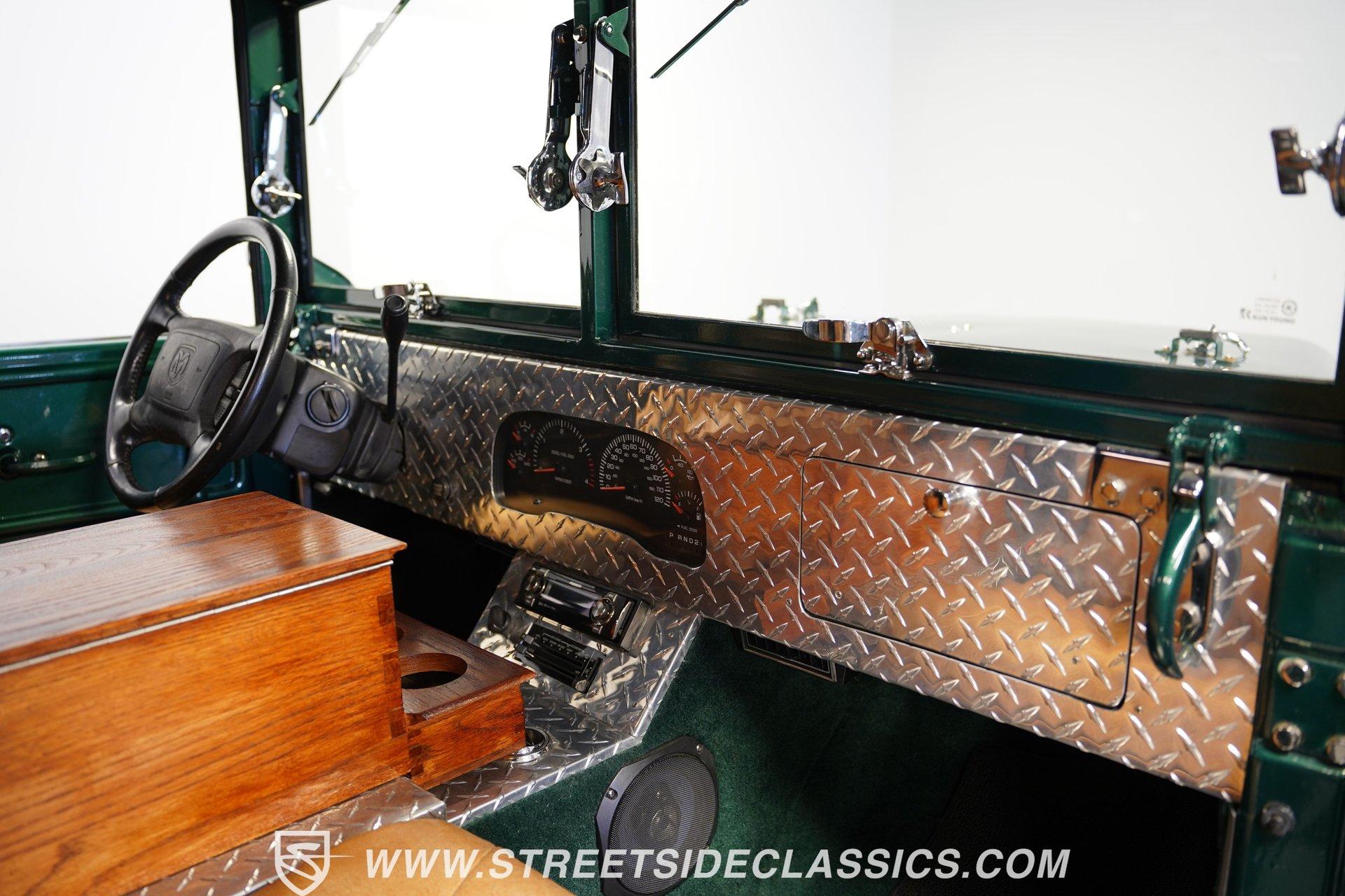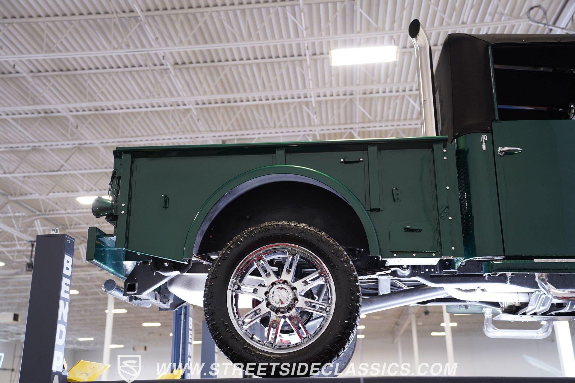 There is something irresistible about a truck that wears history and purpose with equal pride. This is the kind of vehicle that makes a statement at a drive-in, on a trail, or parked in front of your favorite weekend spot. It blends utilitarian roots with thoughtful custom touches so you can feel a connection every time you turn the key. Whether you picture weekend adventures or a standout showpiece that still works hard, this is a Power Wagon that invites you to get behind the wheel and go. Meet the 1954 Dodge M37 Power Wagon, ready for new miles and new stories. Slide inside and you are met with a rugged yet refined cabin. Leather seats offer comfort and support, while the dash and center console feature custom diamond plate accents that tie into the exterior theme. A removable wooden center console hides the battery beneath and houses a Fusion stereo head unit with integrated speakers and AC controls. The soft top interior is clean and the layout feels purposeful and comfortable for longer drives. Under the hood sits a 5.9L inline six turbo diesel paired to a 4-speed automatic transmission, a combination known for low-end torque and long-haul temperament. This truck starts easily, idles smoothly, and delivers a noticeable turbo boost when you ask for acceleration. The intercooler is mounted in the bed with dual electric fans and a grated airflow setup for efficient cooling. Braking is handled with power discs front and rear and drilled and slotted rotors up front. A lifted stance, solid-axle front and leaf-sprung rear with Rancho front shocks give a confident ride, and the driveline tracks straight even with large off-road tires. Highlights Engine 5.9L inline-6 turbo diesel Induction intercooler mounted in bed Transmission 4-speed automatic Rear axle 22 inch gear housings Brakes power disc with drilled fronts Steering power steering Suspension solid axle front, leaf rear, Rancho shocks Wheels and tires 22 inch wheels, 35X12.50R22LT Toyo Interior leather seats and diamond plate console Documentation restoration photos and service records available This Power Wagon blends classic character with practical upgrades and enjoyable driving manners, making it a compelling choice for enthusiasts who want a usable classic. Reach out to schedule a viewing or a test drive. Call today!