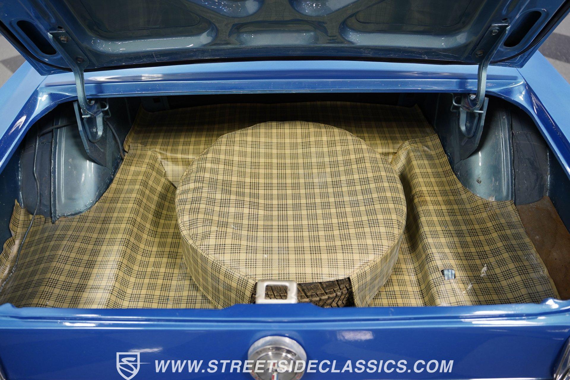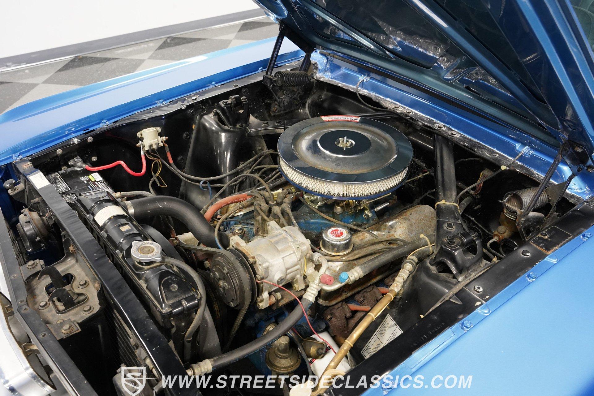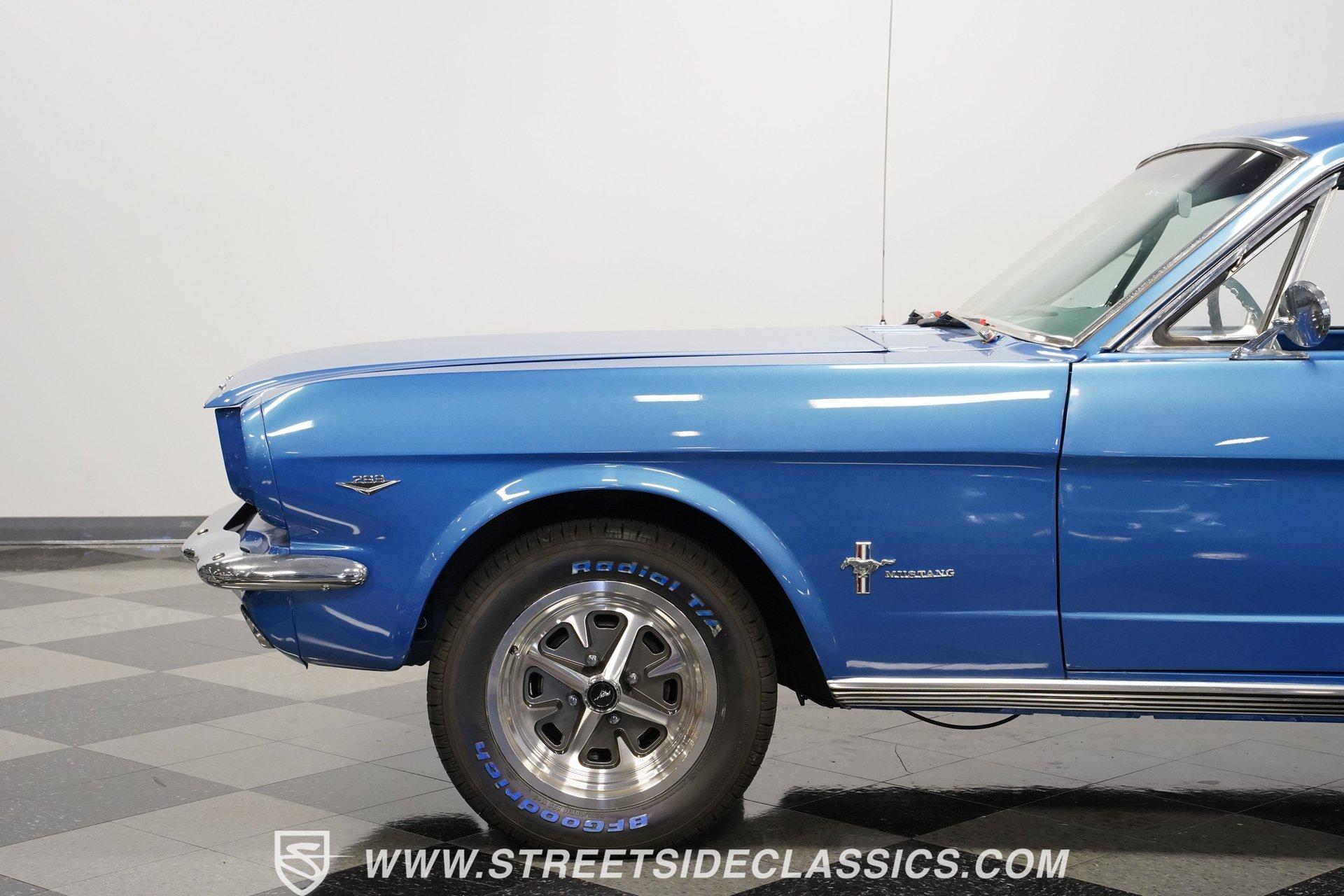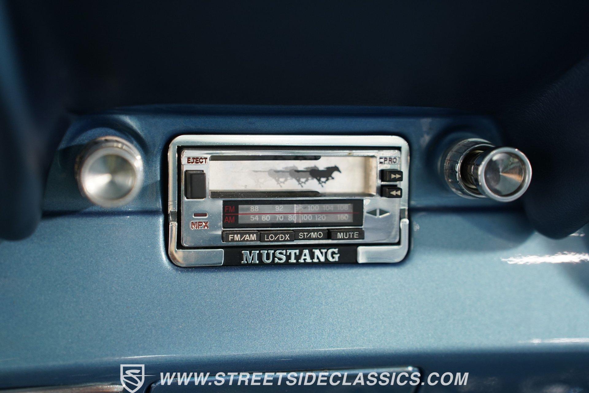 Arguably, cruising down the highway from behind the wheel of a first-generation Pony Car may just be one of the best things life has to offer. This particular 1966 Ford Mustang comes configured as a cool blue hardtop, showcasing its straight lines and aggressive stance from all angles. Inside, we find a turquoise blue vinyl and cloth interior. A three-spoke wheel showcases a Mustang center cap, positioned just ahead of a five-pod gauge cluster that features a big center-mounted 140 mph speedometer. Sliding HVAC controls keep things easy, while the under-dash-mounted air conditioning setup promises to keep things cool during those warm months. A galloping horse hologram highlights a Mustang AM/FM/Cassette head unit, and reminds everyone this Pony Car is meant to run. The real soundtrack, however, is situated beneath that steel hood. A 302 cubic-inch overhead valve V-8 engine. Outfitted with a single two-barrel carburetor and a stock-style exhaust manifold, this small block retains the original style dual-to-single exhaust along with a factory replacement muffler. Power is routed through a C4 three-speed automatic transmission before heading out to the solid-axle rear end. HIGHLIGHTS: Hardtop 302 CID V8 Single 2 Barrel Carb C4 Three Speed Auto 15 Inch Wheels BFG Tires Blue Vinyl Interior Air Conditioning Bucket Seats AM/FM/Cassette Seatbelts Heat This 1966 Ford Mustang is equipped with a stock-style suspension that utilizes coil springs, shocks, and a sway bar up front, while leaf springs and shocks comprise the rear setup. Fifteen-inch wheels show off Pony center caps, while BFGoodrich Radial T/A tires measure P215/60R-15 all around. If you have never experienced the thrill of piloting a first-gen Pony Car, then this is your chance. But don't wait, call today!
