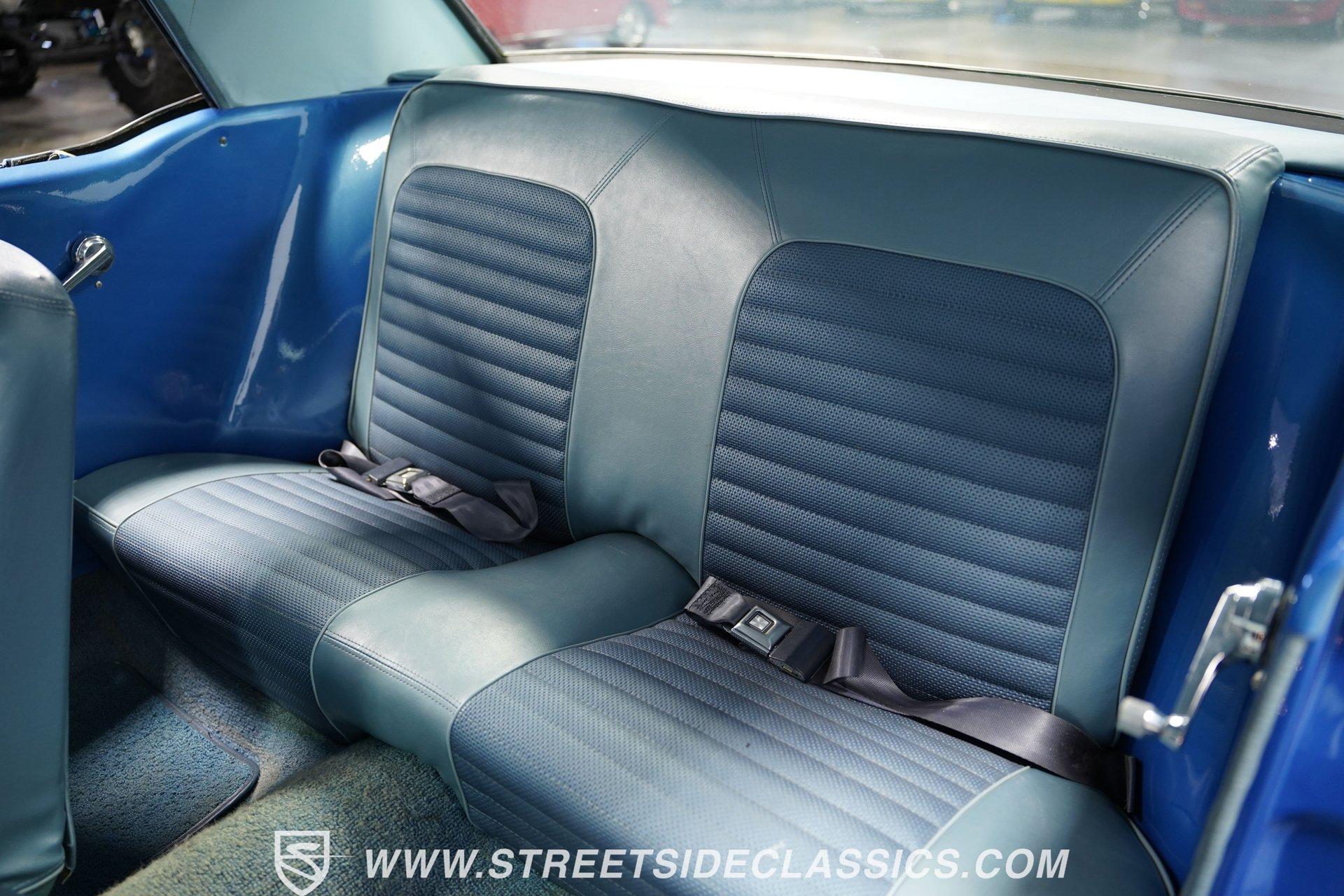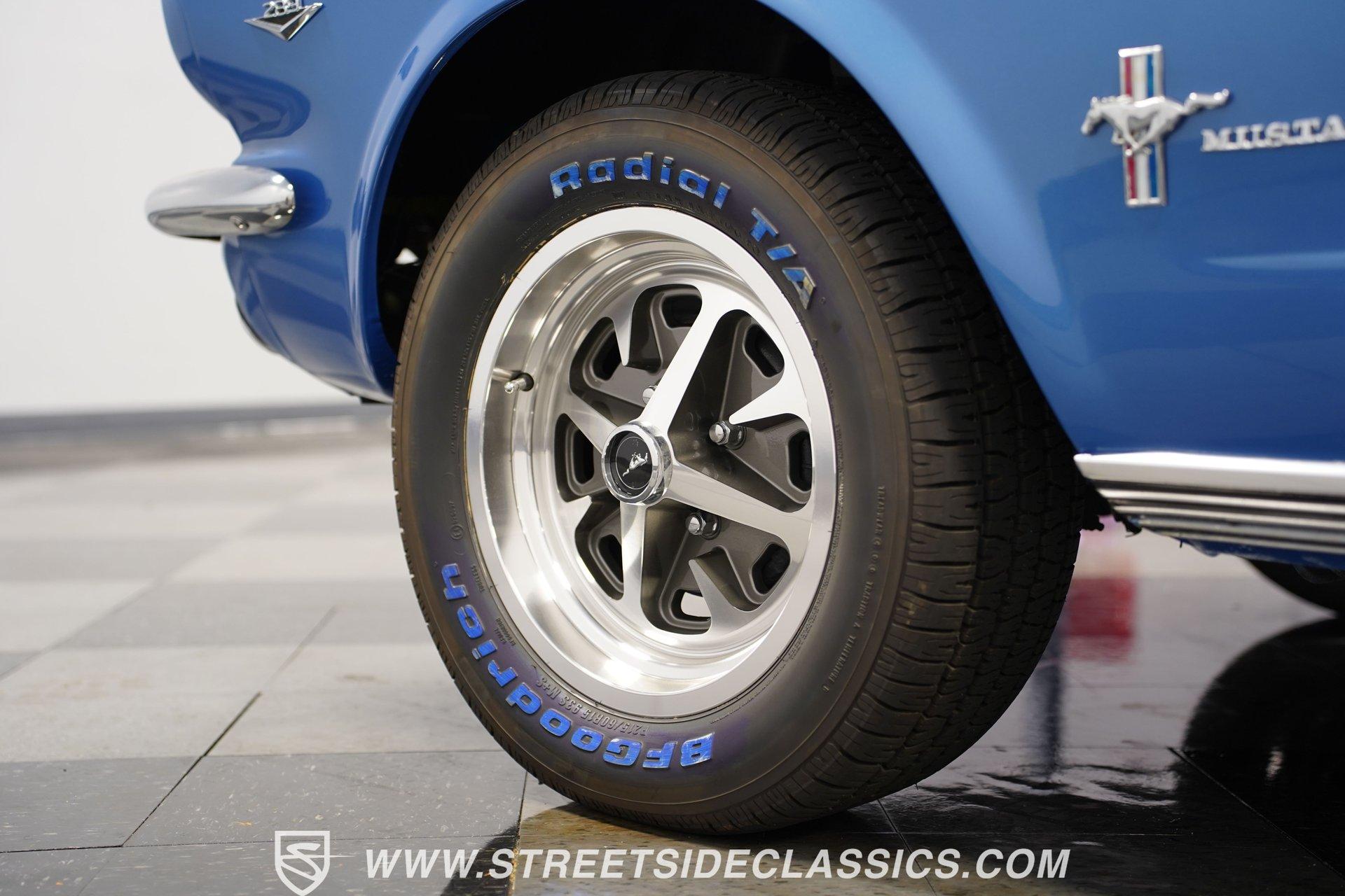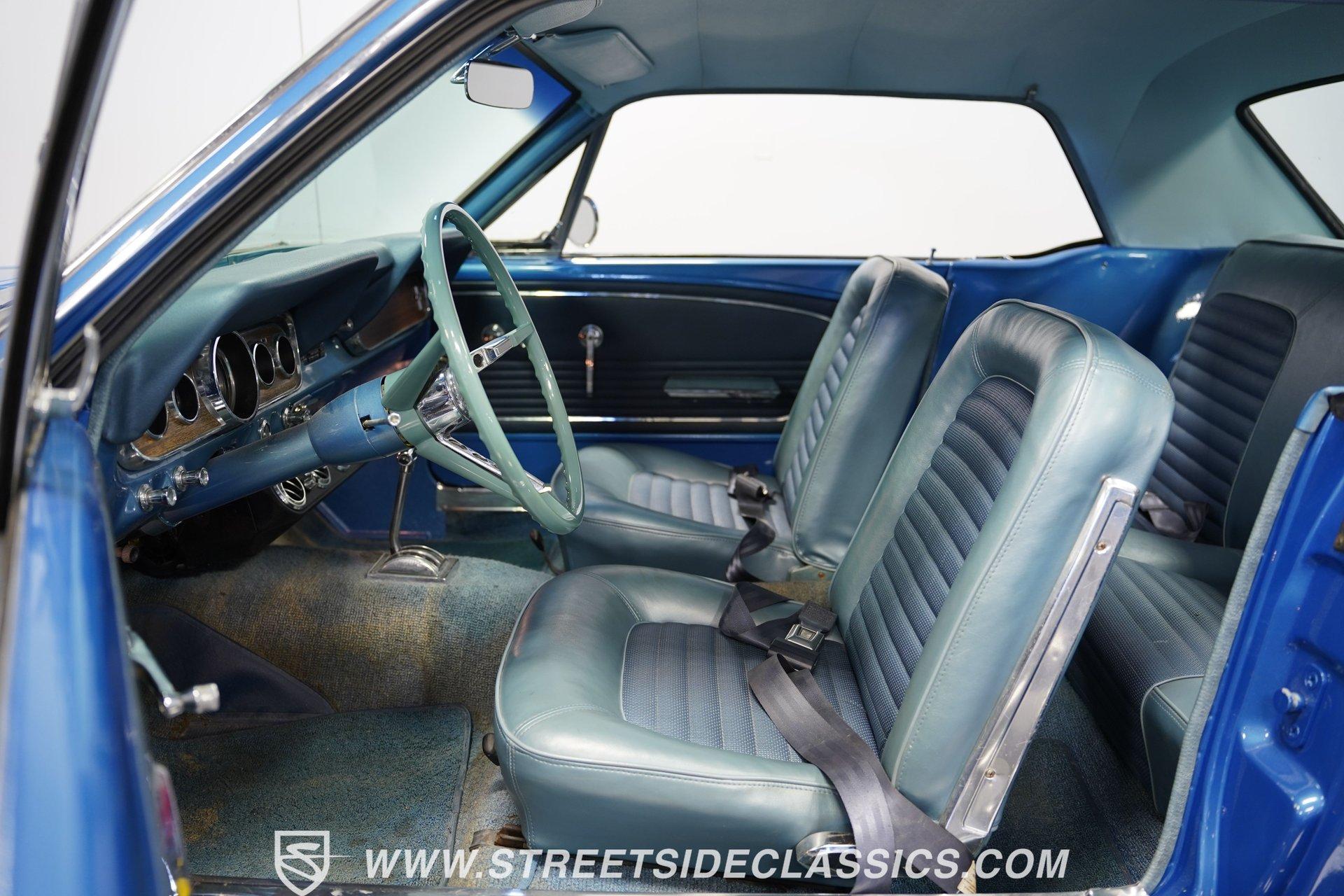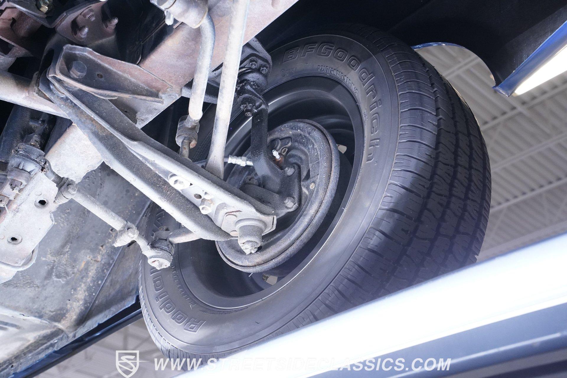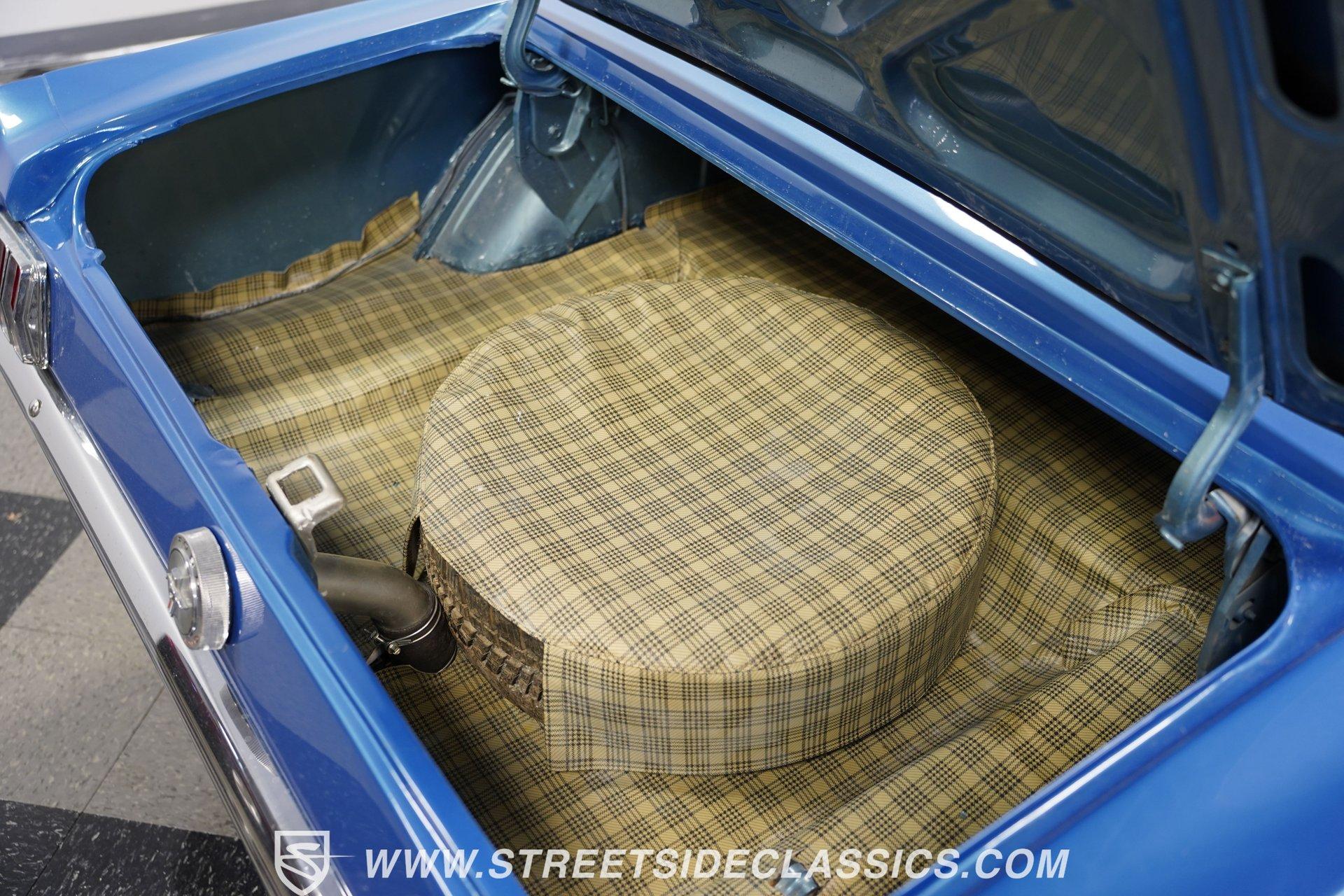 Arguably, cruising down the highway from behind the wheel of a first-generation Pony Car may just be one of the best things life has to offer. This particular 1966 Ford Mustang comes configured as a cool blue hardtop, showcasing its straight lines and aggressive stance from all angles. Inside, we find a turquoise blue vinyl and cloth interior. A three-spoke wheel showcases a Mustang center cap, positioned just ahead of a five-pod gauge cluster that features a big center-mounted 140 mph speedometer. Sliding HVAC controls keep things easy, while the under-dash-mounted air conditioning setup promises to keep things cool during those warm months. A galloping horse hologram highlights a Mustang AM/FM/Cassette head unit, and reminds everyone this Pony Car is meant to run. The real soundtrack, however, is situated beneath that steel hood. A 302 cubic-inch overhead valve V-8 engine. Outfitted with a single two-barrel carburetor and a stock-style exhaust manifold, this small block retains the original style dual-to-single exhaust along with a factory replacement muffler. Power is routed through a C4 three-speed automatic transmission before heading out to the solid-axle rear end. HIGHLIGHTS: Hardtop 302 CID V8 Single 2 Barrel Carb C4 Three Speed Auto 15 Inch Wheels BFG Tires Blue Vinyl Interior Air Conditioning Bucket Seats AM/FM/Cassette Seatbelts Heat This 1966 Ford Mustang is equipped with a stock-style suspension that utilizes coil springs, shocks, and a sway bar up front, while leaf springs and shocks comprise the rear setup. Fifteen-inch wheels show off Pony center caps, while BFGoodrich Radial T/A tires measure P215/60R-15 all around. If you have never experienced the thrill of piloting a first-gen Pony Car, then this is your chance. But don't wait, call today!