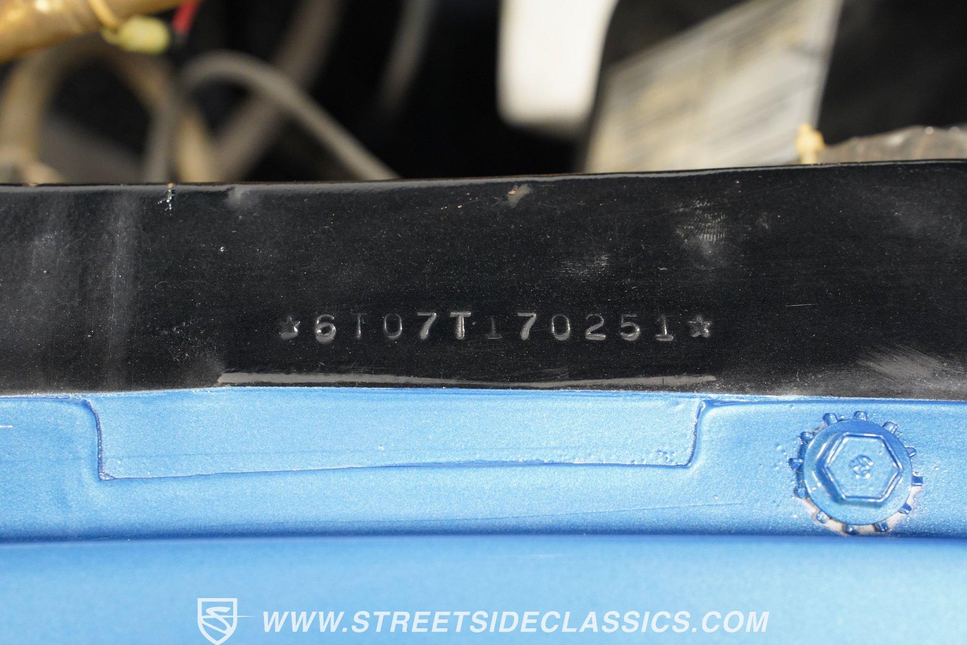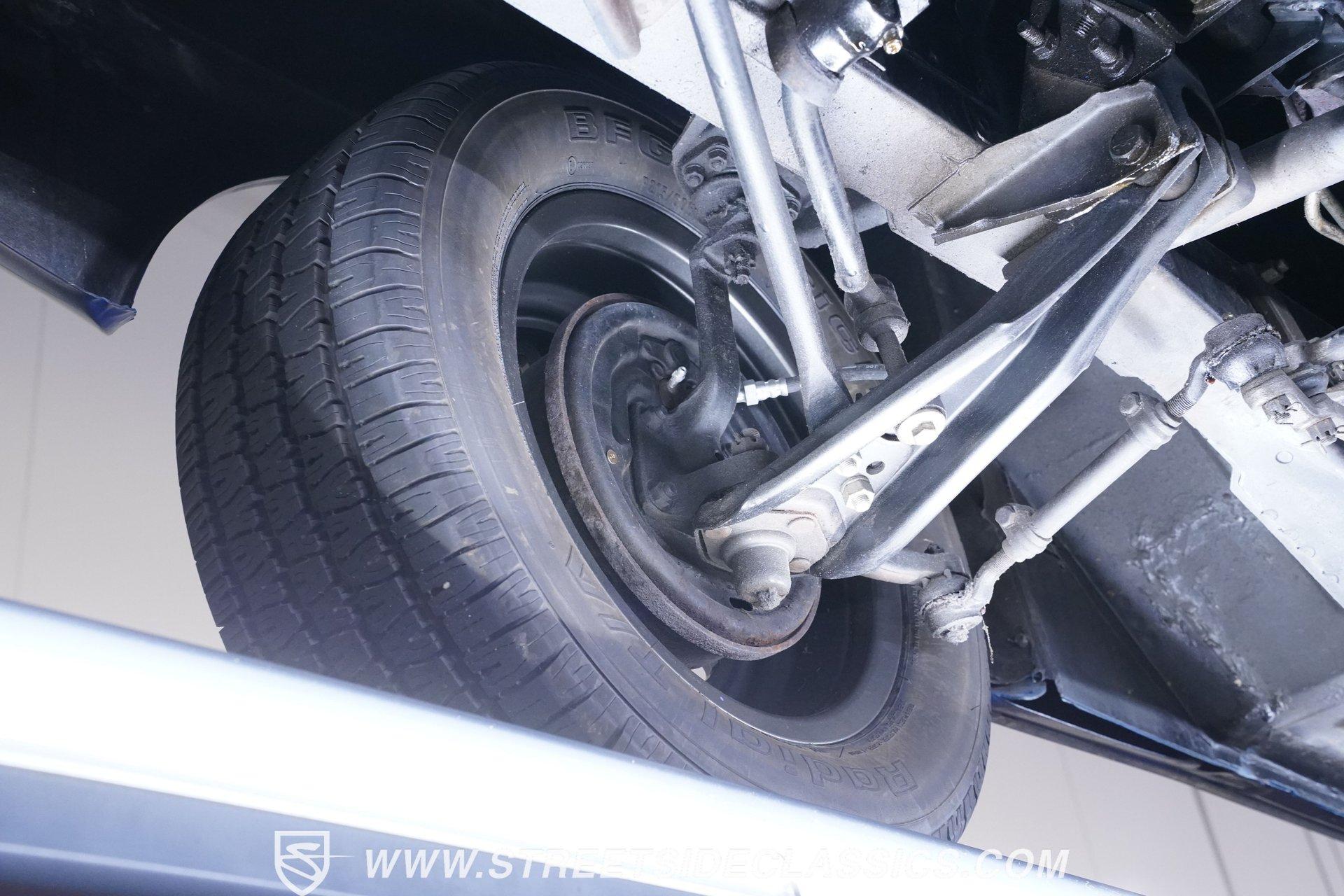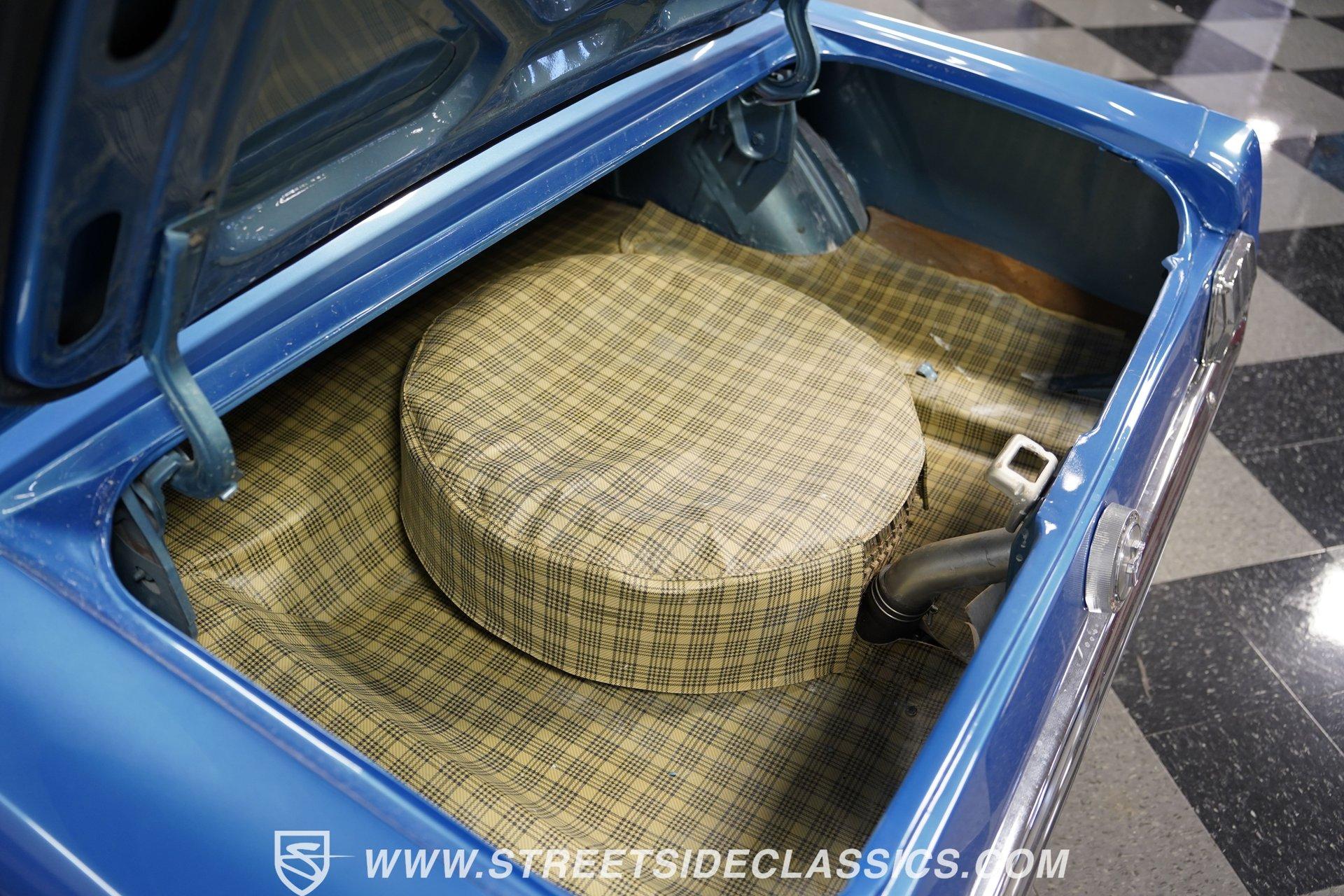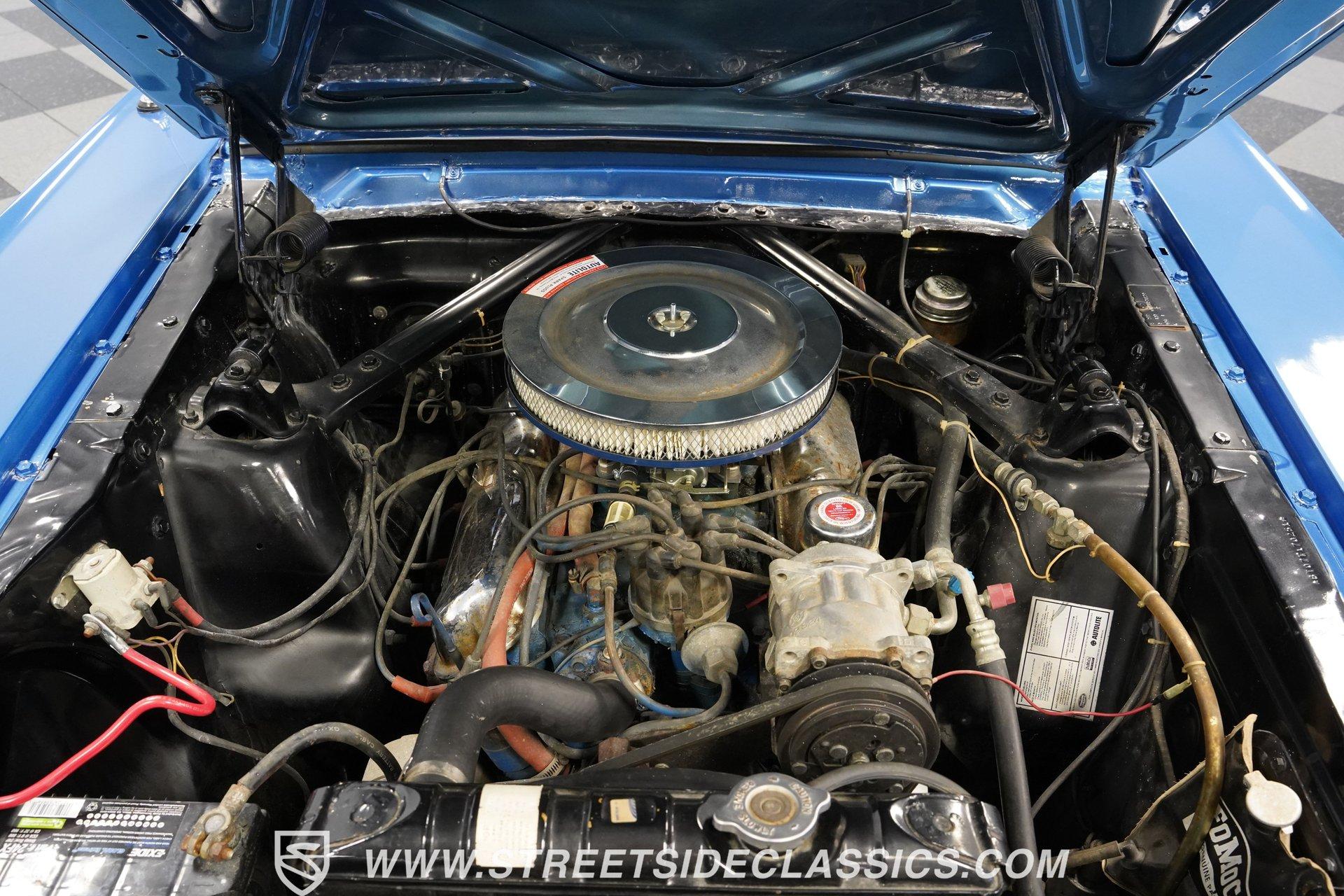 Arguably, cruising down the highway from behind the wheel of a first-generation Pony Car may just be one of the best things life has to offer. This particular 1966 Ford Mustang comes configured as a cool blue hardtop, showcasing its straight lines and aggressive stance from all angles. Inside, we find a turquoise blue vinyl and cloth interior. A three-spoke wheel showcases a Mustang center cap, positioned just ahead of a five-pod gauge cluster that features a big center-mounted 140 mph speedometer. Sliding HVAC controls keep things easy, while the under-dash-mounted air conditioning setup promises to keep things cool during those warm months. A galloping horse hologram highlights a Mustang AM/FM/Cassette head unit, and reminds everyone this Pony Car is meant to run. The real soundtrack, however, is situated beneath that steel hood. A 302 cubic-inch overhead valve V-8 engine. Outfitted with a single two-barrel carburetor and a stock-style exhaust manifold, this small block retains the original style dual-to-single exhaust along with a factory replacement muffler. Power is routed through a C4 three-speed automatic transmission before heading out to the solid-axle rear end. HIGHLIGHTS: Hardtop 302 CID V8 Single 2 Barrel Carb C4 Three Speed Auto 15 Inch Wheels BFG Tires Blue Vinyl Interior Air Conditioning Bucket Seats AM/FM/Cassette Seatbelts Heat This 1966 Ford Mustang is equipped with a stock-style suspension that utilizes coil springs, shocks, and a sway bar up front, while leaf springs and shocks comprise the rear setup. Fifteen-inch wheels show off Pony center caps, while BFGoodrich Radial T/A tires measure P215/60R-15 all around. If you have never experienced the thrill of piloting a first-gen Pony Car, then this is your chance. But don't wait, call today!