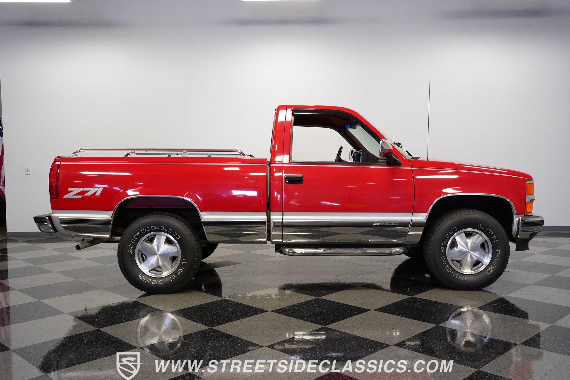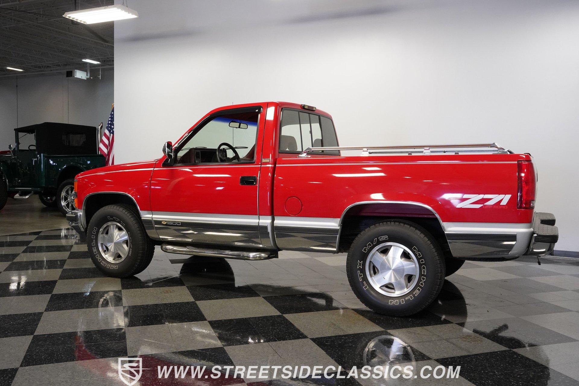 Few trucks can bridge the gap between daily utility and classic appeal the way this Chevrolet does. Picture weekend getaways, neighborhood pride, and simple, honest driving wrapped in a timeless two-tone finish. It speaks to owners who value authenticity, practical capability, and a truck that still turns heads at stoplights. If you are looking for a ready-to-enjoy classic with a strong feel and real presence, this 1994 Chevrolet K1500 Silverado Z71 4x4 with a 5.7L V8 and approximately 70,578 miles deserves a closer look. Step inside and you will find a remarkably clean, factory-style cabin that keeps the original character intact. Cloth seats, carpet, headliner, and door panels present very well with only light wear on the steering wheel and driver armrest. The dash is crack free and gauges are clear. Convenience features include tilt steering, power windows and locks, cruise control, and a premium Delco radio that preserve the truck s original comfort and functionality. Under the hood sits a 5.7 liter V8 that starts, runs, and cruises confidently, paired to a 4L60E four-speed automatic transmission. Fuel delivery is throttle body injected with stock manifolds and a factory-style exhaust that retains catalytic converters. The drivetrain rides on factory torsion bar front suspension and leaf springs in the rear with a GM 10 bolt axle. Braking and steering are driver friendly thanks to power front disc brakes and power steering, making this truck straightforward to drive and enjoy. Highlights 70,578 miles believed original Z71 Silverado package 5.7L V8 with throttle body injection 4L60E four-speed automatic transmission GM 10-bolt rear axle, 3.73 ratio Power front discs, rear power drums Power steering and tilt wheel Air conditioning system Clean cloth interior, factory style Sliding rear glass and chrome bedrails Michelin LT265/75R16 tires on 16 inch wheels Factory-style exhaust Documentation includes service records and photos This K1500 blends usable power, attractive presentation, and honest miles into a compelling package for collectors and drivers alike. If you would like to experience its strong V8 and comfortable factory interior in person, call today to arrange a test drive or request more information.