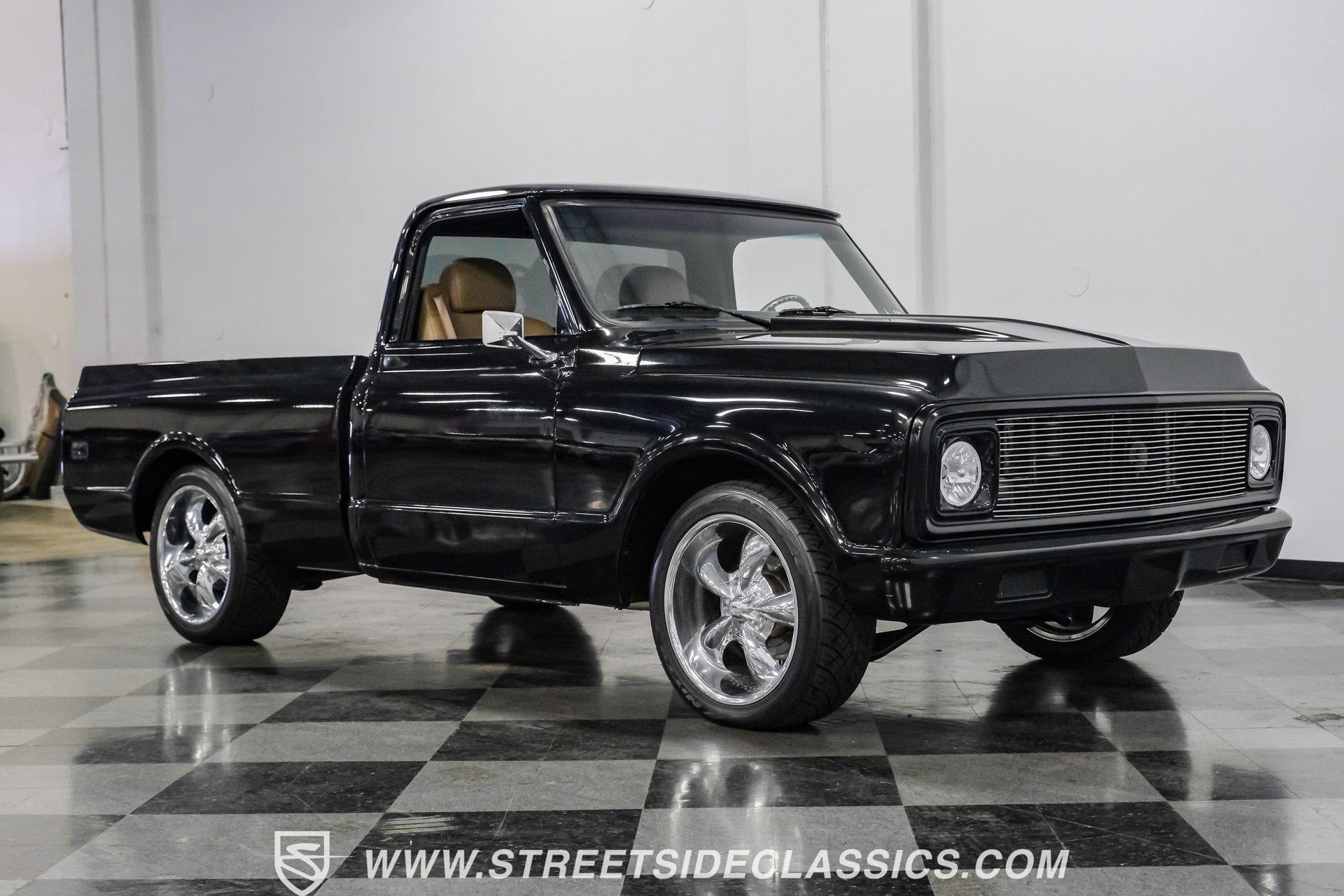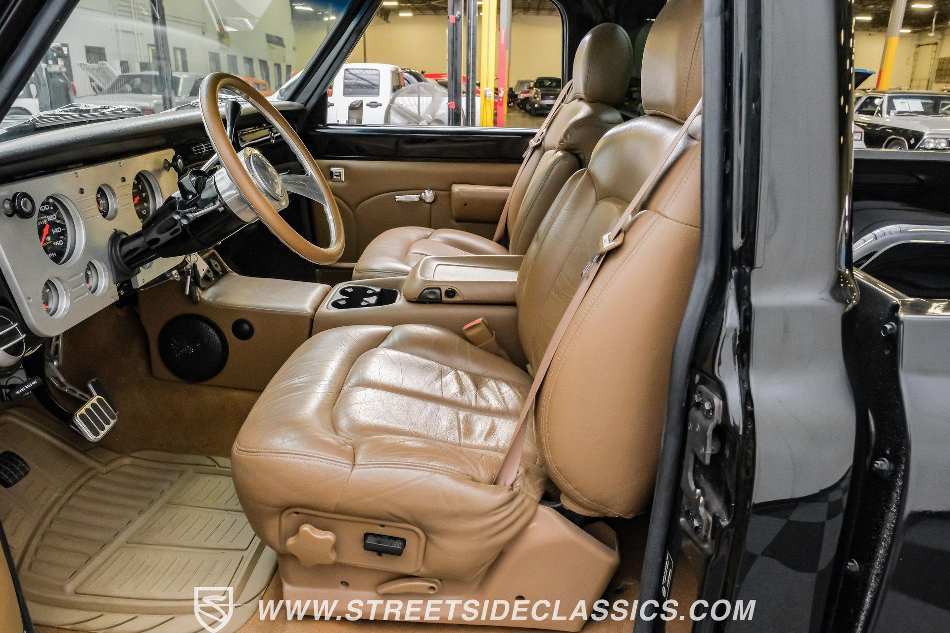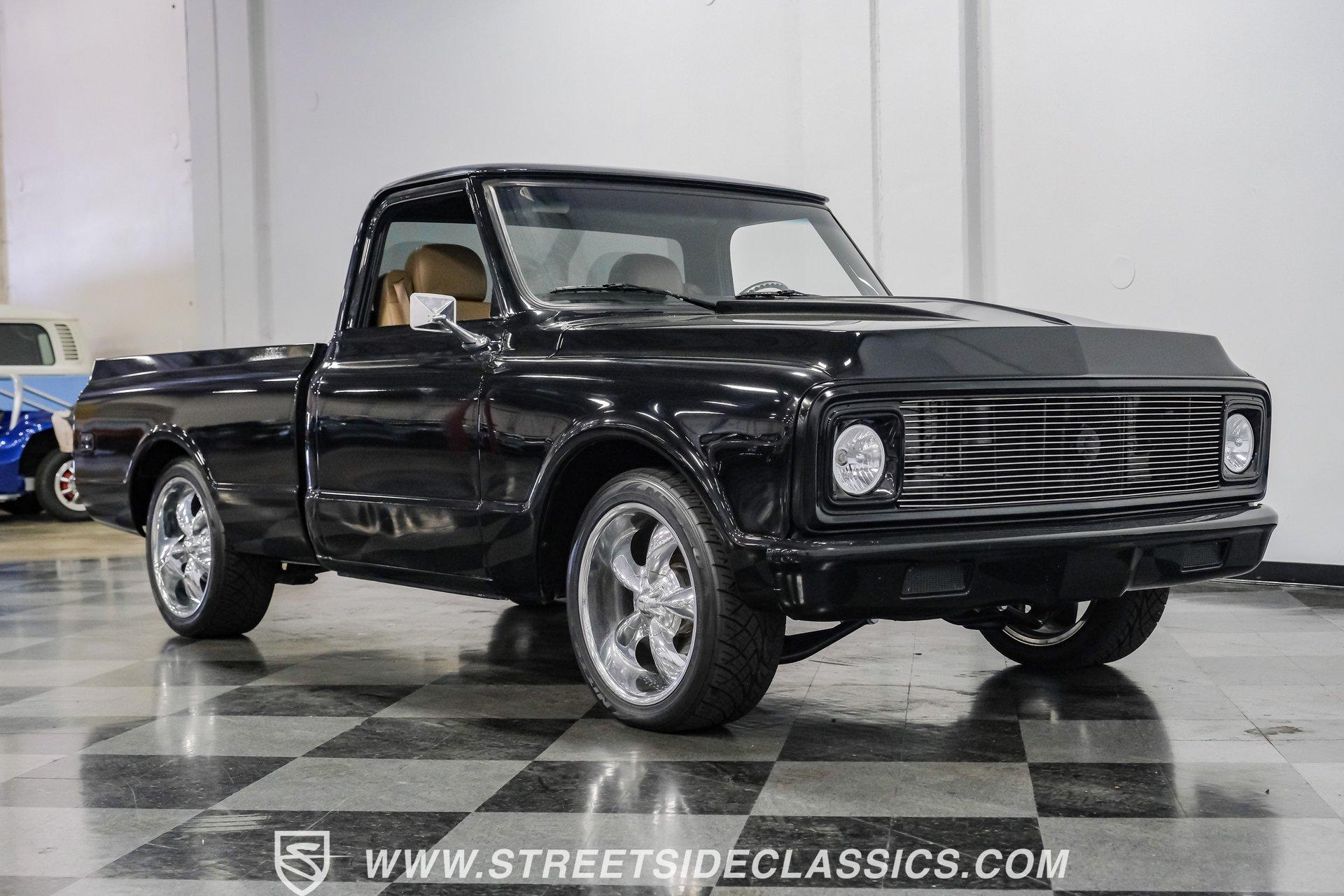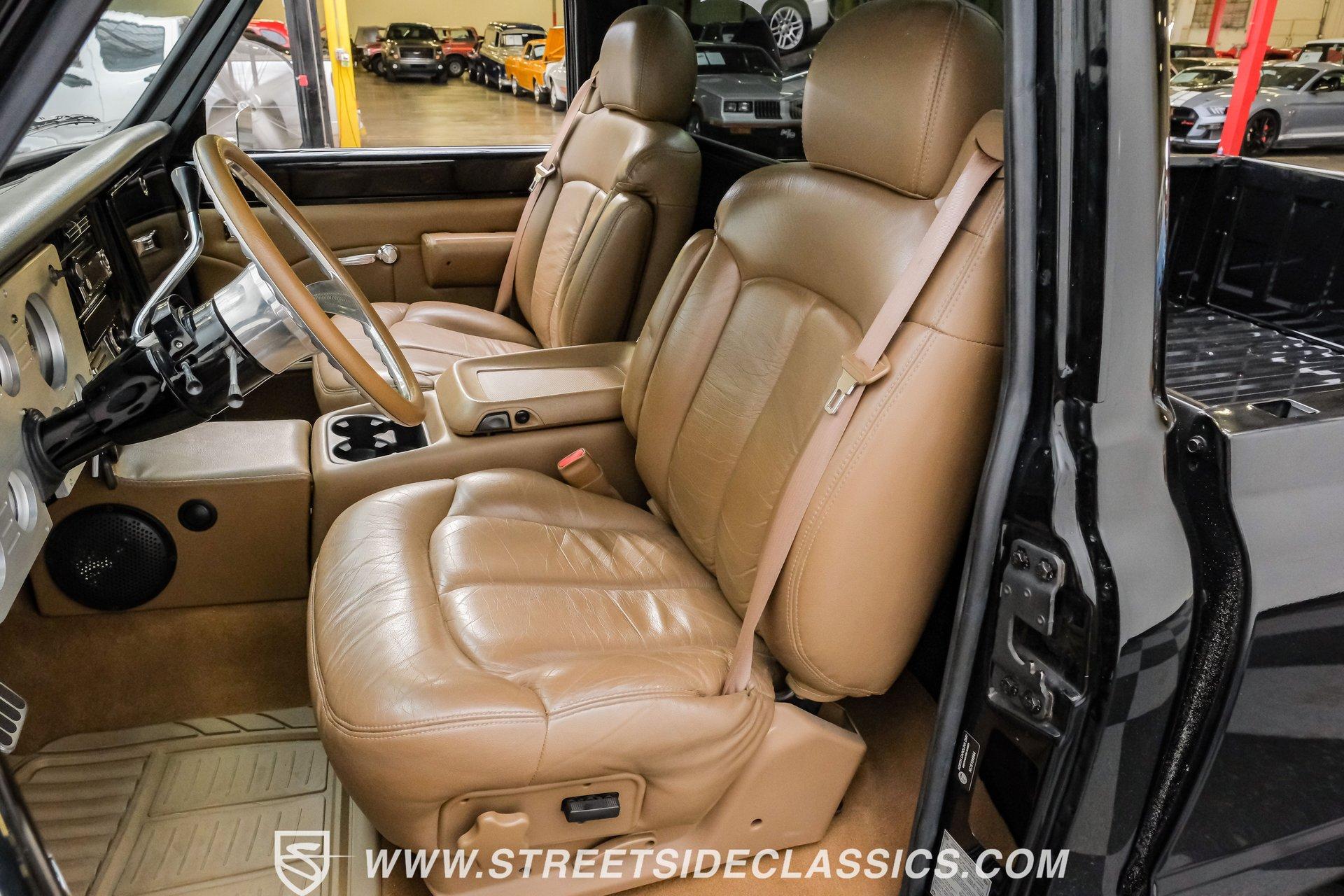 There is a particular pride that comes from owning a classic Chevrolet C10, a truck that announces itself on the street and sparks conversations at every stoplight. This build blends late model comfort with old school attitude, delivering a unique driving experience without being over-the-top. It wears a full repaint, shaved door handles, and modern conveniences that make it livable for weekend cruises or car shows. If you are looking for a standout restomod with muscle and presence, consider this 1972 Chevrolet C10 equipped with a supercharged 454 CI V8, a three-speed automatic transmission and comfortable A/C interior. Inside the cab you will find later model Tahoe leather seats and a center console that bring modern comfort to a classic layout. A power driver's seat and power windows add convenience. The dash features Auto-Meter gauges in a billet cluster, a billet custom steering wheel on a tilt column, remote door poppers, and a custom sound system paired with a Kenwood head unit. Under the very slick electrically powered hood this truck is built to be noticed. A 454 CI V8 with a Weiand supercharger and Holley carburetor breathes through long tube headers, and ignition is helped by an MSD box. Cooling is handled by an aluminum radiator with dual electric fans. The three-speed automatic TH400 sends power to a 12-bolt rear end. Power steering makes maneuvering easy and braking is front power discs with rear drums and the chassis rides on tubular lower control arms up front and a full custom rear with adjustable coilovers. Highlights: Supercharged 454 CI V8 with Weiand blower and Holley carb Three-speed automatic TH400 12-bolt differential Aluminum radiator with dual electric fans Air conditioning Power steering Front power disc brakes Front coil spring suspension with shocks and tubular lower control arms Rear suspension is full custom setup with adjustable coilovers 20 inch KMC wheels with 255/45R20 Nitto tires Later model Tahoe leather seats with center console Electric power hood This C10 is just waiting for someone who wants a comfortable, powerful restomod that draws attention everywhere it goes. Call today!