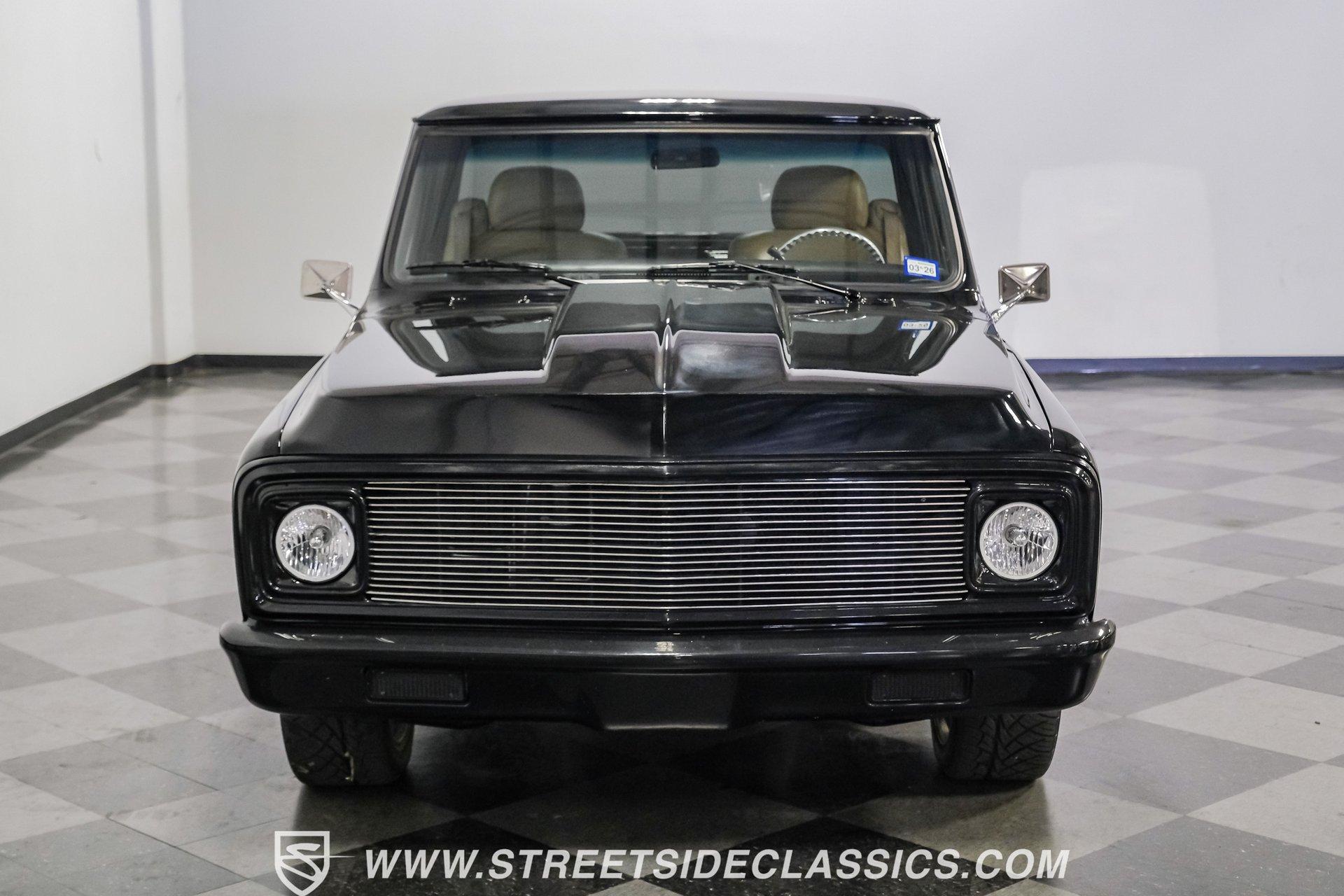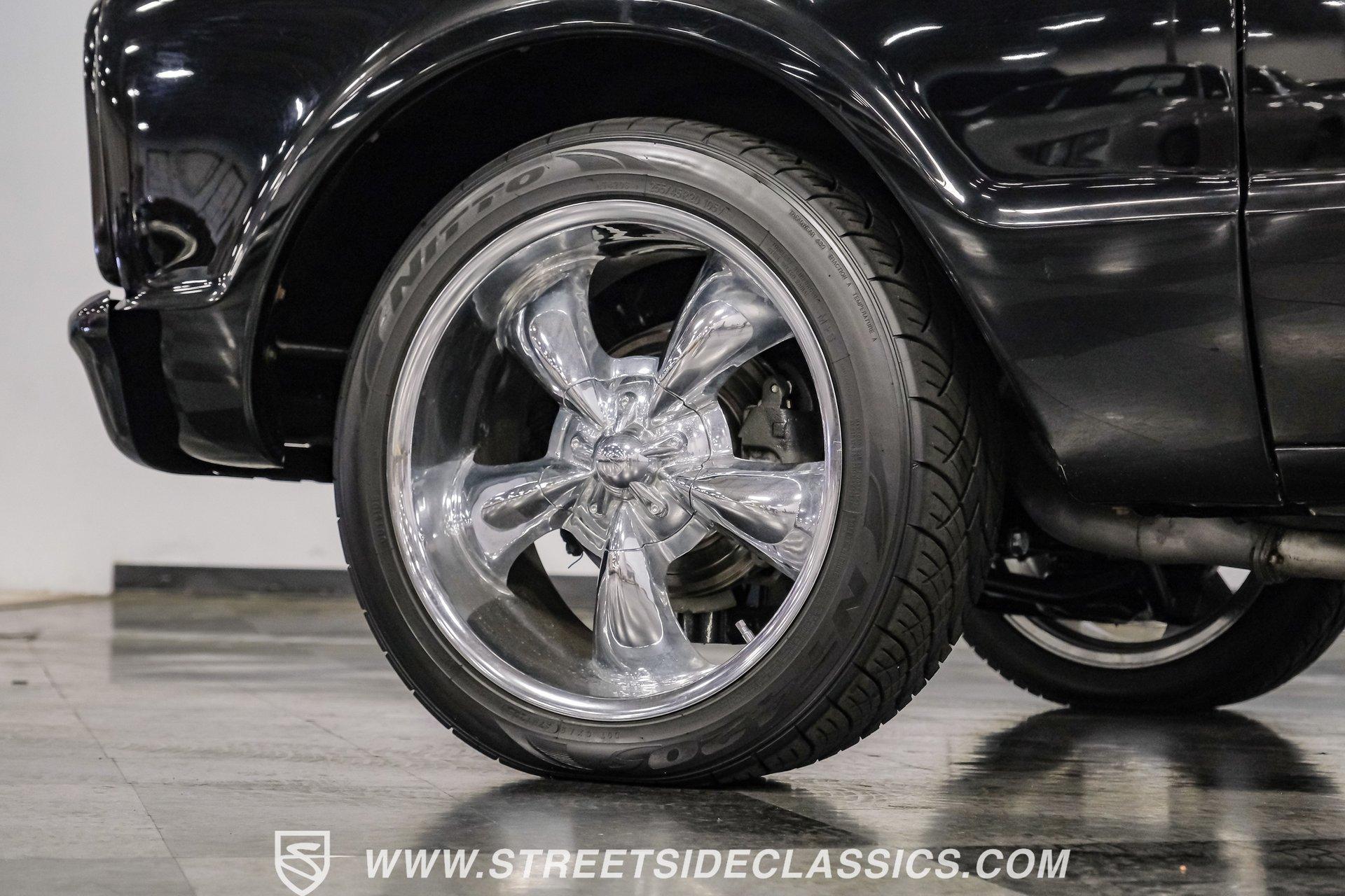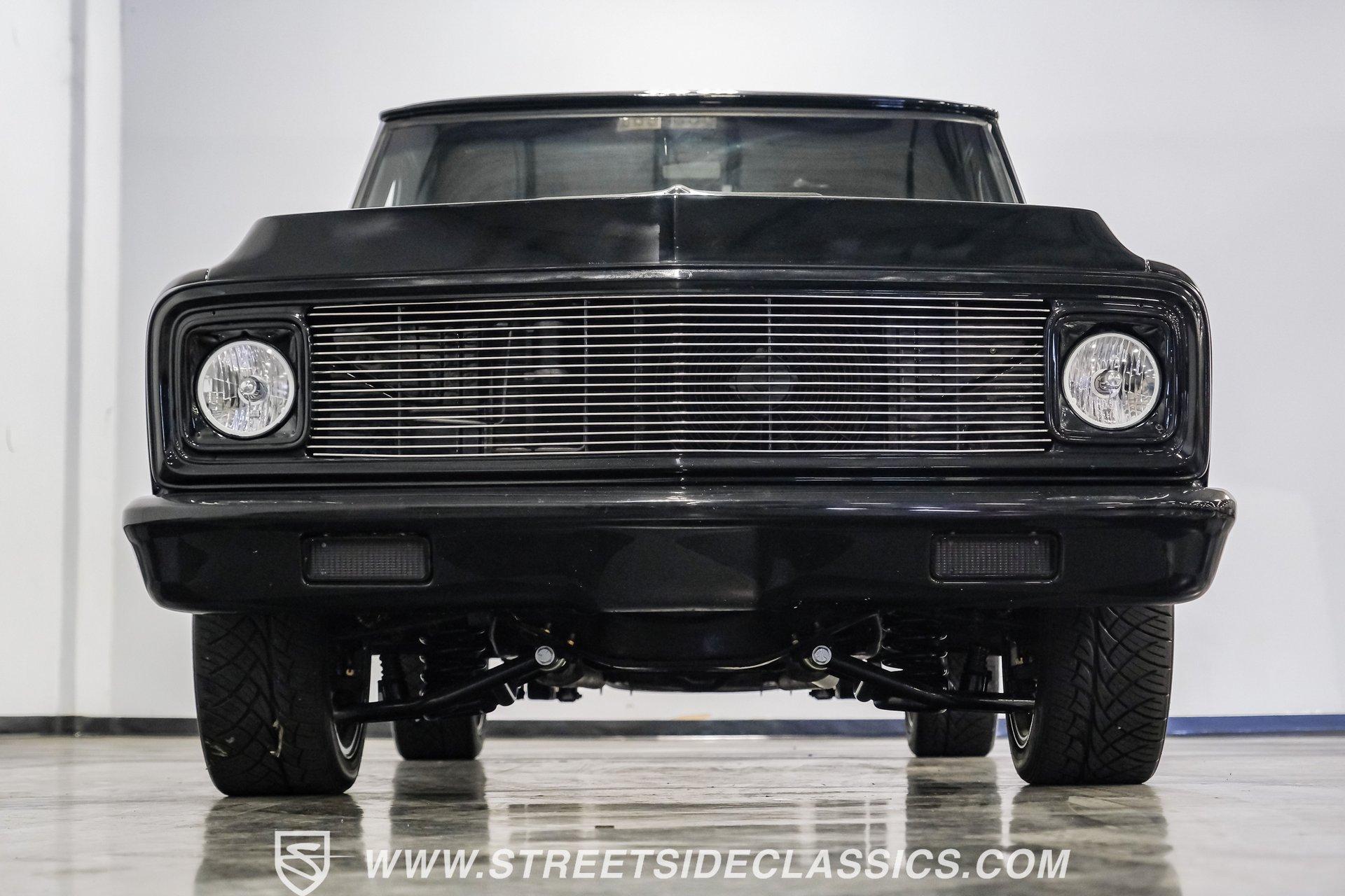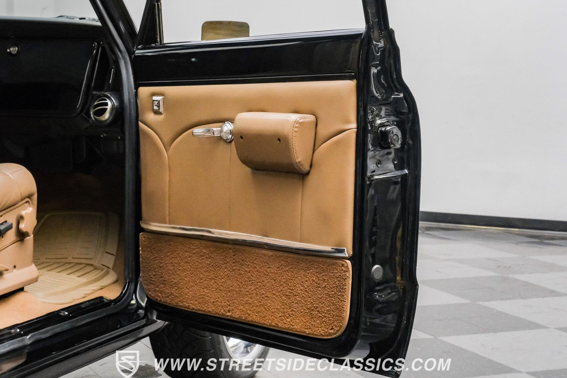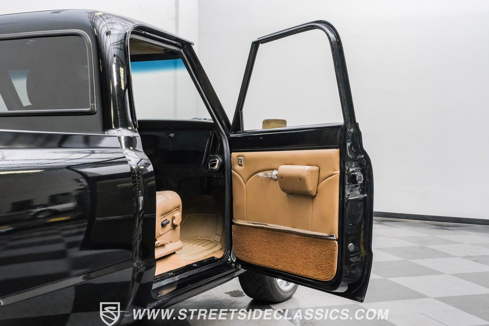 There is a particular pride that comes from owning a classic Chevrolet C10, a truck that announces itself on the street and sparks conversations at every stoplight. This build blends late model comfort with old school attitude, delivering a unique driving experience without being over-the-top. It wears a full repaint, shaved door handles, and modern conveniences that make it livable for weekend cruises or car shows. If you are looking for a standout restomod with muscle and presence, consider this 1972 Chevrolet C10 equipped with a supercharged 454 CI V8, a three-speed automatic transmission and comfortable A/C interior. Inside the cab you will find later model Tahoe leather seats and a center console that bring modern comfort to a classic layout. A power driver's seat and power windows add convenience. The dash features Auto-Meter gauges in a billet cluster, a billet custom steering wheel on a tilt column, remote door poppers, and a custom sound system paired with a Kenwood head unit. Under the very slick electrically powered hood this truck is built to be noticed. A 454 CI V8 with a Weiand supercharger and Holley carburetor breathes through long tube headers, and ignition is helped by an MSD box. Cooling is handled by an aluminum radiator with dual electric fans. The three-speed automatic TH400 sends power to a 12-bolt rear end. Power steering makes maneuvering easy and braking is front power discs with rear drums and the chassis rides on tubular lower control arms up front and a full custom rear with adjustable coilovers. Highlights: Supercharged 454 CI V8 with Weiand blower and Holley carb Three-speed automatic TH400 12-bolt differential Aluminum radiator with dual electric fans Air conditioning Power steering Front power disc brakes Front coil spring suspension with shocks and tubular lower control arms Rear suspension is full custom setup with adjustable coilovers 20 inch KMC wheels with 255/45R20 Nitto tires Later model Tahoe leather seats with center console Electric power hood This C10 is just waiting for someone who wants a comfortable, powerful restomod that draws attention everywhere it goes. Call today!