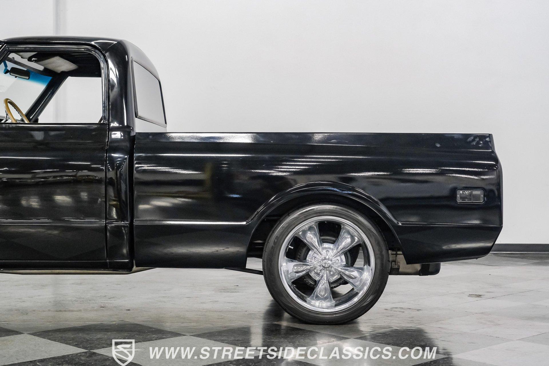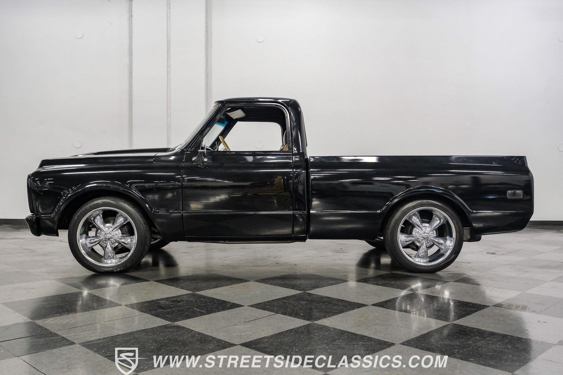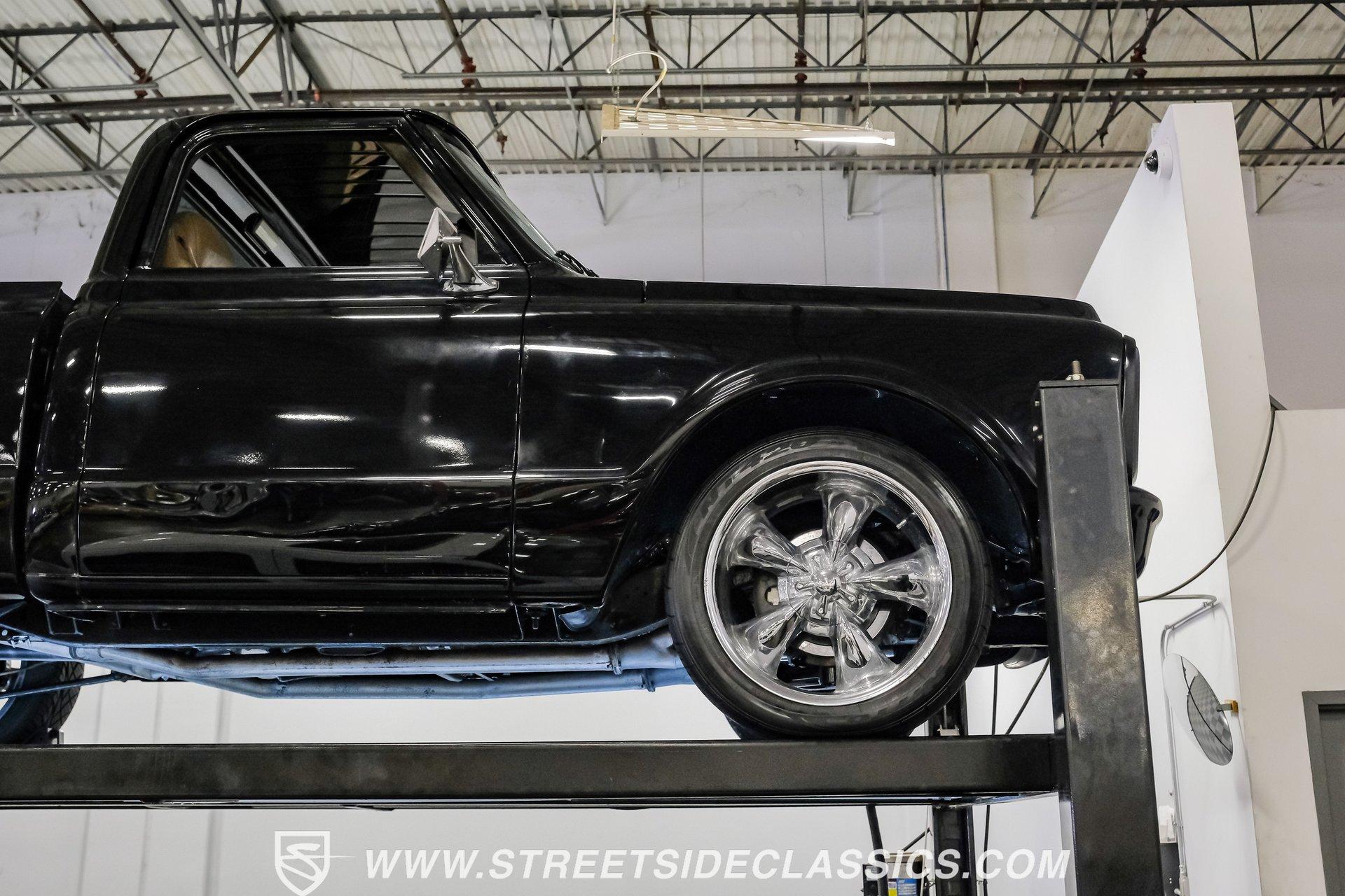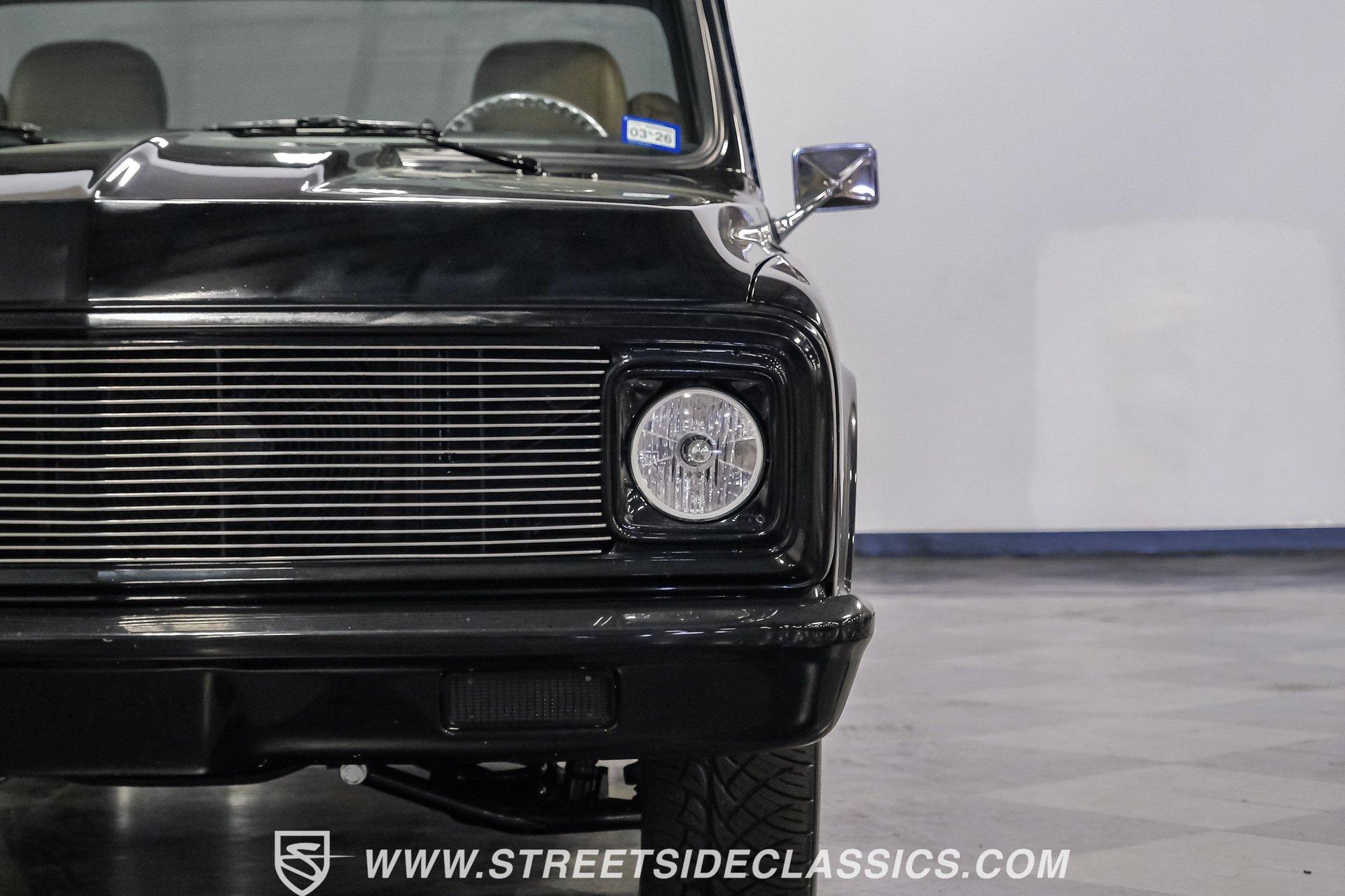 There is a particular pride that comes from owning a classic Chevrolet C10, a truck that announces itself on the street and sparks conversations at every stoplight. This build blends late model comfort with old school attitude, delivering a unique driving experience without being over-the-top. It wears a full repaint, shaved door handles, and modern conveniences that make it livable for weekend cruises or car shows. If you are looking for a standout restomod with muscle and presence, consider this 1972 Chevrolet C10 equipped with a supercharged 454 CI V8, a three-speed automatic transmission and comfortable A/C interior. Inside the cab you will find later model Tahoe leather seats and a center console that bring modern comfort to a classic layout. A power driver's seat and power windows add convenience. The dash features Auto-Meter gauges in a billet cluster, a billet custom steering wheel on a tilt column, remote door poppers, and a custom sound system paired with a Kenwood head unit. Under the very slick electrically powered hood this truck is built to be noticed. A 454 CI V8 with a Weiand supercharger and Holley carburetor breathes through long tube headers, and ignition is helped by an MSD box. Cooling is handled by an aluminum radiator with dual electric fans. The three-speed automatic TH400 sends power to a 12-bolt rear end. Power steering makes maneuvering easy and braking is front power discs with rear drums and the chassis rides on tubular lower control arms up front and a full custom rear with adjustable coilovers. Highlights: Supercharged 454 CI V8 with Weiand blower and Holley carb Three-speed automatic TH400 12-bolt differential Aluminum radiator with dual electric fans Air conditioning Power steering Front power disc brakes Front coil spring suspension with shocks and tubular lower control arms Rear suspension is full custom setup with adjustable coilovers 20 inch KMC wheels with 255/45R20 Nitto tires Later model Tahoe leather seats with center console Electric power hood This C10 is just waiting for someone who wants a comfortable, powerful restomod that draws attention everywhere it goes. Call today!
