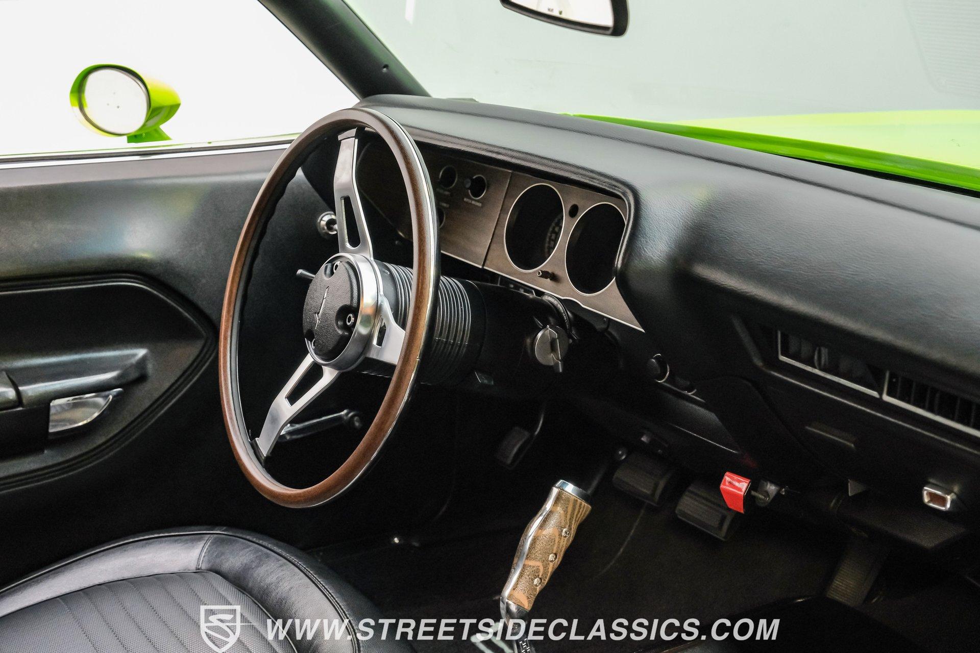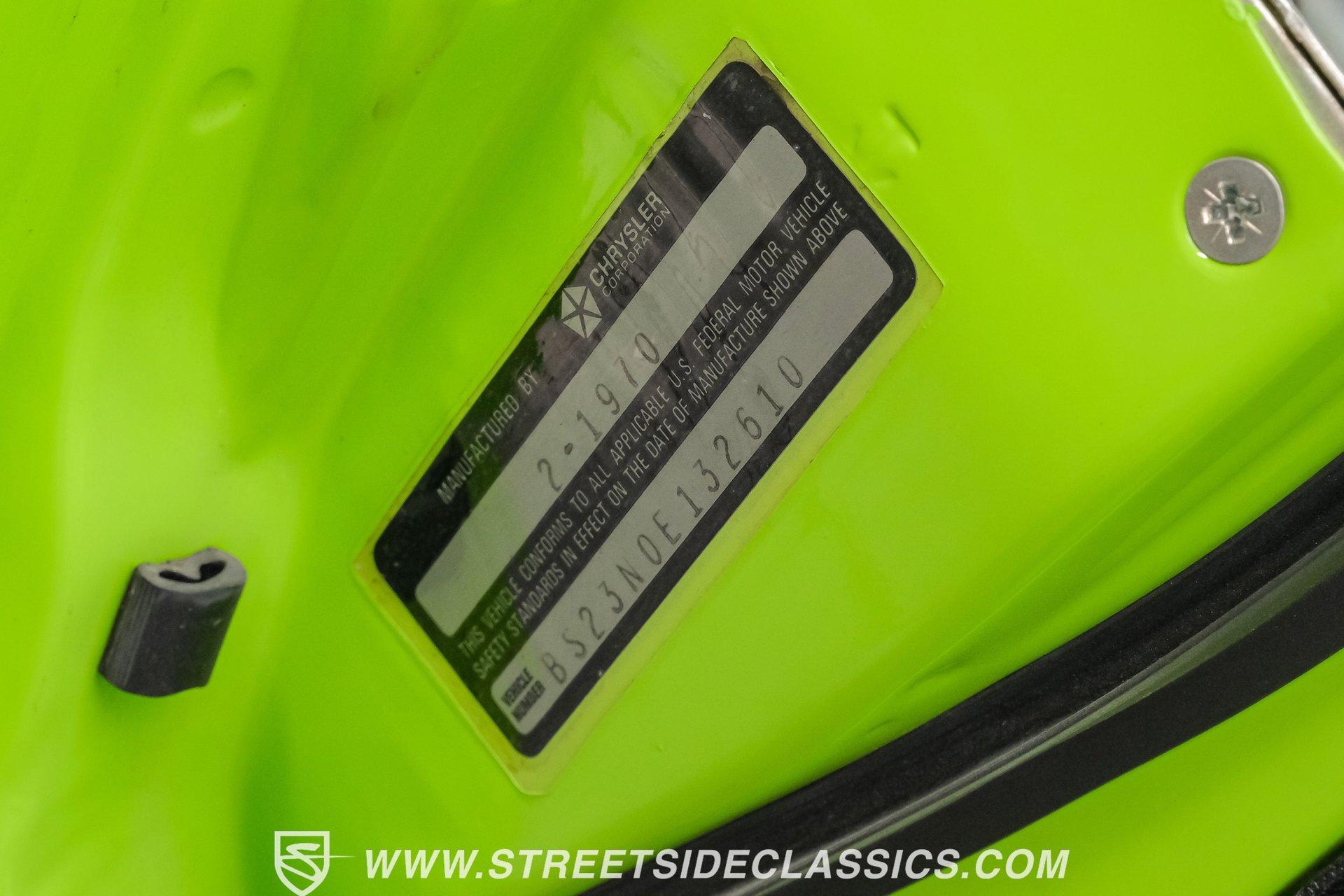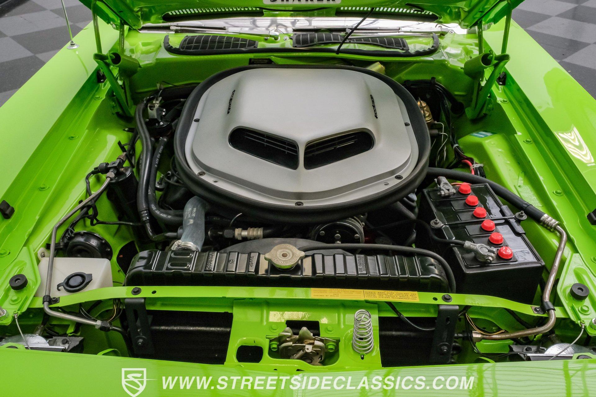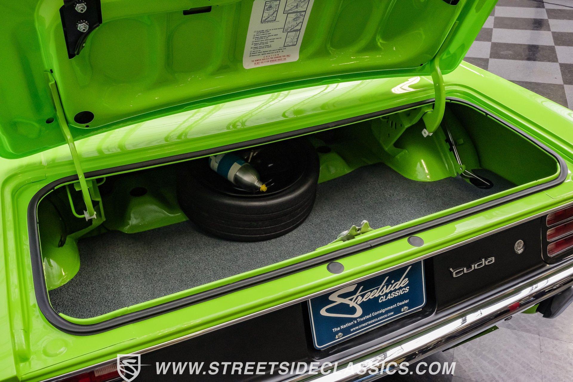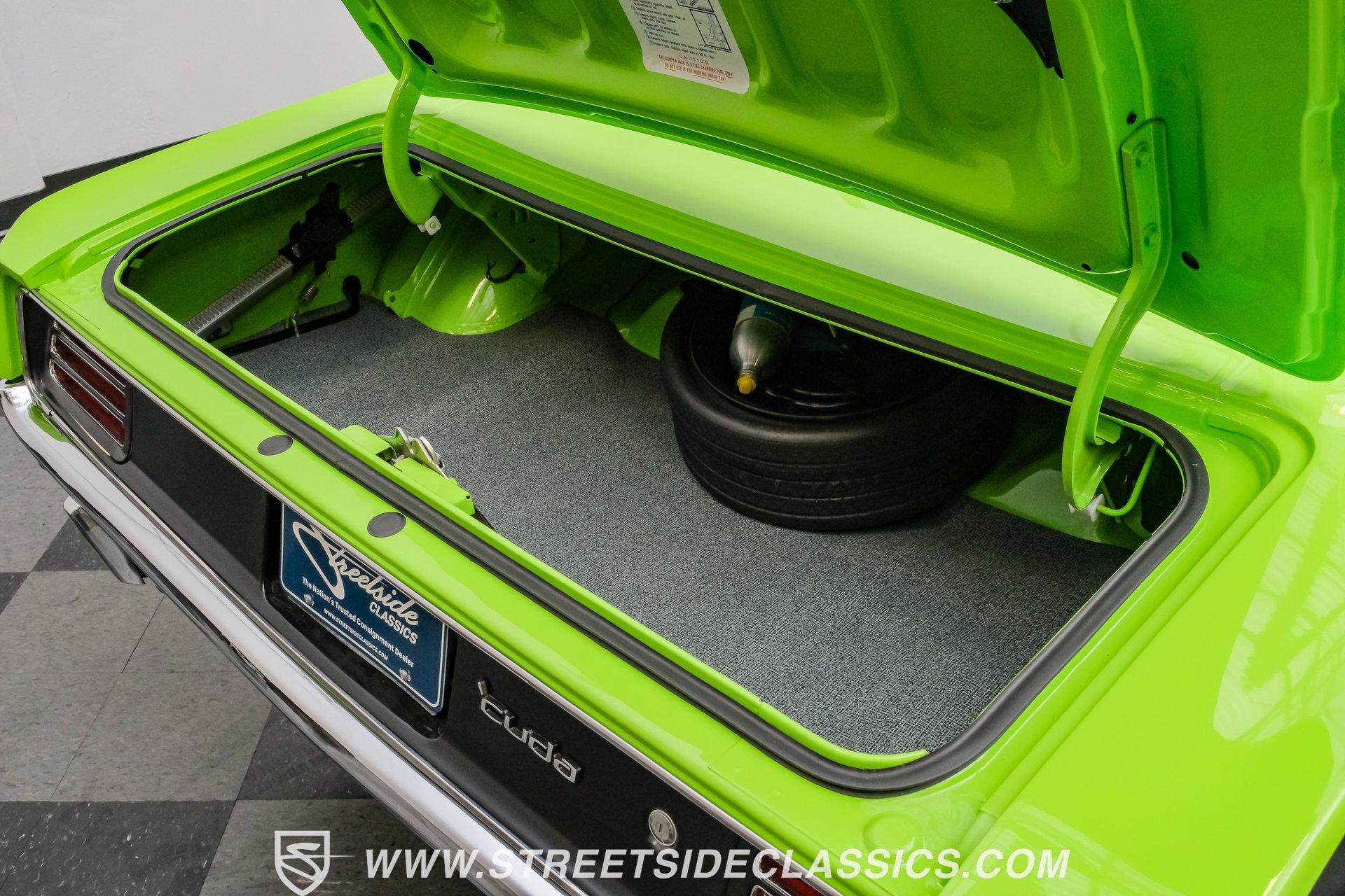 Owning a true Cuda is about making a statement, and this 1970 Plymouth Cuda Hemi Tribute captures that feeling in every line. Born an authentic 'Cuda in High Impact Lime Light, this car began life with the right bones and has been treated to a high quality restoration that dresses its classic attitude in show-ready form. With the iconic shaker hood, rear spoiler, and tasteful Hemi graphics on the quarters, it presents like a muscle car meant to be driven and admired. If you want a 1970 Plymouth Cuda with a 426 Hemi V8 and 4-speed manual that looks and feels special, this may be the one to see. Step inside and the cabin welcomes you with black vinyl bucket seats that present like new and a clean, crack-free dash. The wood grain steering wheel looks refreshed and the pistol grip shifter gives the cockpit authentic driver appeal. Air conditioning utilizes the stock AC and heat controls, and correct gauges maintain the vintage experience while Cuda floor mats and a center console add period charm. Under the hood in place of the original 383 sits a 426 Hemi V8, period correct and dressed and detailed in a very tidy bay. The transmission is a 4-speed manual which shifts smoothly and the chassis shows the results of a comprehensive frame-off style restoration with a gloss painted underside and sound suspension work. It runs dual exhaust, rides on 15 inch Rallye wheels with BF Goodrich tires, and uses power steering for easy driving. Brakes are drums front and rear and the car retains original style mechanicals that suit a true-restored cruiser. Highlights: High quality, frame-off style restoration; paint and body restored to a very high standard in factory correct Lime Light green Odometer reads 11,251; odometer is from the same car as the Hemi and is believed to reflect the engine mileage 426 Hemi V8, period correct Shaker hood 4-speed manual transmission with pistol grip shifter Air conditioning converted to R134a Power steering Drum brakes front and rear as original to this configuration Black vinyl buckets, wood grain wheel, center console Full repaint approximately 18 years ago, excellent finish with straight body panels and clean chrome and glass along with vinyl Hemi quarter decals 15 inch Rallye wheels with BF Goodrich tires 235/60R15 front and 255/60R15 rear This 1970 Plymouth Cuda Hemi Tribute blends authentic presence and thoughtful restoration into a package that is ready to be enjoyed. It represents a strong choice for collectors who appreciate period correct presentation with some modernized creature comforts. Call today!