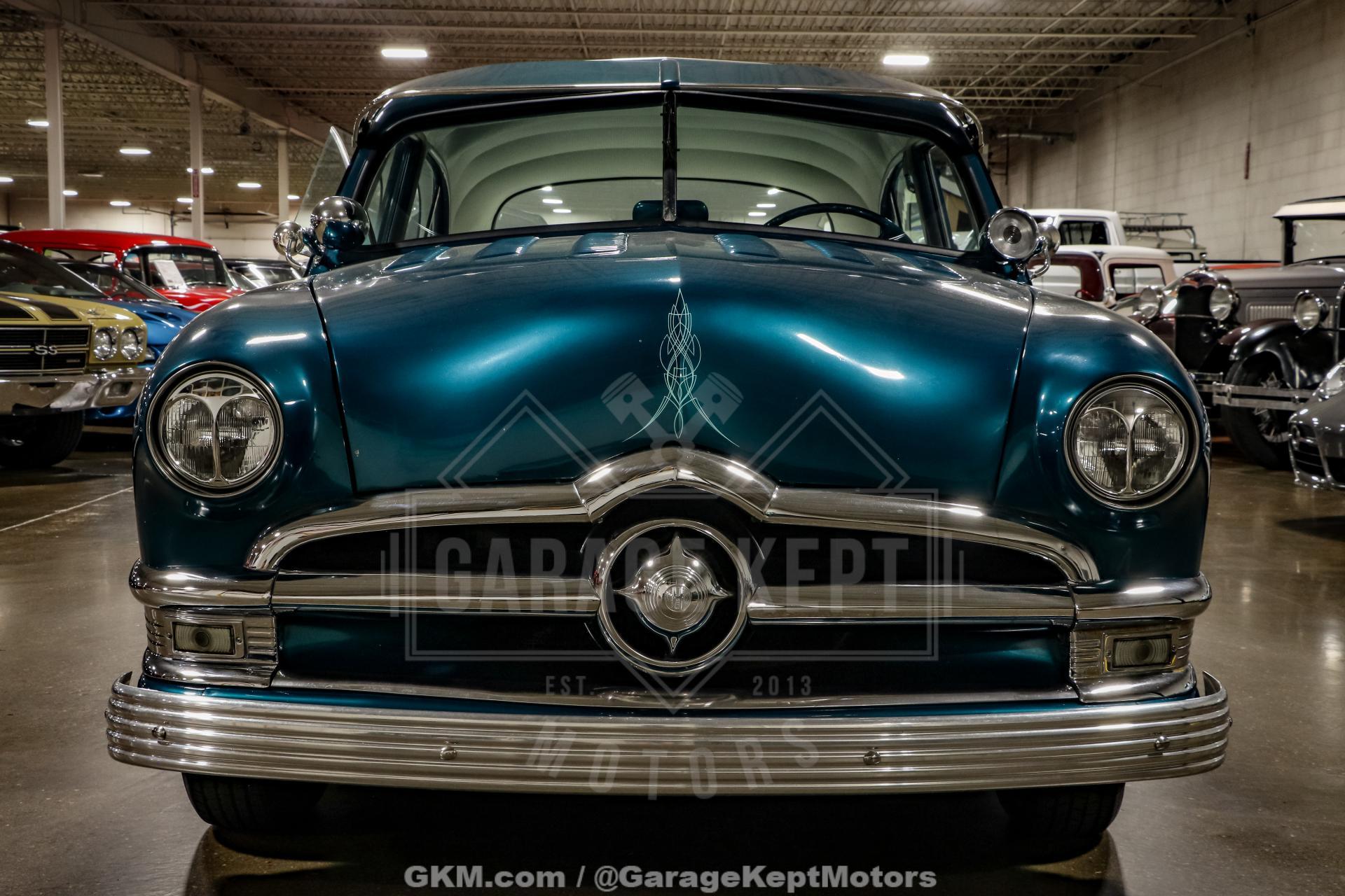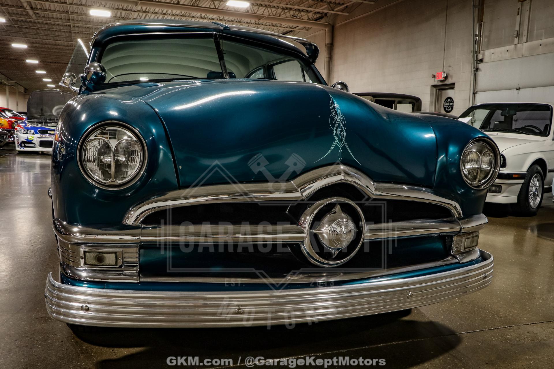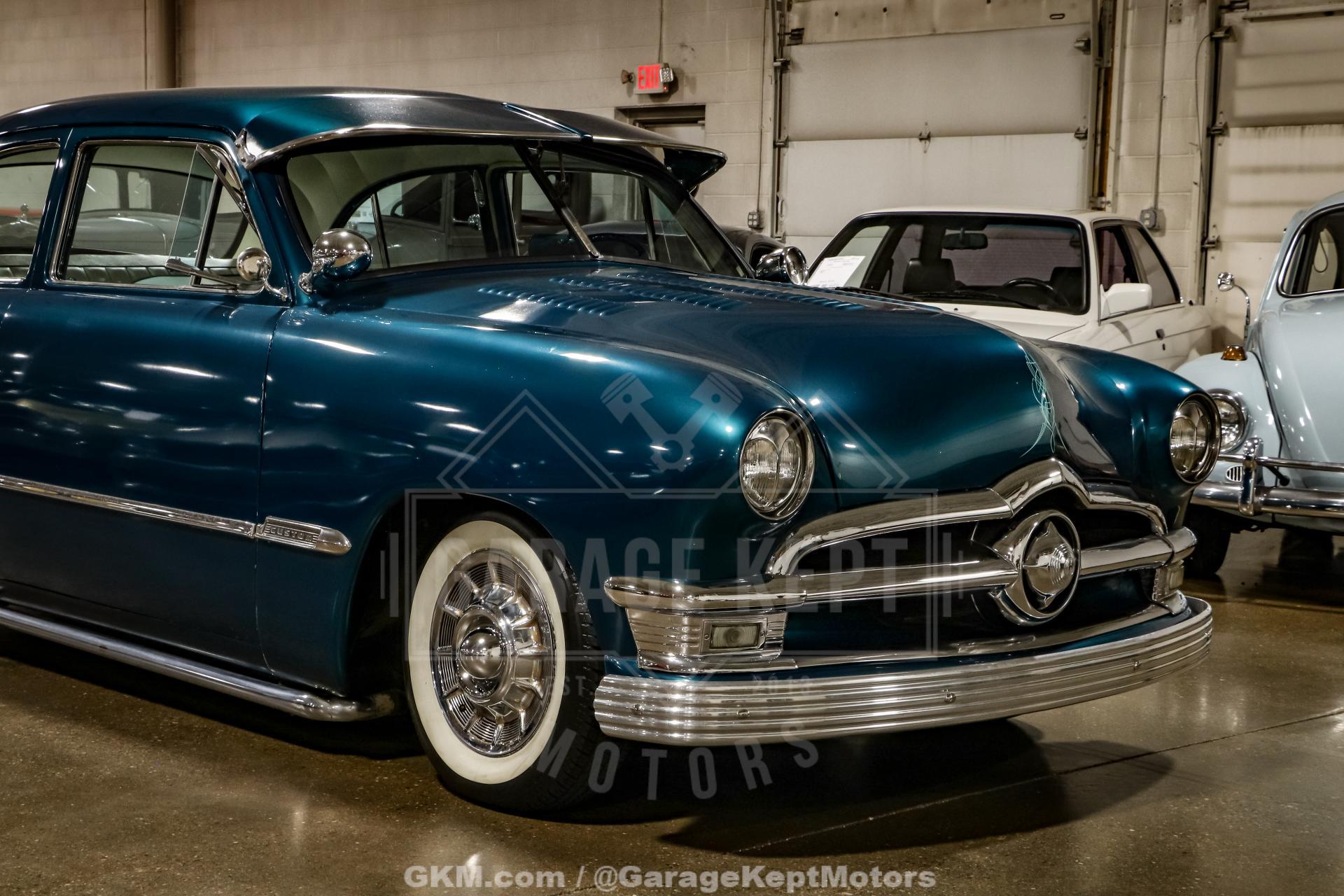 1950 Ford 2-Door Sedan- Professionally Built and Painted by Dave England and Frank Mund (Muskegon, MI)- Upholstery Done by Dale Dawson of L.A. Trim (Lowell, MI)- 1953 Ford Flathead V8- 3 Speed Manual Transmission- Teal Green Paint over White Custom Interior- Side Pipe Exhaust- Frenched Headlights and Taillights - Shaved Door Handles- Lowered 3 Inches- Finished Trunk- Sony Stereo Hidden in Glovebox- 1937 DeSoto Style 5-Ripple Front Bumper- 1943 Chevy Style License Guard- Cool, Custom Hot Rod- 62k Miles Shown This 1950 Ford 2-Door Sedan is a stunning example of classic American hot rod craftsmanship, blending traditional styling with custom flair. Professionally built and painted by Dave England and Frank Mund of Muskegon, Michigan, the car sports a striking Teal Green finish that perfectly complements its clean, white custom interior. The bodywork has been tastefully modified with frenched headlights and taillights, shaved door handles, and a 3-inch lowered stance, giving the vehicle a smooth, sleek silhouette that turns heads wherever it goes.Under the hood lies a 1953 Ford Flathead V8 engine, a legendary powerplant known for its raw character and distinctive sound. Paired with a 3-speed manual transmission, the drivetrain offers a truly authentic vintage driving experience. The side pipe exhaust not only adds an aggressive aesthetic but also produces a deep, throaty rumble that echoes the car?s hot rod heritage. With only 62,000 miles shown, this Ford remains a capable cruiser with plenty of life left.Inside, the interior has been beautifully finished by Dale Dawson of L.A. Trim in Lowell, Michigan. The white custom upholstery gives a fresh, retro feel, balanced by thoughtful modern touches like a Sony stereo system cleverly hidden in the glovebox. The cabin remains clean and functional while preserving the era?s charm, making it as enjoyable to sit in as it is to drive.The exterior details showcase a creative blend of custom and vintage components. A 1937 DeSoto-style 5-ripple front bumper adds a touch of pre-war elegance, while the 1943 Chevy-style license guard provides an additional nod to mid-century Americana. The finished trunk continues the car?s polished look, rounding out a build that clearly prioritizes quality and aesthetic balance.Altogether, this 1950 Ford 2-Door Sedan is more than just a classic carit?s a thoughtfully executed custom hot rod with personality and presence. With professional craftsmanship from nose to tail, this vehicle is a show-worthy cruiser ready for both car meets and weekend drives. Whether you?re a collector or a vintage enthusiast, this cool custom Ford is a standout piece of automotive artistry.