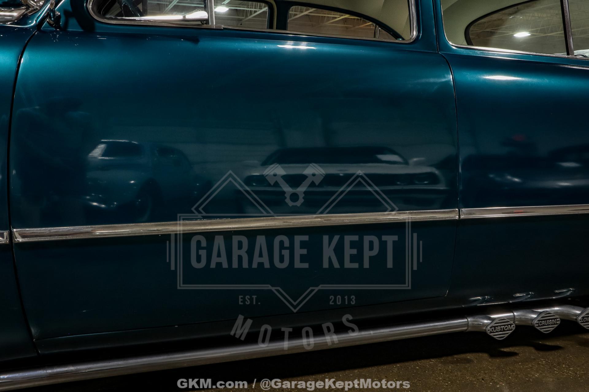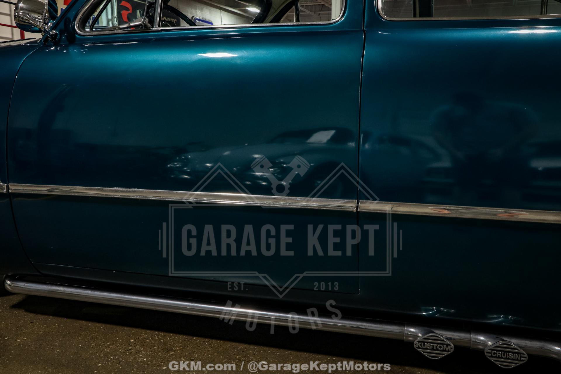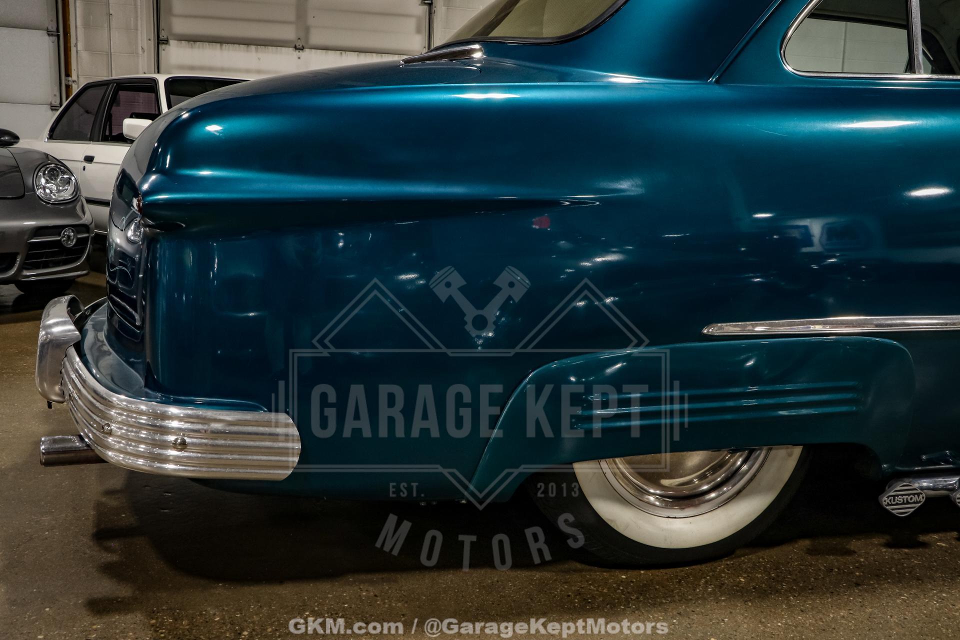 1950 Ford 2-Door Sedan- Professionally Built and Painted by Dave England and Frank Mund (Muskegon, MI)- Upholstery Done by Dale Dawson of L.A. Trim (Lowell, MI)- 1953 Ford Flathead V8- 3 Speed Manual Transmission- Teal Green Paint over White Custom Interior- Side Pipe Exhaust- Frenched Headlights and Taillights - Shaved Door Handles- Lowered 3 Inches- Finished Trunk- Sony Stereo Hidden in Glovebox- 1937 DeSoto Style 5-Ripple Front Bumper- 1943 Chevy Style License Guard- Cool, Custom Hot Rod- 62k Miles Shown This 1950 Ford 2-Door Sedan is a stunning example of classic American hot rod craftsmanship, blending traditional styling with custom flair. Professionally built and painted by Dave England and Frank Mund of Muskegon, Michigan, the car sports a striking Teal Green finish that perfectly complements its clean, white custom interior. The bodywork has been tastefully modified with frenched headlights and taillights, shaved door handles, and a 3-inch lowered stance, giving the vehicle a smooth, sleek silhouette that turns heads wherever it goes.Under the hood lies a 1953 Ford Flathead V8 engine, a legendary powerplant known for its raw character and distinctive sound. Paired with a 3-speed manual transmission, the drivetrain offers a truly authentic vintage driving experience. The side pipe exhaust not only adds an aggressive aesthetic but also produces a deep, throaty rumble that echoes the car?s hot rod heritage. With only 62,000 miles shown, this Ford remains a capable cruiser with plenty of life left.Inside, the interior has been beautifully finished by Dale Dawson of L.A. Trim in Lowell, Michigan. The white custom upholstery gives a fresh, retro feel, balanced by thoughtful modern touches like a Sony stereo system cleverly hidden in the glovebox. The cabin remains clean and functional while preserving the era?s charm, making it as enjoyable to sit in as it is to drive.The exterior details showcase a creative blend of custom and vintage components. A 1937 DeSoto-style 5-ripple front bumper adds a touch of pre-war elegance, while the 1943 Chevy-style license guard provides an additional nod to mid-century Americana. The finished trunk continues the car?s polished look, rounding out a build that clearly prioritizes quality and aesthetic balance.Altogether, this 1950 Ford 2-Door Sedan is more than just a classic carit?s a thoughtfully executed custom hot rod with personality and presence. With professional craftsmanship from nose to tail, this vehicle is a show-worthy cruiser ready for both car meets and weekend drives. Whether you?re a collector or a vintage enthusiast, this cool custom Ford is a standout piece of automotive artistry.
