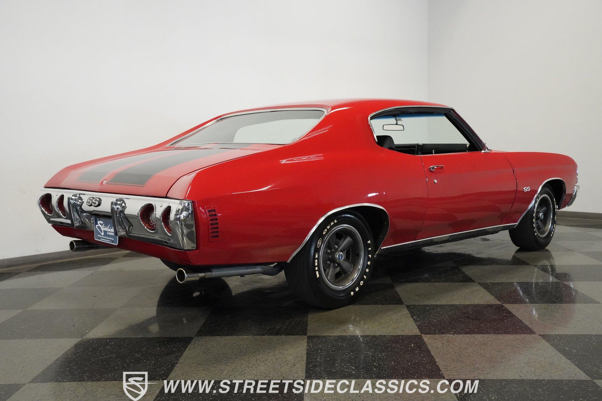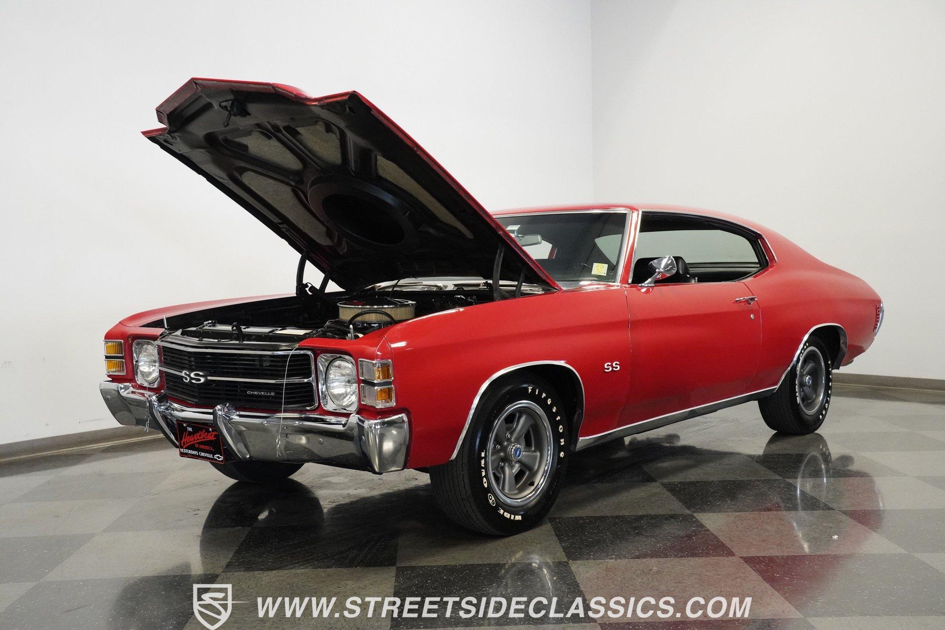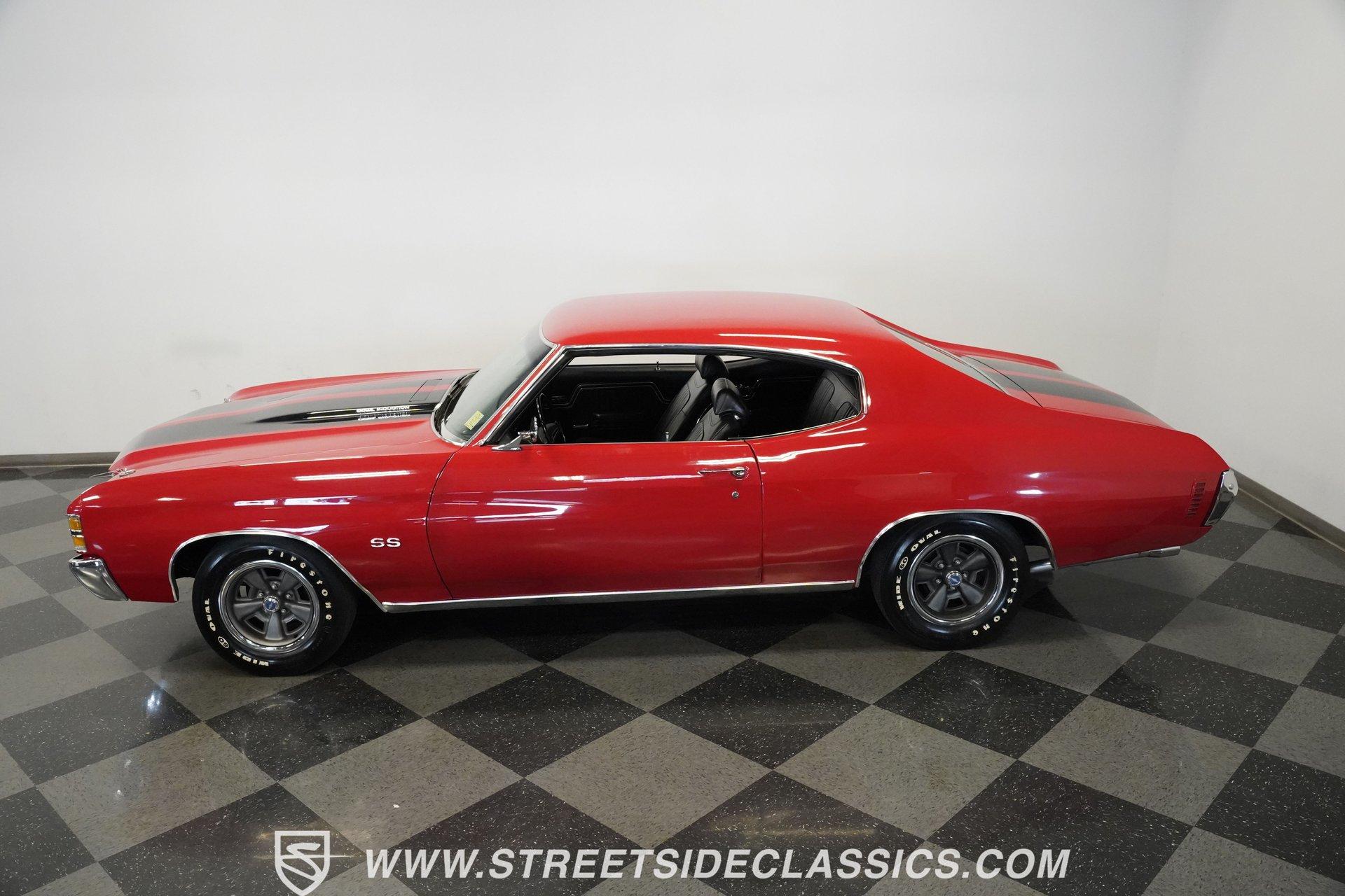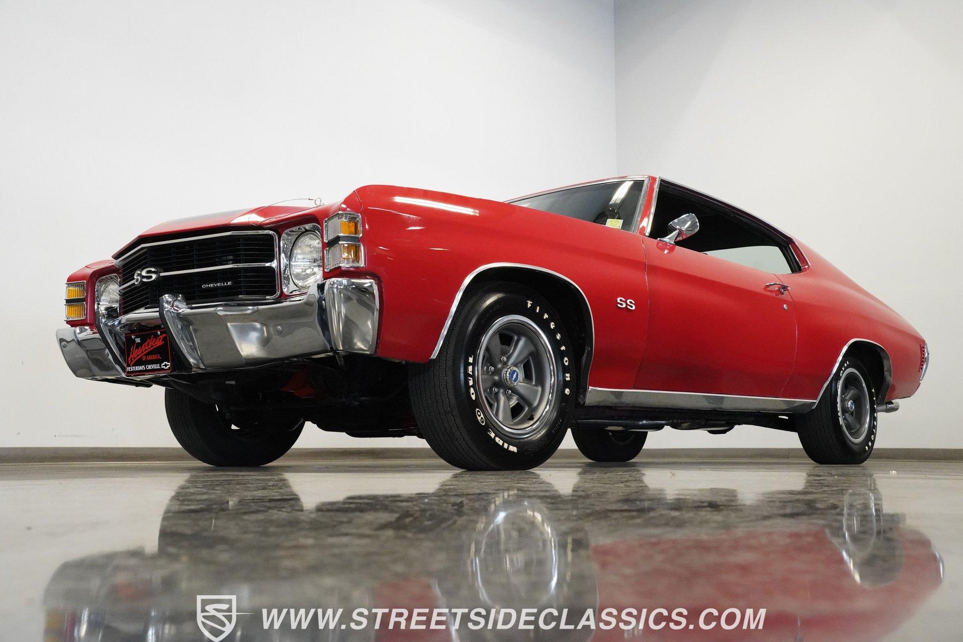 Few muscle cars command as much recognition and notoriety as the Chevelle. One look at this 1971 Chevrolet Chevelle SS 454 Tribute, and it's easy to see why this car has left an indelible mark on enthusiasts worldwide, despite being out of production since 1977. Fully repainted in a head-turning Cranberry red complemented by a set of full-length black painted SS stripes to go along with its pinned cowl-induction hood, this Tribute shows off the aggressive lines of the Chevelle from any angle. Inside, we find a clean black vinyl interior. A center console separates dual bucket seats, while a power-assisted, two-spoke steering wheel sits just ahead of a big three-pod gauge cluster featuring a 7,000 rpm tachometer and 120 mph speedometer. An old-school AM radio handles limited soundtrack duties, while a chrome cueball shifter combines with the easy-to-see shift pattern plate to provide all the entertainment necessary for any long drive. Under the hood, we find a clean engine bay with a massive 454 cubic-inch V-8 engine, on display. This big block sports a single four-barrel AVS2 carburetor and Edelbrock intake manifold, while spent gases are expelled through a set of long tube headers and guttural StreetMax dual exhaust. That power is routed through a Muncie four-speed manual transmission before being sent to a twelve-bolt rear end, which translates those ponies to the pavement via a set of 15-inch powder-coated black wheels with Chevrolet center caps, shod in Firestone Wide Oval tires. HIGHLIGHTS: Full Cranberry Red Repaint Black Racing Stripes Cowl Hood Hood Pins 454 CID V8 AVS2 Four Barrel Carb Edelbrock Intake Long Tube Headers StreetMax Dual Exhaust Muncie Four Speed Manual Power Steering 12 Bolt Rear Powder Coated Wheels Firestone Wide Oval Tires Power Brakes Front Disc Brakes Black Vinyl Interior This 1971 Chevrolet Chevelle SS 454 Tribute is equipped with a power brake setup highlighted by a set of discs up front, which are ready to scrub off speed at a moment's notice. If you have been looking for a great example of one of the baddest big-block monsters from the Golden Age of muscle cars, then look no further because this is the car for you. Don't wait, call today!