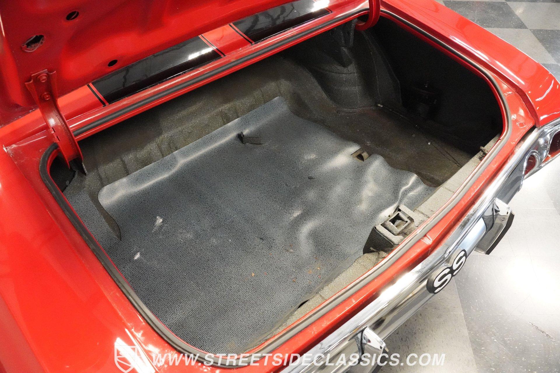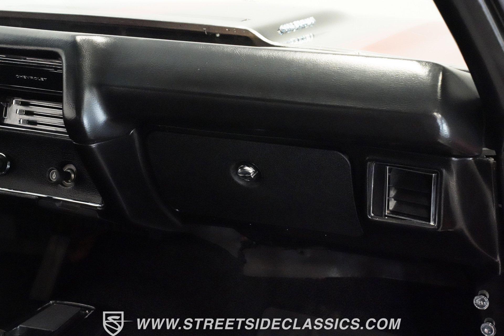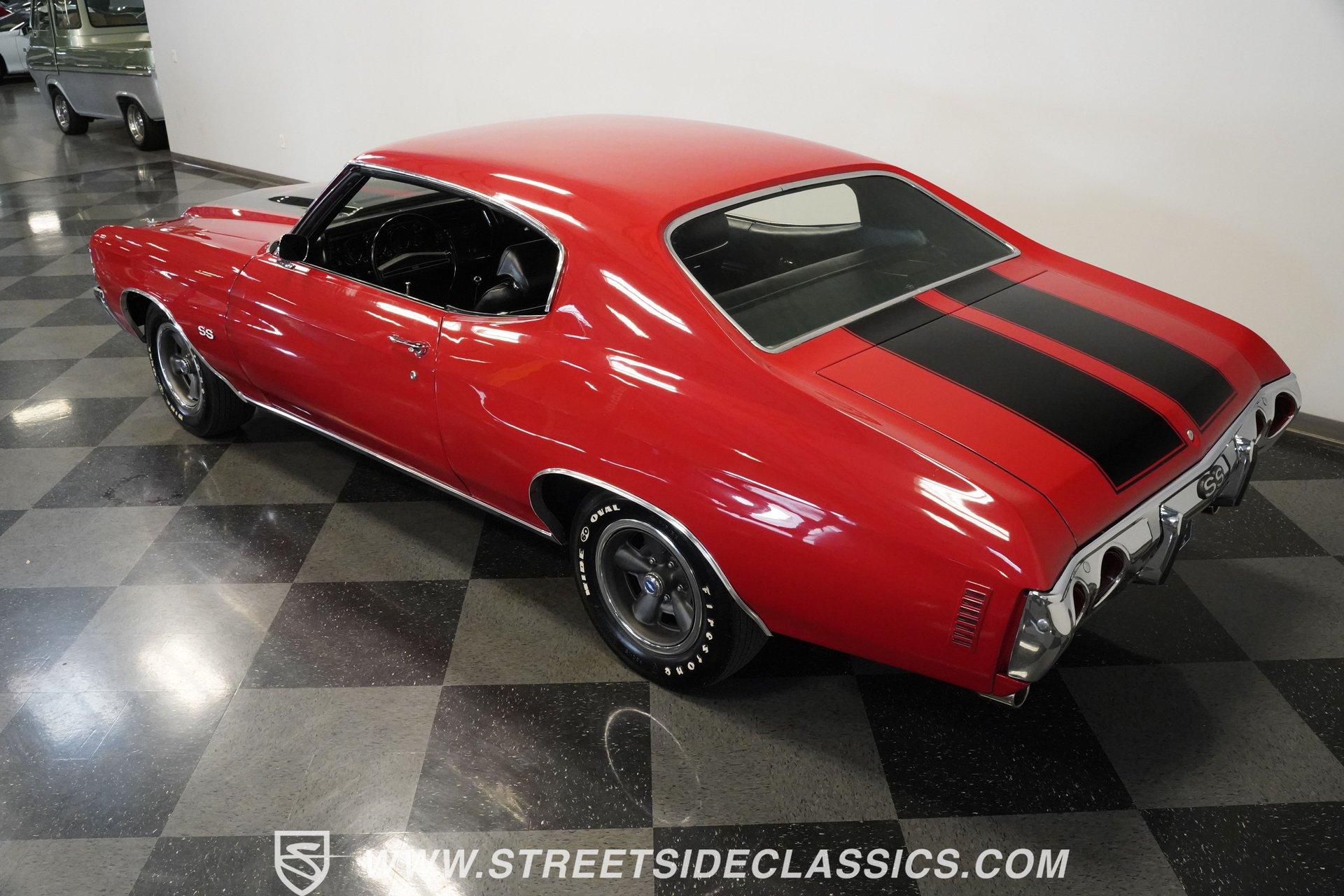 Few muscle cars command as much recognition and notoriety as the Chevelle. One look at this 1971 Chevrolet Chevelle SS 454 Tribute, and it's easy to see why this car has left an indelible mark on enthusiasts worldwide, despite being out of production since 1977. Fully repainted in a head-turning Cranberry red complemented by a set of full-length black painted SS stripes to go along with its pinned cowl-induction hood, this Tribute shows off the aggressive lines of the Chevelle from any angle. Inside, we find a clean black vinyl interior. A center console separates dual bucket seats, while a power-assisted, two-spoke steering wheel sits just ahead of a big three-pod gauge cluster featuring a 7,000 rpm tachometer and 120 mph speedometer. An old-school AM radio handles limited soundtrack duties, while a chrome cueball shifter combines with the easy-to-see shift pattern plate to provide all the entertainment necessary for any long drive. Under the hood, we find a clean engine bay with a massive 454 cubic-inch V-8 engine, on display. This big block sports a single four-barrel AVS2 carburetor and Edelbrock intake manifold, while spent gases are expelled through a set of long tube headers and guttural StreetMax dual exhaust. That power is routed through a Muncie four-speed manual transmission before being sent to a twelve-bolt rear end, which translates those ponies to the pavement via a set of 15-inch powder-coated black wheels with Chevrolet center caps, shod in Firestone Wide Oval tires. HIGHLIGHTS: Full Cranberry Red Repaint Black Racing Stripes Cowl Hood Hood Pins 454 CID V8 AVS2 Four Barrel Carb Edelbrock Intake Long Tube Headers StreetMax Dual Exhaust Muncie Four Speed Manual Power Steering 12 Bolt Rear Powder Coated Wheels Firestone Wide Oval Tires Power Brakes Front Disc Brakes Black Vinyl Interior This 1971 Chevrolet Chevelle SS 454 Tribute is equipped with a power brake setup highlighted by a set of discs up front, which are ready to scrub off speed at a moment's notice. If you have been looking for a great example of one of the baddest big-block monsters from the Golden Age of muscle cars, then look no further because this is the car for you. Don't wait, call today!