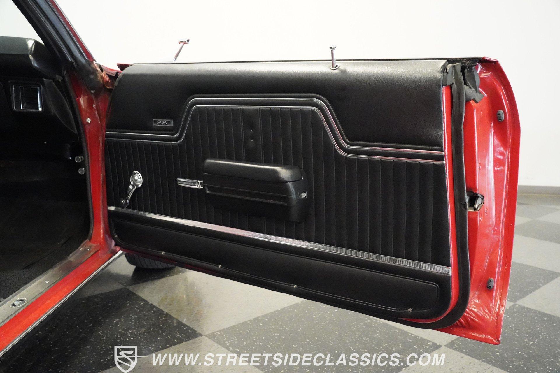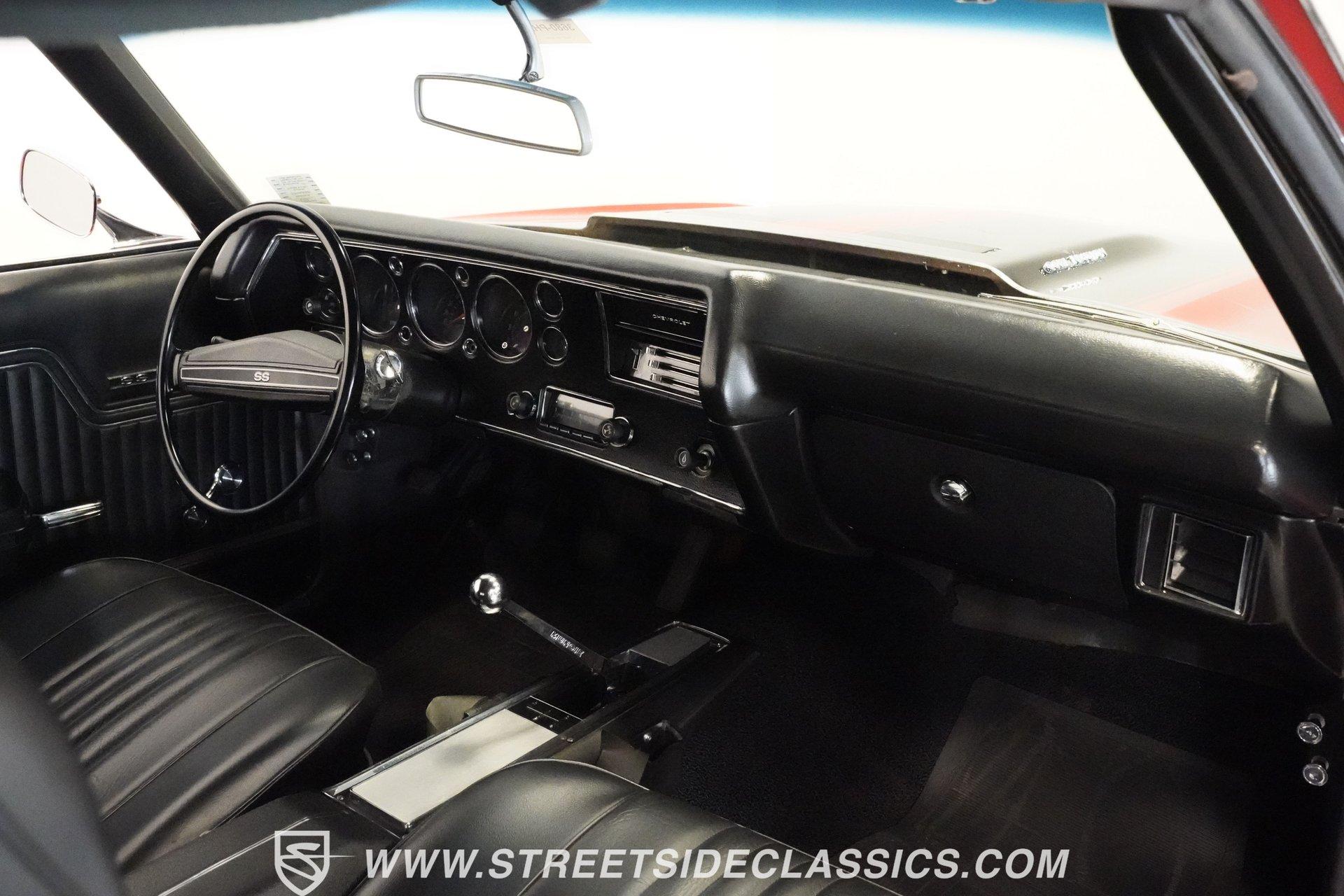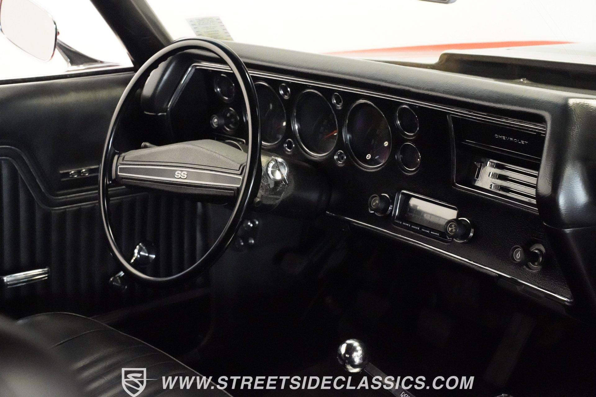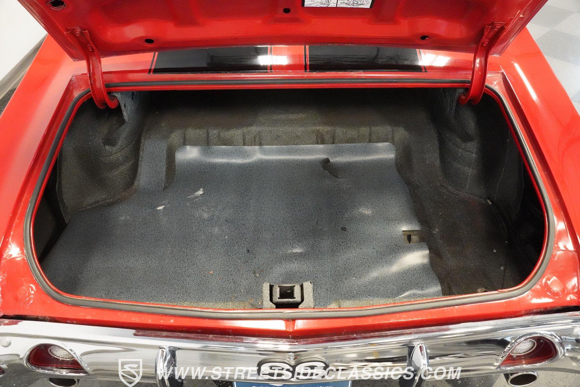 Few muscle cars command as much recognition and notoriety as the Chevelle. One look at this 1971 Chevrolet Chevelle SS 454 Tribute, and it's easy to see why this car has left an indelible mark on enthusiasts worldwide, despite being out of production since 1977. Fully repainted in a head-turning Cranberry red complemented by a set of full-length black painted SS stripes to go along with its pinned cowl-induction hood, this Tribute shows off the aggressive lines of the Chevelle from any angle. Inside, we find a clean black vinyl interior. A center console separates dual bucket seats, while a power-assisted, two-spoke steering wheel sits just ahead of a big three-pod gauge cluster featuring a 7,000 rpm tachometer and 120 mph speedometer. An old-school AM radio handles limited soundtrack duties, while a chrome cueball shifter combines with the easy-to-see shift pattern plate to provide all the entertainment necessary for any long drive. Under the hood, we find a clean engine bay with a massive 454 cubic-inch V-8 engine, on display. This big block sports a single four-barrel AVS2 carburetor and Edelbrock intake manifold, while spent gases are expelled through a set of long tube headers and guttural StreetMax dual exhaust. That power is routed through a Muncie four-speed manual transmission before being sent to a twelve-bolt rear end, which translates those ponies to the pavement via a set of 15-inch powder-coated black wheels with Chevrolet center caps, shod in Firestone Wide Oval tires. HIGHLIGHTS: Full Cranberry Red Repaint Black Racing Stripes Cowl Hood Hood Pins 454 CID V8 AVS2 Four Barrel Carb Edelbrock Intake Long Tube Headers StreetMax Dual Exhaust Muncie Four Speed Manual Power Steering 12 Bolt Rear Powder Coated Wheels Firestone Wide Oval Tires Power Brakes Front Disc Brakes Black Vinyl Interior This 1971 Chevrolet Chevelle SS 454 Tribute is equipped with a power brake setup highlighted by a set of discs up front, which are ready to scrub off speed at a moment's notice. If you have been looking for a great example of one of the baddest big-block monsters from the Golden Age of muscle cars, then look no further because this is the car for you. Don't wait, call today!
