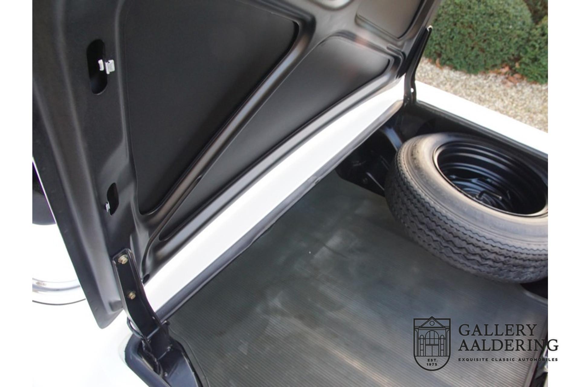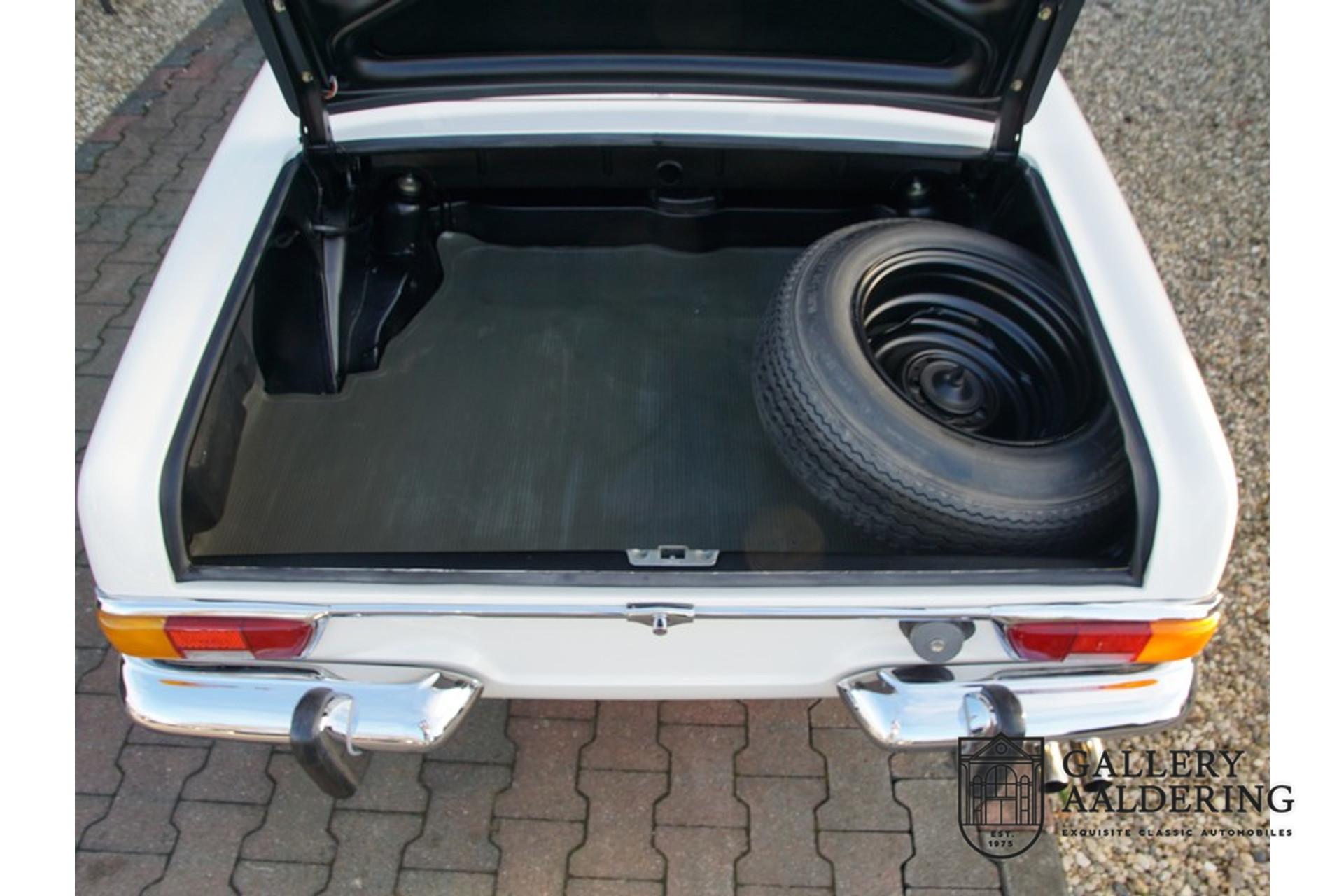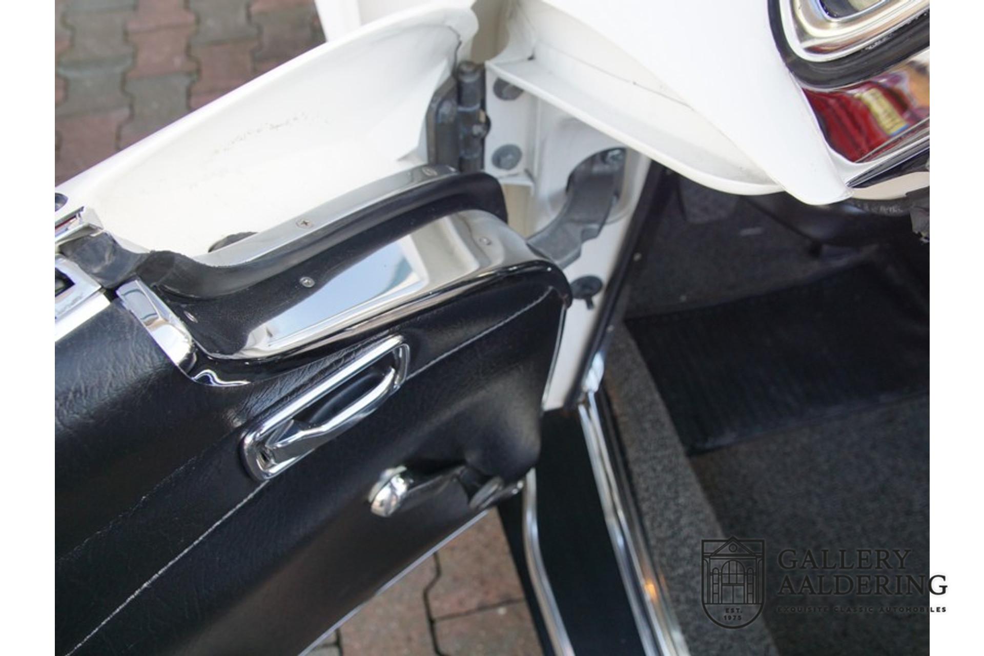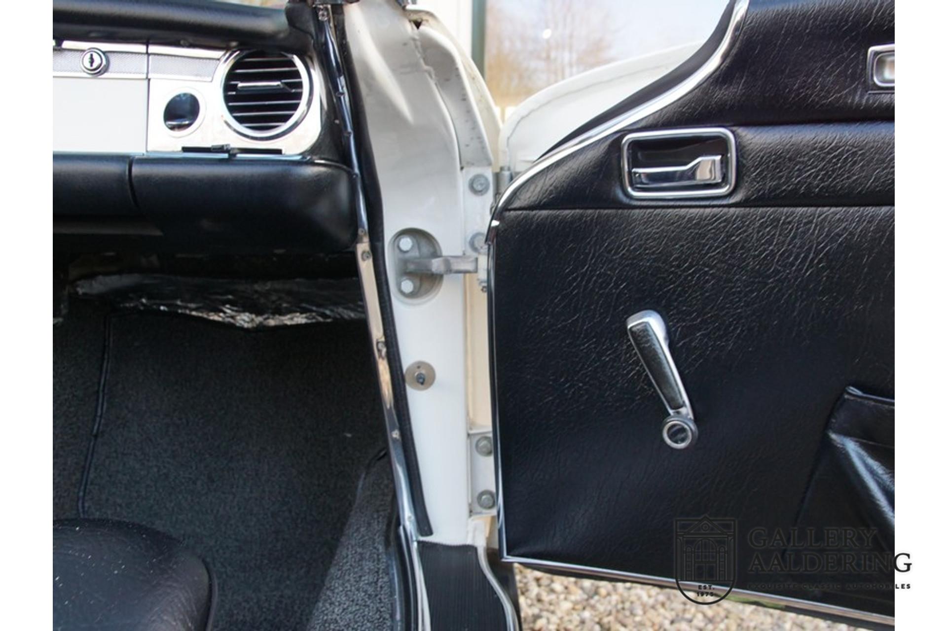 The classic color combination of a white exterior with a black interior is as timeless as it gets, and the cabin immediately impresses with its refinement. The upholstery is of outstanding quality, the carpets are immaculate, and the dashboard—complete with the correct steering wheel—looks superb. A thick file of invoices further confirms that this is an outstanding example in every respect.