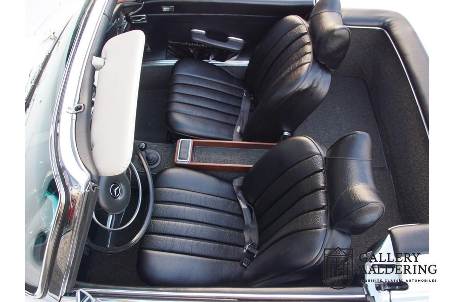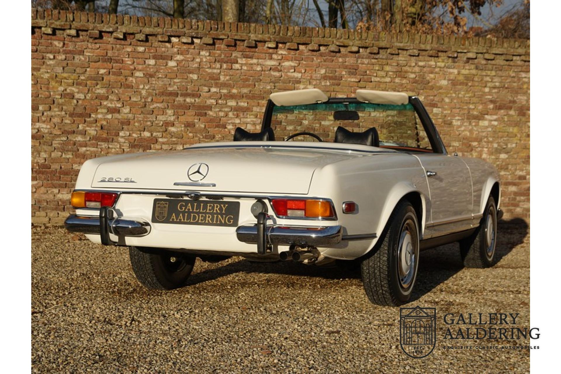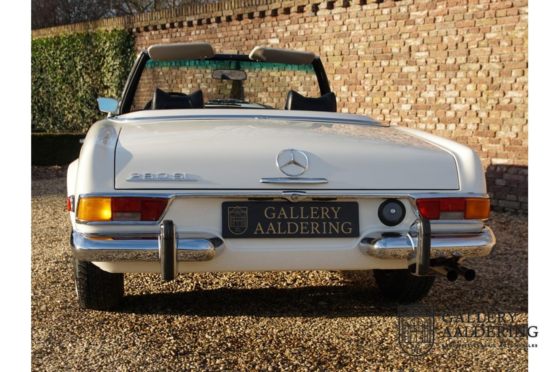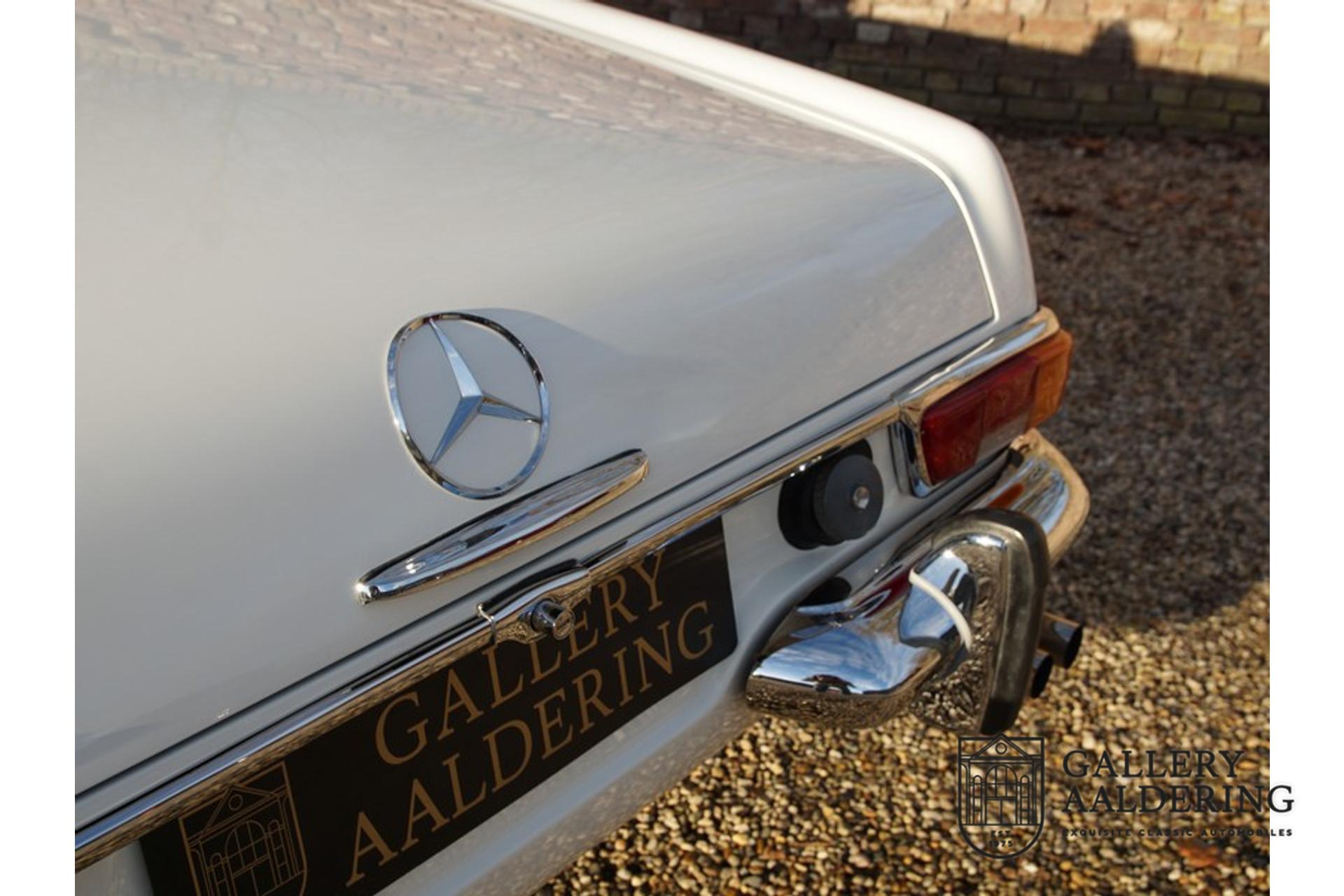 This particular example, a 1970 280 SL, has undergone extensive restoration and refurbishment and now presents in truly stunning condition. The paintwork displays a beautiful luster and is of very high quality. The panel fit is excellent, and the chrome trim is exceptionally clean and well finished. At this level of restoration, such quality is exactly what you would expect. The underside of this Mercedes is equally impressive—just take a look at the photographs on our website.