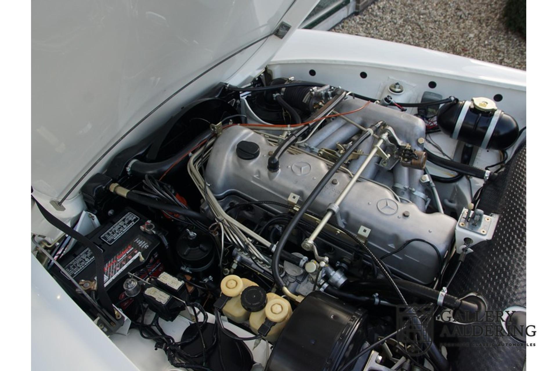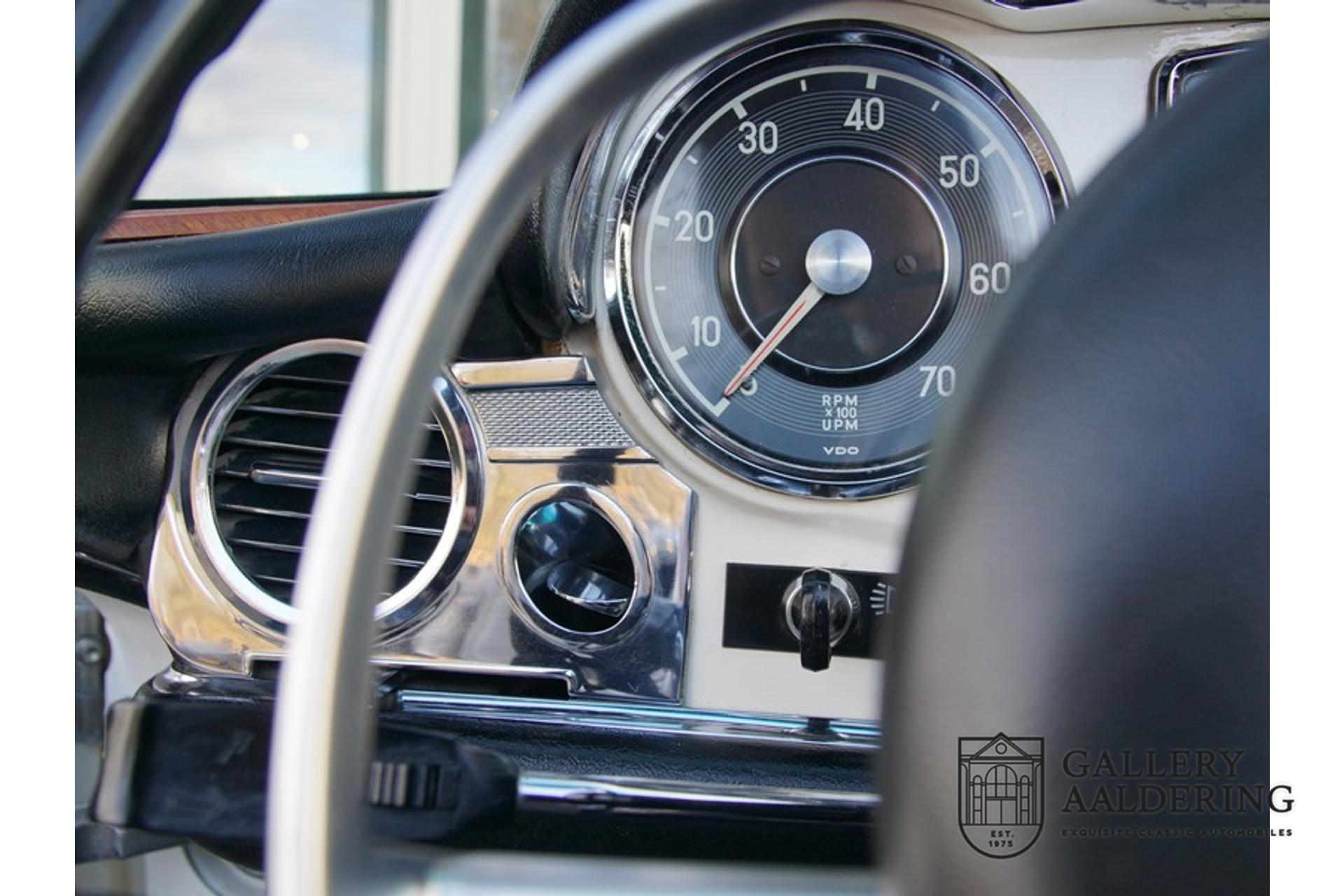The engine in this Mercedes is nothing short of legendary. Turn the key, and you instantly know you are behind the wheel of a Mercedes-Benz. The sound is smooth, with no intrusive vibrations, and the driving experience is simply unforgettable. It is easy to forget that you are piloting a car more than fifty years old. This example is fitted with a manual transmission, giving the drive a more sporting character. The gearbox shifts with precision and feel, and the wonderfully refined engine always provides ample power.