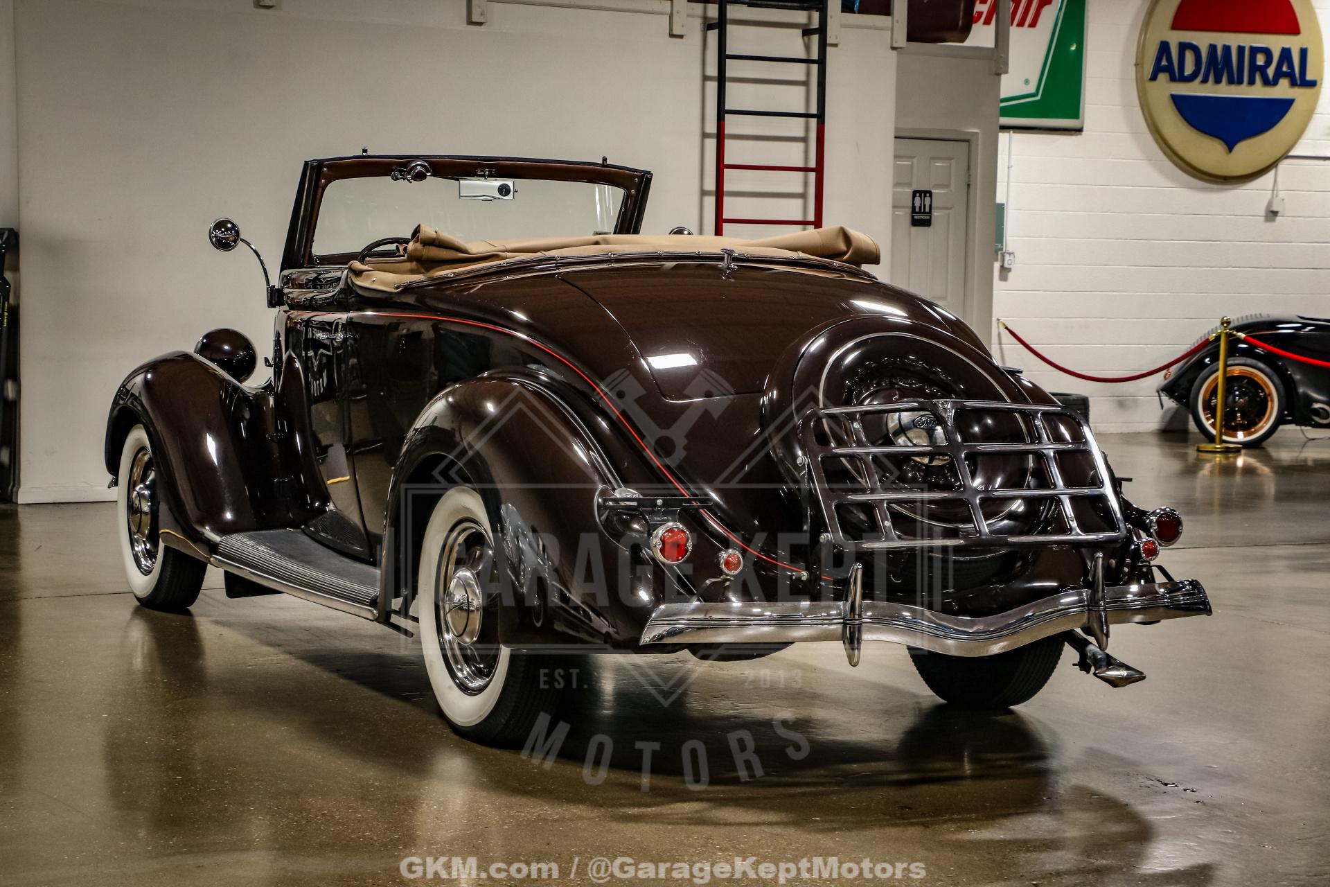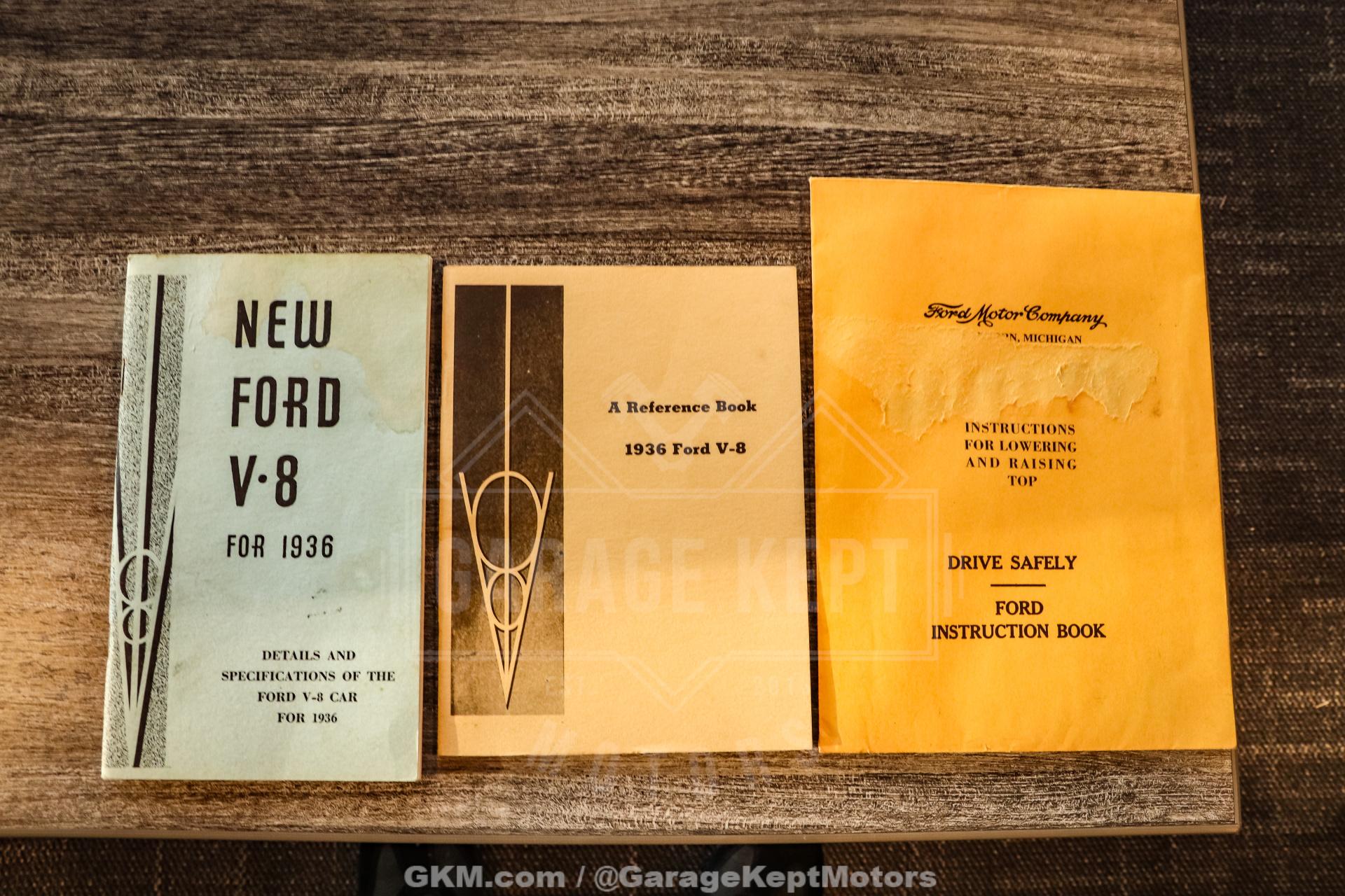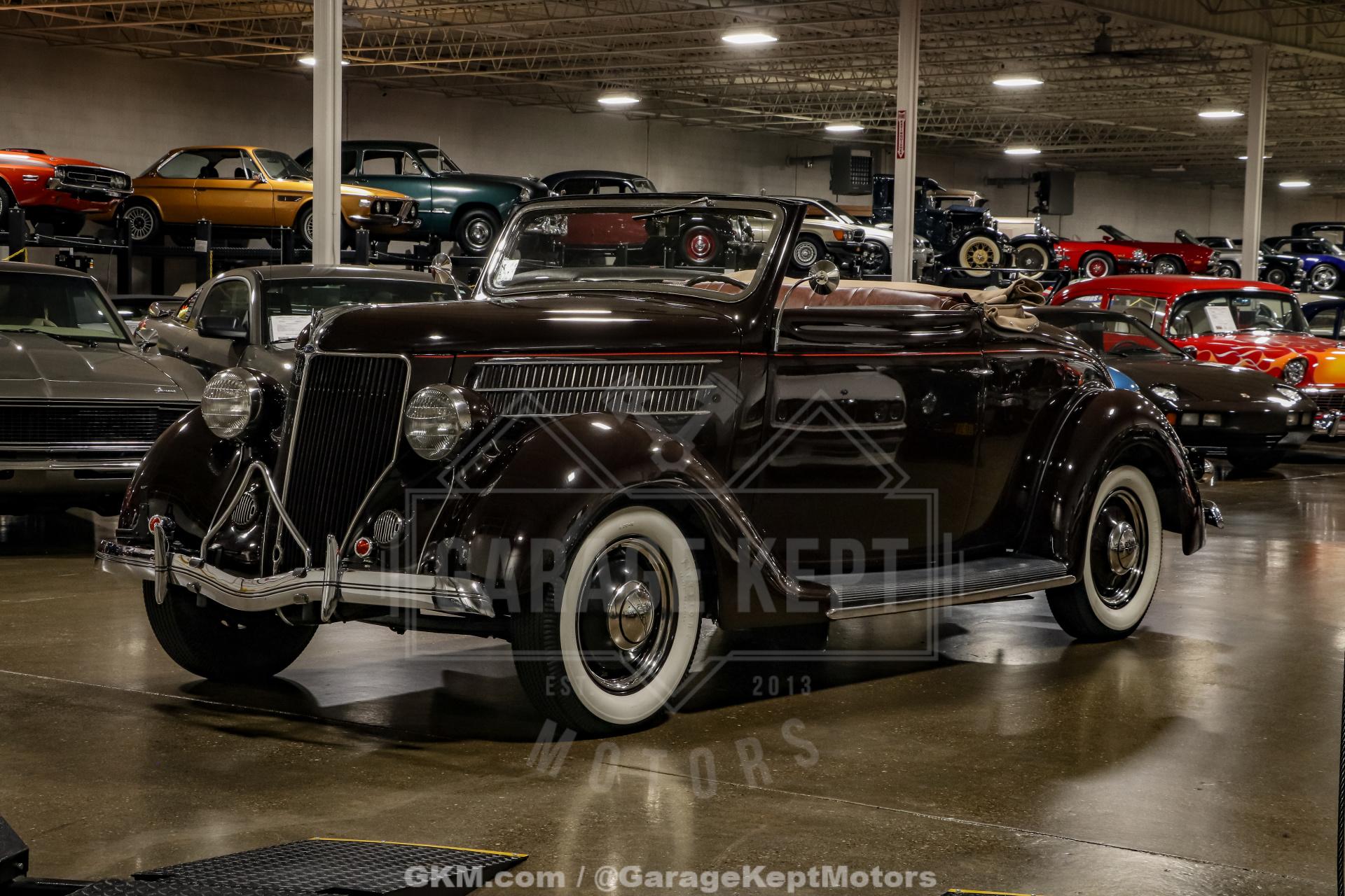 1936 Ford 2-Door Cabriolet- Same Owner for the past 13 Years- 221ci Flathead V8- 3 Speed Manual- Burgundy Exterior with Tan Soft Top- Brown Leather Interior- Recent Service- 4k Miles Shown (since restoration)The 1936 Ford 2-Door Cabriolet is a beautifully restored classic that embodies the elegance and mechanical innovation of pre-war American automotive design. This particular example has been under the care of the same dedicated owner for the past 13 years, reflecting a level of consistency and stewardship that is rare in the collector car world. With only 4,000 miles driven since its restoration, it remains in excellent condition and stands as a testament to the craftsmanship of its era.Under the hood, the Ford is powered by the legendary 221 cubic inch Flathead V8 engine, a powerplant that helped define Ford?s reputation for performance and reliability in the 1930s. Mated to a 3-speed manual transmission, the car offers a truly authentic driving experience, allowing the driver to engage with the machine in a way modern vehicles seldom allow. The engine runs smoothly, and the recent service ensures that this Cabriolet is not just a showpiece, but also ready for the road.Visually, the car is striking, finished in a deep, rich burgundy that complements its elegant lines and art-deco styling cues. The tan soft top adds a refined contrast, and when lowered, transforms the car into an open-air cruiser perfect for weekend drives or classic car events. The body panels are straight, and the paintwork is clean, showcasing the high-quality restoration it underwent prior to its limited post-restoration mileage.Inside, the brown leather interior continues the car?s theme of tasteful sophistication. The seats are well-padded and supportive, trimmed in leather that has been well-maintained over the years. The dash and trim are era-correct, with classic gauges and switchgear that preserve the vehicle?s original charm. Despite its vintage roots, the cabin is comfortable and inviting, ideal for relaxed motoring or simply admiring the detail of 1930s design.With a known ownership history, low mileage since restoration, and a classic color combination, this 1936 Ford Cabriolet is a rare opportunity for collectors or enthusiasts seeking a true piece of automotive history. It combines vintage style, mechanical authenticity, and meticulous care, making it equally suited for concours display or spirited Sunday drives.