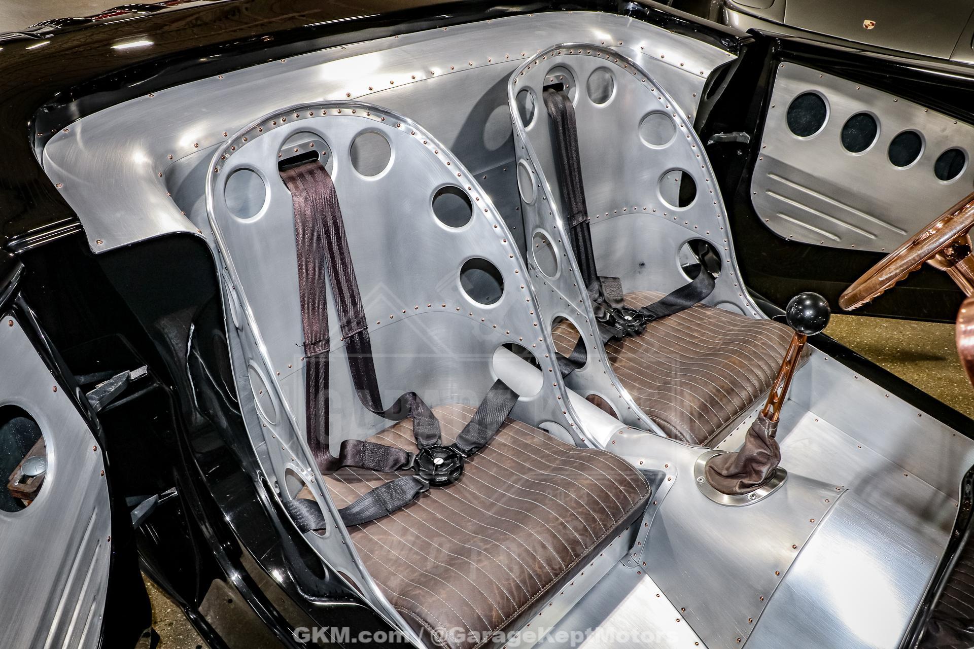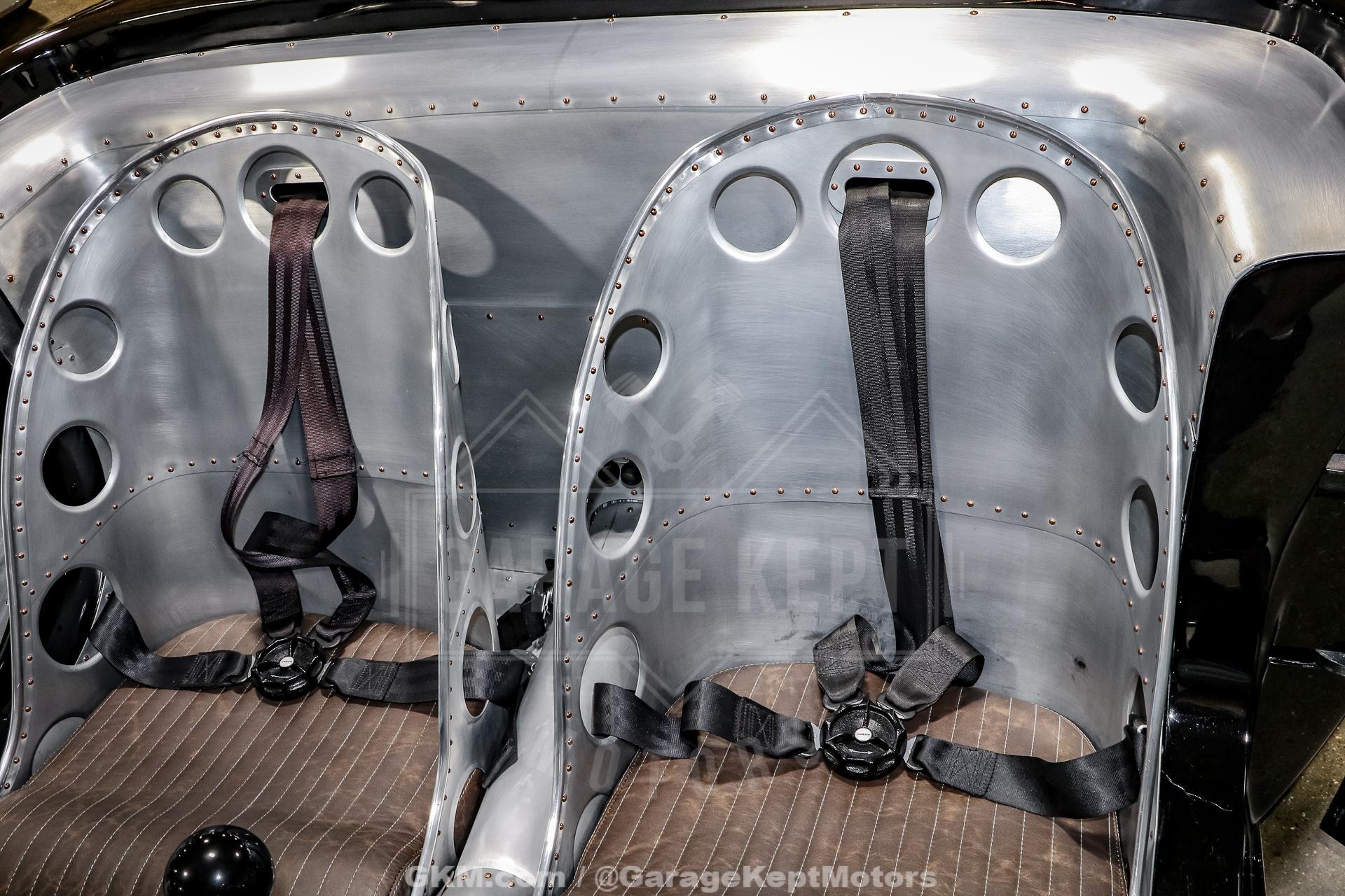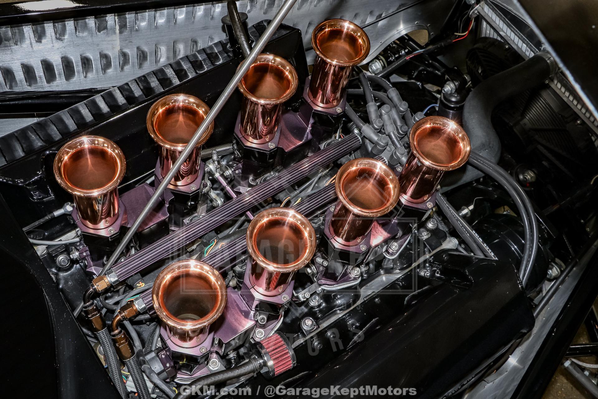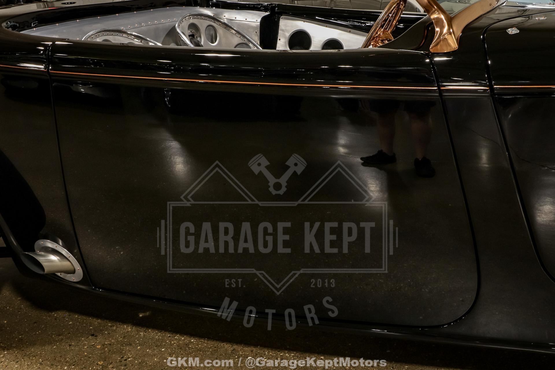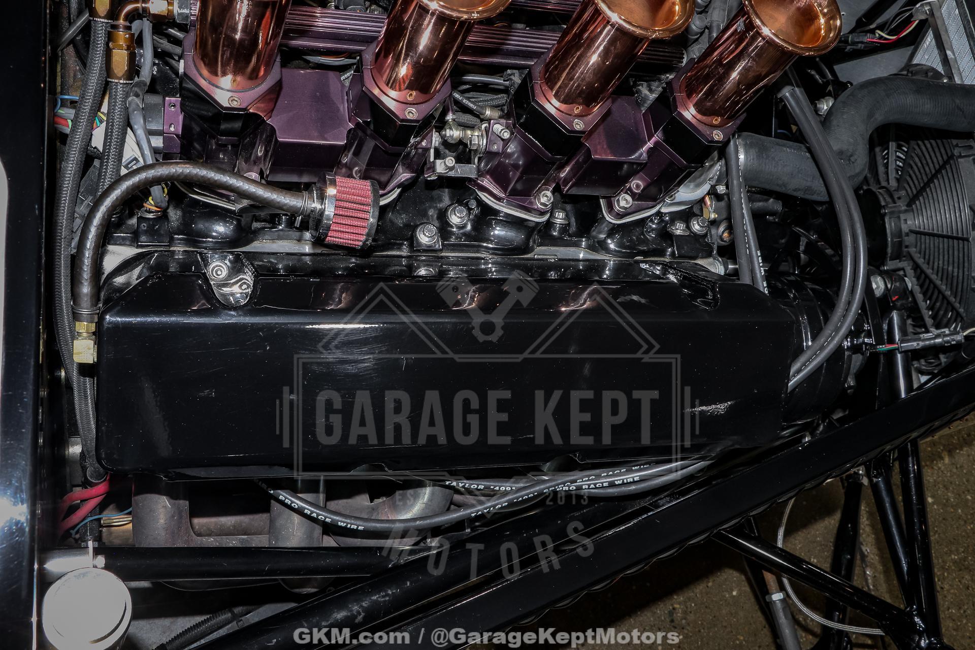 1933 Ford "Steampunk" Hot Rod- Massive 510-inch Big-Block Ford: Powered by a beastly 460 stroked to 510 cubic inches by Peters Racing.- Forged Internals: Featuring a Scat 4.150-inch forged crank, forged Scat rods, and JE 4.390-inch forged pistons (10:1 compression).- Imagine Injection System: Feeds twin ported Edelbrock aluminum heads through four Weber-like throttle bodies for aggressive power delivery and stunning looks.- Custom Exhaust: Hand-made stainless-steel headers by West Coast Auto Craft flow into Magnaflow mufflers, ensuring an exhilarating soundtrack.- TKO 600 Five-Speed Transmission: Paired with a Centerforce dual disc clutch for precise gear changes and maximum power transfer.- Factory Five Racing Chassis: Built on a sophisticated steel tube chassis with a 112-inch wheelbase, designed for serious road performance.- Advanced Suspension: Features a Mustang 8.8-inch Ford Truetrac differential (3.55:1) with a four-link rear suspension and inboard coilover shocks.- Precise Handling: FFR's unequal-length A-arm front suspension, Unisteer rack, and 11-inch disc brakes from a 2000 Mustang.- Wilwood Braking System: Ensures confident stopping power.- Hand-Formed Aluminum Body: Forget fiberglass! The entire body was custom fabricated from aluminum by Chris Miranda and Ben Star, taking the Factory Five design to an entirely new level.- Unique Body Elements: Features a custom hood with oblong injection stack openings, curvy hood sides revealing the IFS, louvered decklid and rear pan, and exhaust outlets in each quarter-panel.Step into a world where classic design meets modern engineering with this extraordinary 1933 Ford Hot Rod, available exclusively at Garage Kept Motors. This vehicle is not just a car; it's a masterpiece of automotive art, embodying the spirit of the steampunk aesthetic with its unique blend of vintage charm and cutting-edge performance.At the heart of this remarkable machine lies a massive 510ci V8 engine, a testament to raw power and precision engineering. This beastly powerplant is a 460 stroked to 510 cubic inches by the renowned Peters Racing, ensuring an exhilarating driving experience. The engine features forged internals, including a Scat 4.150-inch forged crank, forged Scat rods, and JE 4.390-inch forged pistons, delivering a 10:1 compression ratio. The Imagine Injection System feeds twin ported Edelbrock aluminum heads through four Weber-like throttle bodies, providing aggressive power delivery and a stunning visual appeal.The custom exhaust system, crafted with hand-made stainless-steel headers by West Coast Auto Craft, flows into Magnaflow mufflers, producing an exhilarating soundtrack that matches the car's performance. The TKO 600 five-speed transmission, paired with a Centerforce dual disc clutch, ensures precise gear changes and maximum power transfer, making every drive an unforgettable experience.Built on a sophisticated Factory Five Racing chassis with a 112-inch wheelbase, this Hot Rod is designed for serious road performance. The advanced suspension system features a Mustang 8.8-inch Ford Truetrac differential with a 3.55:1 ratio, a four-link rear suspension, and inboard coilover shocks. The FFR's unequal-length A-arm front suspension, Unisteer rack, and 11-inch disc brakes from a 2000 Mustang provide precise handling and confident stopping power, further enhanced by the Wilwood braking system.This Hot Rod's body is a work of art, hand-formed from aluminum by Chris Miranda and Ben Star, elevating the Factory Five design to an entirely new level. Forget fiberglass; this custom-fabricated aluminum body features unique elements such as a custom hood with oblong injection stack openings, curvy hood sides revealing the independent front suspension, a louvered decklid and rear pan, and exhaust outlets in each quarter-panel. The black paint color adds a touch of elegance and sophistication, perfectly complementing the steampunk theme.This 1933 Ford Hot Rod is truly an exotic class car, not only because of its unique steampunk design but also due to its unparalleled performance capabilities and bespoke craftsmanship. It stands as a testament to the art of custom car building, offering a driving experience that is both nostalgic and exhilarating.Don't miss the opportunity to own this one-of-a-kind 1933 Ford Hot Rod. Visit Garage Kept Motors today to experience the perfect fusion of classic design and modern performance. This is more than just a car; it's a piece of automotive history waiting to be driven.