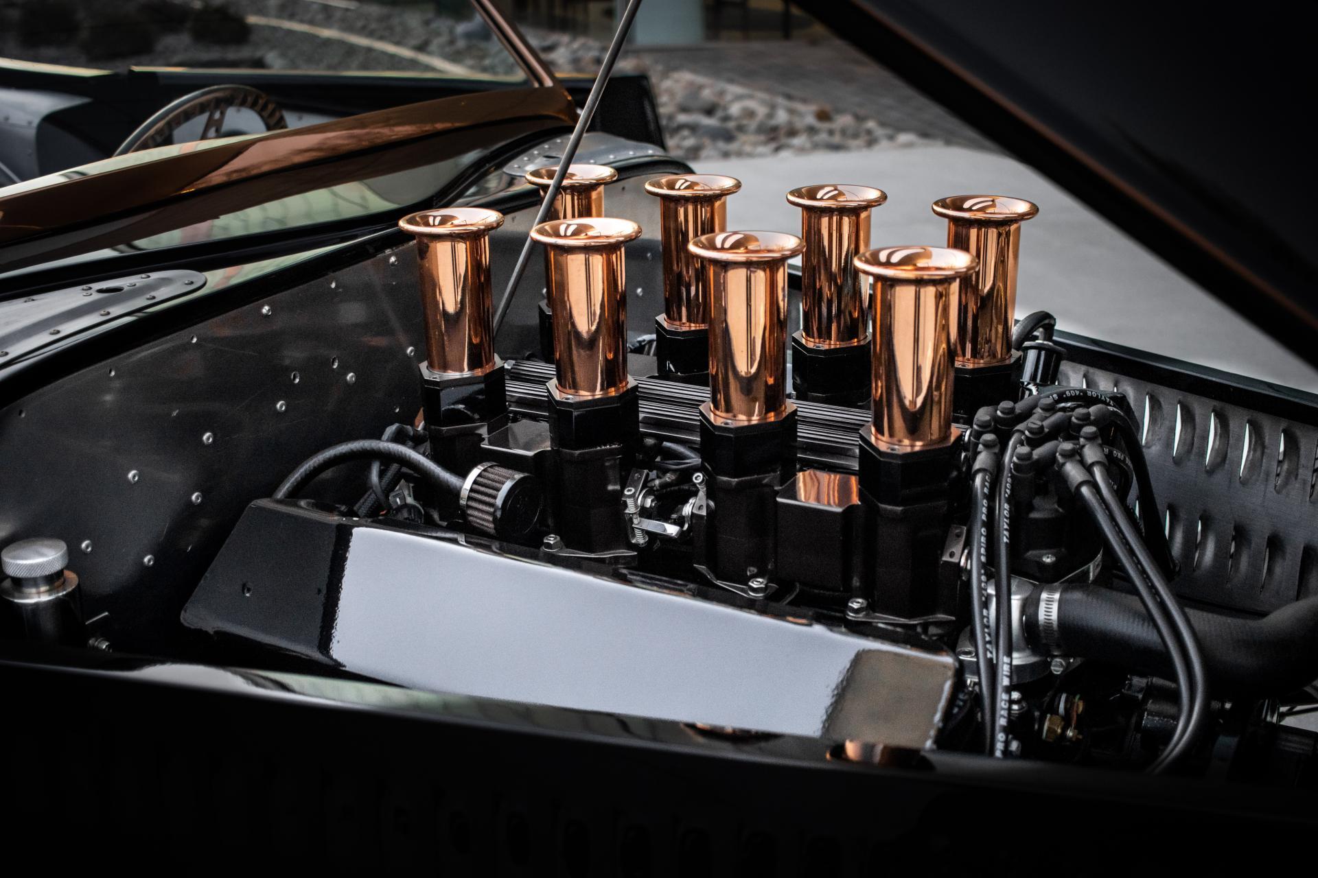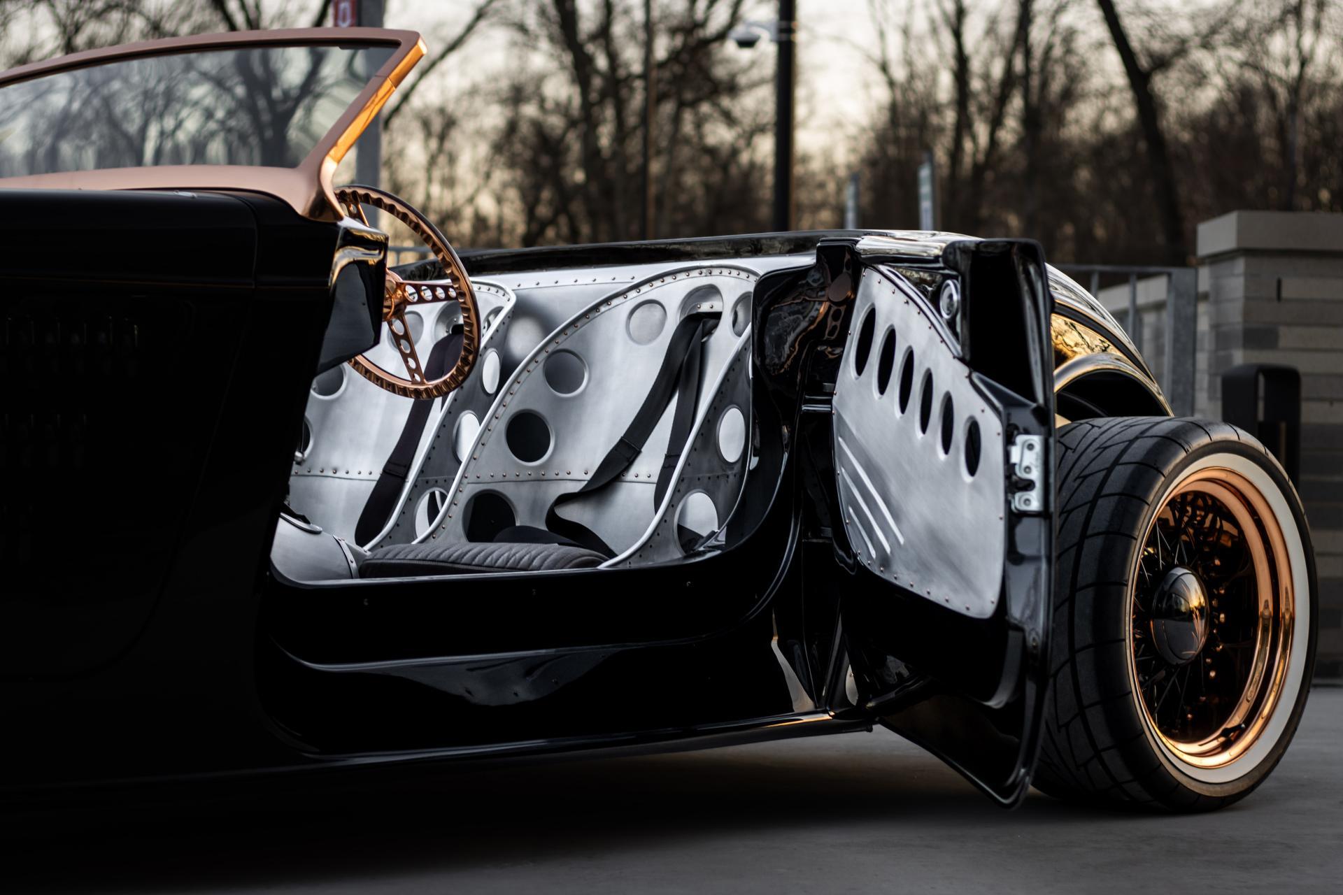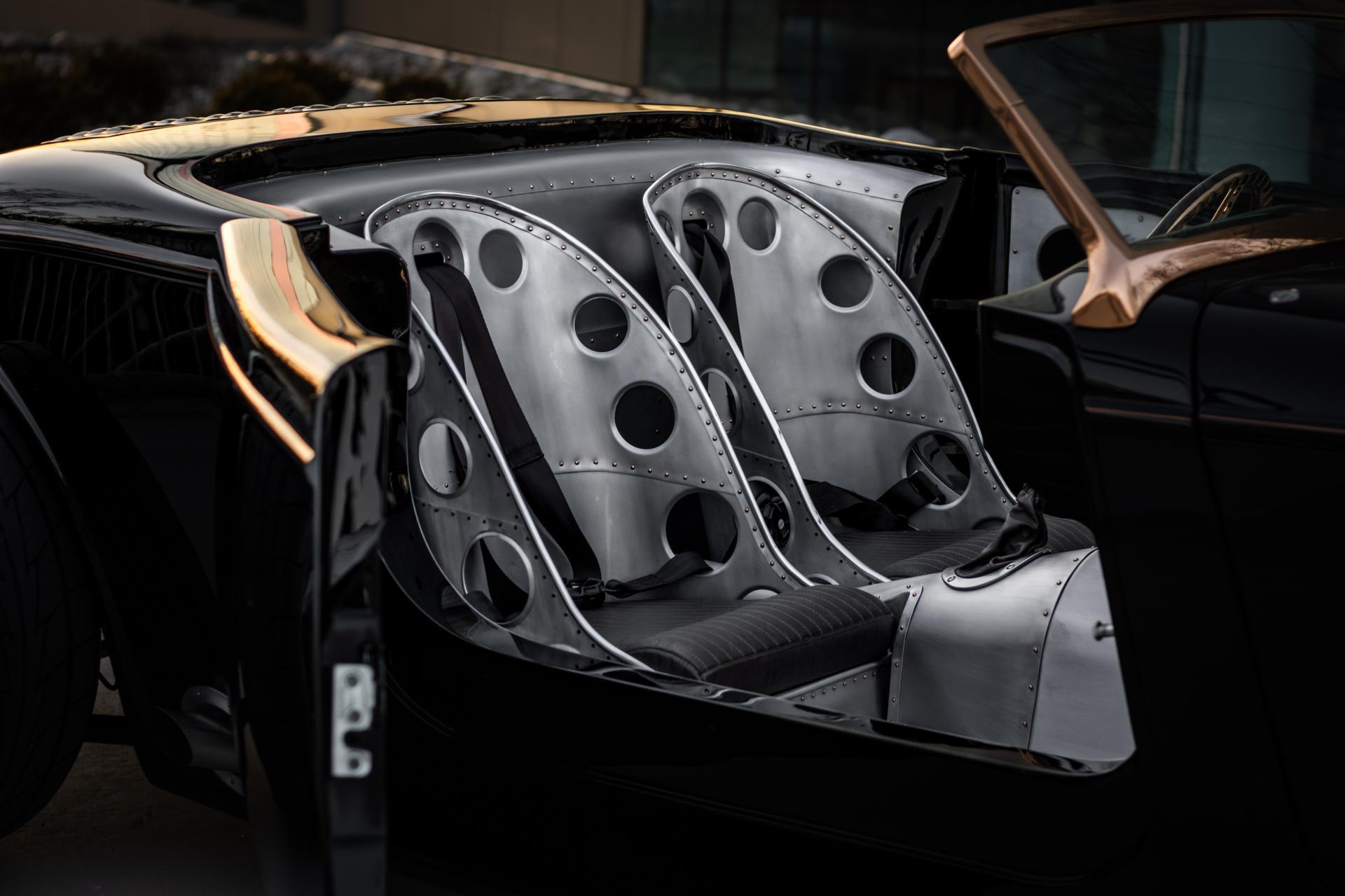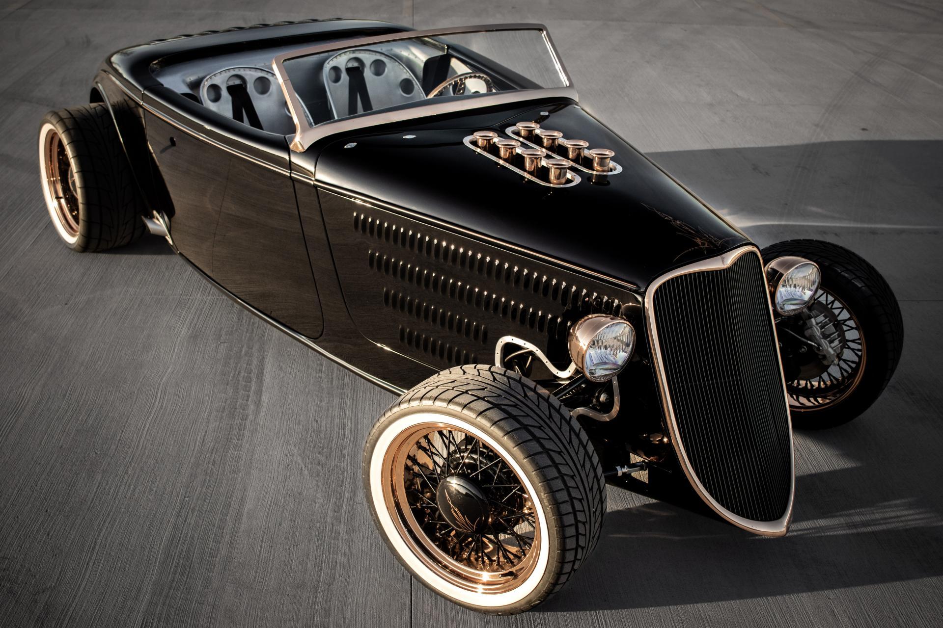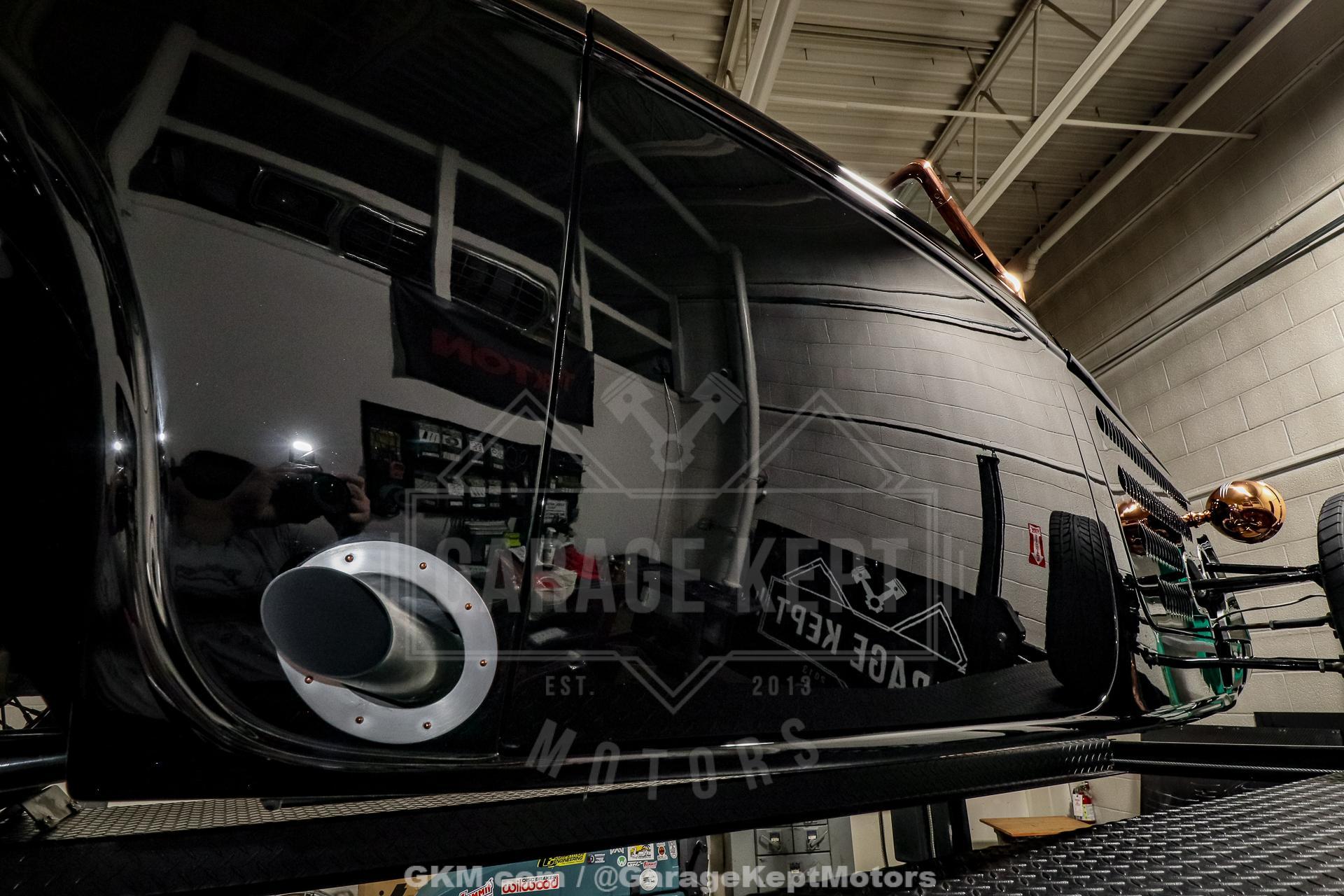1933 Ford "Steampunk" Hot Rod- Massive 510-inch Big-Block Ford: Powered by a beastly 460 stroked to 510 cubic inches by Peters Racing.- Forged Internals: Featuring a Scat 4.150-inch forged crank, forged Scat rods, and JE 4.390-inch forged pistons (10:1 compression).- Imagine Injection System: Feeds twin ported Edelbrock aluminum heads through four Weber-like throttle bodies for aggressive power delivery and stunning looks.- Custom Exhaust: Hand-made stainless-steel headers by West Coast Auto Craft flow into Magnaflow mufflers, ensuring an exhilarating soundtrack.- TKO 600 Five-Speed Transmission: Paired with a Centerforce dual disc clutch for precise gear changes and maximum power transfer.- Factory Five Racing Chassis: Built on a sophisticated steel tube chassis with a 112-inch wheelbase, designed for serious road performance.- Advanced Suspension: Features a Mustang 8.8-inch Ford Truetrac differential (3.55:1) with a four-link rear suspension and inboard coilover shocks.- Precise Handling: FFR's unequal-length A-arm front suspension, Unisteer rack, and 11-inch disc brakes from a 2000 Mustang.- Wilwood Braking System: Ensures confident stopping power.- Hand-Formed Aluminum Body: Forget fiberglass! The entire body was custom fabricated from aluminum by Chris Miranda and Ben Star, taking the Factory Five design to an entirely new level.- Unique Body Elements: Features a custom hood with oblong injection stack openings, curvy hood sides revealing the IFS, louvered decklid and rear pan, and exhaust outlets in each quarter-panel.Step into a world where classic design meets modern engineering with this extraordinary 1933 Ford Hot Rod, available exclusively at Garage Kept Motors. This vehicle is not just a car; it's a masterpiece of automotive art, embodying the spirit of the steampunk aesthetic with its unique blend of vintage charm and cutting-edge performance.At the heart of this remarkable machine lies a massive 510ci V8 engine, a testament to raw power and precision engineering. This beastly powerplant is a 460 stroked to 510 cubic inches by the renowned Peters Racing, ensuring an exhilarating driving experience. The engine features forged internals, including a Scat 4.150-inch forged crank, forged Scat rods, and JE 4.390-inch forged pistons, delivering a 10:1 compression ratio. The Imagine Injection System feeds twin ported Edelbrock aluminum heads through four Weber-like throttle bodies, providing aggressive power delivery and a stunning visual appeal.The custom exhaust system, crafted with hand-made stainless-steel headers by West Coast Auto Craft, flows into Magnaflow mufflers, producing an exhilarating soundtrack that matches the car's performance. The TKO 600 five-speed transmission, paired with a Centerforce dual disc clutch, ensures precise gear changes and maximum power transfer, making every drive an unforgettable experience.Built on a sophisticated Factory Five Racing chassis with a 112-inch wheelbase, this Hot Rod is designed for serious road performance. The advanced suspension system features a Mustang 8.8-inch Ford Truetrac differential with a 3.55:1 ratio, a four-link rear suspension, and inboard coilover shocks. The FFR's unequal-length A-arm front suspension, Unisteer rack, and 11-inch disc brakes from a 2000 Mustang provide precise handling and confident stopping power, further enhanced by the Wilwood braking system.This Hot Rod's body is a work of art, hand-formed from aluminum by Chris Miranda and Ben Star, elevating the Factory Five design to an entirely new level. Forget fiberglass; this custom-fabricated aluminum body features unique elements such as a custom hood with oblong injection stack openings, curvy hood sides revealing the independent front suspension, a louvered decklid and rear pan, and exhaust outlets in each quarter-panel. The black paint color adds a touch of elegance and sophistication, perfectly complementing the steampunk theme.This 1933 Ford Hot Rod is truly an exotic class car, not only because of its unique steampunk design but also due to its unparalleled performance capabilities and bespoke craftsmanship. It stands as a testament to the art of custom car building, offering a driving experience that is both nostalgic and exhilarating.Don't miss the opportunity to own this one-of-a-kind 1933 Ford Hot Rod. Visit Garage Kept Motors today to experience the perfect fusion of classic design and modern performance. This is more than just a car; it's a piece of automotive history waiting to be driven.