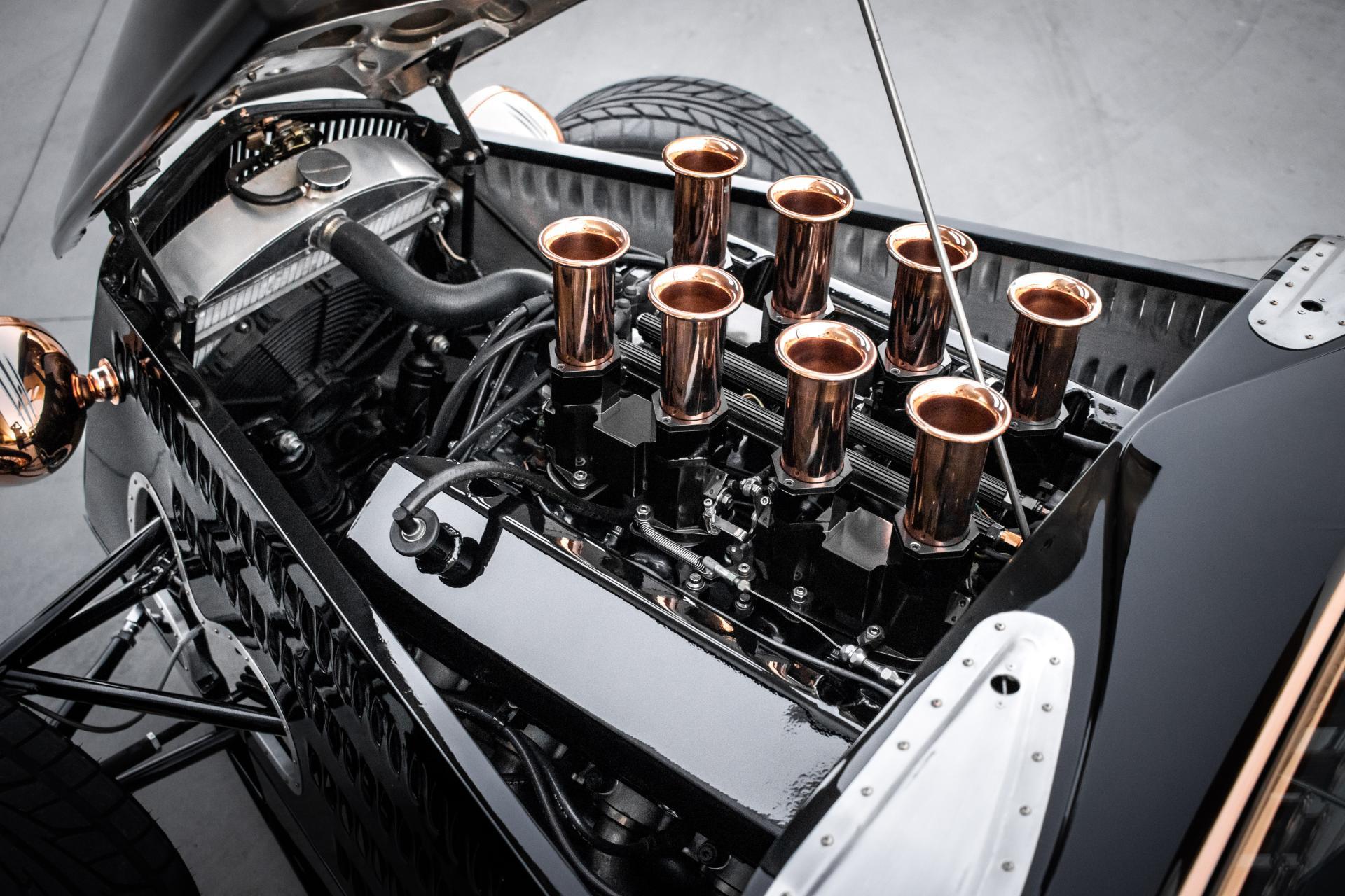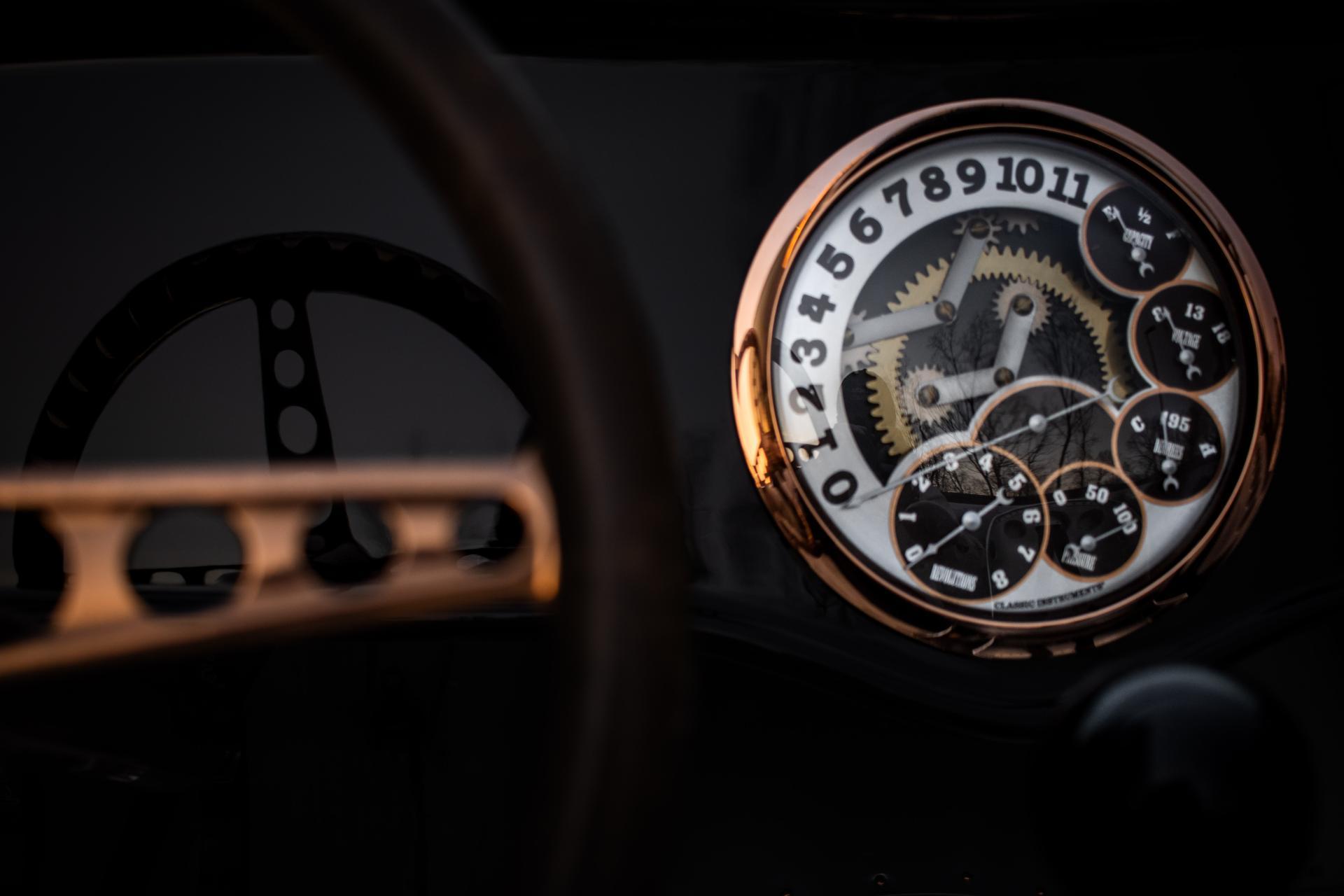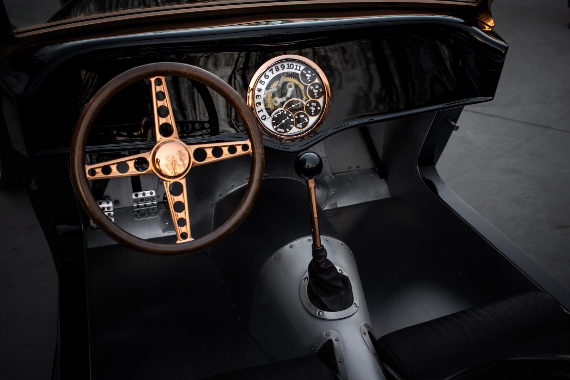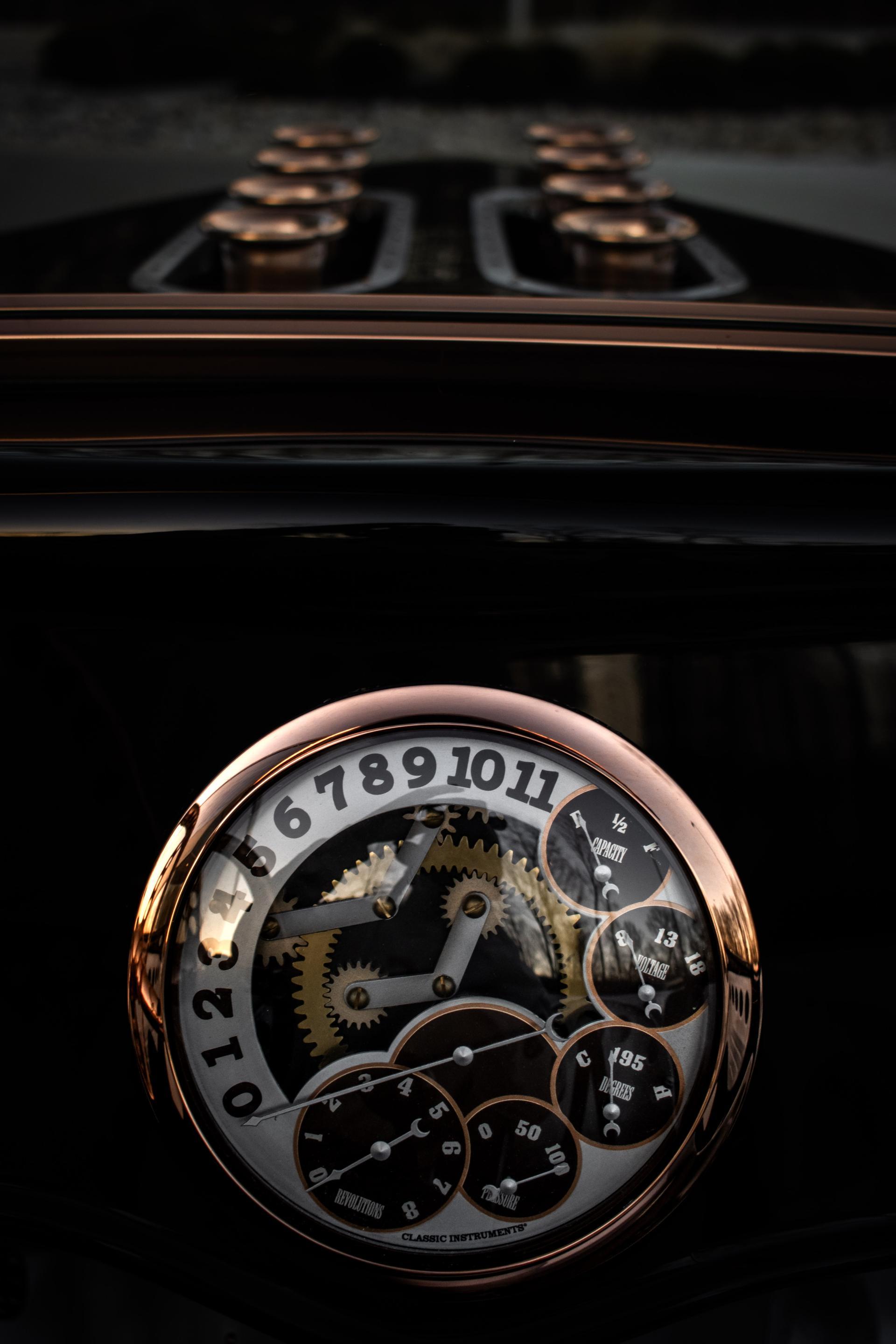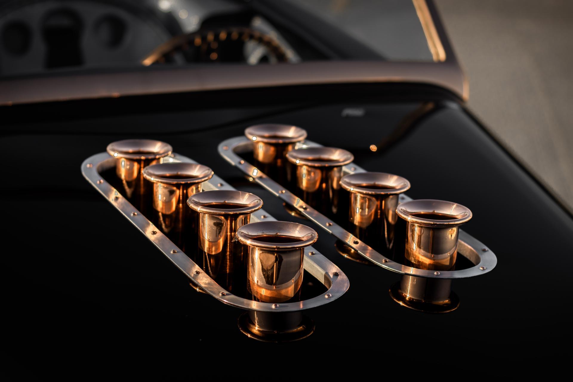 1933 Ford "Steampunk" Hot Rod- Massive 510-inch Big-Block Ford: Powered by a beastly 460 stroked to 510 cubic inches by Peters Racing.- Forged Internals: Featuring a Scat 4.150-inch forged crank, forged Scat rods, and JE 4.390-inch forged pistons (10:1 compression).- Imagine Injection System: Feeds twin ported Edelbrock aluminum heads through four Weber-like throttle bodies for aggressive power delivery and stunning looks.- Custom Exhaust: Hand-made stainless-steel headers by West Coast Auto Craft flow into Magnaflow mufflers, ensuring an exhilarating soundtrack.- TKO 600 Five-Speed Transmission: Paired with a Centerforce dual disc clutch for precise gear changes and maximum power transfer.- Factory Five Racing Chassis: Built on a sophisticated steel tube chassis with a 112-inch wheelbase, designed for serious road performance.- Advanced Suspension: Features a Mustang 8.8-inch Ford Truetrac differential (3.55:1) with a four-link rear suspension and inboard coilover shocks.- Precise Handling: FFR's unequal-length A-arm front suspension, Unisteer rack, and 11-inch disc brakes from a 2000 Mustang.- Wilwood Braking System: Ensures confident stopping power.- Hand-Formed Aluminum Body: Forget fiberglass! The entire body was custom fabricated from aluminum by Chris Miranda and Ben Star, taking the Factory Five design to an entirely new level.- Unique Body Elements: Features a custom hood with oblong injection stack openings, curvy hood sides revealing the IFS, louvered decklid and rear pan, and exhaust outlets in each quarter-panel.Step into a world where classic design meets modern engineering with this extraordinary 1933 Ford Hot Rod, available exclusively at Garage Kept Motors. This vehicle is not just a car; it's a masterpiece of automotive art, embodying the spirit of the steampunk aesthetic with its unique blend of vintage charm and cutting-edge performance.At the heart of this remarkable machine lies a massive 510ci V8 engine, a testament to raw power and precision engineering. This beastly powerplant is a 460 stroked to 510 cubic inches by the renowned Peters Racing, ensuring an exhilarating driving experience. The engine features forged internals, including a Scat 4.150-inch forged crank, forged Scat rods, and JE 4.390-inch forged pistons, delivering a 10:1 compression ratio. The Imagine Injection System feeds twin ported Edelbrock aluminum heads through four Weber-like throttle bodies, providing aggressive power delivery and a stunning visual appeal.The custom exhaust system, crafted with hand-made stainless-steel headers by West Coast Auto Craft, flows into Magnaflow mufflers, producing an exhilarating soundtrack that matches the car's performance. The TKO 600 five-speed transmission, paired with a Centerforce dual disc clutch, ensures precise gear changes and maximum power transfer, making every drive an unforgettable experience.Built on a sophisticated Factory Five Racing chassis with a 112-inch wheelbase, this Hot Rod is designed for serious road performance. The advanced suspension system features a Mustang 8.8-inch Ford Truetrac differential with a 3.55:1 ratio, a four-link rear suspension, and inboard coilover shocks. The FFR's unequal-length A-arm front suspension, Unisteer rack, and 11-inch disc brakes from a 2000 Mustang provide precise handling and confident stopping power, further enhanced by the Wilwood braking system.This Hot Rod's body is a work of art, hand-formed from aluminum by Chris Miranda and Ben Star, elevating the Factory Five design to an entirely new level. Forget fiberglass; this custom-fabricated aluminum body features unique elements such as a custom hood with oblong injection stack openings, curvy hood sides revealing the independent front suspension, a louvered decklid and rear pan, and exhaust outlets in each quarter-panel. The black paint color adds a touch of elegance and sophistication, perfectly complementing the steampunk theme.This 1933 Ford Hot Rod is truly an exotic class car, not only because of its unique steampunk design but also due to its unparalleled performance capabilities and bespoke craftsmanship. It stands as a testament to the art of custom car building, offering a driving experience that is both nostalgic and exhilarating.Don't miss the opportunity to own this one-of-a-kind 1933 Ford Hot Rod. Visit Garage Kept Motors today to experience the perfect fusion of classic design and modern performance. This is more than just a car; it's a piece of automotive history waiting to be driven.