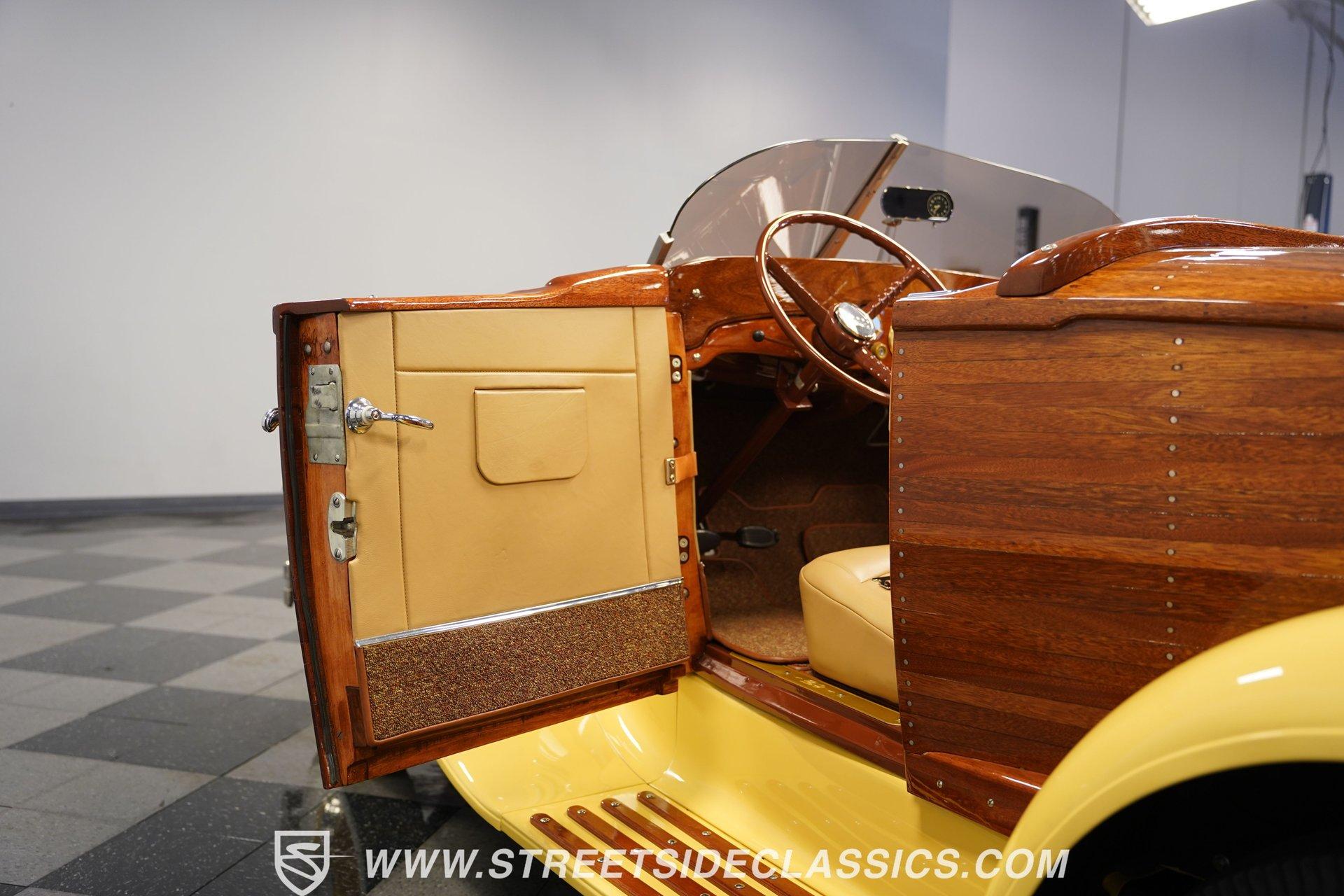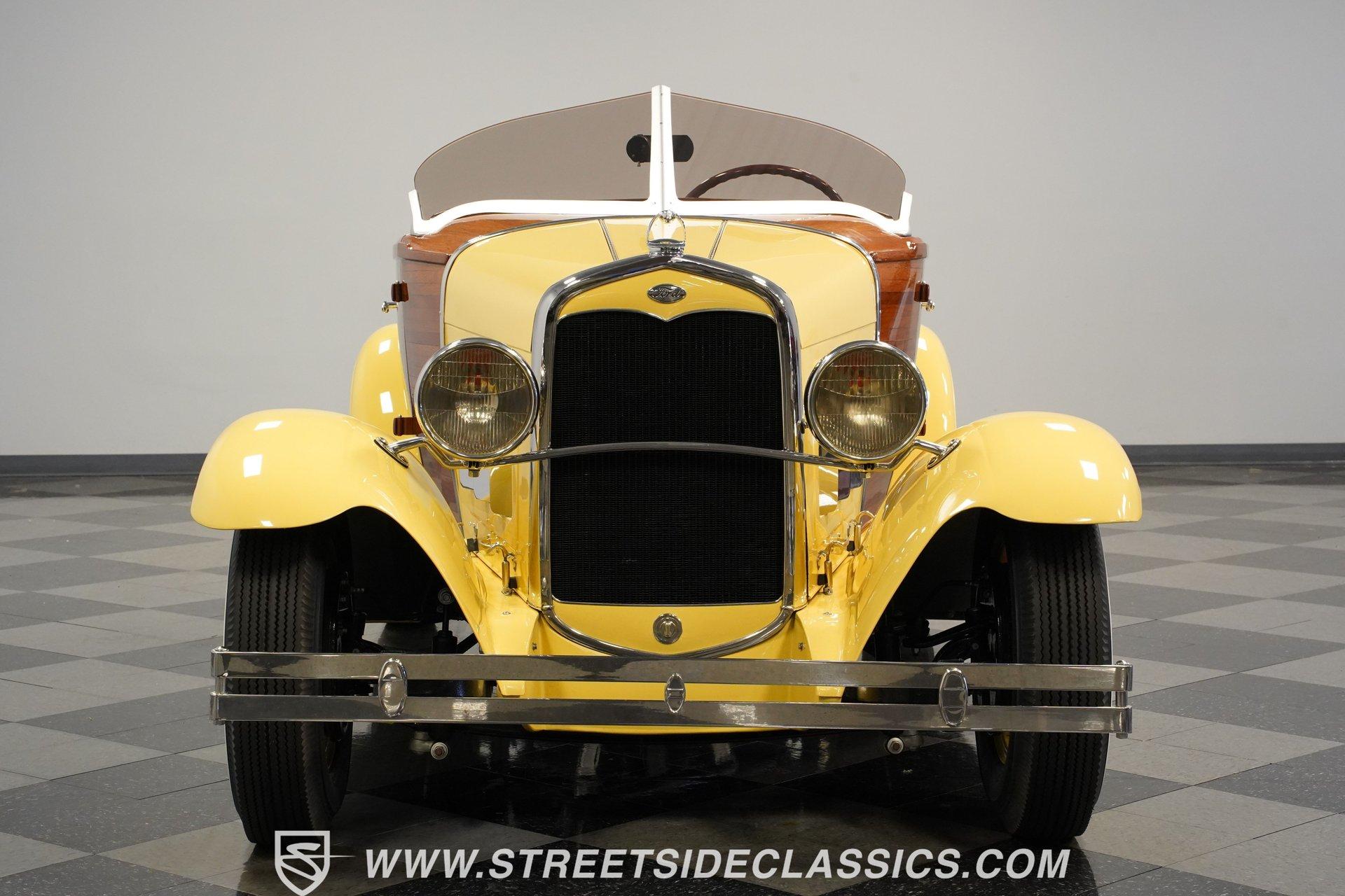 Step back in time and experience the charm and craftsmanship of a bygone era with this beautifully restored 1931 Ford Model A Custom Boattail Roadster. This car is not just a vehicle; it's a statement of style, history, and passion for classic automobiles. Imagine the joy of cruising down the road in a car that turns heads and sparks conversations, embodying the spirit of the early automotive age with a unique custom boattail design. This 1931 Ford Model A offers a rare blend of vintage allure and enhanced drivability, making it a must-have for collectors and enthusiasts alike. Step inside to discover a meticulously crafted interior featuring a warm wooden dash complemented by cream-colored VDO gauges that perfectly match the cabin's aesthetic. The steering wheel is in excellent condition, with only a minor crack adding character without detracting from its appeal. Door cards are well-preserved with hidden storage compartments, and the comfortable seats invite you to enjoy every mile. The clean, well-fitted carpets complete the interior's polished look, while the unique accelerator knob adds a touch of vintage authenticity. Under the hood, this Model A boasts a 201 CID (3.3L L-Head I4) engine that has been rebuilt to run smoothly and reliably. Equipped with dual Stromberg single-barrel carburetors, a Thomas intake, and a Mallory distributor, the engine bay presents a show-quality, clean appearance. The five-speed manual transmission with a short-throw floor shifter enhances driving control and enjoyment. Steering and brakes perform admirably, delivering a driving experience that blends classic charm with functional performance. The headers and exhaust system complete the mechanical upgrades, ensuring this roadster runs and drives very well. Highlights 1931 Ford Model A Custom Boattail Roadster 201 CID (3.3L L-Head Inline 4) Engine Running Smoothly Five-Speed Manual Transmission Short-Throw Floor Shifter Dual Stromberg Single Barrel Carburetors Thomas Intake with Mallory Distributor Headers and Custom Exhaust System Beautiful Wooden Dashboard Cream VDO Gauges Comfortable, Well-Preserved Seats Gloss Painted Underside New Tires Installed in 2025 Drum Brakes Front and Rear Financing Available Vehicle Protection Plans Available Worldwide Shipping This 1931 Ford Model A Custom Boattail Roadster is a fantastic blend of vintage style and enhanced drivability, making it a great addition to any classic car collection. Whether you're a seasoned enthusiast or just beginning your journey into classic cars, this vehicle offers both charm and performance. Don't miss the chance to own a piece of automotive history that's ready to hit the road. Call, email, or come visit our showroom today!