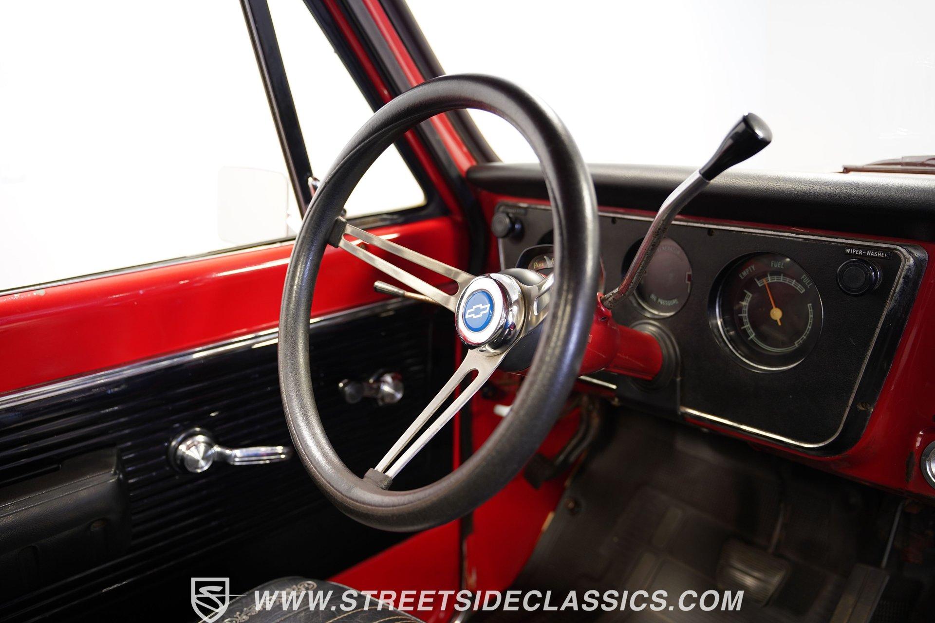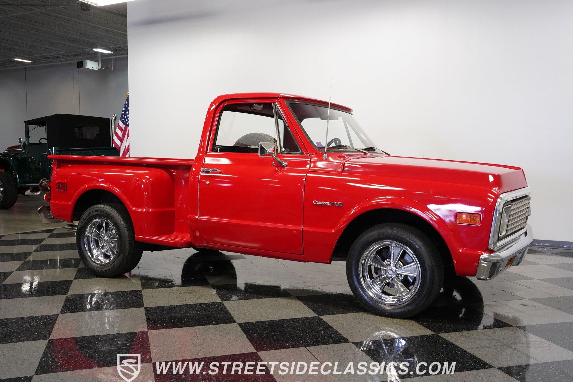 There is something timeless about climbing into a classic pickup and feeling the road return the favor. This truck is the kind of vehicle that evokes weekend drives, neighborhood waves, and the satisfying rumble of a big V8 under the hood. It wears its presence with confidence and invites you to imagine mornings at a car show or evenings cruising Main Street. If you are looking for a classic with honest character and cruiser appeal, consider this 1972 Chevrolet C10 Stepside finished with a robust Goodwrench crate 350ci V8 and a 700R4 automatic transmission. Step inside and you will find a clean, factory-style cabin that keeps the driving experience straightforward and familiar. The vinyl bench seat and rubber flooring present well for a classic pickup and the painted door panels and dash face retain a period-correct feel. The steering wheel and gauge cluster have that lived-in patina collectors appreciate, and the retro radio adds an authentic touch. Overall the interior provides comfortable, no-fuss appointments suited for weekend cruising or local shows. Under the hood this C10 is equipped for enjoyable driving. The crate 350ci V8 is paired to a 700R4 4-speed automatic and features an Edelbrock 4BBL carburetor with an Edelbrock aluminum intake and a serpentine belt setup. Cooling is aided by dual electric fans and the dual exhaust exits through FlowMaster mufflers for an assertive note. The truck rides on its stock-style suspension with a GM 12-bolt rear axle and is fitted with power front disc brakes and power steering. Highlights 1972 Chevrolet C10 Stepside pickup Crate 350ci V8 Edelbrock 4BBL carburetor and intake 700R4 4-speed automatic transmission GM 12-bolt rear axle Power front disc brakes Power steering Serpentine belt and dual electric fans Dual exhaust with FlowMaster mufflers 17 inch Chrome Cragar wheels and spare Nicely finished wooden bed Driver-quality glossy paint and custom badging Inner rockers appear redone Rubber flooring and vinyl bench seat This Stepside C10 is a ready-to-enjoy classic that blends vintage style with functional upgrades. If you want a capable cruiser with character and presence, give us a call today and arrange a closer look. Call today!