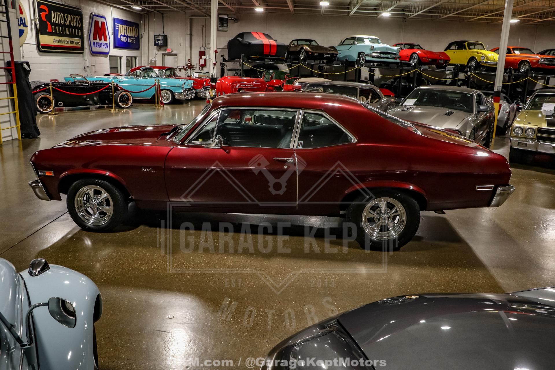 1972 Chevrolet NovaSS Tribute - 2 Door Coupe- Maroon over Black Interior- Built 396ci V8- 350 Turbo Automatic Transmission- Vintage AC- B&M Shifter- New Cragar Wheels with New Rubber- Power Steering and Power Brakes- Front Disc Brakes- Ford 9 Inch Rear End- 48k Miles Shown This 1972 Chevrolet Nova SS Tribute captures the spirit of the early 1970s muscle car era with its bold styling and big-block performance. Finished in an eye-catching maroon exterior over a classic black interior, this two-door coupe exudes presence both on the street and at a show. As an SS tribute, it delivers the aggressive looks and power of the iconic Super Sport, while offering modern enhancements that make it an exciting and reliable driver today.Under the hood sits a built 396ci V8, providing the kind of power that muscle car enthusiasts crave. The engine is paired with a 350 Turbo automatic transmission, ensuring strong and smooth power delivery. A B&M shifter adds a performance-oriented touch, giving the driver more control and a race-inspired feel behind the wheel. With this drivetrain, the Nova offers both raw muscle and dependable cruising ability.This Nova has also been equipped with features that make it both powerful and manageable. A Ford 9-inch rear end provides strength and durability, making it well-suited for handling big-block torque. Power steering and power brakes add ease and control, while front disc brakes deliver confident stopping power. Together, these upgrades create a car that?s as comfortable to drive as it is thrilling to unleash.The exterior is further enhanced by brand-new Cragar wheels wrapped in fresh rubber, giving the car a period-correct muscle car stance with modern reliability. Vintage air conditioning brings an extra layer of comfort, allowing this Nova to be enjoyed in all climates while still maintaining its performance character. The combination of classic looks, strong mechanicals, and practical upgrades makes it a well-rounded machine.Inside, the black interior is both clean and functional, offering a no-nonsense muscle car atmosphere. The simple yet purposeful design highlights the Nova?s driver-focused character, while complementing the bold maroon paint on the outside. With just 48,000 miles shown and a thoughtful mix of tribute styling and performance upgrades, this 1972 Chevrolet Nova SS Tribute is a true muscle car that blends classic style, comfort, and big-block power into one impressive package.