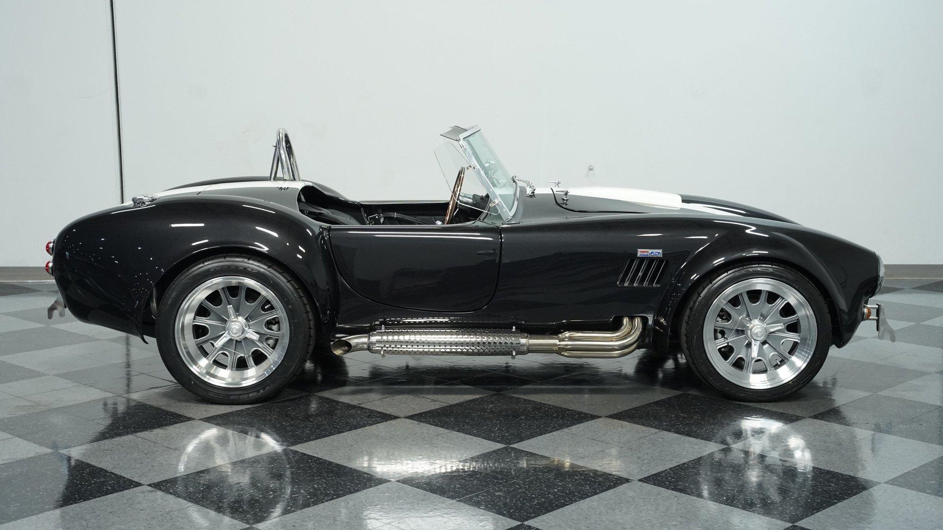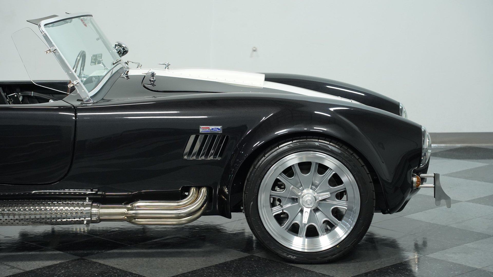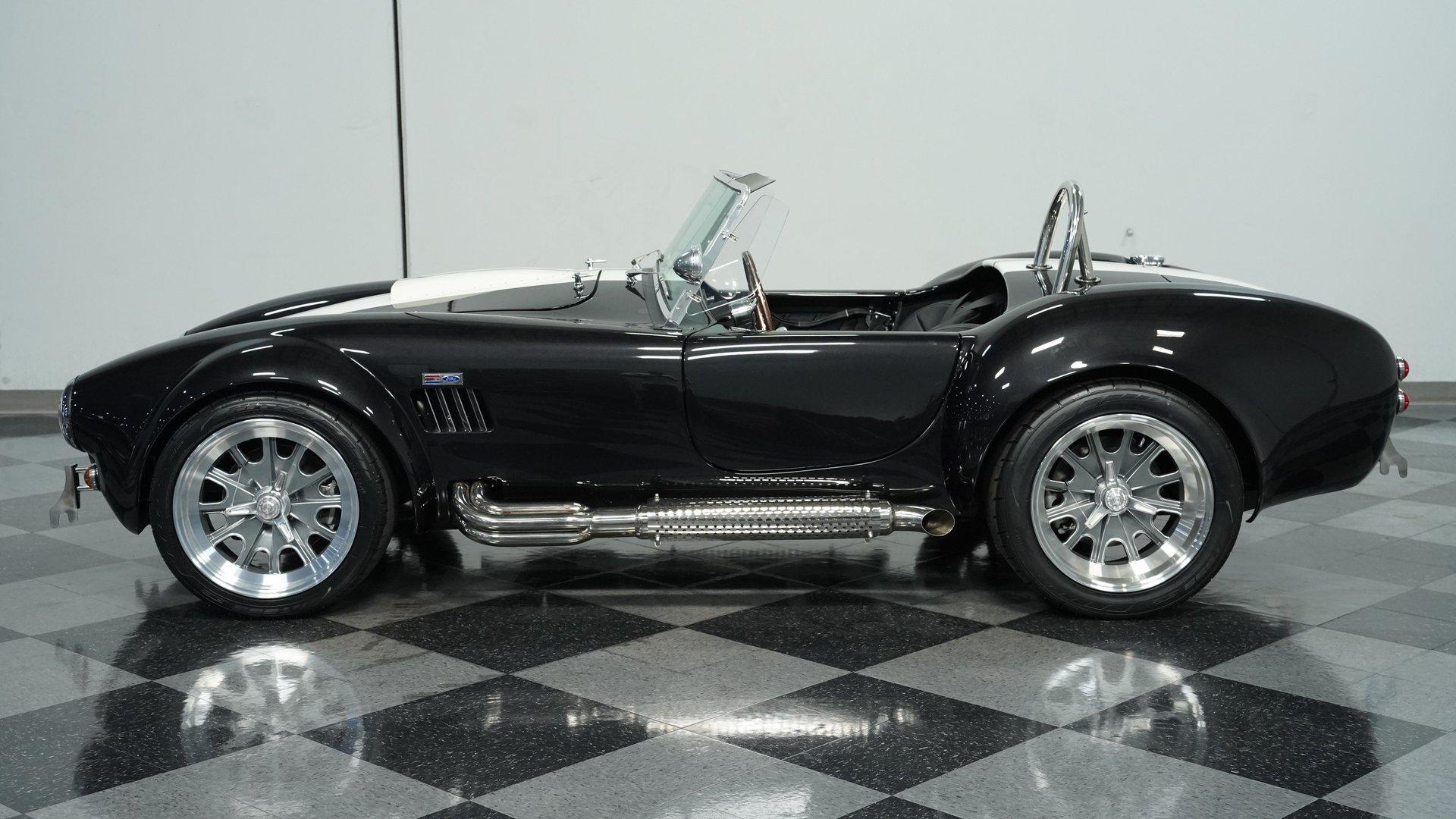 There is something magnetic about a Cobra Backdraft 427 that lets it's appearance and performance do the talking. This example captures that timeless charisma with modern build quality and virtually no miles to wear its shine. It represents the thrill of open-road performance presented in a compact, dramatic package that turns heads at every stoplight. If you have been looking for an attention-getting 1965 Shelby Cobra tribute finished to a high standard with only 71 actual miles and a potent 427 V8, this could be the one for you. Step inside and you are greeted by a brand new interior finished to a very high standard. Seats and door panels present as new. The cockpit is neatly trimmed and driver focused, with clear gauges and comfortable seating geometry. Creature comforts include a tidy layout that balances vintage character with day-to-day usability. Under the hood sits an iconic 427 V8 that presents strongly with a single 4-barrel Holley carburetor riding on an Edelbrock Performer intake. Power is routed through a 5-speed manual TKX transmission to a 3.55 Ford Super 8.8 rear axle, providing engaging and predictable performance. Stopping and handling are addressed with ventilated disc brakes, rack and pinion steering and an adjustable coilover-style suspension with independent multilink rear geometry, while 18 inch alloy wheels and wide staggered tires help the car put its power to the pavement. Highlights: Brand New Cobra 71 Actual Miles Built 427 CID V8 492 RWHP 529 LB FT Aluminum Heads Performance Cam Holley Carb Side Pipes Exhaust Tremec TKX Five Speed Power Steering Leather Interior Racing Harnesses AutoMeter Gauges Adjustable Driver's Seat Coilovers Power Disc Brakes This Cobra tribute blends classic looks with thoughtful mechanical upgrades to deliver both presence and performance. It represents a rare chance to own a nearly new, low-mileage example ready to enjoy right away. Call today!