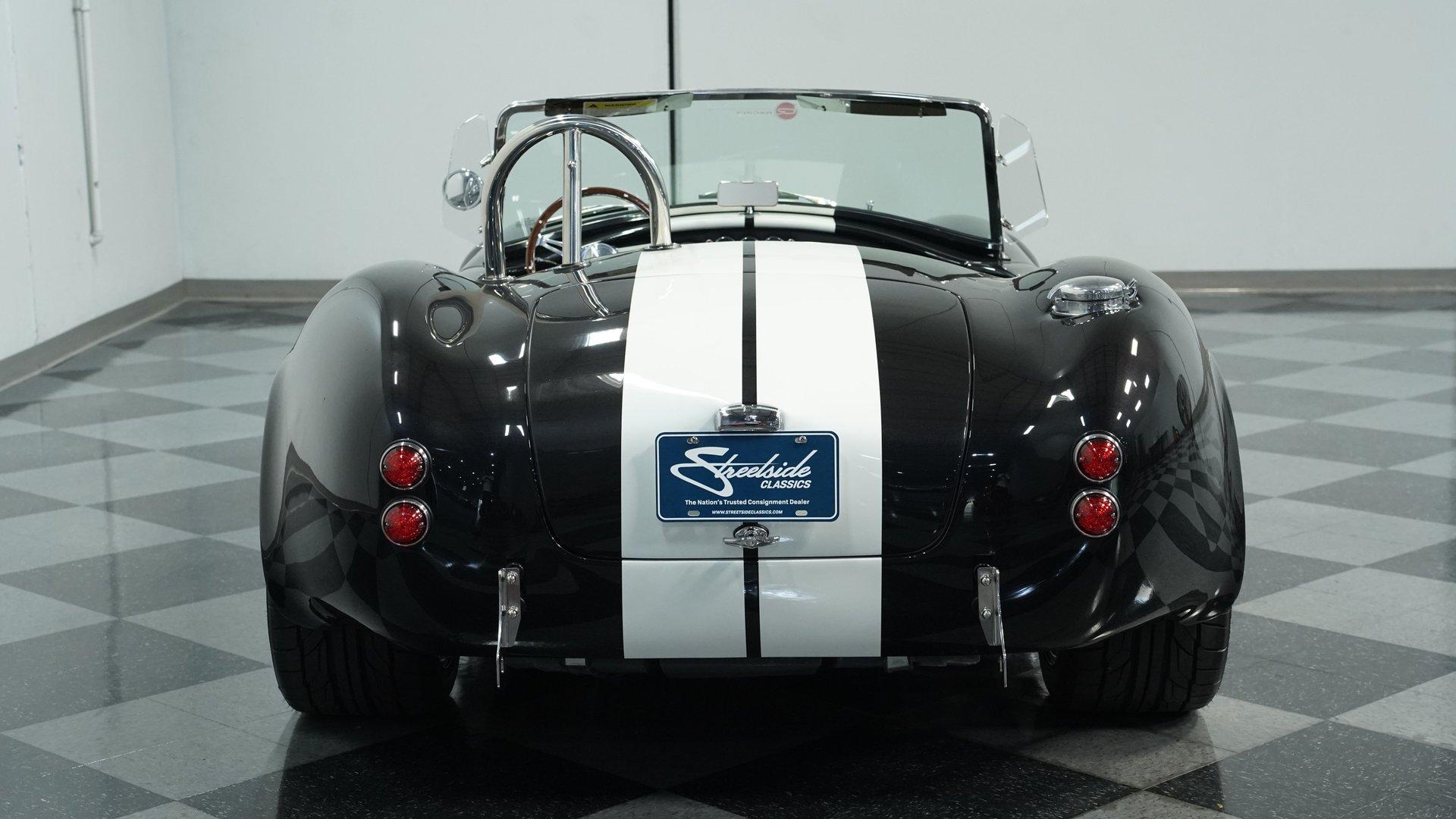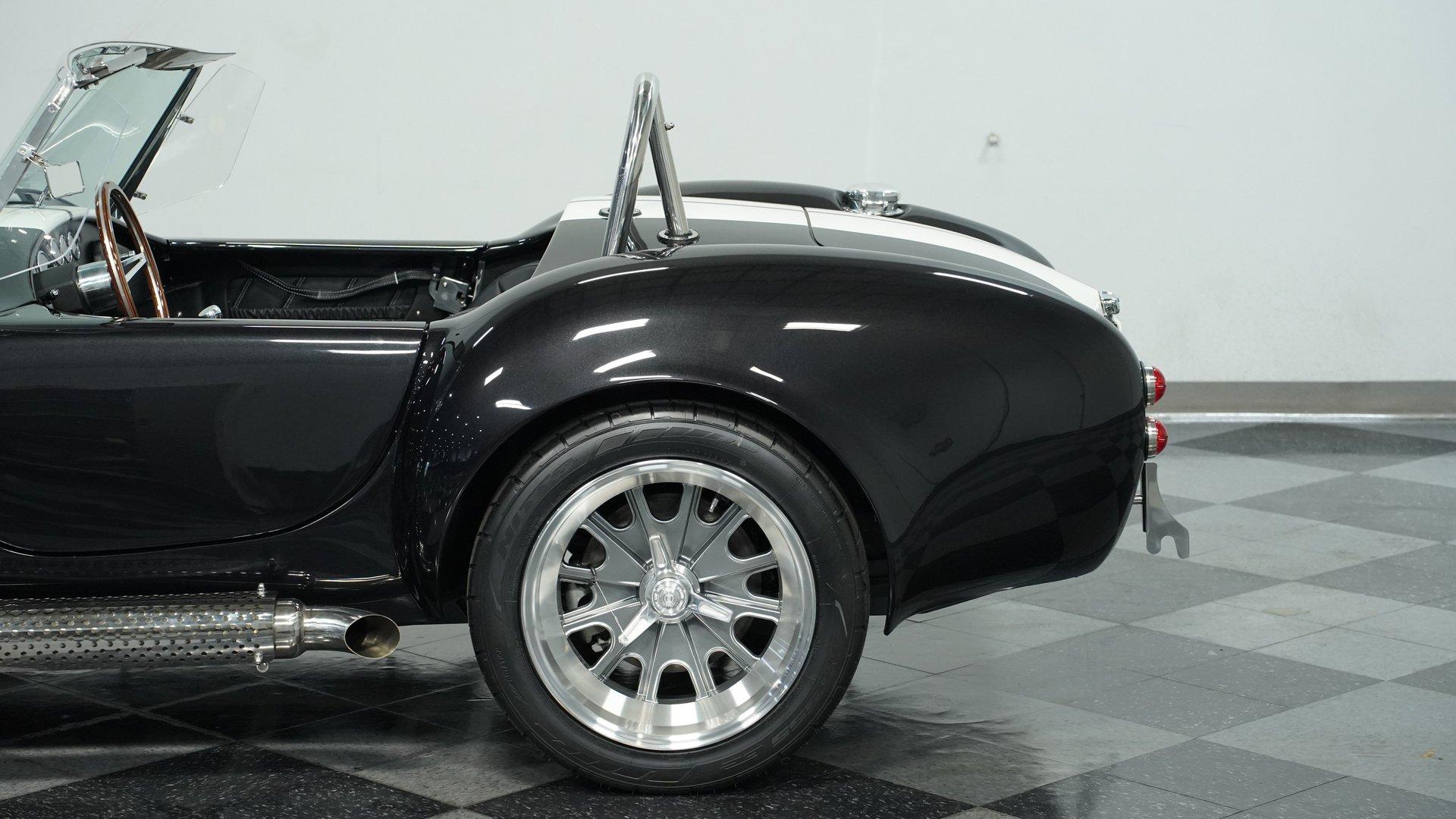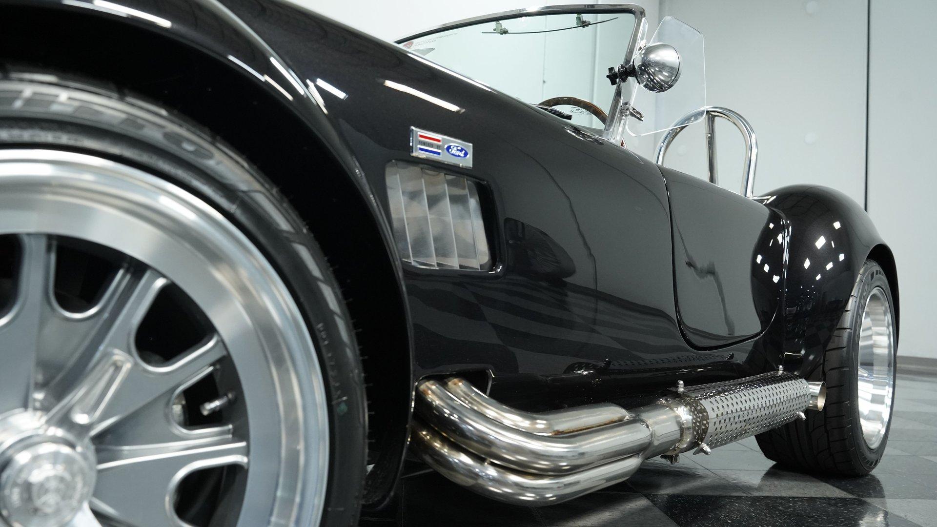 There is something magnetic about a Cobra Backdraft 427 that lets it's appearance and performance do the talking. This example captures that timeless charisma with modern build quality and virtually no miles to wear its shine. It represents the thrill of open-road performance presented in a compact, dramatic package that turns heads at every stoplight. If you have been looking for an attention-getting 1965 Shelby Cobra tribute finished to a high standard with only 71 actual miles and a potent 427 V8, this could be the one for you. Step inside and you are greeted by a brand new interior finished to a very high standard. Seats and door panels present as new. The cockpit is neatly trimmed and driver focused, with clear gauges and comfortable seating geometry. Creature comforts include a tidy layout that balances vintage character with day-to-day usability. Under the hood sits an iconic 427 V8 that presents strongly with a single 4-barrel Holley carburetor riding on an Edelbrock Performer intake. Power is routed through a 5-speed manual TKX transmission to a 3.55 Ford Super 8.8 rear axle, providing engaging and predictable performance. Stopping and handling are addressed with ventilated disc brakes, rack and pinion steering and an adjustable coilover-style suspension with independent multilink rear geometry, while 18 inch alloy wheels and wide staggered tires help the car put its power to the pavement. Highlights: Brand New Cobra 71 Actual Miles Built 427 CID V8 492 RWHP 529 LB FT Aluminum Heads Performance Cam Holley Carb Side Pipes Exhaust Tremec TKX Five Speed Power Steering Leather Interior Racing Harnesses AutoMeter Gauges Adjustable Driver's Seat Coilovers Power Disc Brakes This Cobra tribute blends classic looks with thoughtful mechanical upgrades to deliver both presence and performance. It represents a rare chance to own a nearly new, low-mileage example ready to enjoy right away. Call today!