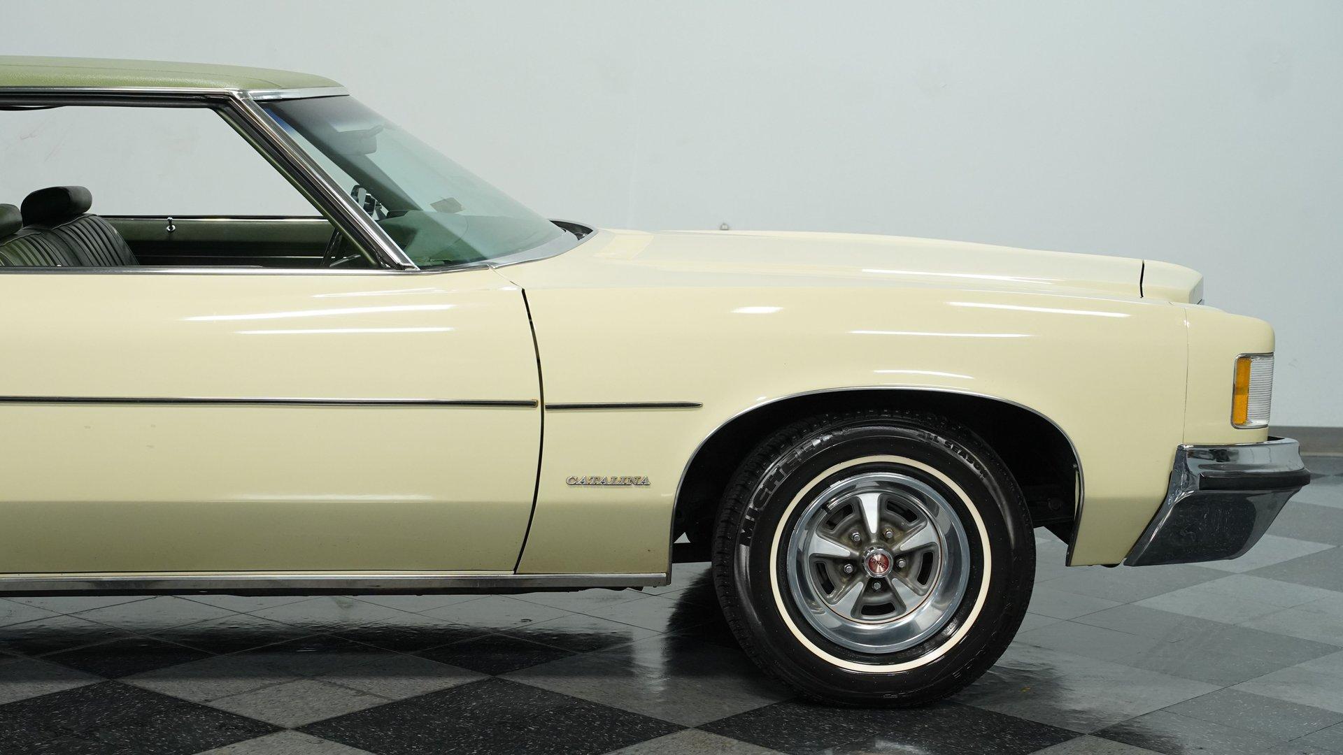 There is something timeless about slipping behind the wheel of a classic American coupe and feeling like you own a small piece of freedom. This Catalina carries that quiet charisma that turns routine drives into memorable outings and weekend cruises into conversations. It has lived a single life from new and wears its years with pride, inviting the next owner to continue its story. If you have been searching for an honest 1972 Pontiac two-door hardtop that still presents beautifully and drives as it should, this one-owner Catalina deserves a look. Step inside and you will find an interior that has been well cared for over the decades. The upholstery is extremely clean , the headliner presents nicely, and the dash shows well with clear gauges. Door panels and trim are tidy and complete, and the cabin retains that original ambience that many collectors prize, while offering the comfort expected for long drives and car-show appearances. Under the hood is a numbers-matching 400 cubic inch V8 fed by a single 2-barrel carburetor and paired to a Turbo Hydramatic 400 three-speed automatic transmission. The Catalina is equipped with front disc brakes with power assist, power steering, and a solid suspension package of coil springs and shocks front and rear with trailing arms and a sway bar for stable road manners. Cooling, charging, and driveline systems present as functional for enjoyable daily use or touring. Highlights: One owner 44,452 Actual mileage Numbers-matching 400 V8 Turbo Hydramatic 400 three-speed automatic Front power disc brakes with power assist; rear power drum brakes Power steering for comfortable cruising Rear axle: 10-bolt housing Wheels: 15 inch wheels Suspension: coil springs and shocks front and rear with trailing arms and sway bar Vinyl top Air conditioning converted to R-134a (needs servicing) Original invoice, Protect-O-Plate, owner manual and assorted maintenance records This Catalina represents a rare opportunity to own a largely original, one-owner example that is ready to drive and enjoy. It arrives with paperwork and a solid presentation that should appeal to both collectors and enthusiasts. Call today!