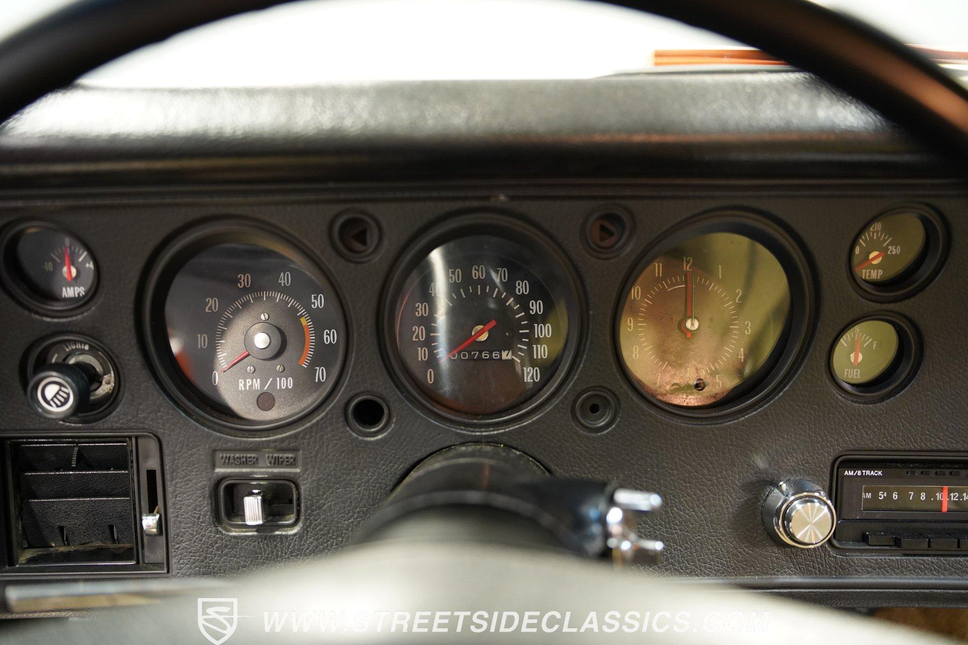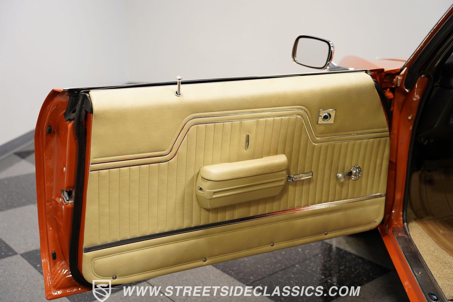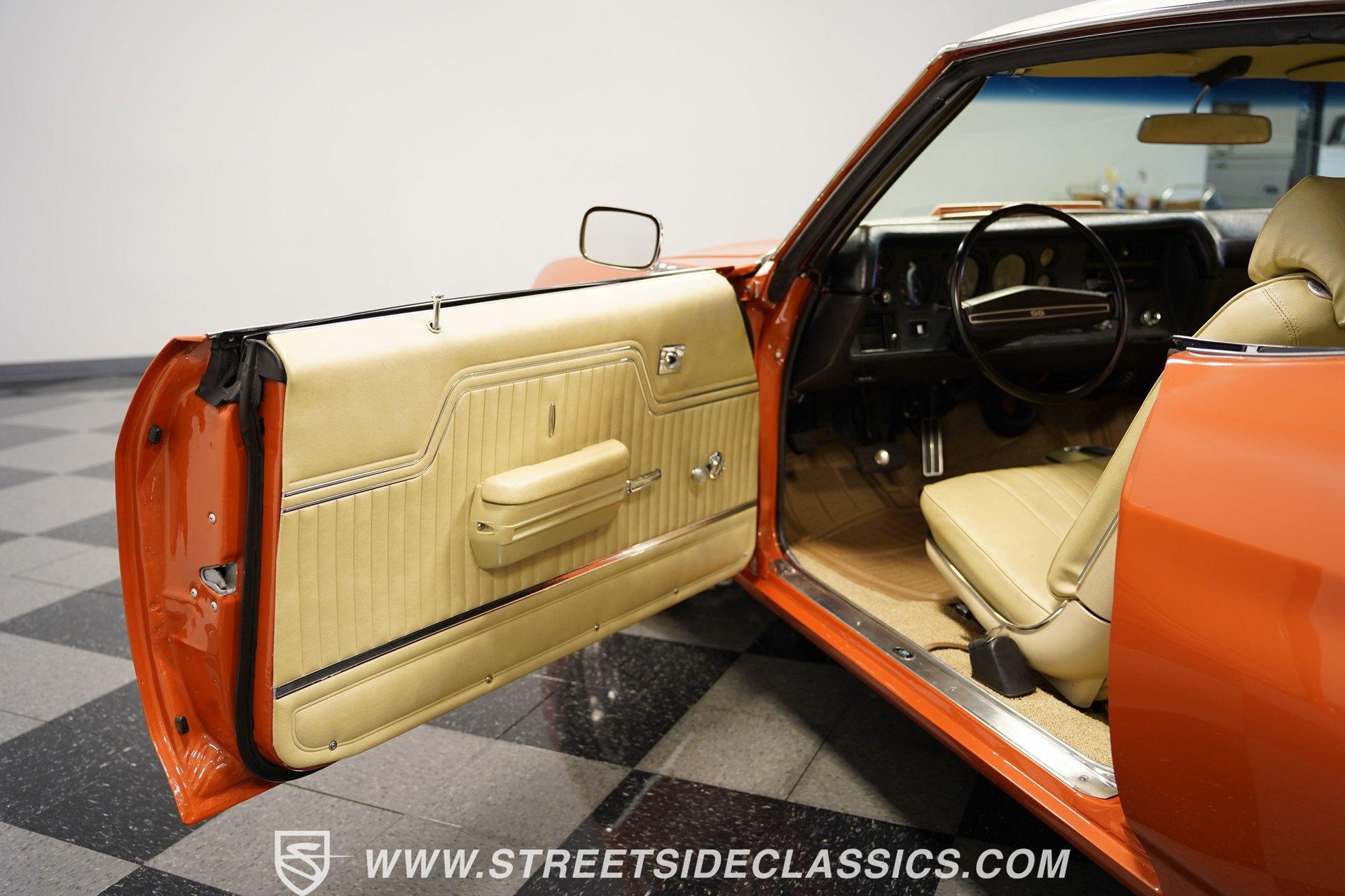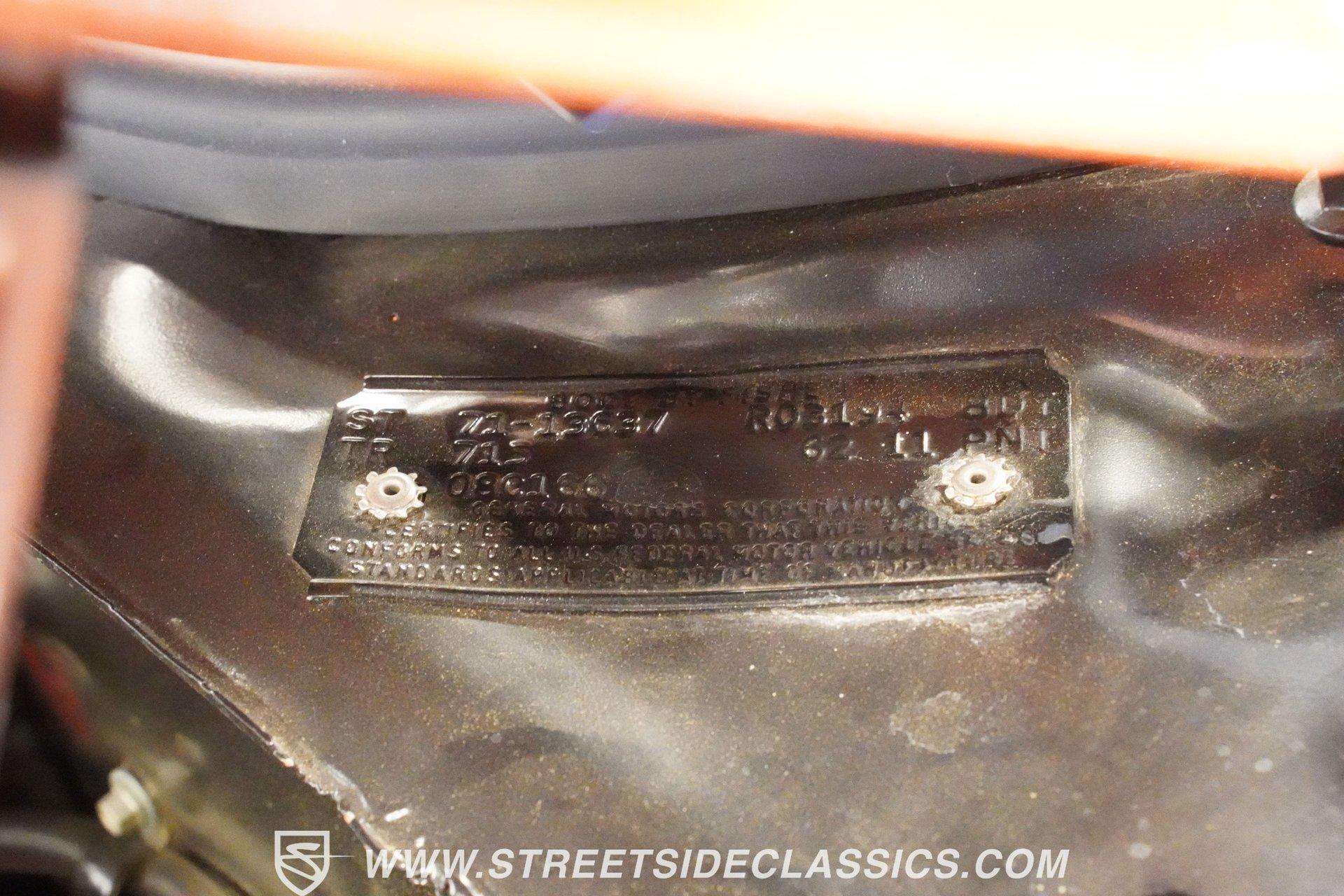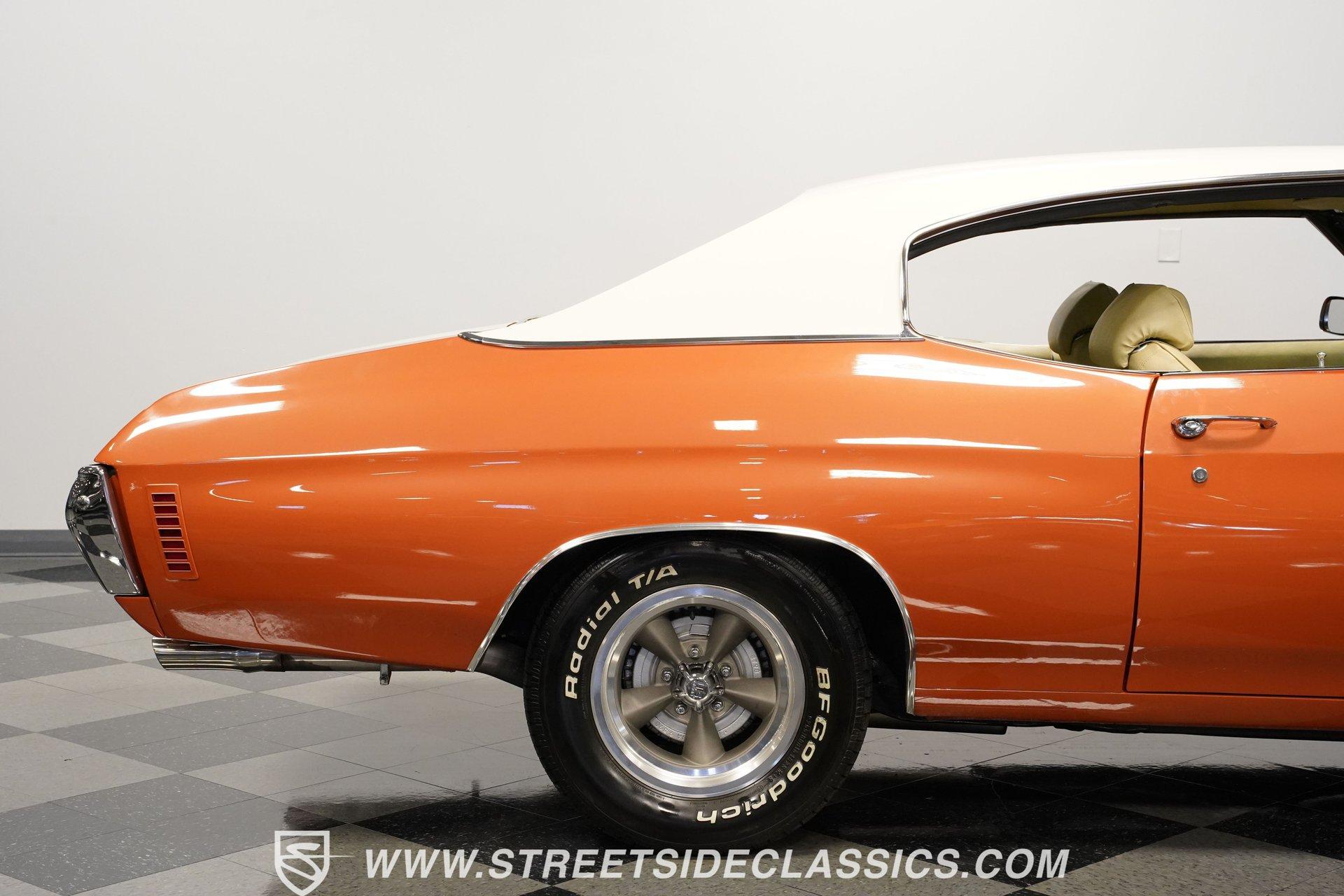White roof over Burnt Orange paint gives this 1971 Chevrolet Chevelle SS 454 a bold, factory-correct color combination that flat-out works. Painted stripes stretch across the body, finishing off a look that lands squarely in muscle car territory. The stance sits right thanks to US Mags 15" wheels wrapped in P235/60R15 front and P255/60R15 rear tires. A functioning cowl induction hood and clean trim help define the SS package, while the overall body fit keeps everything tight and solid from front to rear. Inside, Sandalwood vinyl covers the bucket seats, working with the center console and horseshoe shifter to keep the muscle car vibe intact. Vintage Air A/C is fitted and modern Bluetooth sound replaces the original signal while leaving the classic layout intact. The dash pad, original steering wheel, and clean gauge cluster all hold their place. Fresh carpet and a tight headliner finish the job, while the panels and trim pieces carry that consistent, well-kept look. The LS5 454 V8 pairs with a TH400 3-speed automatic transmission and breathes through a Holley 4-barrel carburetor. Intake and valve covers have been finished to match the engine bay, while Patriot long tube headers feed into a dual Pypes exhaust system. Coil springs and sway bar control the front, trailing arms with tubular upgrades handle the rear. Power disc brakes up front, power steering, and a 12-bolt rear axle round out the setup. HIGHLIGHTS: LS5 454 V8 TH400 3-Speed Automatic Transmission Holley 4-Barrel Carburetor Patriot Long Tube Headers Dual Pypes Exhaust System Power Disc Brakes 12-Bolt Rear End Coil Spring/Shock/Sway Bar Front Suspension Trailing Arm/Coil Spring/Shock Rear Suspension Tubular Rear Trailing Arms Burnt Orange Paint With Painted Stripes White Roof US Mags 15" Wheels P235/60R15 Front & P255/60R15 Rear Tires Functioning Cowl Induction Hood Sandalwood Interior With Bucket Seats Center Console With Horseshoe Shifter Vintage Air Conditioning Original Steering Wheel Power Steering Bluetooth Stereo Newer Carpet Tight Headliner Clean Door Panels Factory Buildsheet Owner's Manual Service Receipts Big block power, Complete restoration and authentic SS appointments make this 1971 Chevrolet Chevelle SS 454 a serious muscle car investment. Call today!