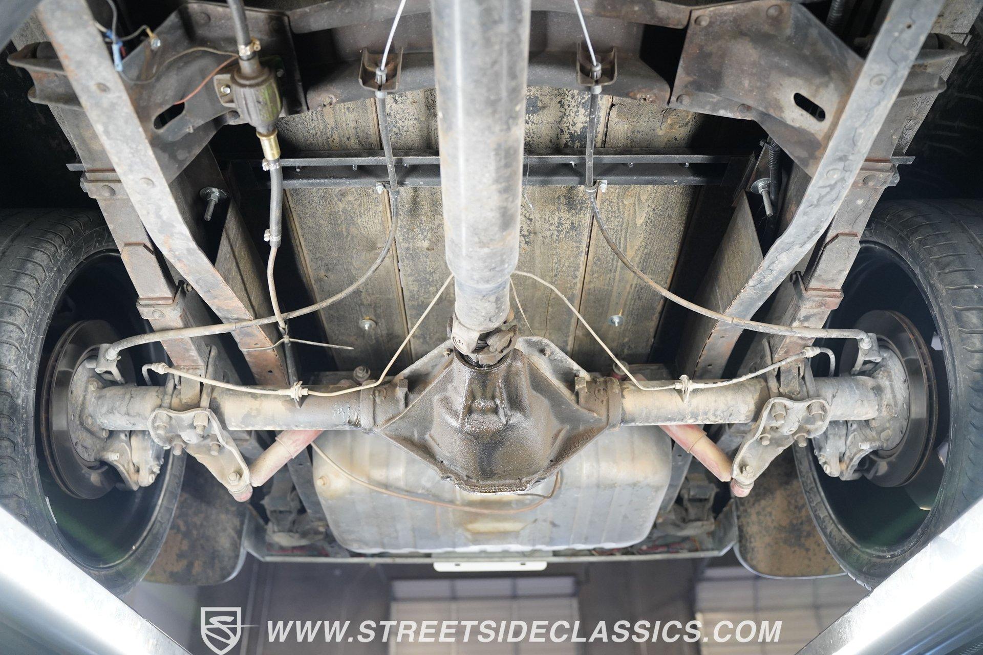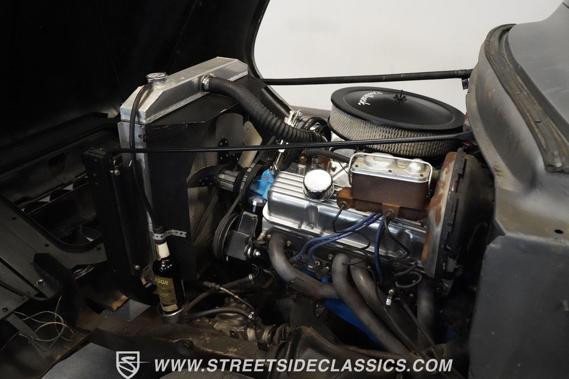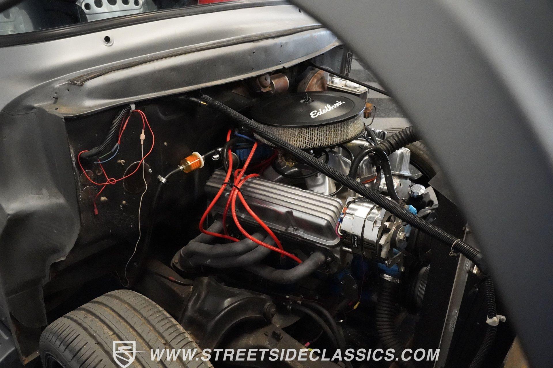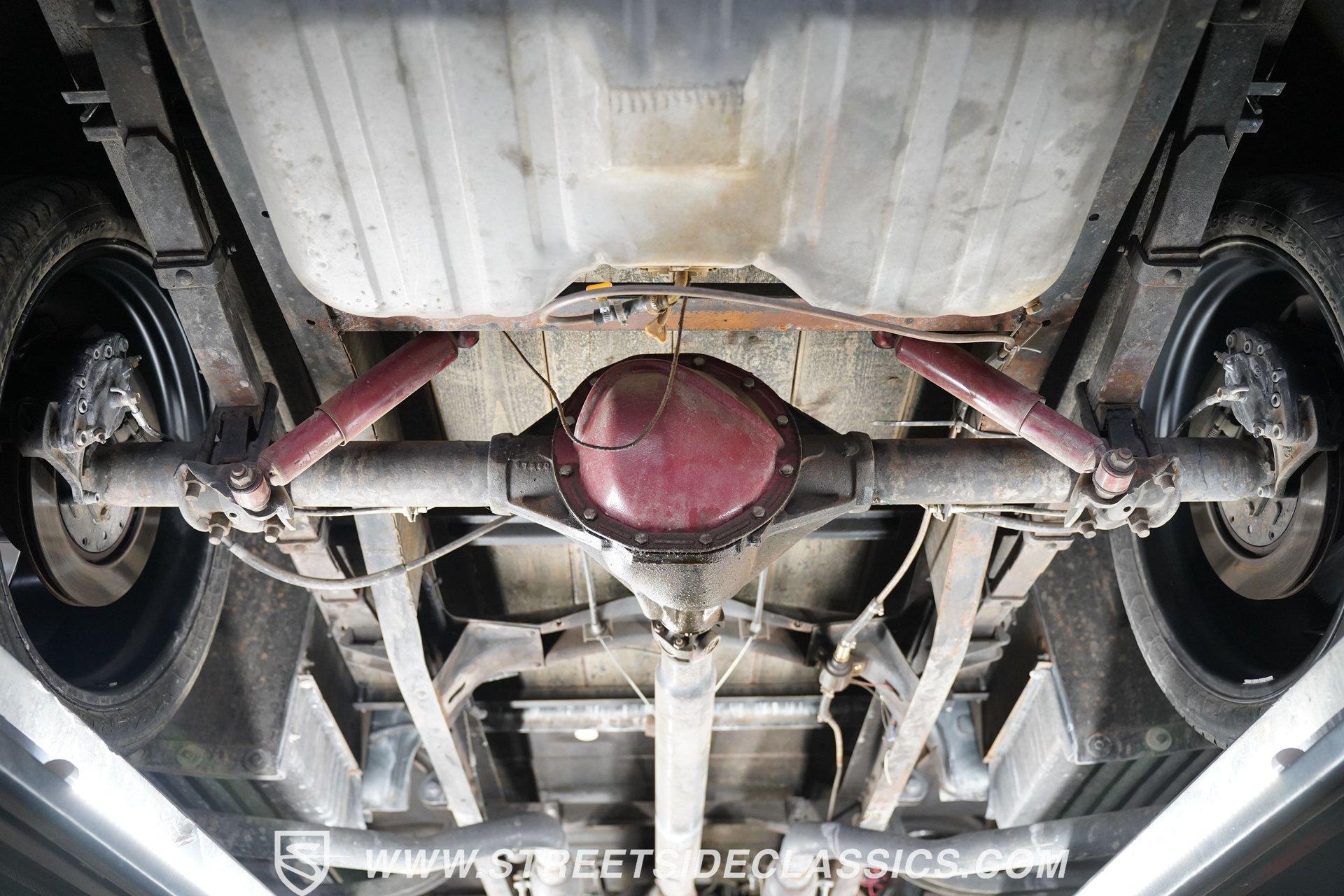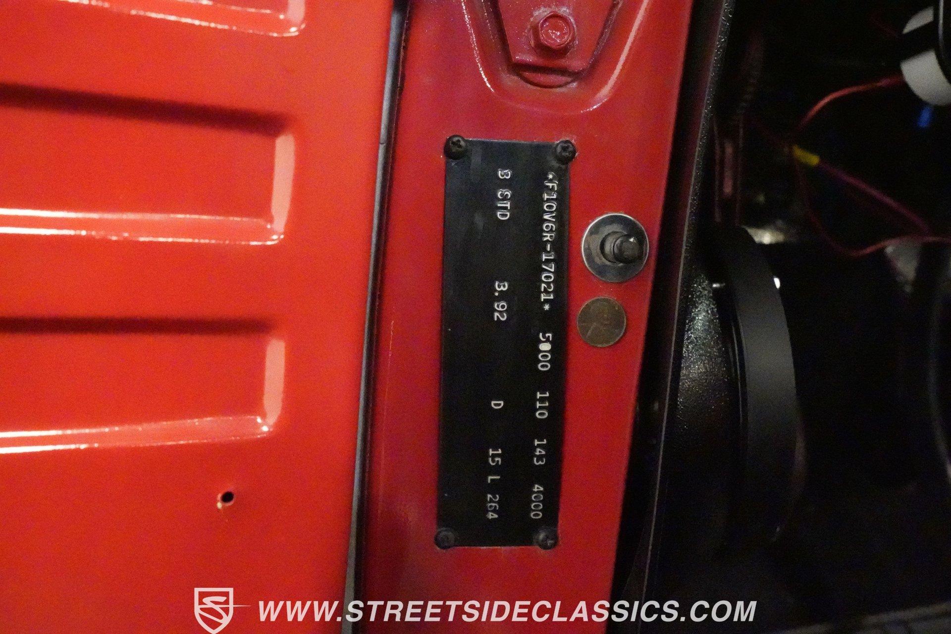 There is something about a classic truck that has been modified and selectively modernized that is just special. Whether it is goosebumps or a Joker-like smile, one look at a truck like this 1956 Ford F-100 in person is guaranteed to elicit a reaction. Fully repainted in a matte grey, this resto-modded truck features a custom one-piece tilt-forward front end, custom first-gen-inspired front grille, and upgraded windows with a vent window delete, allowing for a clean single-pane side glass look. Inside, we find a red and black interior highlighted by a set of wild-looking aftermarket steel bucket seats separated by a custom-fabricated steel center console, complete with dual cupholders. A banjo-style, power-assisted steering wheel sits just in front of a six-pod Dolphin gauge cluster, accentuated by a large 140 mph speedometer and an 8,000 rpm tachometer, each flanked by a set of auxiliary gauges on either side. A Pioneer AM/FM/CD/Aux/Bluetooth head unit offers far more soundtrack options than the original AM unit it replaces, and situated under the dash, does not upset the clean look of the dashboard. Tilt that big front end forward, and inside, we find a 350 cubic-inch V-8 engine. A single four-barrel Edelbrock carburetor sits mounted on a polished air gap-style intake manifold. An aftermarket cam operates lightweight aluminum heads, while spent gases are expelled through a set of shorty headers connected to a dual exhaust and ultimately exiting via a set of Glasspack-style mufflers. Power is routed through a column-shifted TH400 three-speed automatic transmission before being sent out to the 12-bolt rear end. *Restomod *Custom One Piece Front End *Custom Grille *Matte Grey Paint *350 CID V8 *Aluminum Heads *Air Gap Style Intake *Edelbrock Four Barrel Carb *Custom Cam *Shorty Headers *Dual Exhaust *Glasspack Style Mufflers *20 Inch American Racing Wheels *Low Profile Tires *Power Steering *Power Brakes *Four Wheel Discs *Steel Bucket Seats *Custom Center Console *Dolphin Gauges *Pioneer Head Unit *Bluetooth This 1956 Ford F-100 achieves its slammed look thanks to an independent front end suspension that appears to have been donated by a late-model GM vehicle, while its solid axle rear end maintains the old-school feel of the line. A quartet of massive 20-inch American Racing wheels are shod in a staggered set of tires, with a set of 235/55R-20 Atrezzo rubber up front, and a pair of wide 295/30R-20 Pirelli PZero tires out back. Barely hiding behind those huge wheels are a set of power disc brakes at all four corners, giving this muscle truck a well-rounded performance personality. If you are like us and can't help but react when a well-done throwback truck rumbles by, then don't wait another second. Call today!