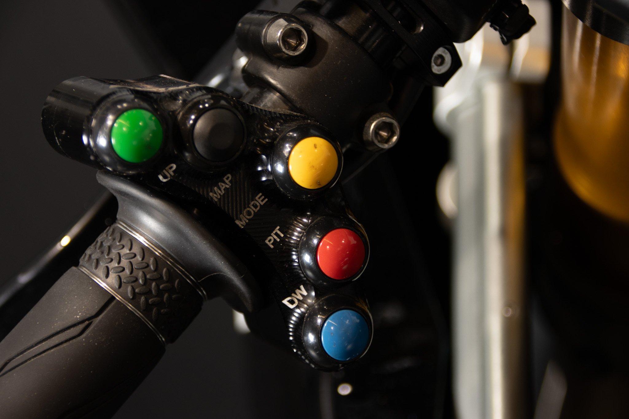 Stupendo esemplare solo pista Telaio 2019; Motore 2024 appena montato; Piastra sterzo CMD ricavata dal pieno; Cerchi OZ piega R; Sospensioni OHLINS di cui mono TTX36GP , Forcella R&T, ammortizzatore di sterzo laterale; Scarico completo Akrapovic; Impianto completo freni Brembo : pompa ricavata dal pieno CNC, Pinze GP4RX, dischi freno SUPER SPORT (pinza freno posteriore Brembo montata su slitte ricavate del pieno CDM-RS) ; Radiatore maggiorato MB Motorsport; Acquisizione dati I2M complete di GPS, sensori sospensioni e freni; Pulsantiere racing + Gas rapido + Batteria ultraleggera al litio; Telaietto portastrumenti + condotto airbox in carbonio