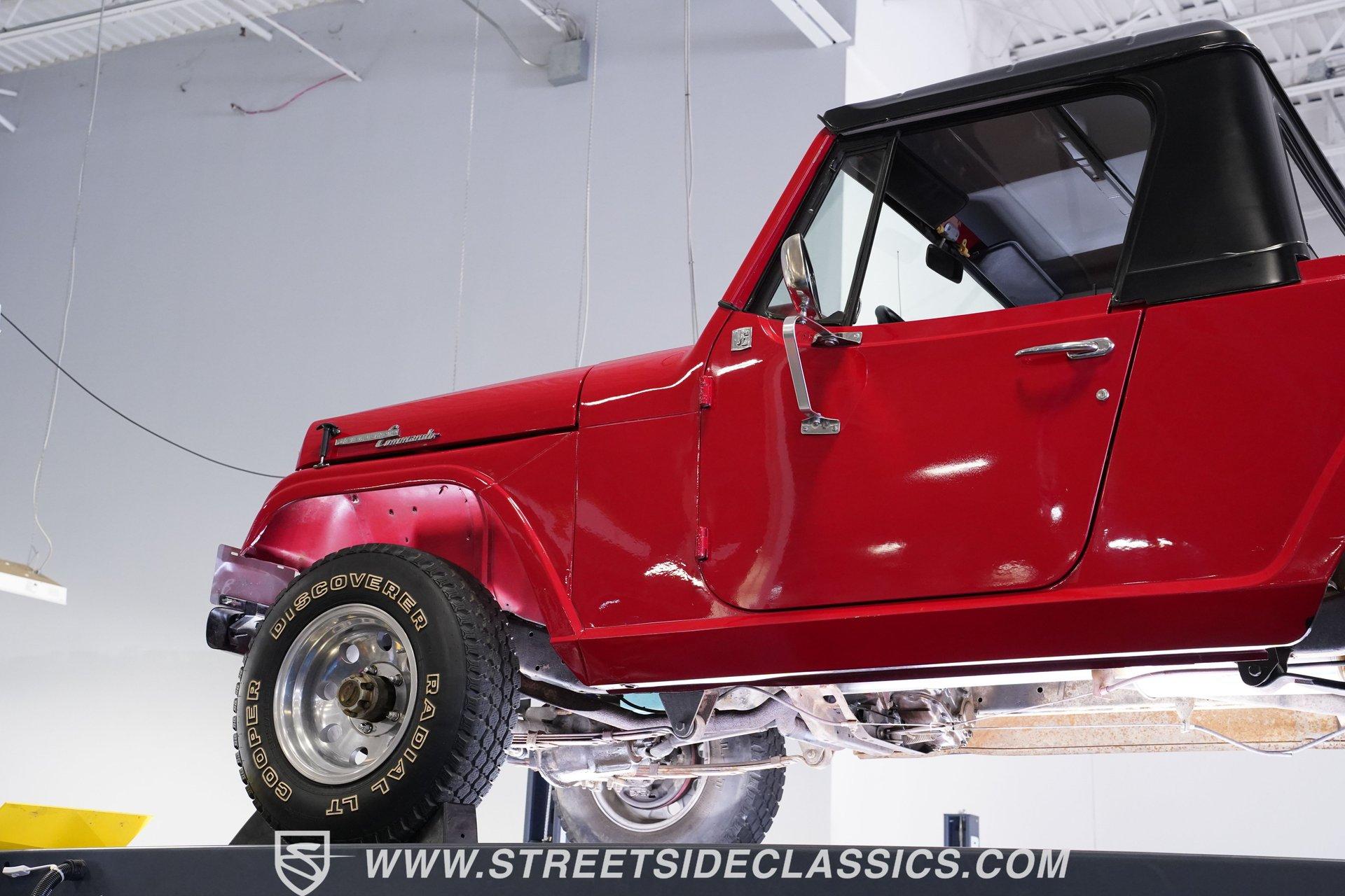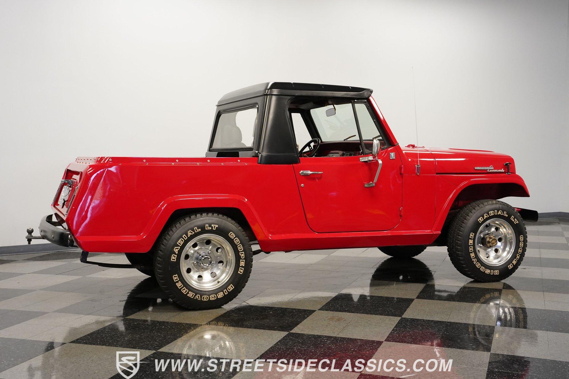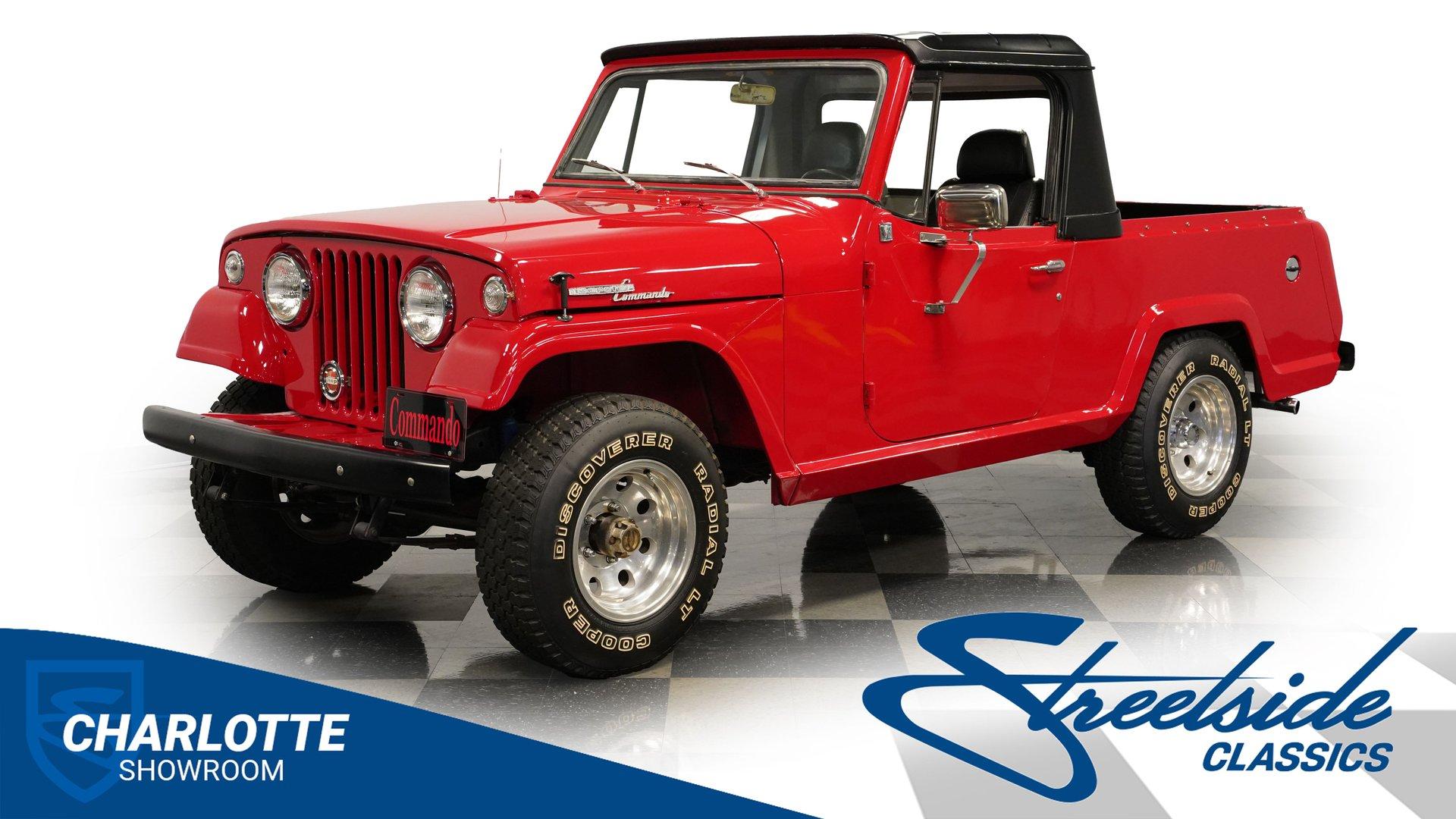 Experience the spirit of adventure and timeless ruggedness with this iconic 1967 Jeep Commando. This vehicle is more than just a classic; it represents the boldness of exploration and the joy of open-road freedom. Imagine the memories you could create, cruising through back roads or city streets, turning heads with its vibrant red paint and unmistakable Jeep charm. Whether you're a collector or an enthusiast looking for a unique ride, this Jeep Commando's blend of vintage appeal and functional design makes it a compelling choice. Don't miss the chance to own a piece of automotive history that's ready to drive and impress. Step inside this Jeep Commando to find a nicely done interior that balances classic style with practical upgrades. The vinyl seats, sourced from a later model, offer a comfortable ride, complemented by a removable center console for added convenience. The dashboard shows minor wear with some cracking on the passenger side, tastefully touched up to maintain its character. A replacement gauge cluster and redone white control switches enhance the cockpit, while the aftermarket steering wheel adds a modern touch. The floors and bed are coated in black bedliner, providing durability and a rugged look. Under the hood, this Jeep features a 225 cubic inch V6 engine that has been rebuilt, delivering a smooth and reliable performance. The 3-speed manual transmission shifts smoothly, providing a connected and engaging driving experience. Clutch operation is solid, and the brakes have been well sorted for safety and control. The engine bay is maintained at a driver-quality level with hoses, belts, and wiring in good condition. Newer air cleaner and two-barrel carburetor add to its dependable mechanics. Highlights 1967 Jeep Commando Model 225 CI V6 Engine 3-Speed Manual Transmission Glossy Red Paint Finish Removable Hard Top Vinyl Interior Seating Black Bedliner Coating Aftermarket Steering Wheel AM/FM Radio Cassette Player LT235/75R15 Tires Financing Available Vehicle Protection Plans Available Worldwide Shipping This 1967 Jeep Commando offers a fantastic opportunity to own a classic with character and solid mechanicals. Its blend of vintage style and practical upgrades makes it a versatile and exciting vehicle for any enthusiast. Don't wait to make this classic Jeep yours. Call, email, or come visit our showroom today!