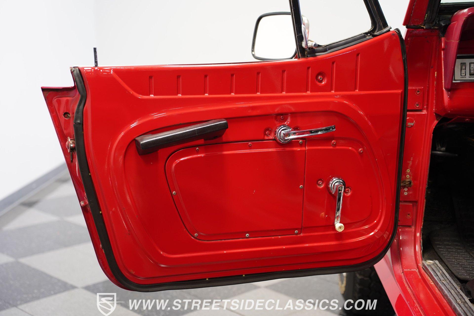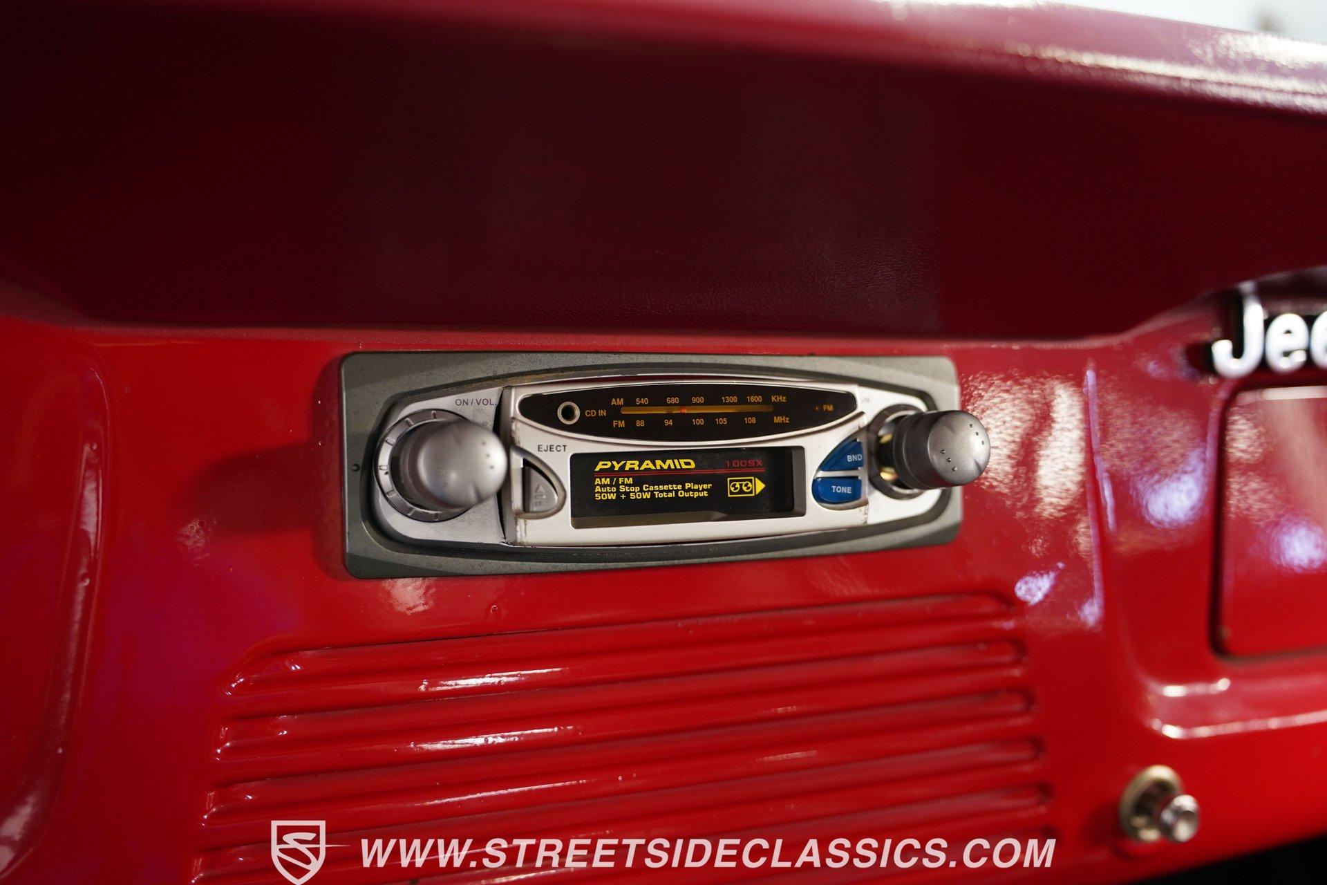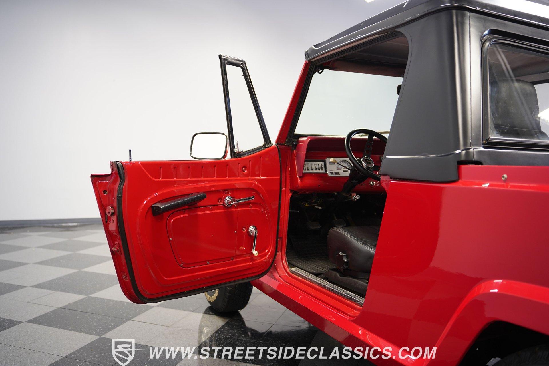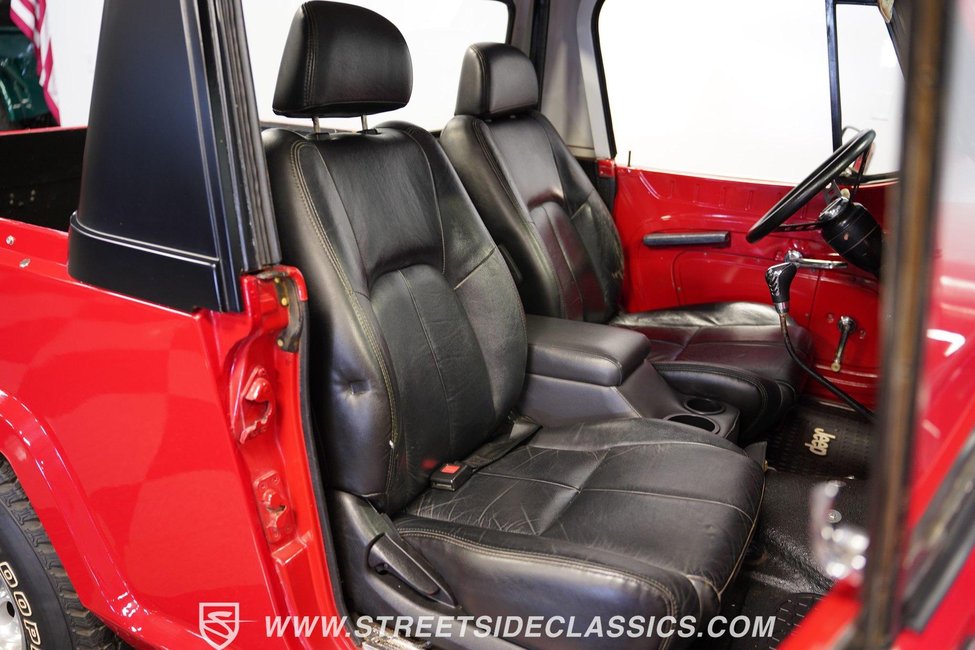 Experience the spirit of adventure and timeless ruggedness with this iconic 1967 Jeep Commando. This vehicle is more than just a classic; it represents the boldness of exploration and the joy of open-road freedom. Imagine the memories you could create, cruising through back roads or city streets, turning heads with its vibrant red paint and unmistakable Jeep charm. Whether you're a collector or an enthusiast looking for a unique ride, this Jeep Commando's blend of vintage appeal and functional design makes it a compelling choice. Don't miss the chance to own a piece of automotive history that's ready to drive and impress. Step inside this Jeep Commando to find a nicely done interior that balances classic style with practical upgrades. The vinyl seats, sourced from a later model, offer a comfortable ride, complemented by a removable center console for added convenience. The dashboard shows minor wear with some cracking on the passenger side, tastefully touched up to maintain its character. A replacement gauge cluster and redone white control switches enhance the cockpit, while the aftermarket steering wheel adds a modern touch. The floors and bed are coated in black bedliner, providing durability and a rugged look. Under the hood, this Jeep features a 225 cubic inch V6 engine that has been rebuilt, delivering a smooth and reliable performance. The 3-speed manual transmission shifts smoothly, providing a connected and engaging driving experience. Clutch operation is solid, and the brakes have been well sorted for safety and control. The engine bay is maintained at a driver-quality level with hoses, belts, and wiring in good condition. Newer air cleaner and two-barrel carburetor add to its dependable mechanics. Highlights 1967 Jeep Commando Model 225 CI V6 Engine 3-Speed Manual Transmission Glossy Red Paint Finish Removable Hard Top Vinyl Interior Seating Black Bedliner Coating Aftermarket Steering Wheel AM/FM Radio Cassette Player LT235/75R15 Tires Financing Available Vehicle Protection Plans Available Worldwide Shipping This 1967 Jeep Commando offers a fantastic opportunity to own a classic with character and solid mechanicals. Its blend of vintage style and practical upgrades makes it a versatile and exciting vehicle for any enthusiast. Don't wait to make this classic Jeep yours. Call, email, or come visit our showroom today!