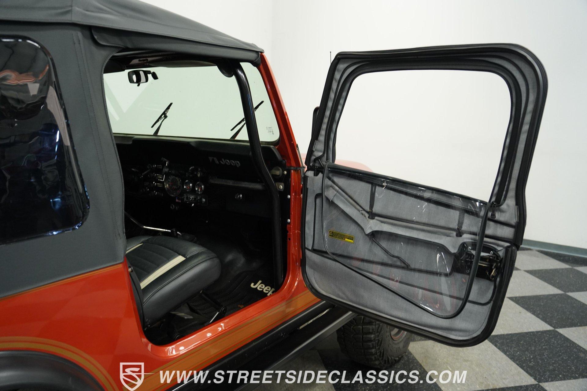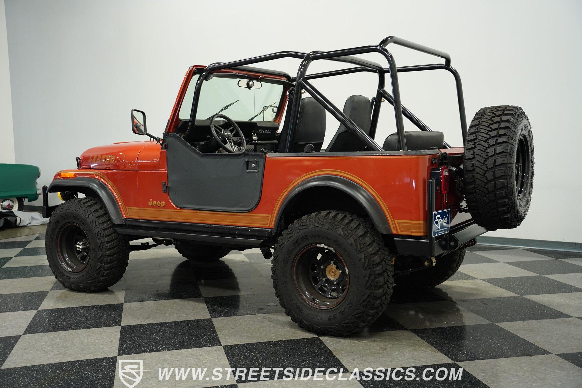Experience the timeless spirit of adventure and freedom with this iconic 1980 Jeep CJ7. This classic off-roader is more than just a vehicle; it's a statement of rugged individuality and open-air exploration that stirs memories of endless trails and sunset drives. Whether you're a weekend warrior or a collector, this Jeep CJ7 offers a unique blend of vintage charm and modern performance enhancements. Ready to tackle any terrain with style and confidence, this Jeep invites you to make your own stories on and off the road. Discover why this 1980 Jeep CJ7 could be the perfect addition to your automotive collection today. Step inside to find factory CJ high-back bucket seats featuring comfortable and well-upholstered interiors that remain true to the Jeep's heritage. The cabin boasts a tasteful blend of digital and analog gauges for a modern touch, complemented by a Tuffy locking center console for added security and convenience. A full color change refreshes the interior aesthetics, while the vinyl material ensures durability, making it as practical as it is stylish. Under the hood, this Jeep is powered by a fresh blueprint 350 V8 engine installed just over a year ago, featuring aluminum heads, a new intake, radiator, and long tube headers for enhanced performance and sound. The 4-speed manual transmission offers engaging control, paired with a twin stick transfer case that allows independent front and rear differential locking for superior off-road capability. The drivetrain is well-sorted and backed by power disc brakes up front, power drum brakes in the rear, and power steering for a confident and responsive driving experience. Highlights 1980 Jeep CJ7 Model Year Fresh Blueprint 350 V8 Engine Aluminum Heads and Intake Long Tube Headers for Performance 4-Speed Manual Transmission Twin Stick Transfer Case Locking Front and Rear Differentials Power Disc Front Brakes Power Drum Rear Brakes Power Steering Included Full Roll Cage Installed Removable Soft Top with Half Doors Steel Front and Rear Bumpers Warn Winch with Remote Controller KC Front and Rear Facing LED Lights Tuffy Locking Center Console Factory CJ High Back Bucket Seats Digital and Analog Gauges Bluetooth and CD Player Audio New Radiator and Optima Battery 32X11.50R15LT Tires Front and Rear Financing Available Vehicle Protection Plans Available Worldwide Shipping This 1980 Jeep CJ7 is a fantastic opportunity to own a classic off-road machine that balances vintage appeal with modern upgrades. It drives excellently, offering a fun and confident ride for any enthusiast. Don't miss your chance to own this versatile and well-equipped Jeep. Call, email, or come visit our showroom today!