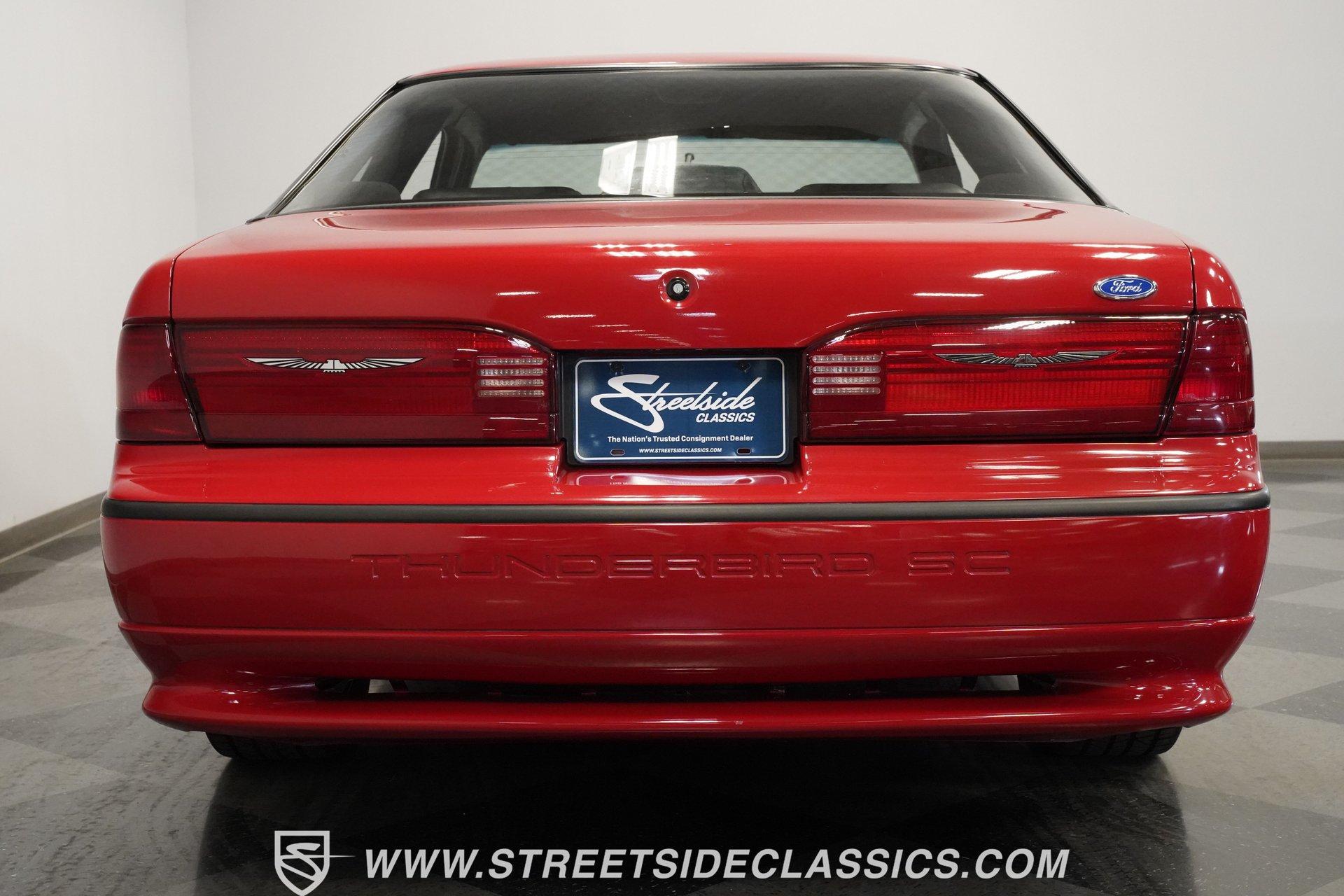 With cars like this 1992 Ford Thunderbird Super Coupe (SC), Ford hit the perfect blend of personal luxury with enough supercharged performance that even had Mustang drivers looking over their shoulders. This exceptional, highly original, 34,264 mile Thunderbird is one of the best of the breed. Thunderbirds have always been about the mature coupe for those who appreciate more. But also, these 10th generation "Aero Birds" had a streamlined presence that was just begging for added performance. When Ford added a supercharger, they also gave these coupes an extra presence that was all their own. A redesigned front fascia with added air inlets and a tasteful ground effects body kit give the SC a far more substantial look. The Bright Red paint appears to be all original and shows well. Everything from the buzzsaw alloys to the Ford's cool keyless lock pad tell you that this special T-bird is about remaining quite stock. The SC's interior continues the Thunderbird's dual luxury and performance mission. You especially see it in the front seats. These are finished in gray cloth and they are power adjustable with plenty of added bolstering. While this is great for the driver, the interior has the right kind of practical size where this coupe fits into everyday life. There are even great everyday features that include power locks, cruise control, power windows, air conditioning and upgraded Pioneer AM/FM/CD stereo. The fuel injected and supercharged 3.8-liter V6 is how the Super Coupe earns its name. It's the kind of special powerhouse that gave this T-Bird similar horsepower to the 5.0 Mustang GT of the same year, and it produces even more torque than that iconic pony car. Paired with a versatile four-speed automatic transmission w/overdrive, the SC is up for anything. This car is both a long-legged interstate cruiser and a formidable car on twisty roads with its fully independent suspension. Add in four-wheel disc brakes, ABS, and power steering, and this is truly a great all-around classic with an athletic presence. HIGHLIGHTS: Supercharged 3.8-Liter V6 Engine Four-Speed Automatic Transmission 34,264 Miles Highly Original Car Firestone Firehawk GTA Tires Factory 15-Inch Alloy Wheels Bucket Seats Console Bright Red Paint Upgraded Pioneer AM/FM/CD Stereo Four-Wheel Disc Brakes Power Windows Power Locks Factory Tach and Gauges This 1992 Ford Thunderbird SC is a unique and powerful way to enjoy the new class of vintage coupes. And at this price, you know you have to hurry if you want it to be yours. Call today!!!