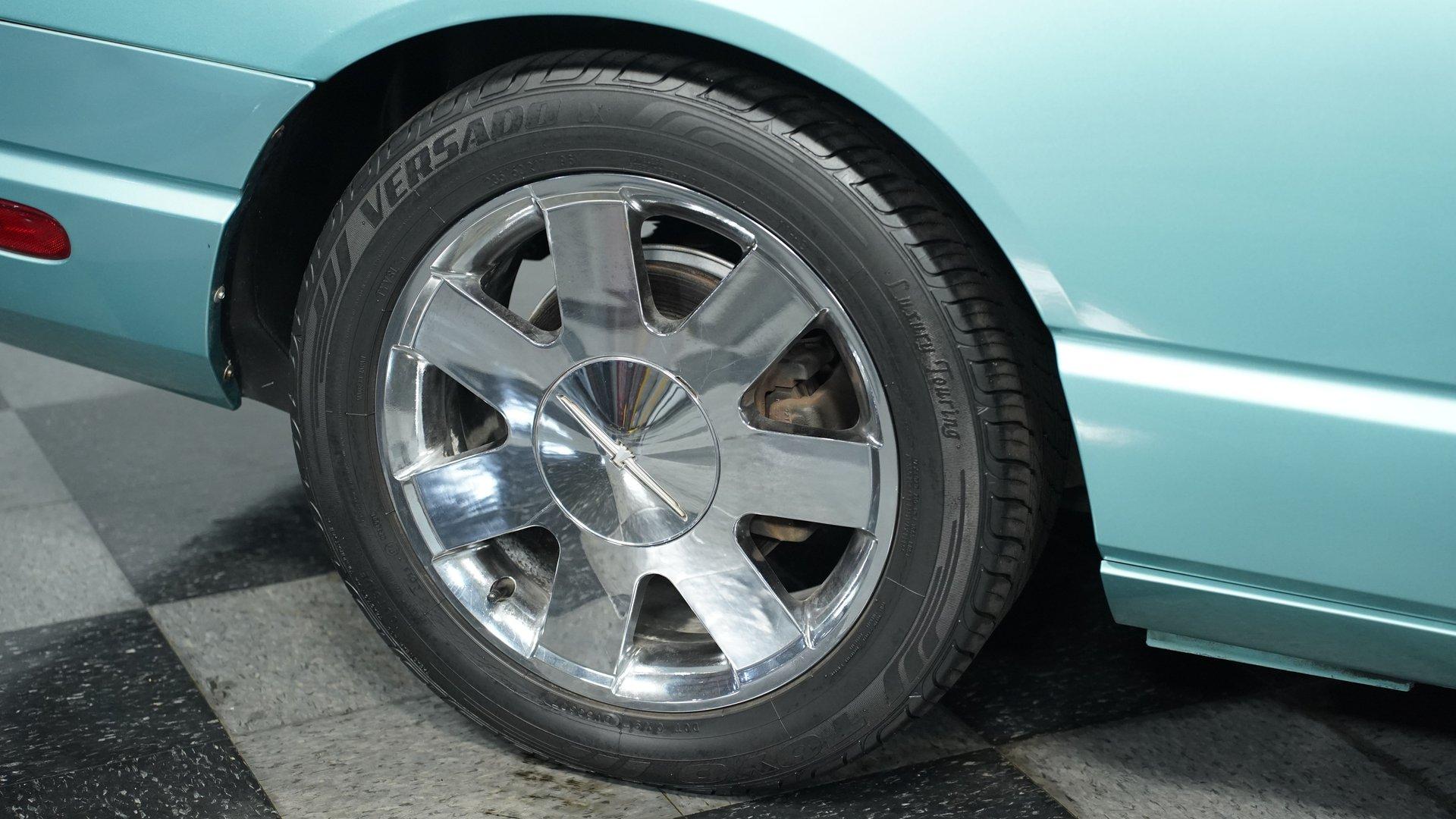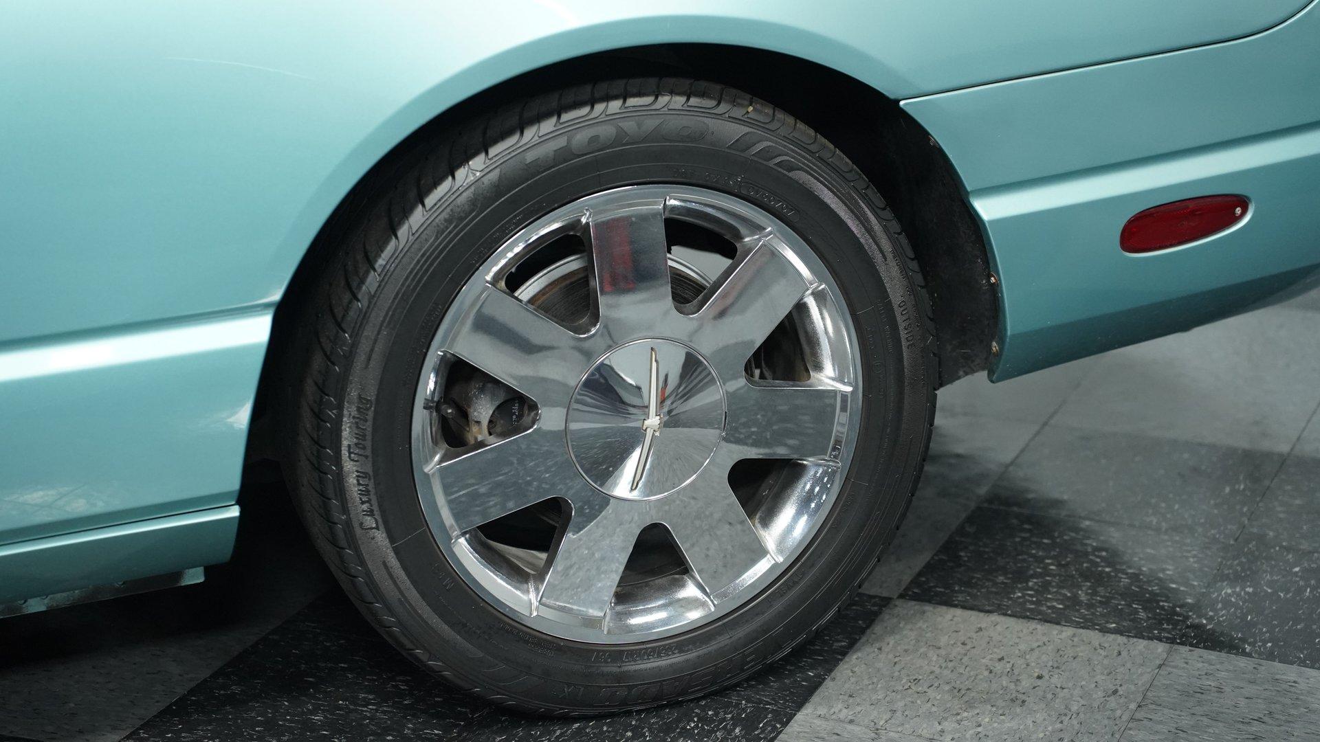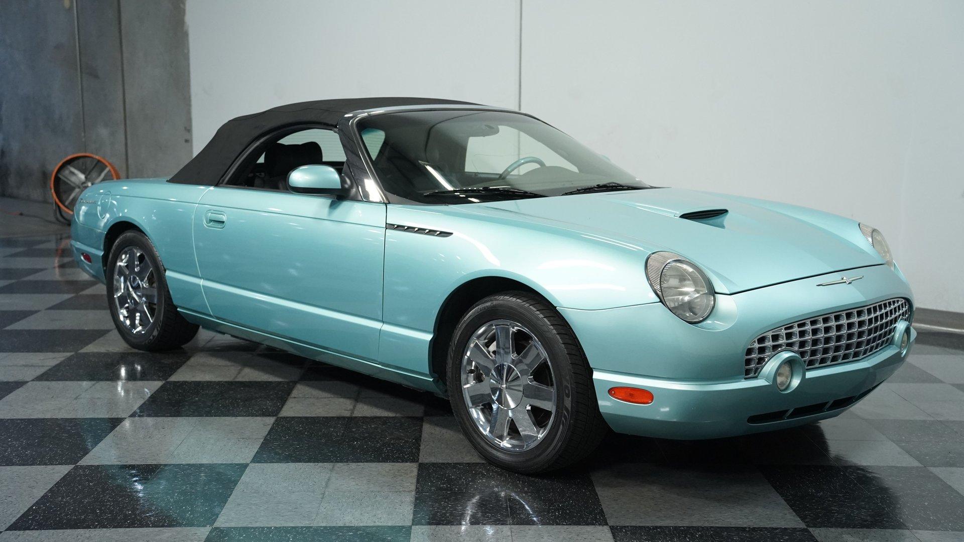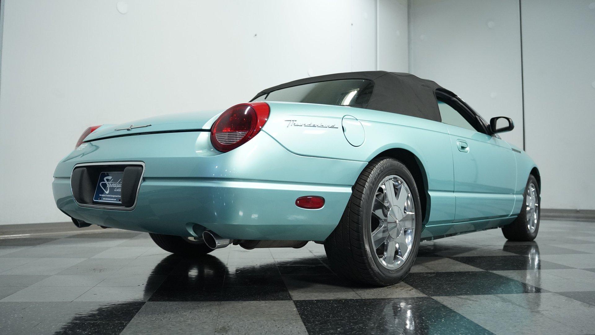 Classic style, luxurious features and smooth V8 power are all what make this 2002 Ford Thunderbird awesome. The fact that this car has only been driven 41,668 miles from new is just the cherry on top of this beautiful T-Bird. The retro-cool look of this final generation Thunderbird has a timeless sense of style. Ford really took the time to integrate the best elements of the first-generation Thunderbird into this design. It can be seen in the long profile, hood scoop, subtle fender vents and afterburner-style tail lights. There are even great mirror-like brightwork elements, like the grille and the optional chrome seven-spoke factory alloy wheels. This generation Thunderbird, finished in nostalgically in the one-year-only and highly desirable Thunderbird Blue with factory optional "full interior color accent package" two-tone Thunderbird Blue and Black interior, features automatic A/C climate control allowing you to drive comfortably with the top down nearly all year round. This car was created to be a terrific cruiser loaded with power windows, power locks, keyless entry/alarm, dual front airbags, a premium AM/FM/6-CD changer stereo and cruise control. The leather seats feel comfy and have a well-respected style with the kind of use that goes with the low mileage. The power driver's seat gets you in the right position to really see nice details such as the steering wheel's classic turquoise streak in the Thunderbird logo that is coordinated with the needles on the gauges. While the looks of the car are meant to be retro-cool, the engine bay is a pure modern motor. It is a fuel-injected DOHC 3.9-liter V8 that fires up readily, idles smoothly and delivers plenty of power when you want it, making it the ideal smooth cruiser from day one. You will love using this Thunderbird to drive near or far with its smooth five-speed automatic transmission, power steering, four-wheel disc brakes and fully-independent suspension. HIGHLIGHTS: Only 41,668 Miles from New First Year of the Last Generation of Thunderbirds Fuel-Injected DOHC 3.9-Liter V8 Automatic Transmission Folding Soft Top Highly Desirable Thunderbird Blue Color Factory "Full Interior Color Accent Package" Factory Stereo with 6-CD Changer Air Conditioning Optional Seven-Spoke Chrome Wheels 41,668 From New Power Windows Four-Wheel Disc Brakes This may look like a vintage car, but this 2002 Ford Thunderbird with just 41,668 miles certainly has modern moves. Call today!