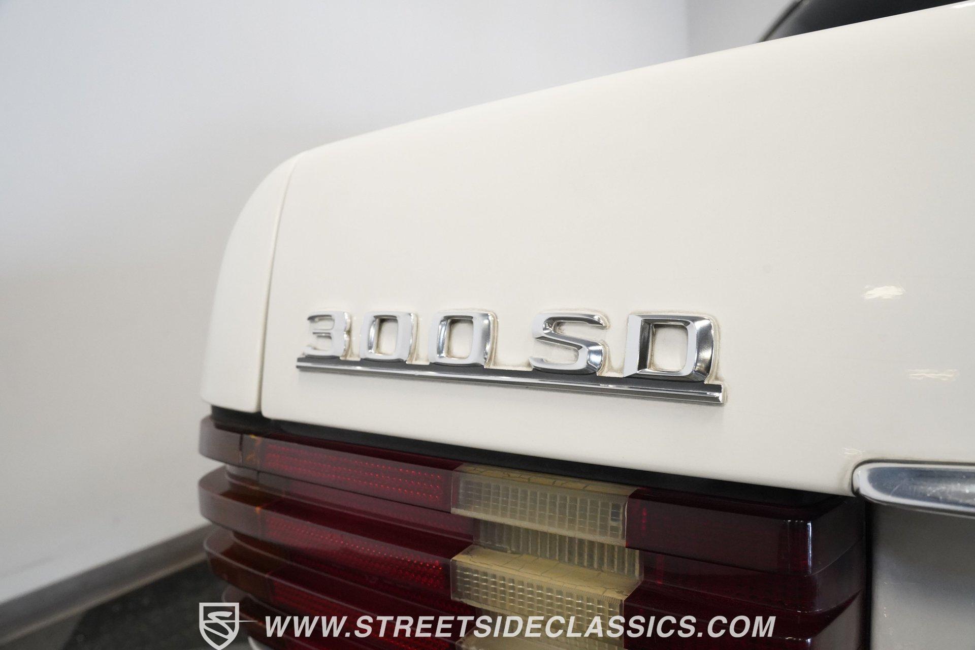 Step back into an era where automotive engineering met timeless elegance with the 1984 Mercedes-Benz 300SD. This classic diesel sedan embodies the spirit of refined luxury combined with the durability that Mercedes-Benz is known for. Owning this car is more than just driving; it's about experiencing a piece of automotive history that has gracefully endured the test of time. With a striking factory white exterior and a robust 3.0 I5 turbo diesel engine, this 300SD invites you to enjoy a blend of vintage style and reliable performance that could make it a remarkable addition to any collection or daily drive. Step inside to find a dark blue leather interior that offers both comfort and classic Mercedes-Benz style. The cabin features factory bucket seats and a center console with a console-mounted shifter, providing a driver-focused layout. The interior remains largely original with light wear consistent with its age, complemented by an aftermarket Sony AM/FM CD stereo deck for modern convenience. The headliner and rear bench seat are in good condition, and the door panels show only minor wear, making the interior inviting and authentic. Under the hood, this 1984 300SD houses a 3.0 I5 turbo diesel engine paired with a 4-speed automatic Mercedes-Benz 4G-Tronic transmission. The fuel injection system and turbocharged powertrain provide a solid, quiet driving experience with smooth idling and consistent shifting. While the engine is not focused on high horsepower, it delivers adequate performance for relaxed cruising. The car features power disc brakes at all four corners, power steering, and a suspension setup that retains the classic independent front and rear design, ensuring a comfortable and controlled ride. Highlights: 1984 Model Year 3.0 I5 Turbo Diesel Engine 4-Speed Automatic Transmission Factory High-Gloss White Paint Dark Blue Leather Interior Aftermarket Sony AM/FM CD Stereo Power Steering Power Disc Brakes Front and Rear Independent Front and Rear Suspension Factory Chrome 14-Inch Wheels Hankook Optimo H724 Tires (2017) Functional Air Conditioning Cruise Control and Heat Power Windows and Mirrors Seatbelts Front and Rear Financing Available Vehicle Protection Plans Available Worldwide Shipping This 1984 Mercedes-Benz 300SD is a compelling choice for anyone seeking a classic diesel sedan with authentic character and dependable mechanics. Its well-preserved interior and original exterior paint highlight its enduring appeal. Don't miss the chance to own this iconic piece of Mercedes-Benz history. Call, email, or come visit our showroom today!